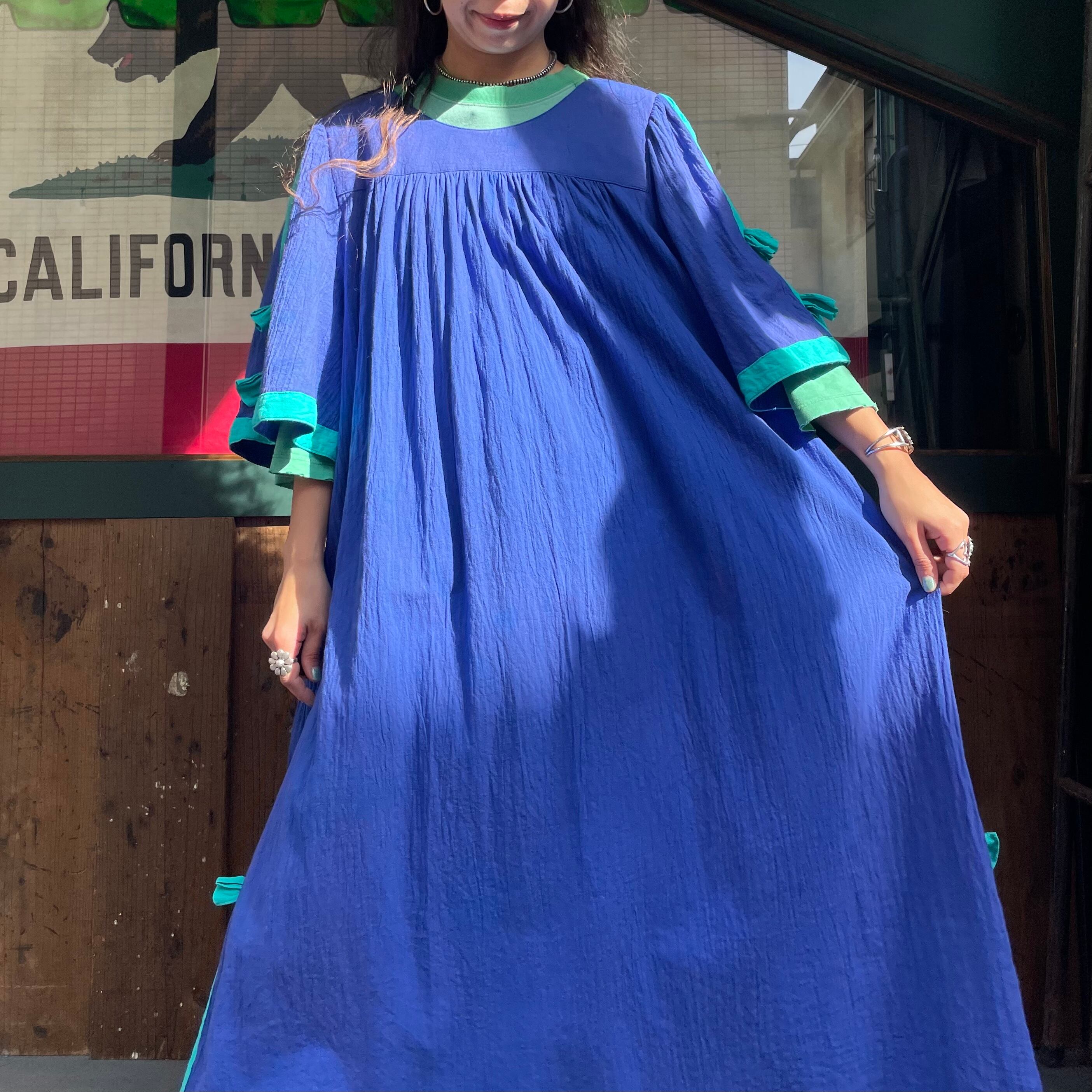 全体的にゆったり楽ちんなシルエットで、袖のボリューム感がかわいいワンピースです。