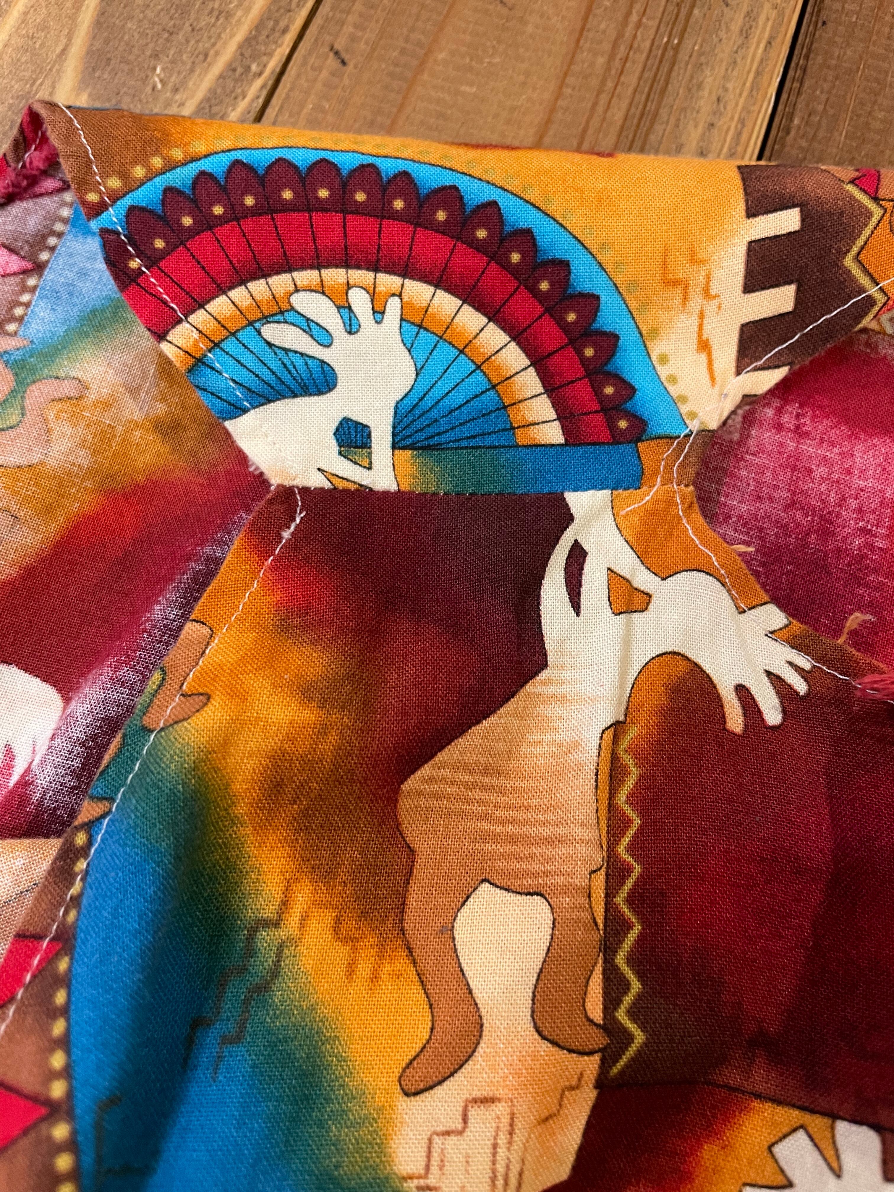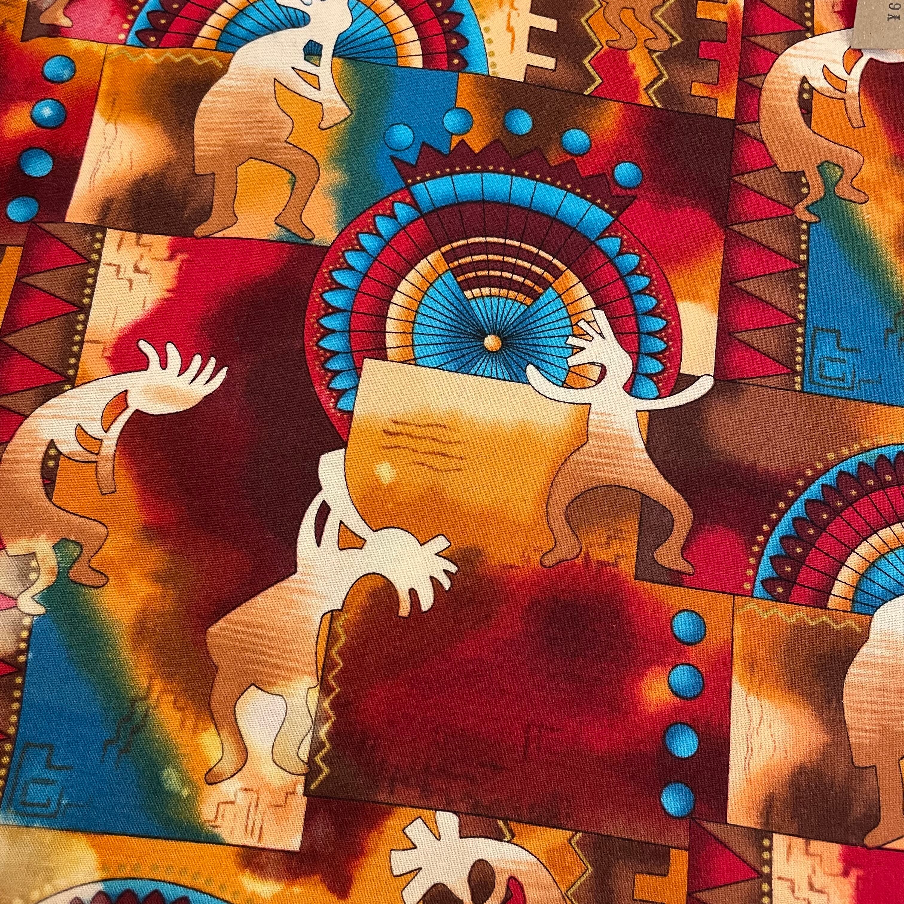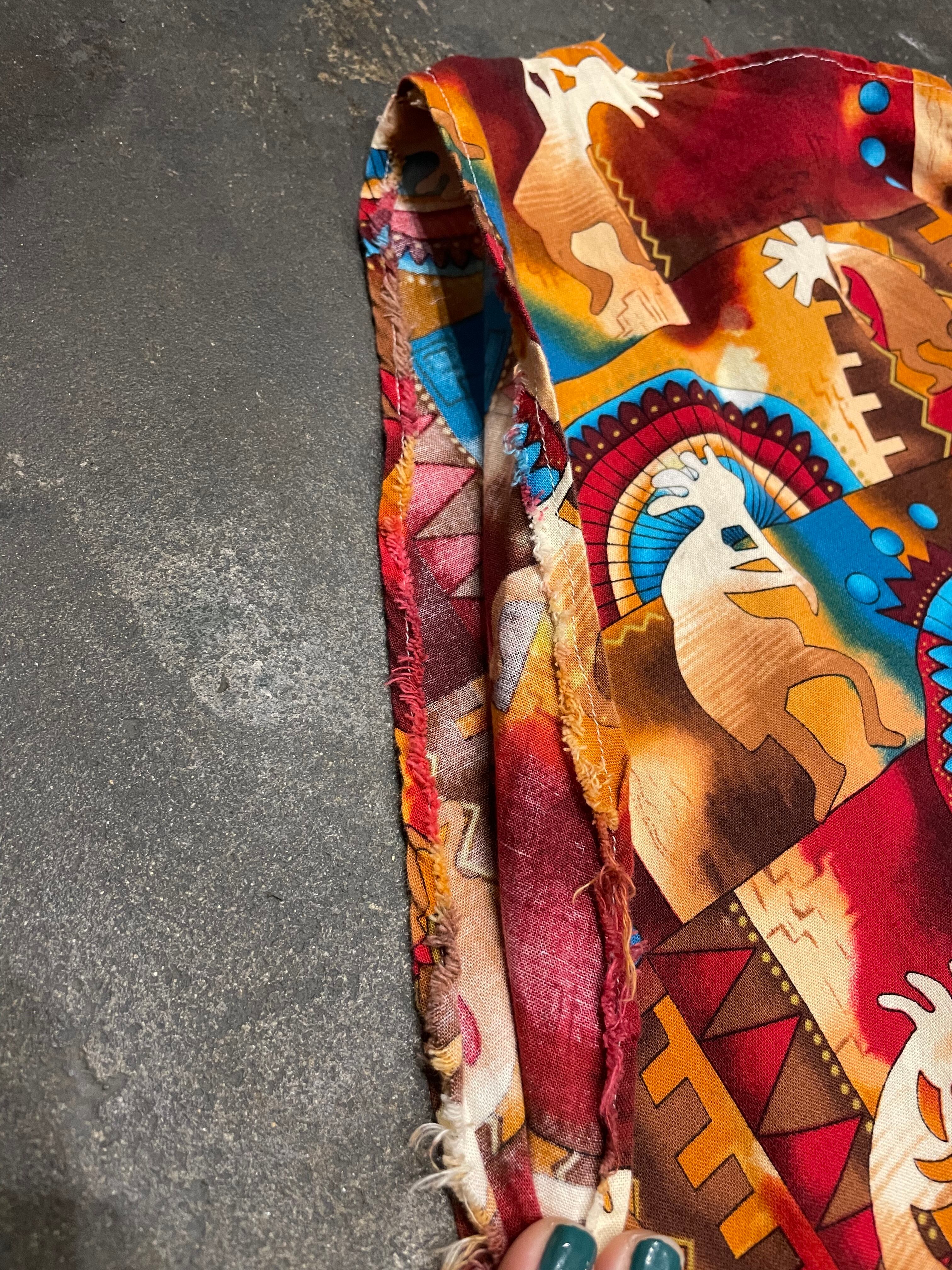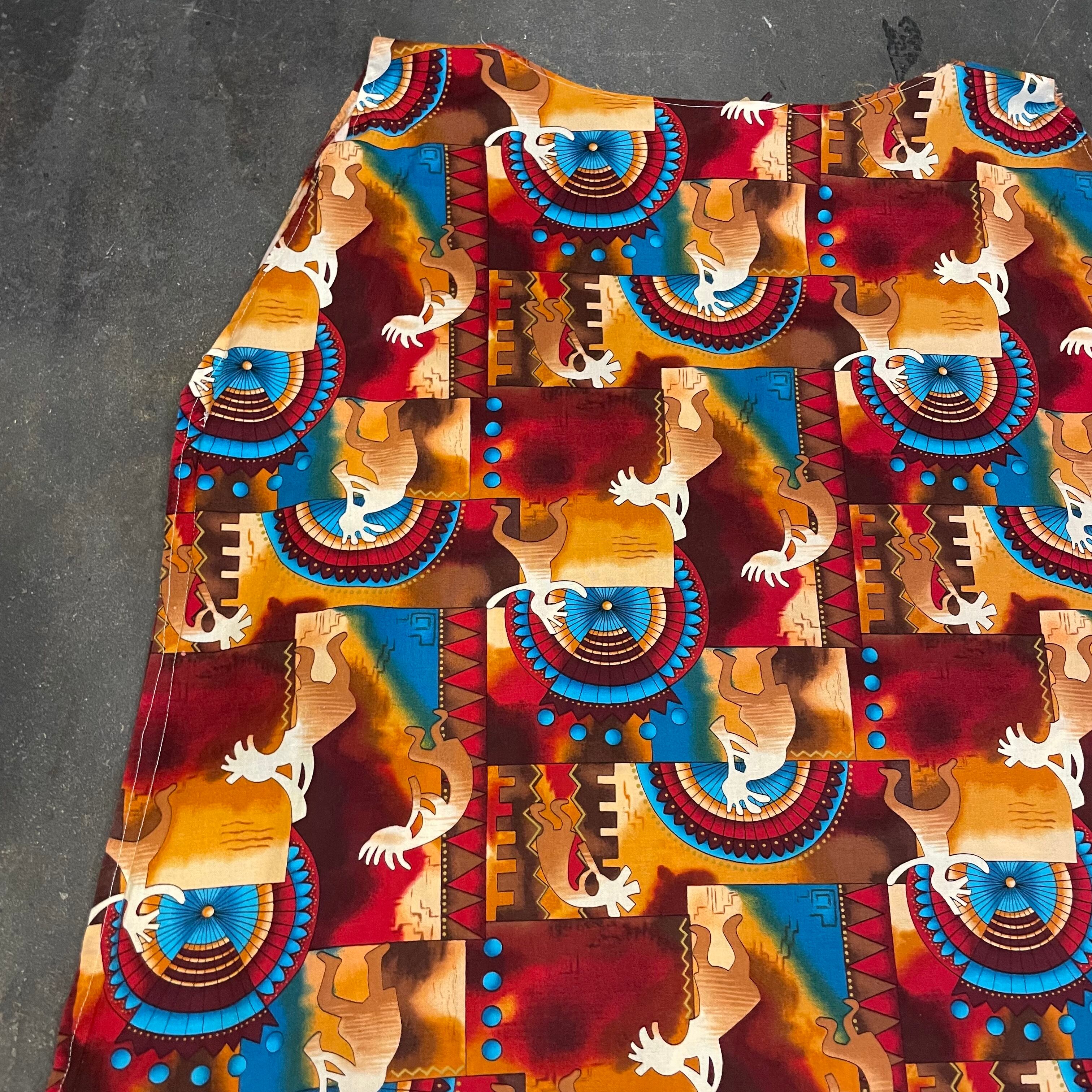 ココペリ、赤土や太陽、ターコイズなどネイティブアメリカンの雰囲気たっぷりな柄がかわいいワンピースです。