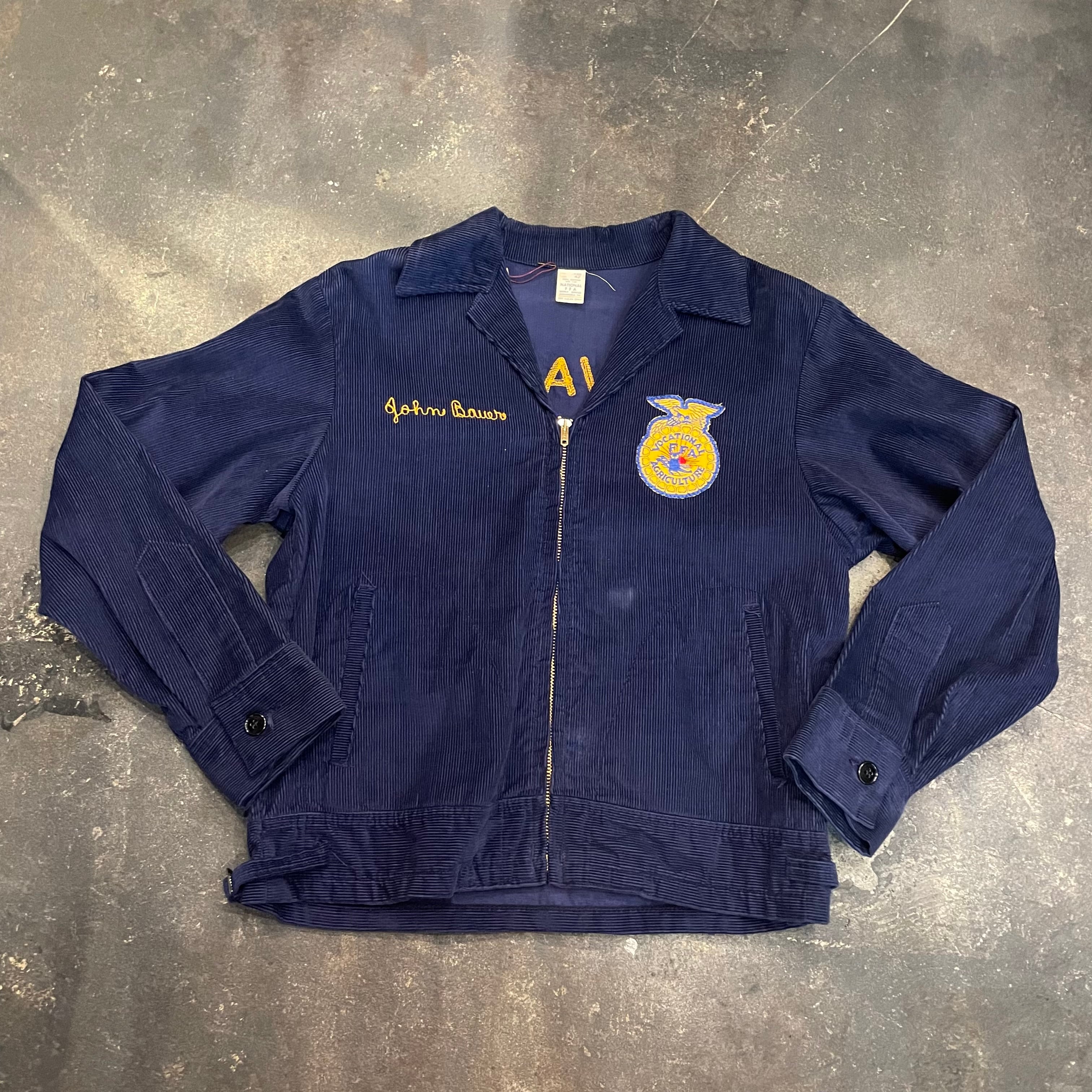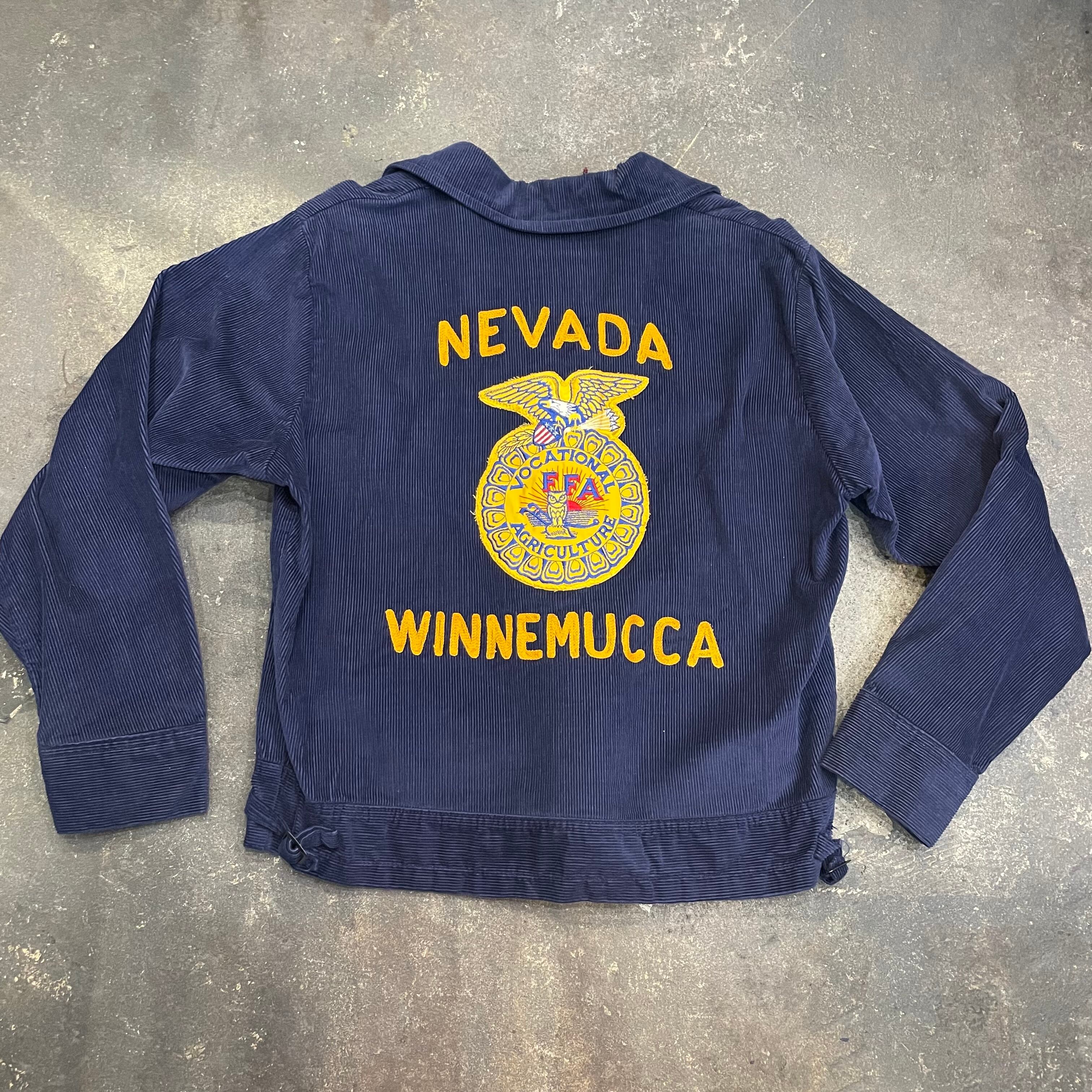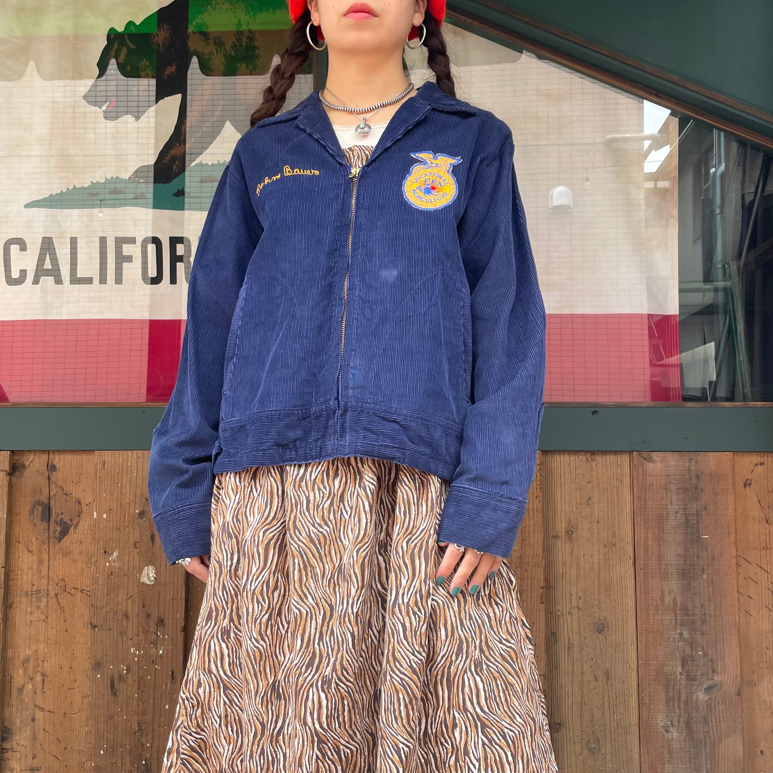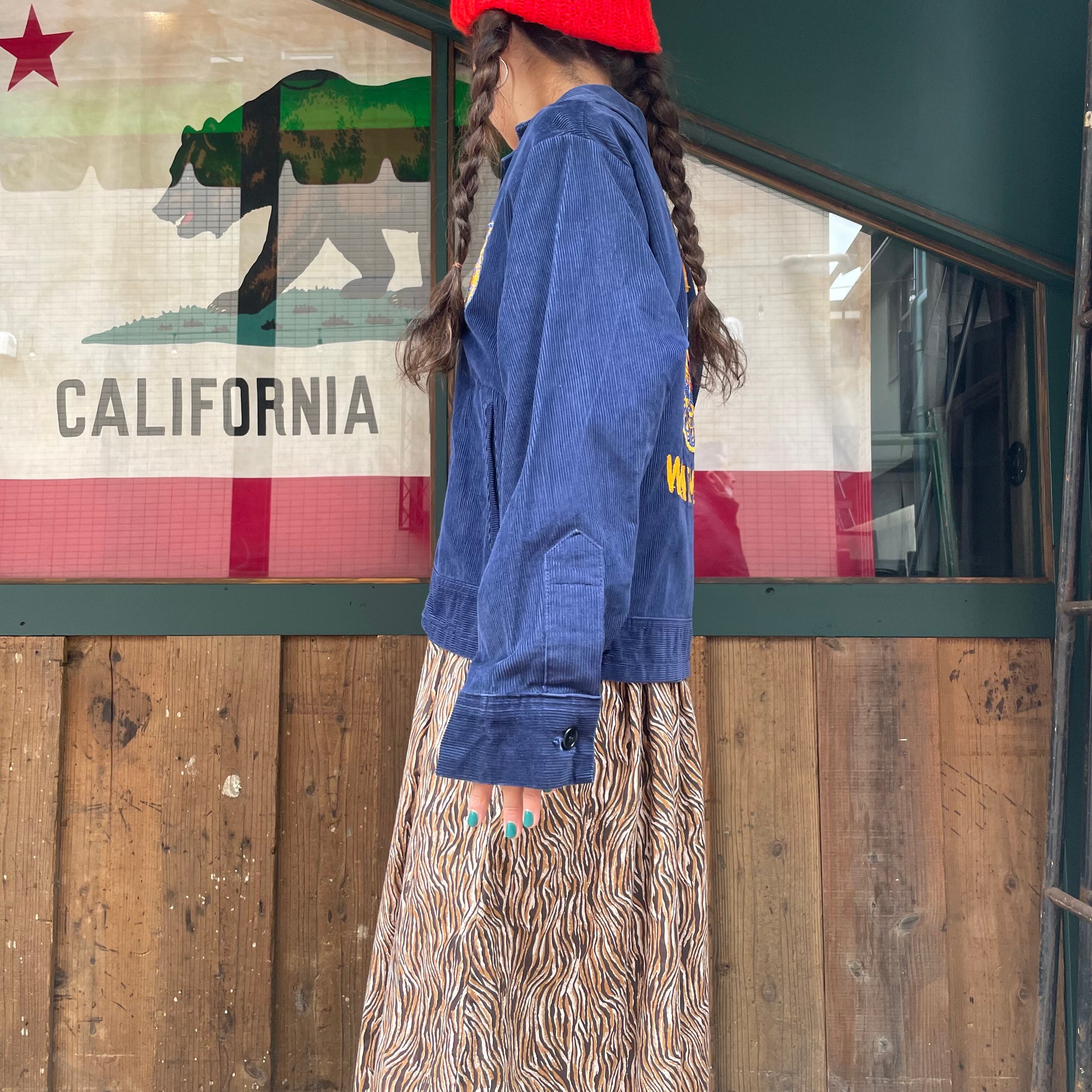 ネイビーのコーデュロイで着丈が短くバランスがとりやすいため、デニムジャケットの感覚で着て頂けます。