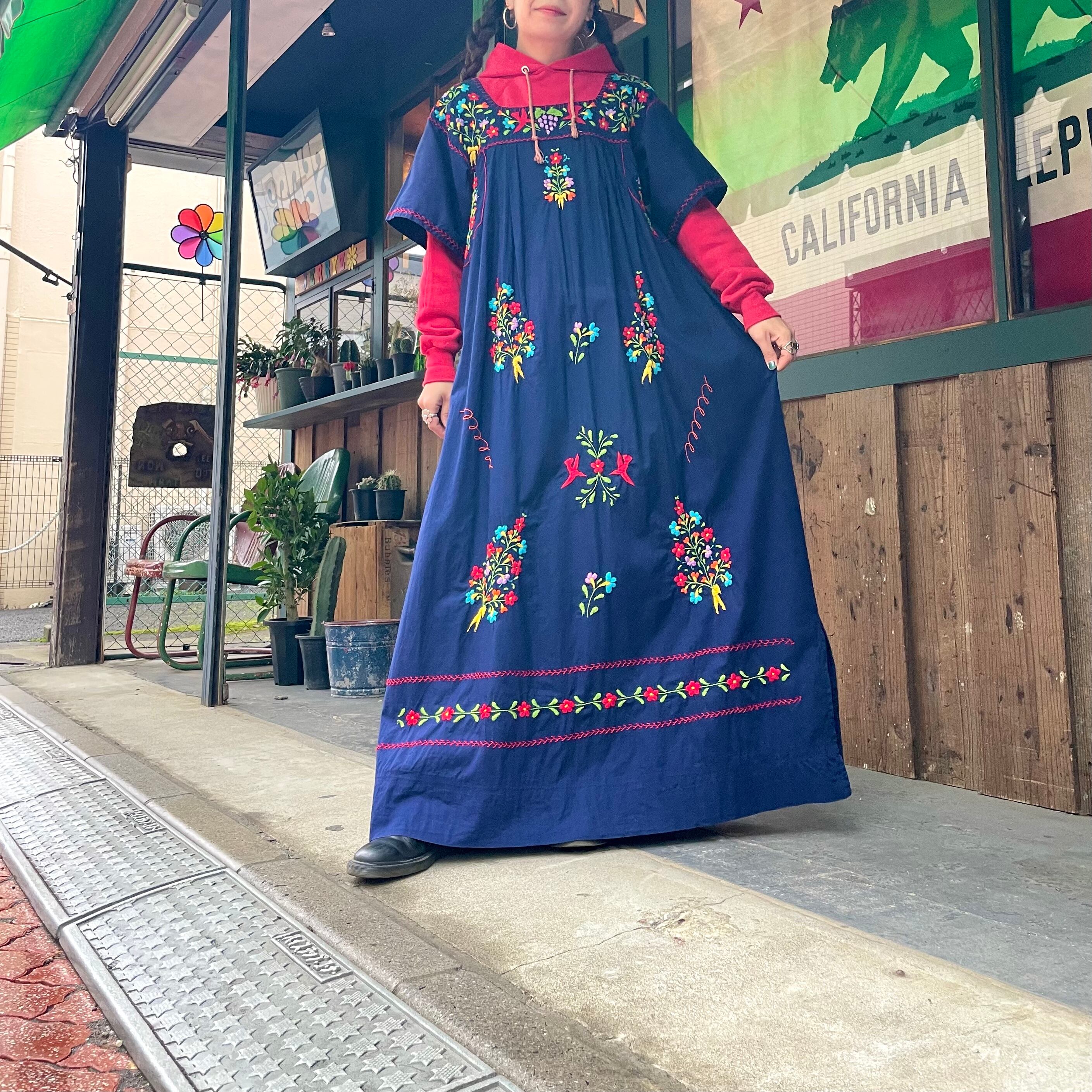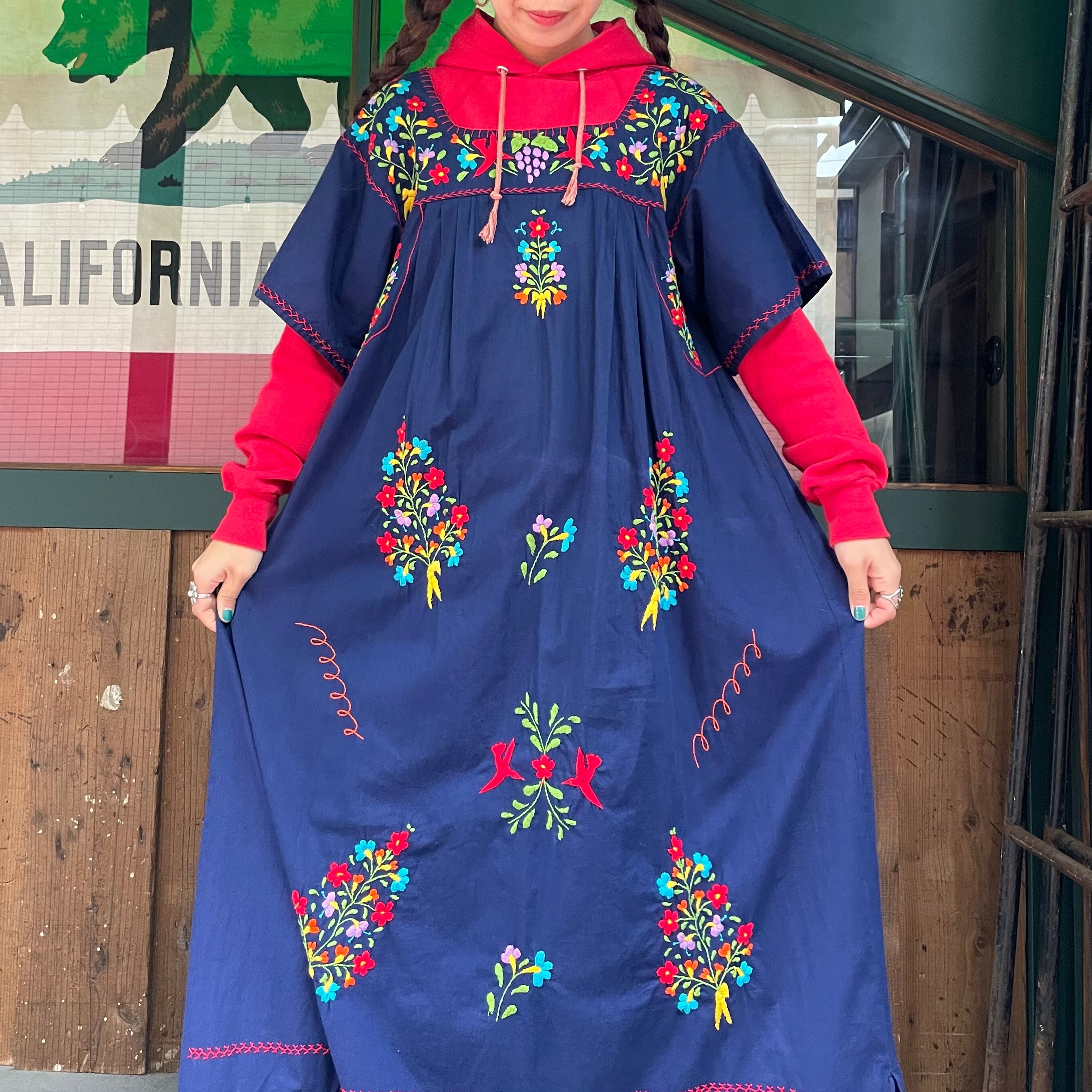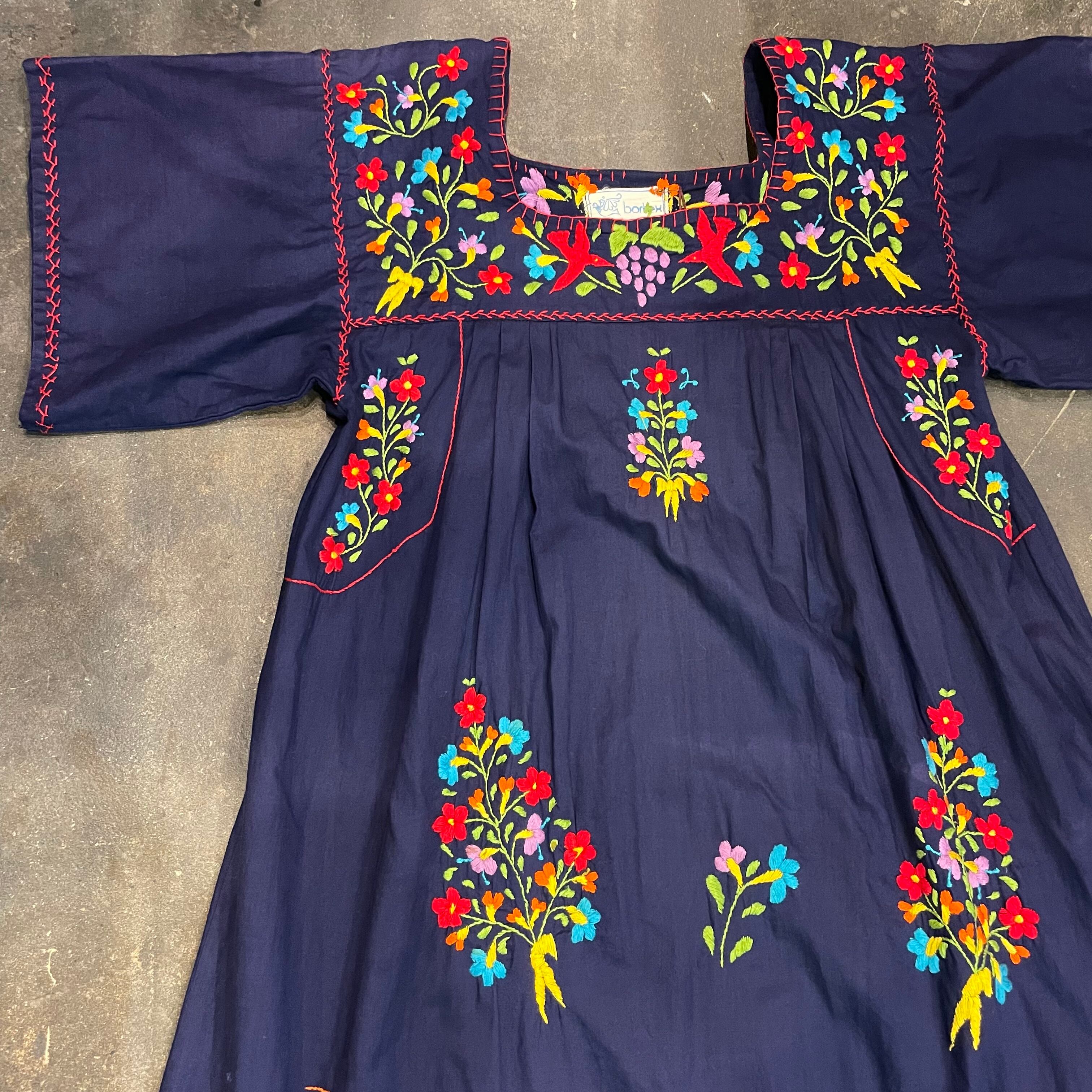お花や小鳥の手刺繍がとてもかわいいメキシカンワンピースです。
