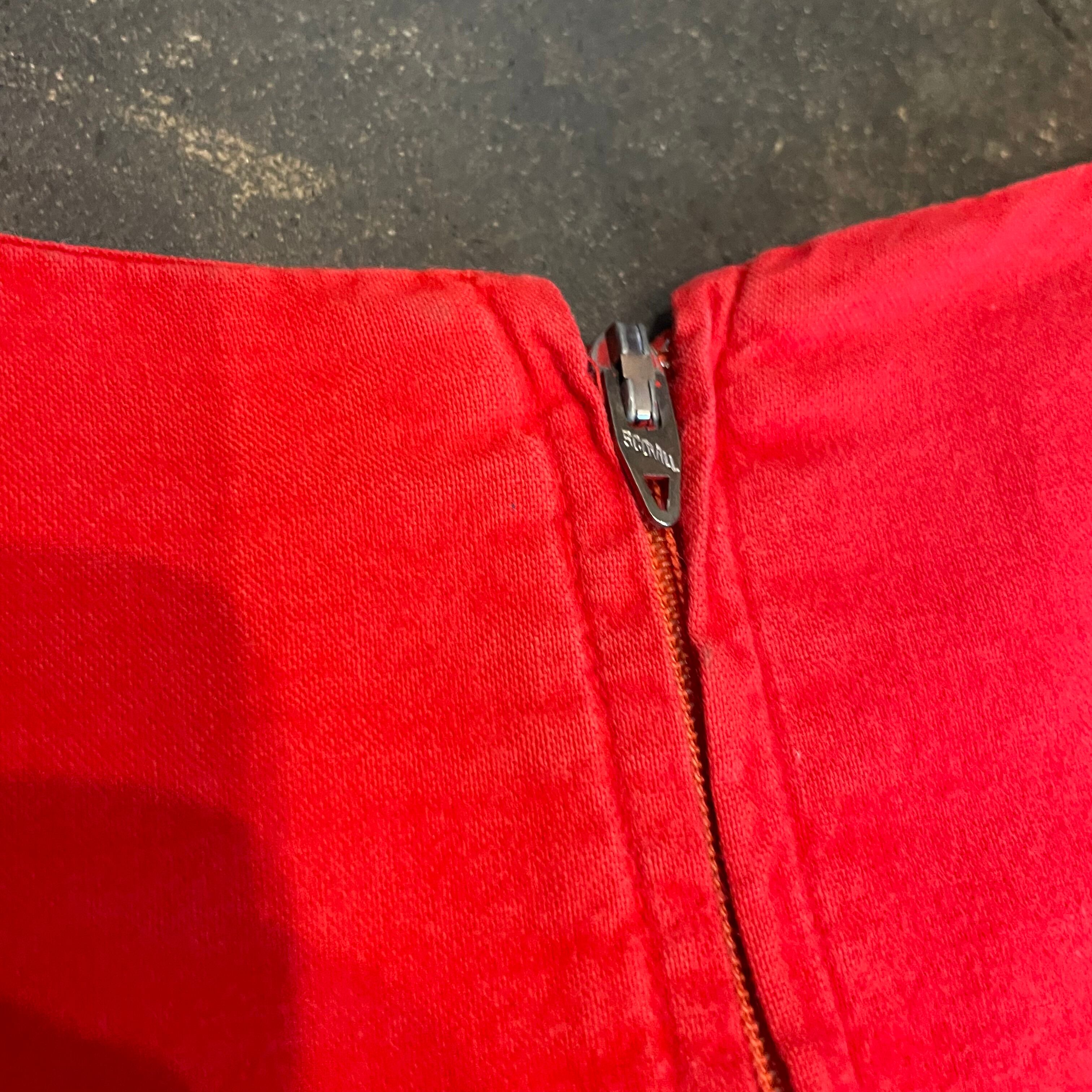 襟ぐりの角にキズリペア、裾に擦れやシミや小さいキズ、全体的な色褪せや軽い毛羽立ち等かなり使用感のある商品ですので古着にご理解のある方のご購入をお願い致します。