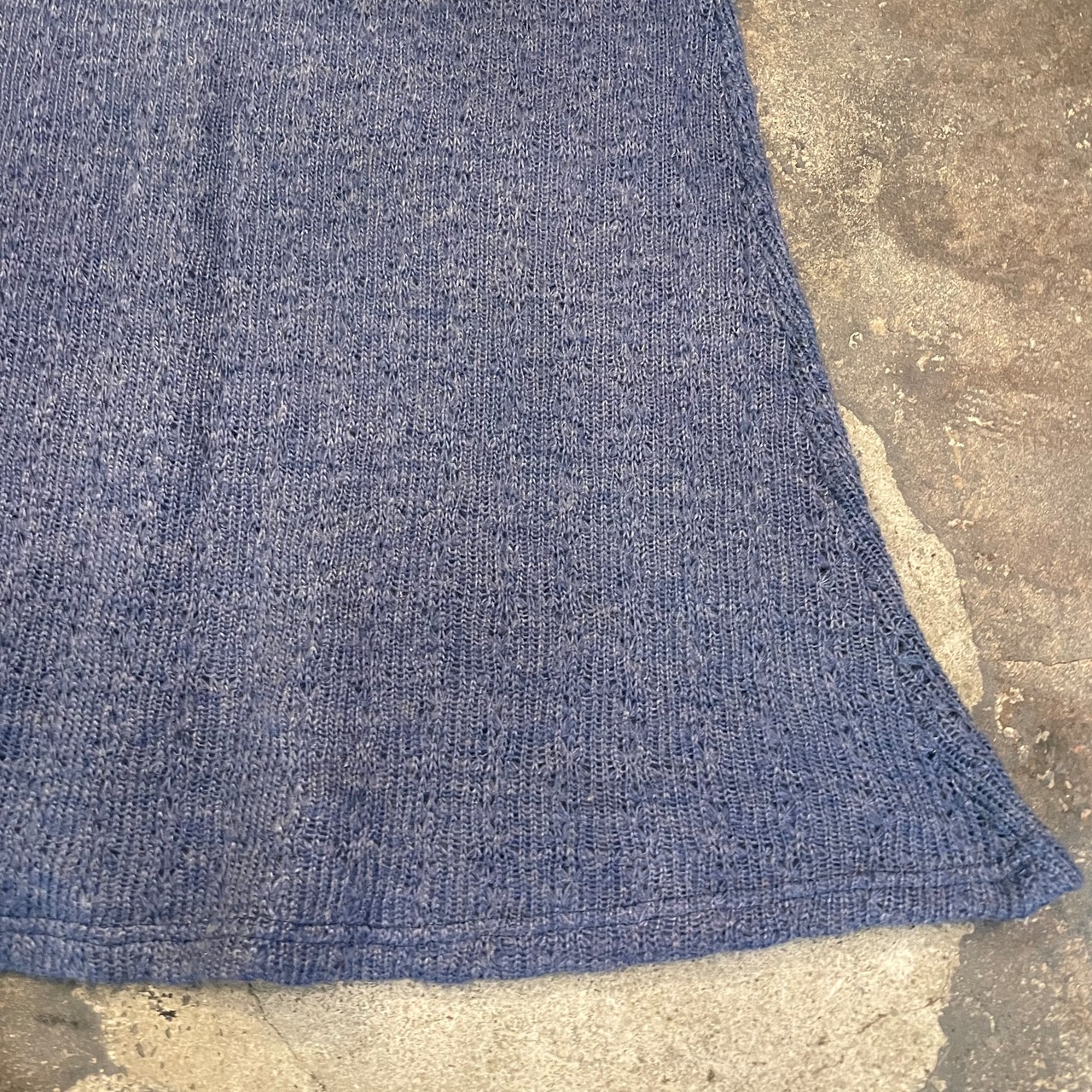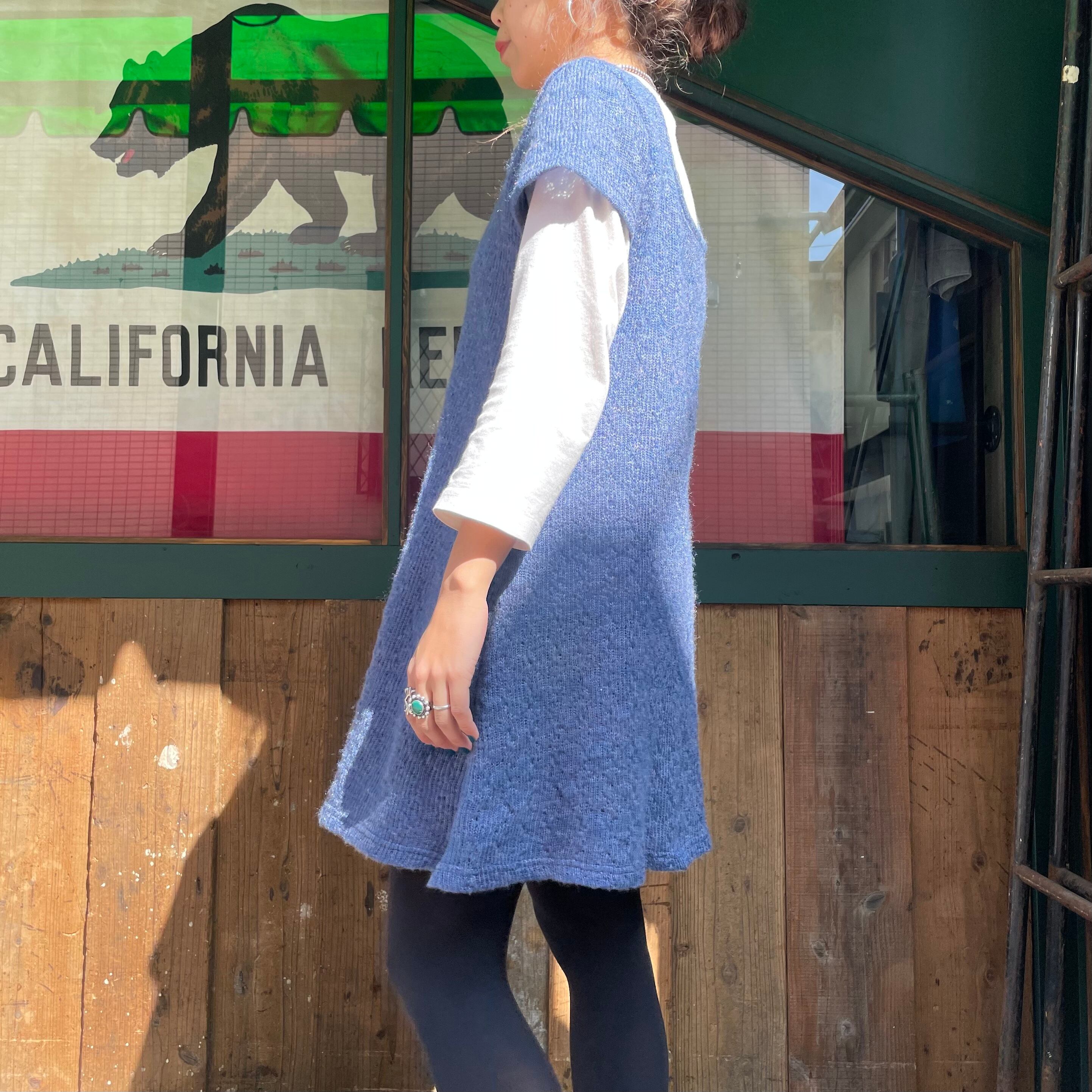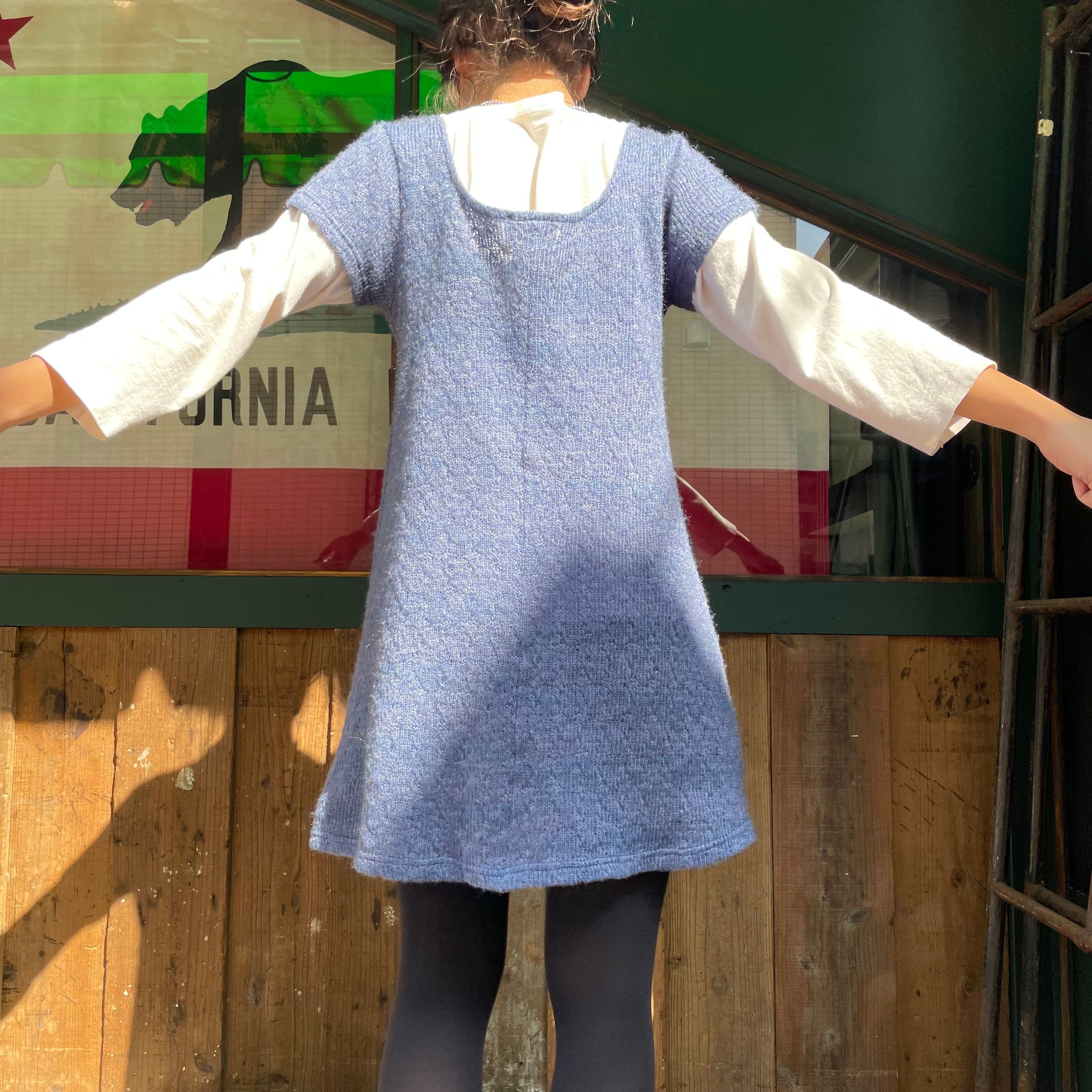 くすんだ青のニットワンピースです。