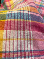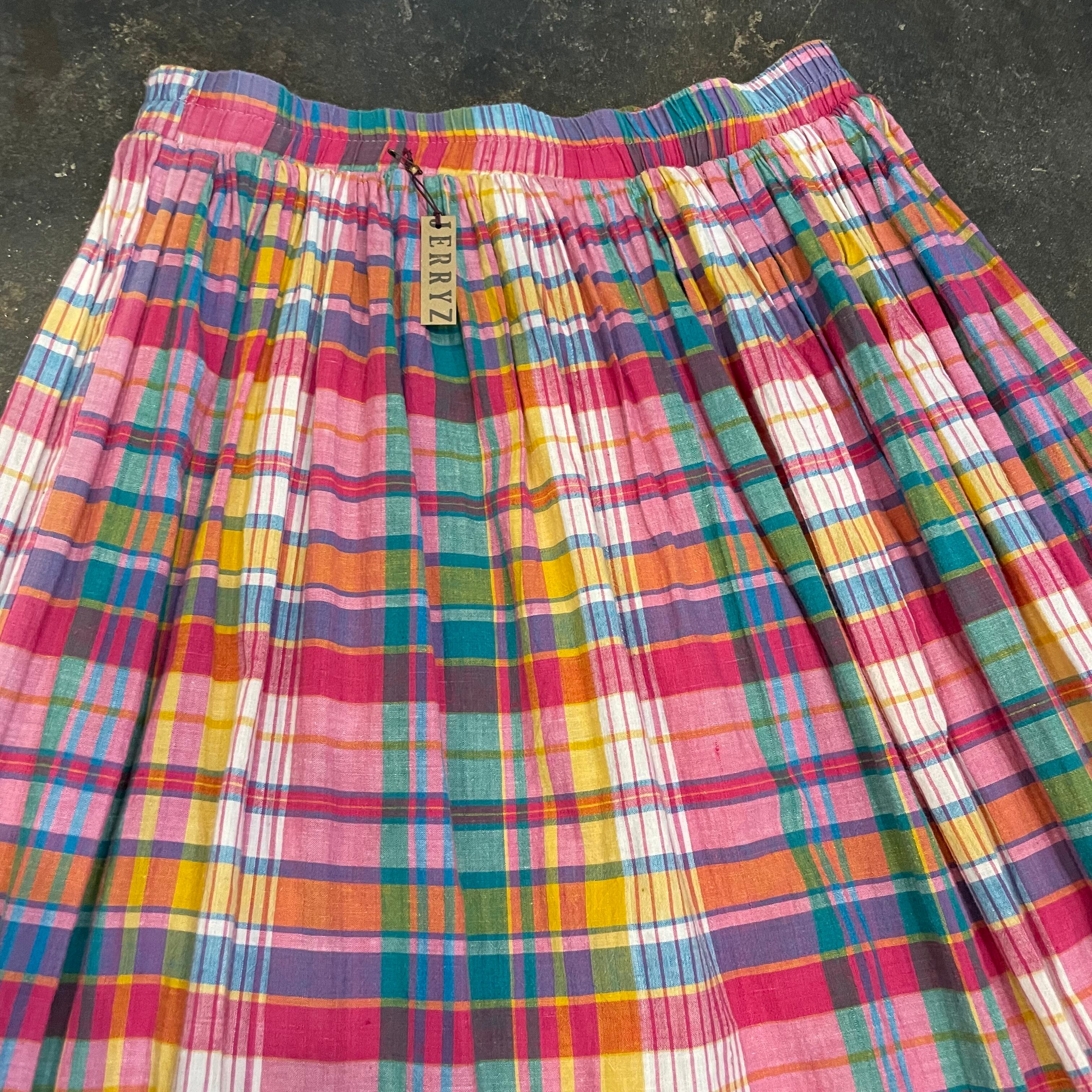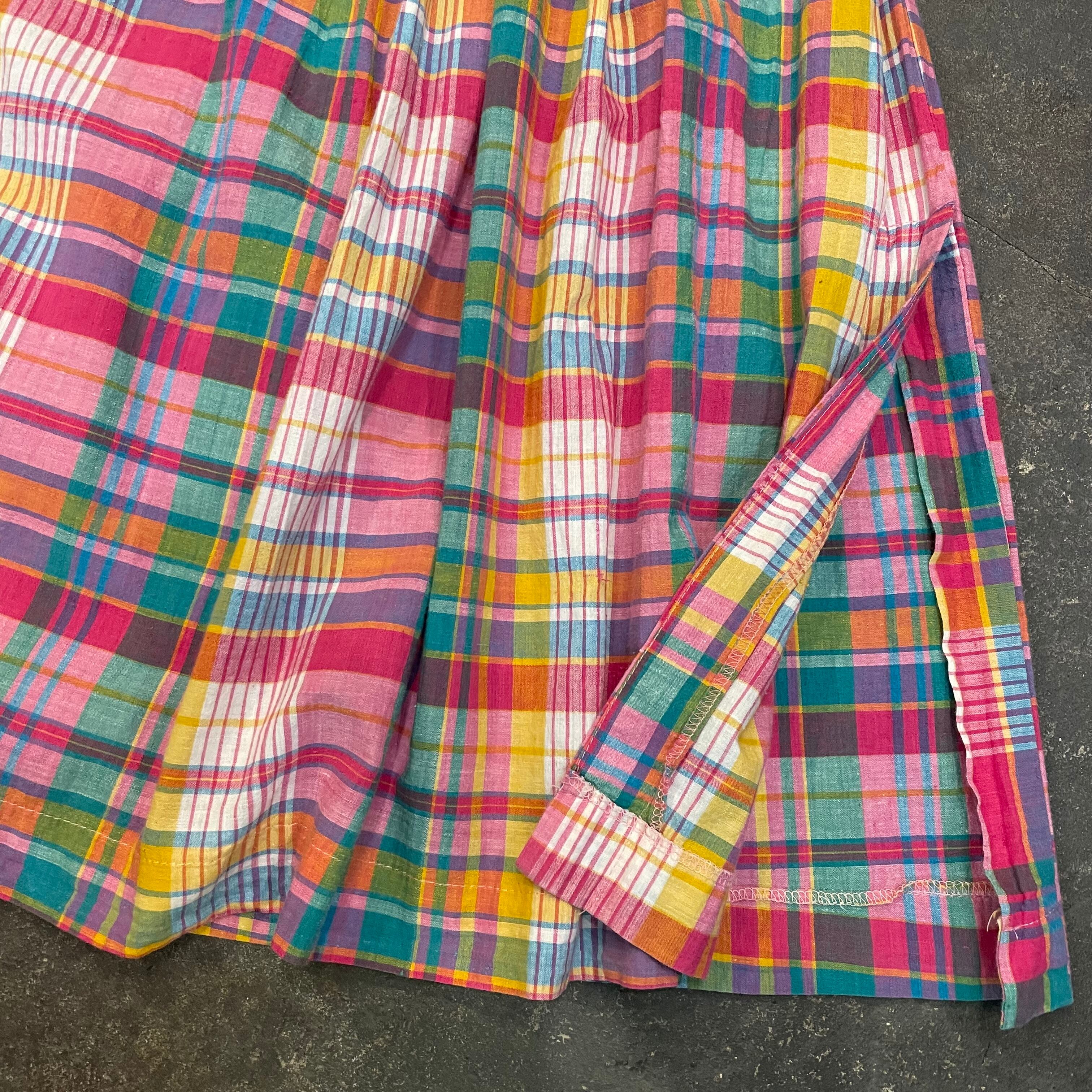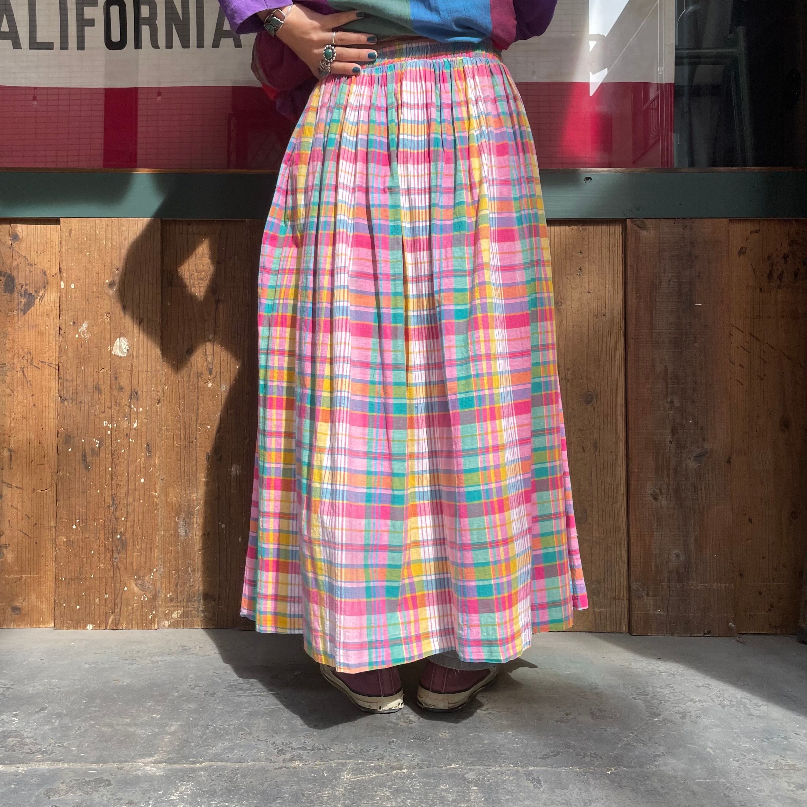 ピンクを基調とした春らしい色合いのチェック柄がかわいいロングスカートです。