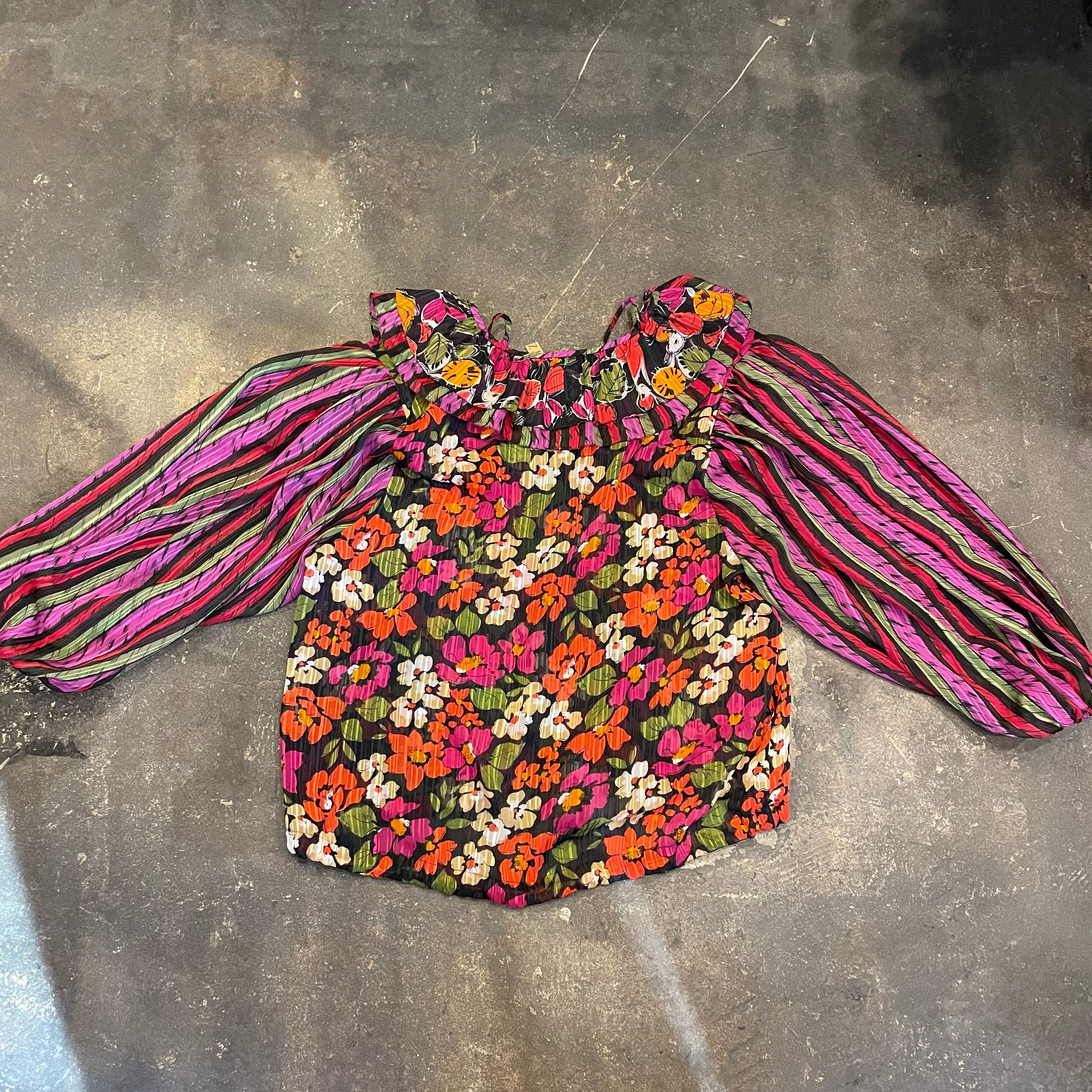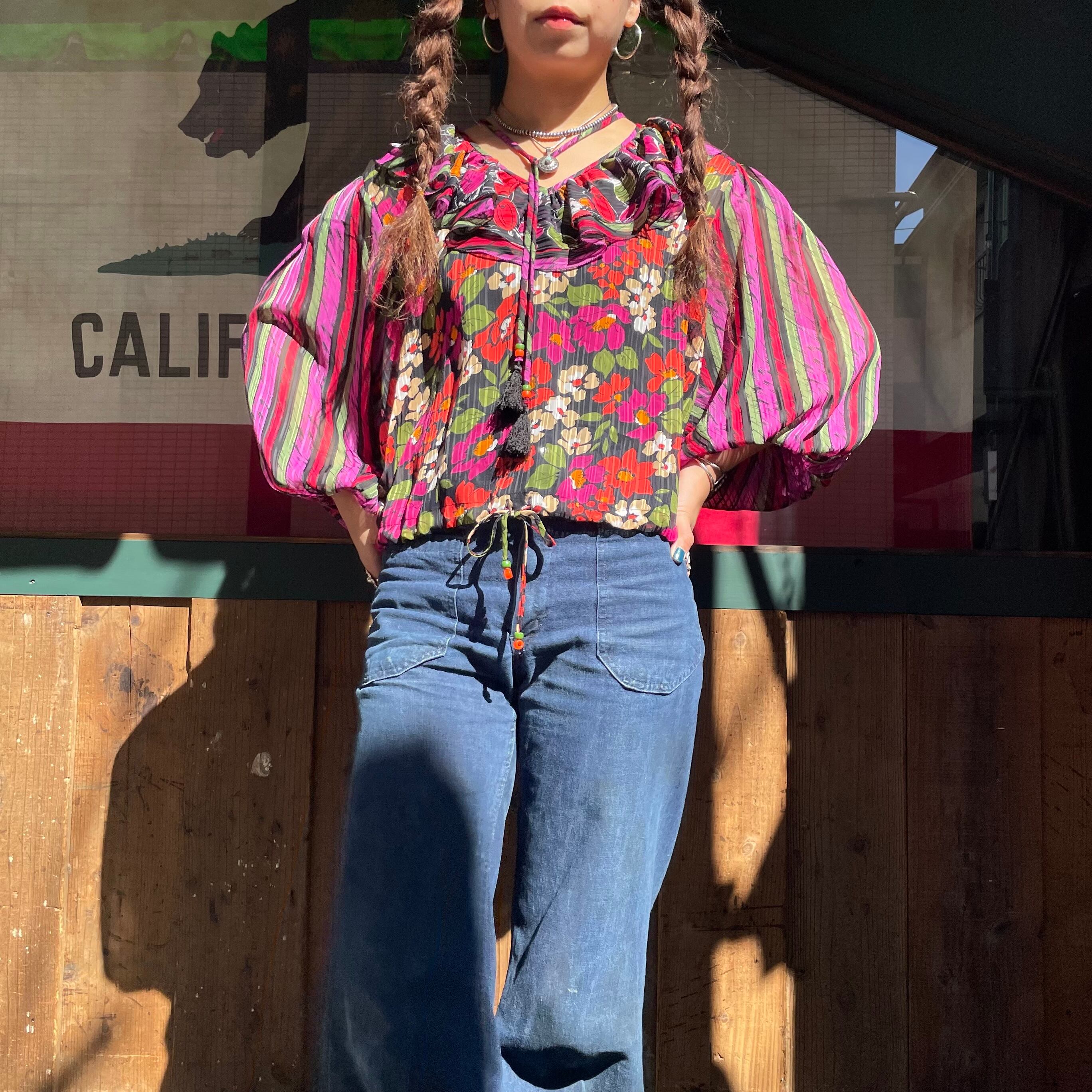 シースルーなお花とストライプの切り替えがとてもかわいい一枚です。