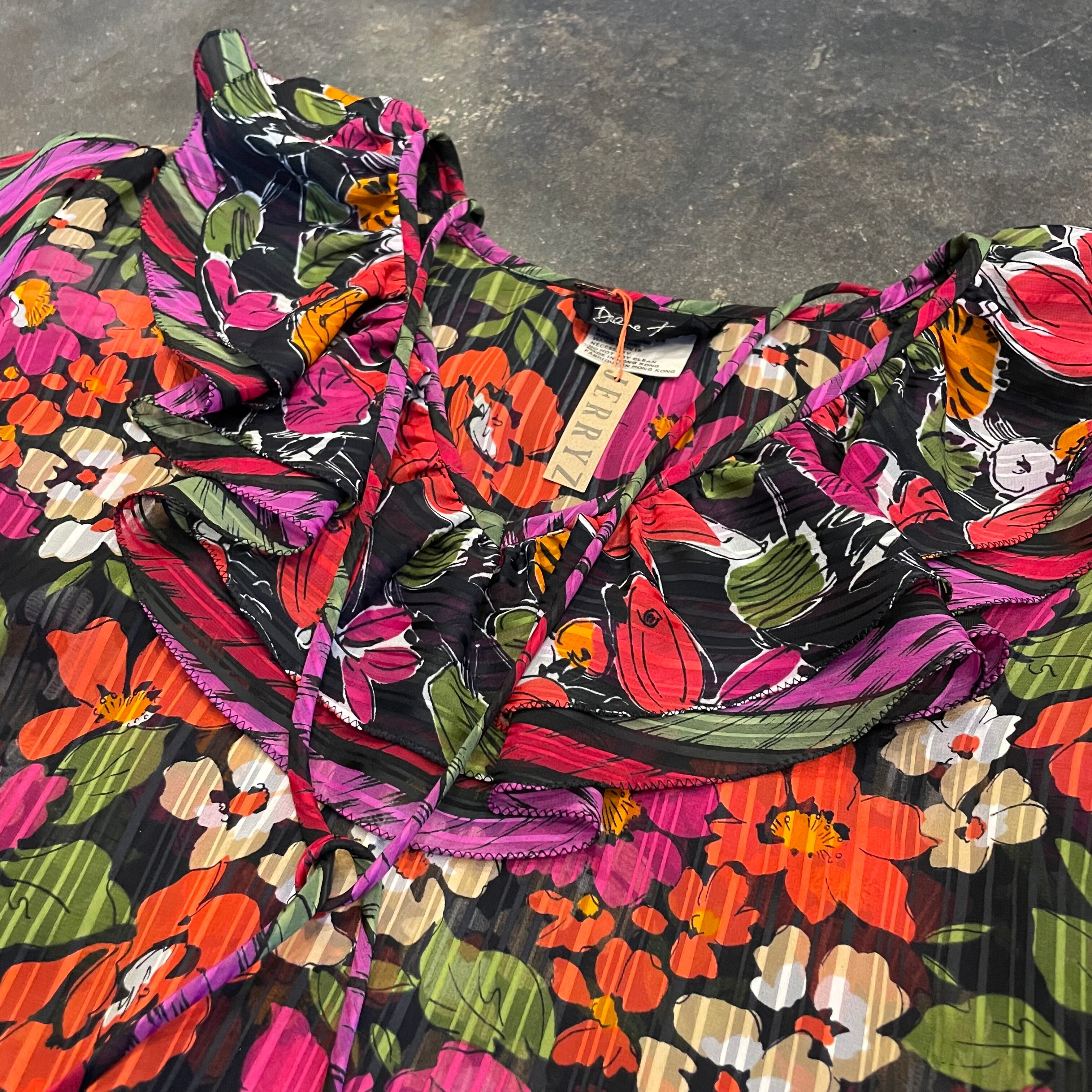 襟ぐりはVネックで2段のフリルになっており、タッセルのついたリボンも付いてダイアンらしいディテールです。