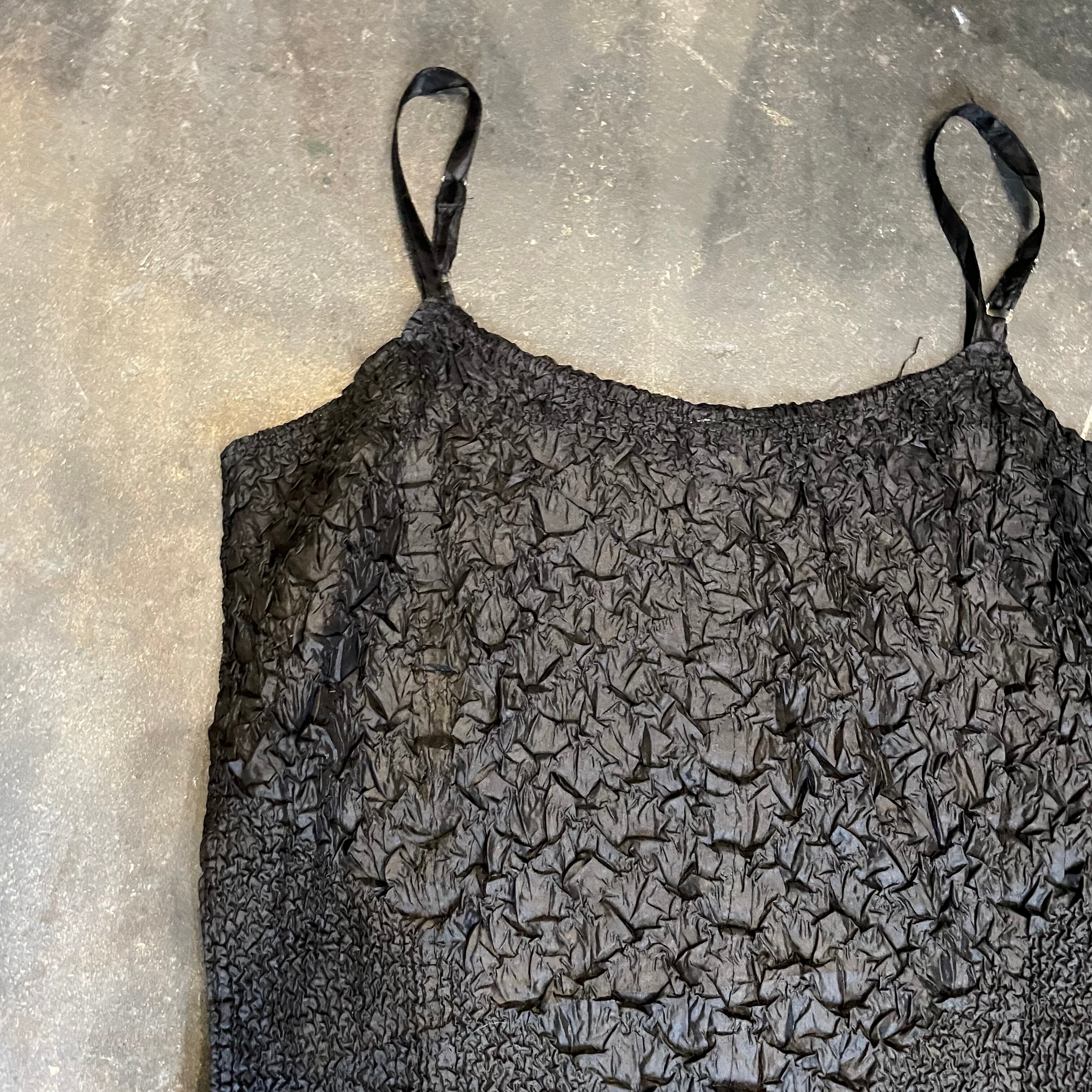 ポップコーン素材のような伸縮性のあるくしゅくしゅ加工が施してある薄手で軽いキャミソールワンピースです。