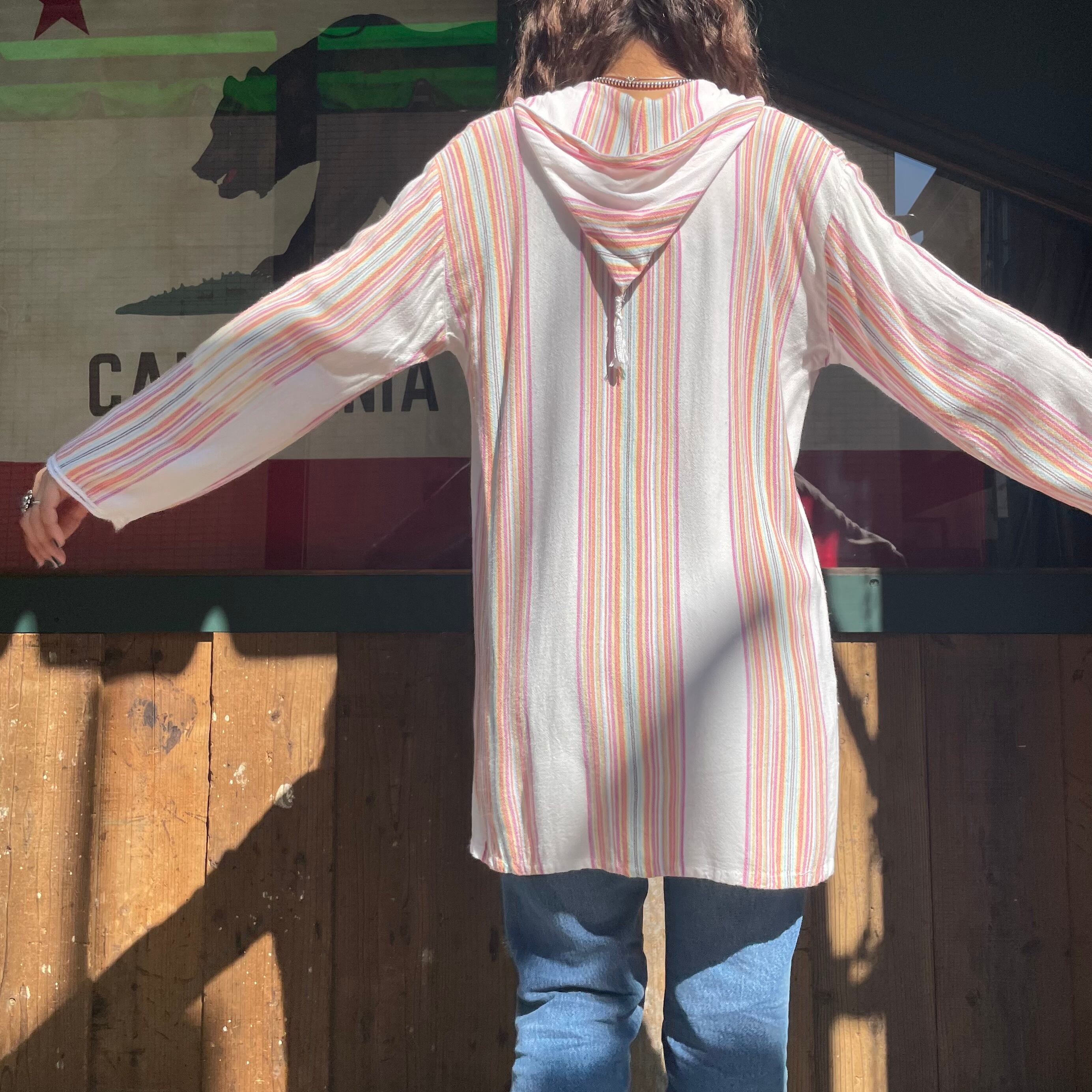 お尻がすっぽり隠れるミニワンピース程の丈感で、フードも付いていてフードの先っちょに小さいタッセルまでお茶目でかわいいです。