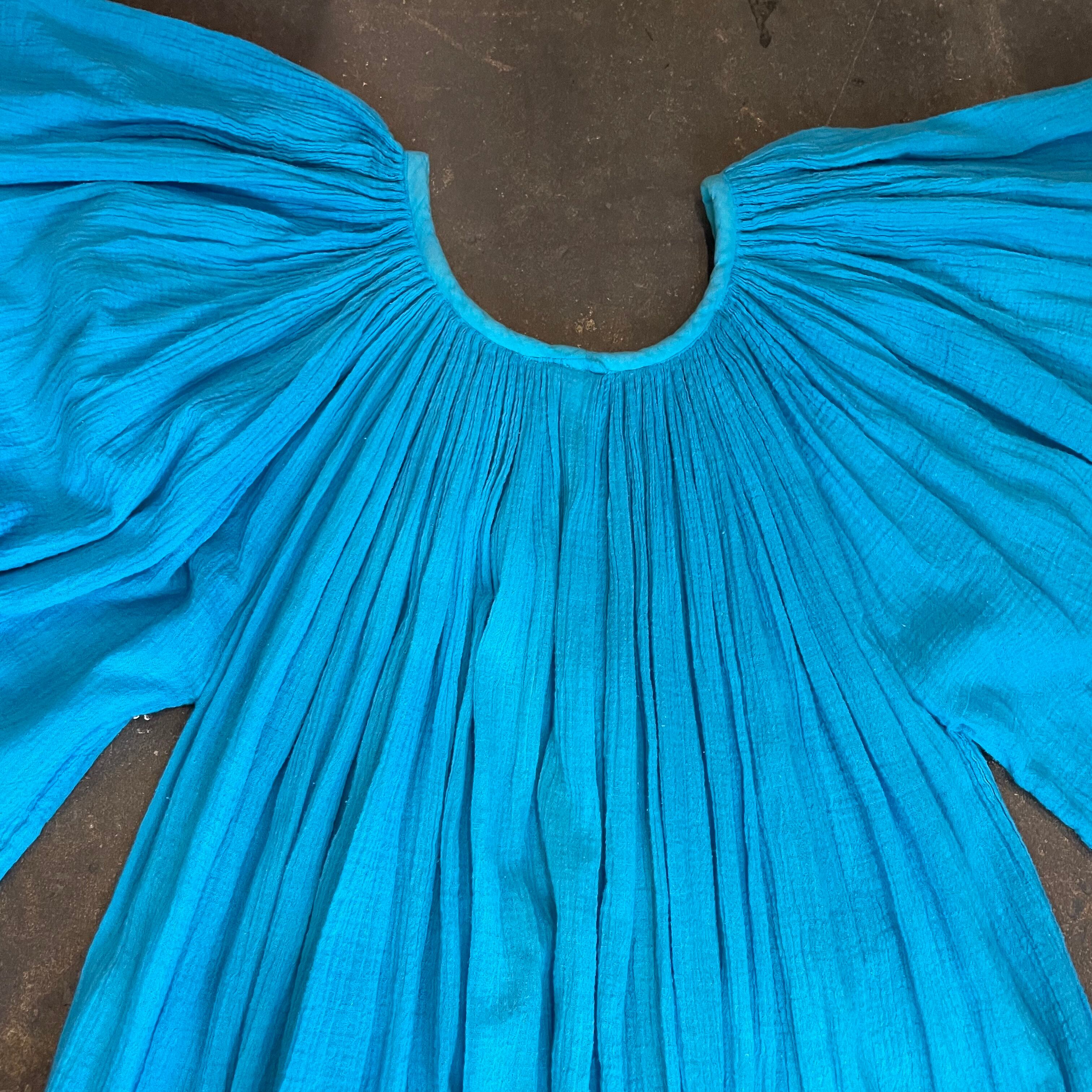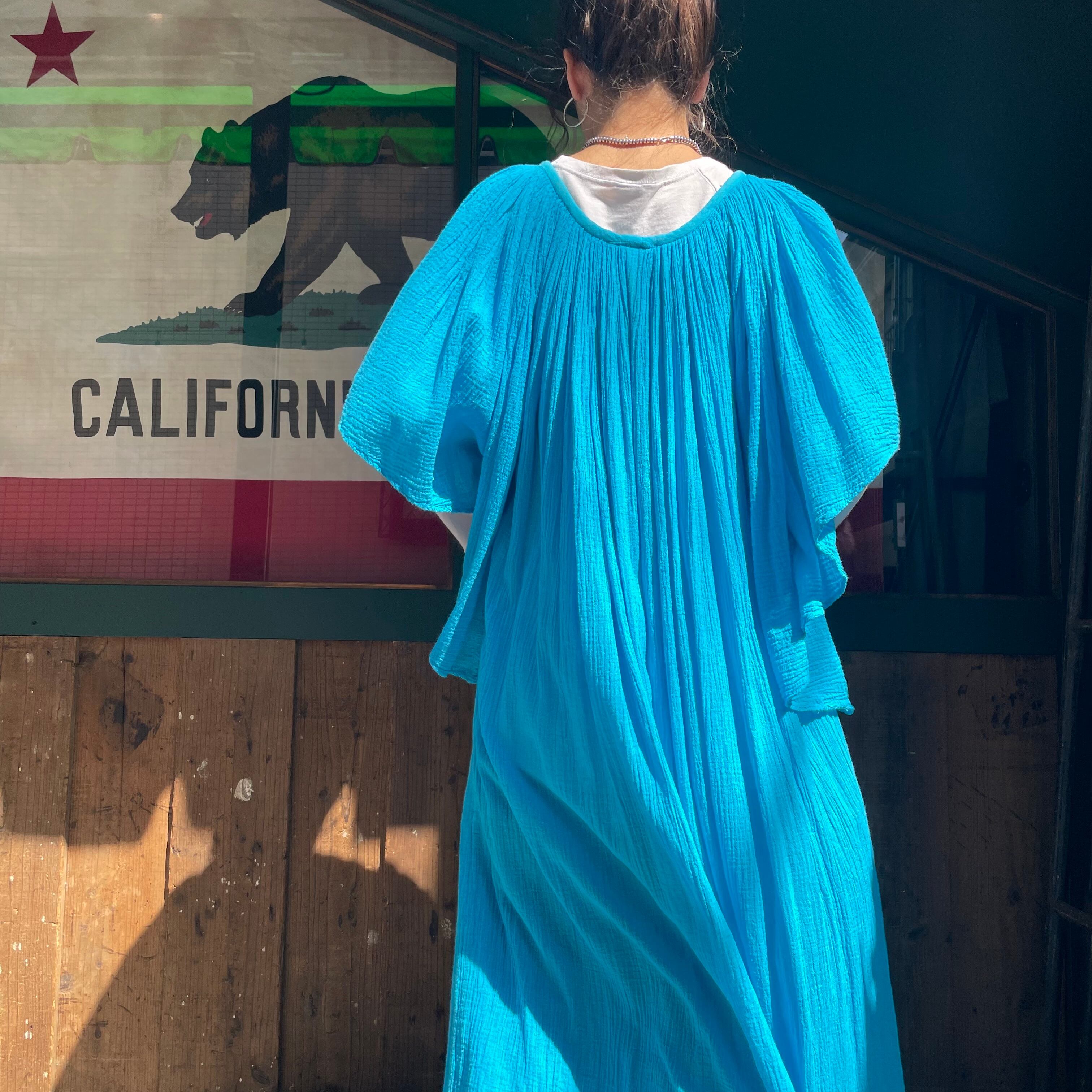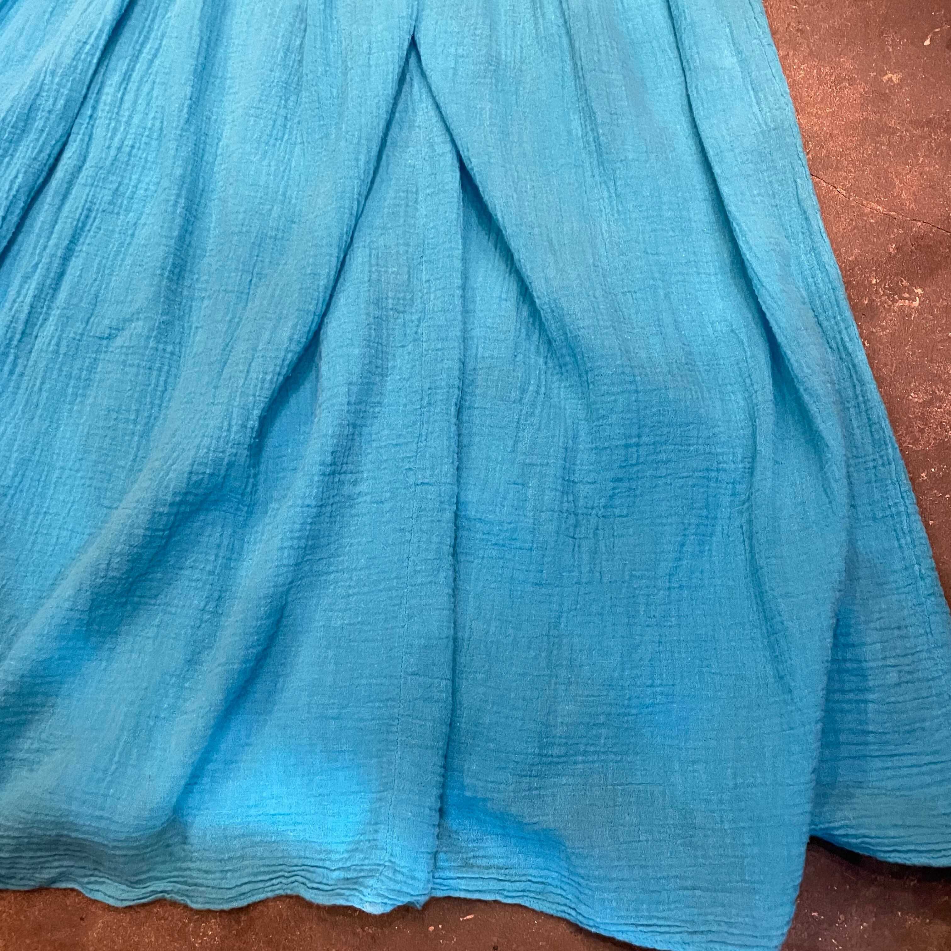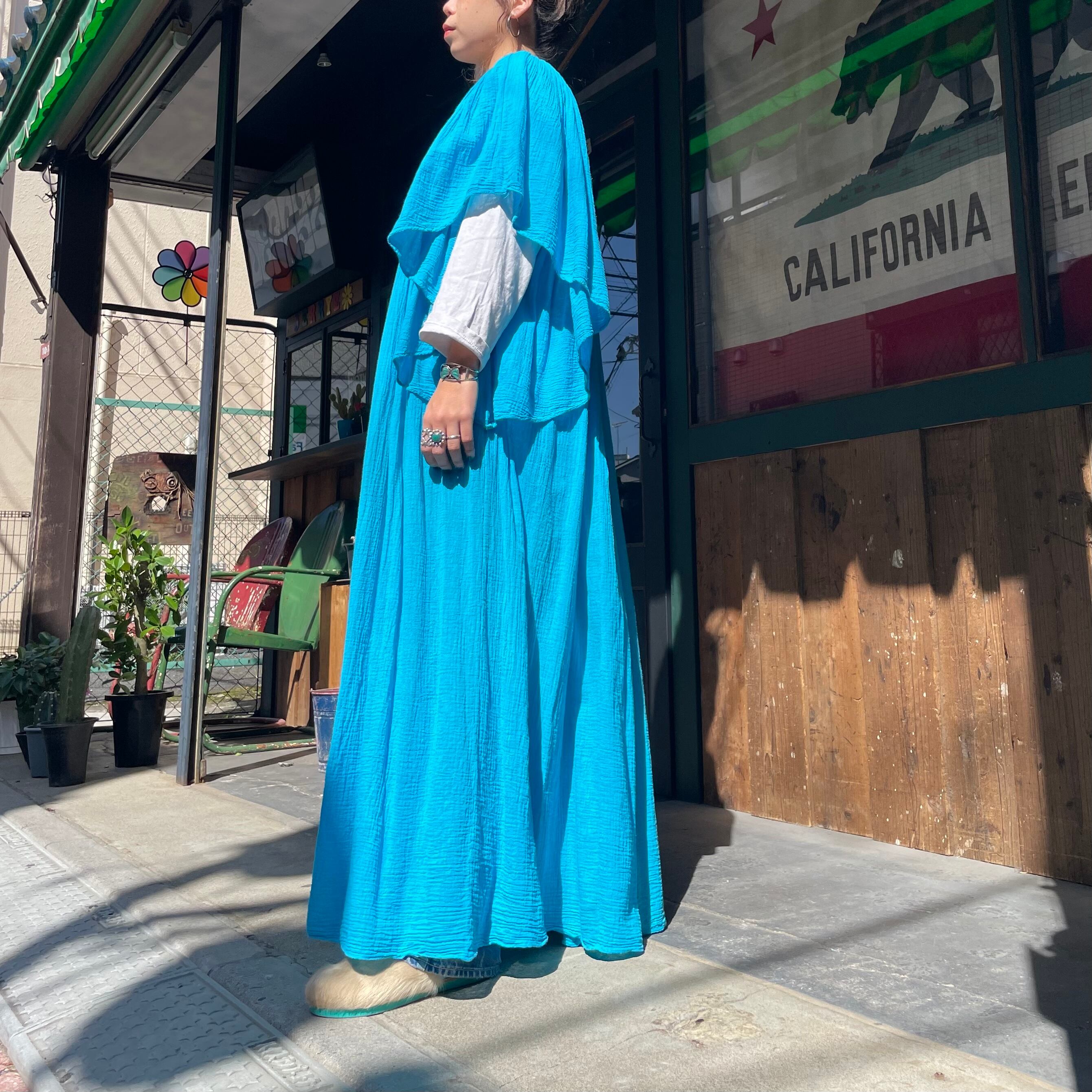 綺麗な水色のコットンガーゼのようなふわっと軽くてボリューミーなシルエットが素敵なワンピースです。