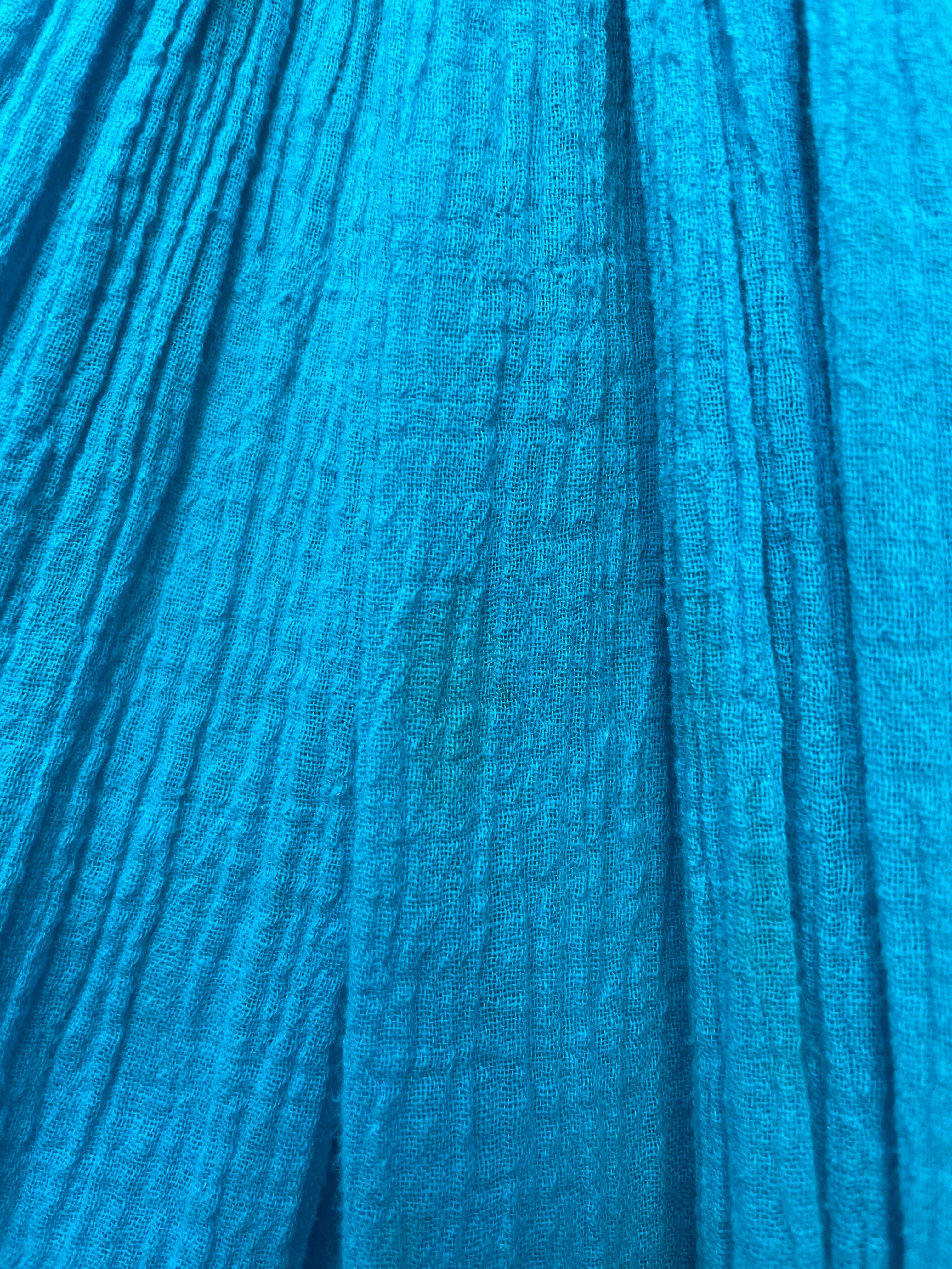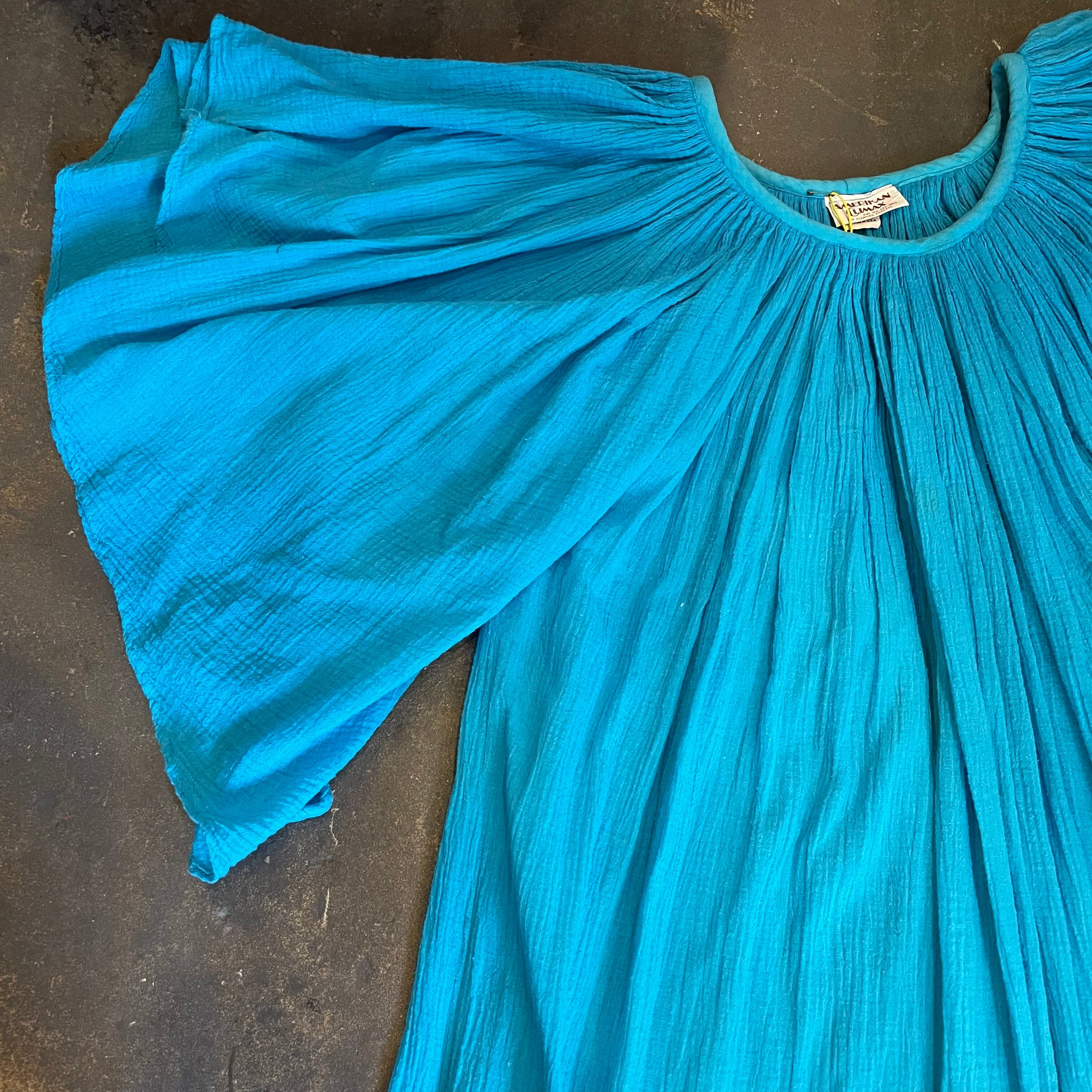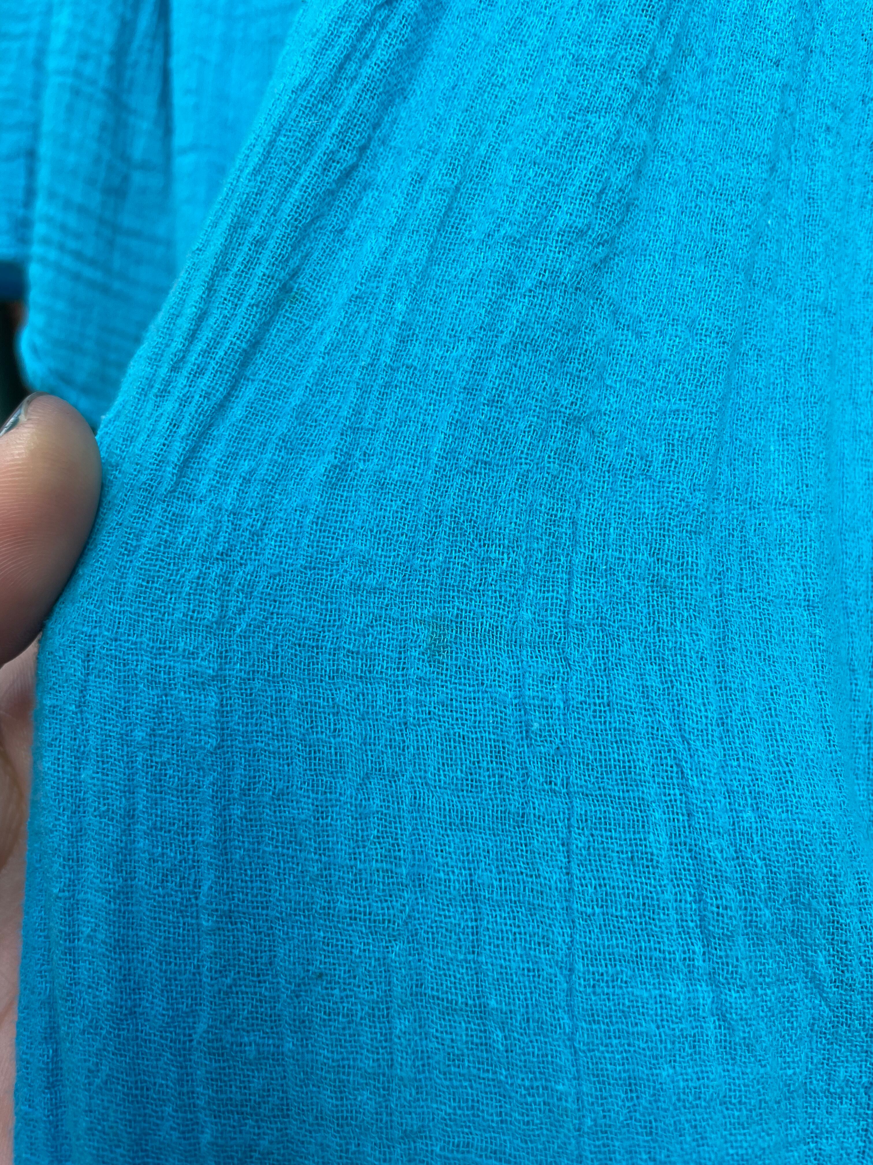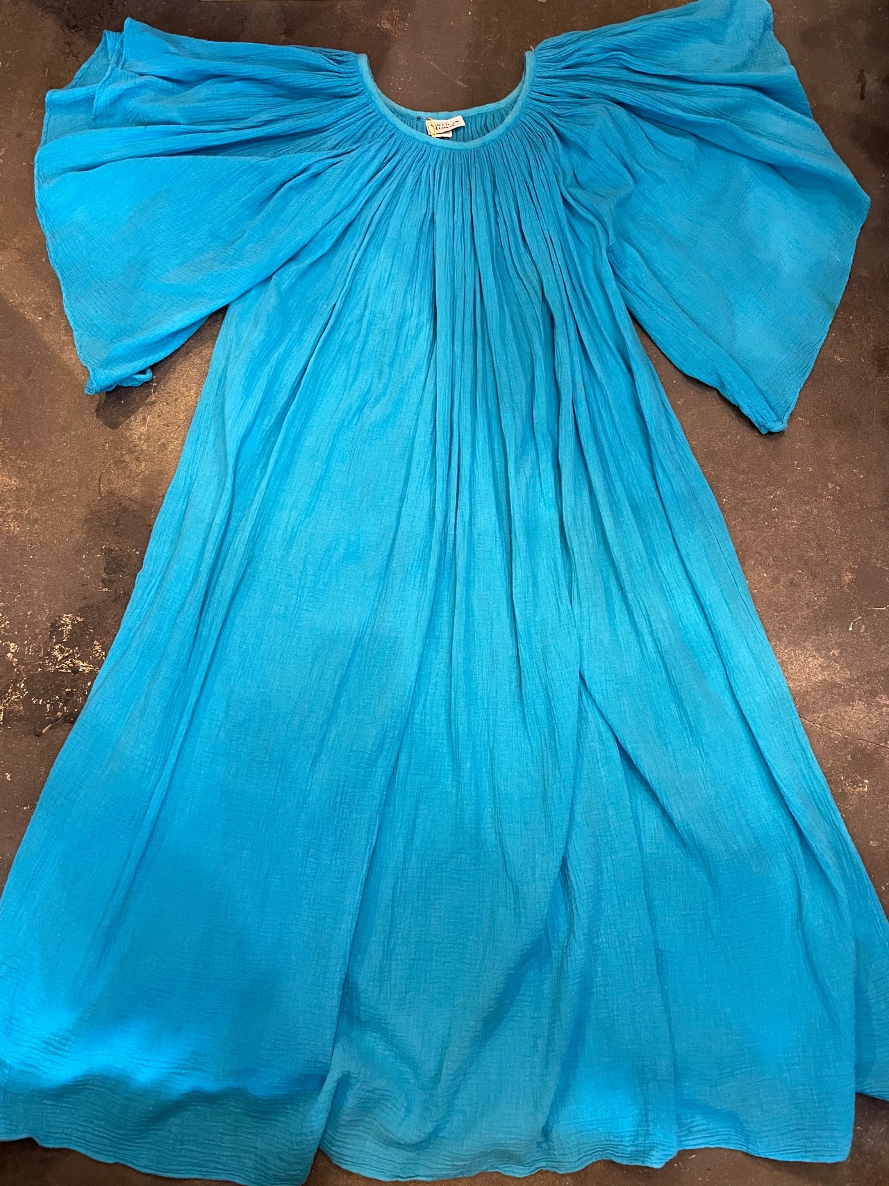 綺麗な水色のコットンガーゼのようなふわっと軽くてボリューミーなシルエットが素敵なワンピースです。