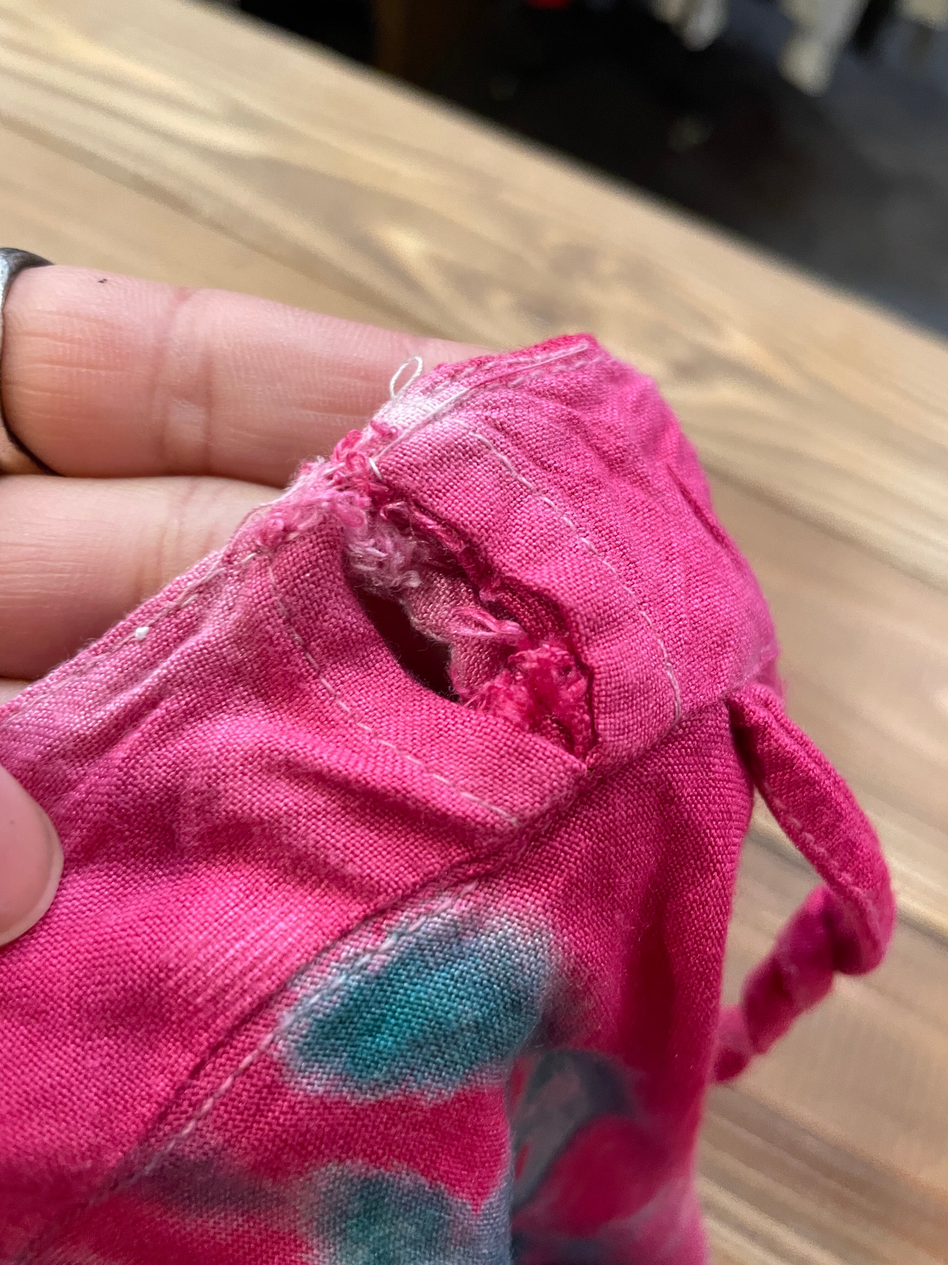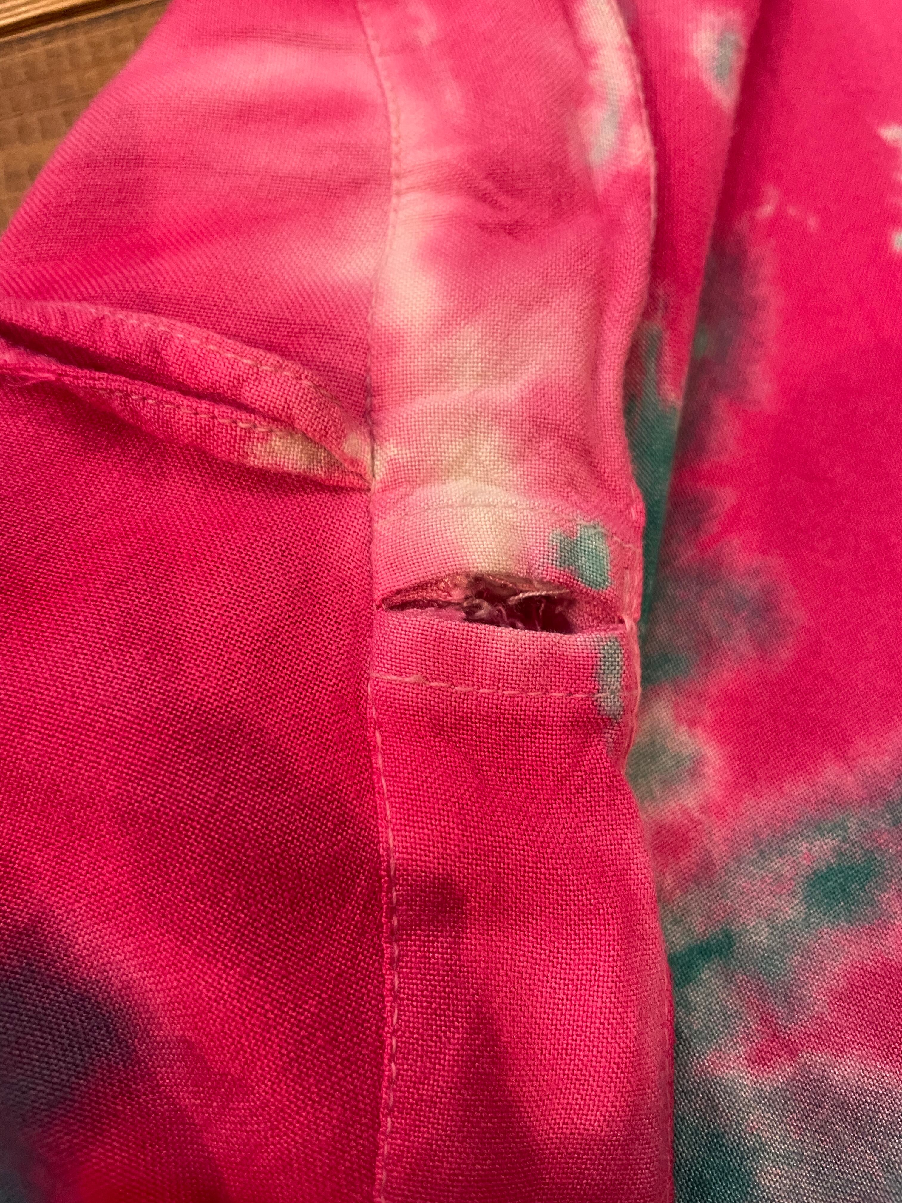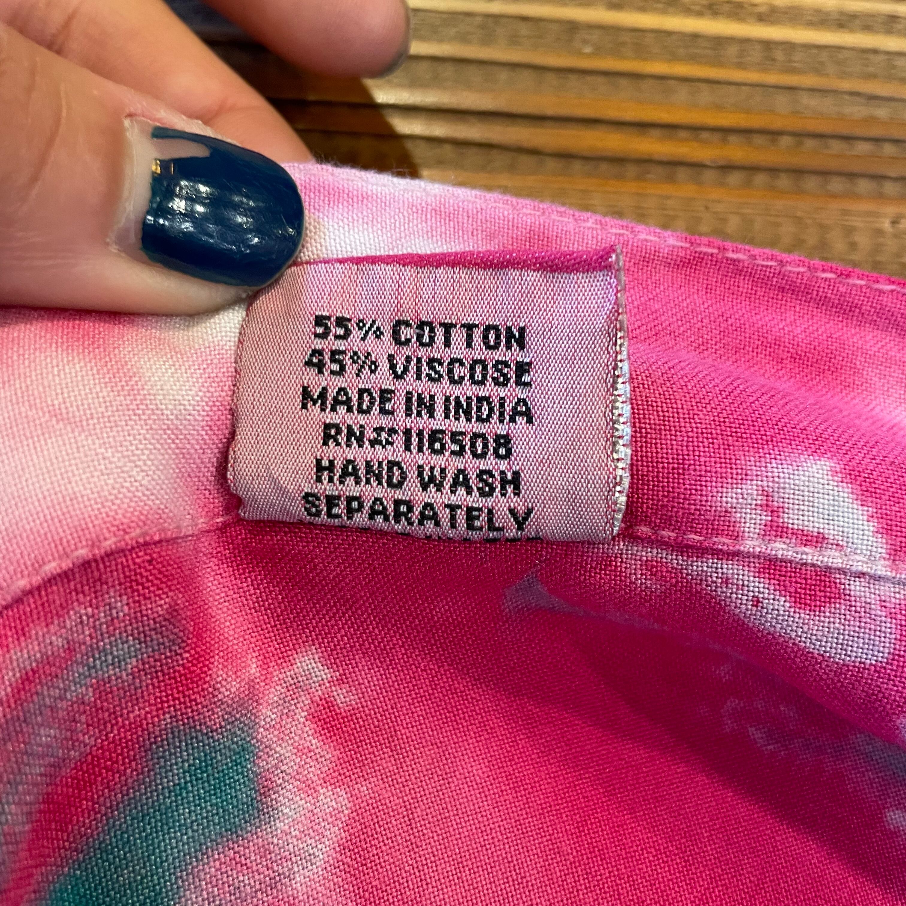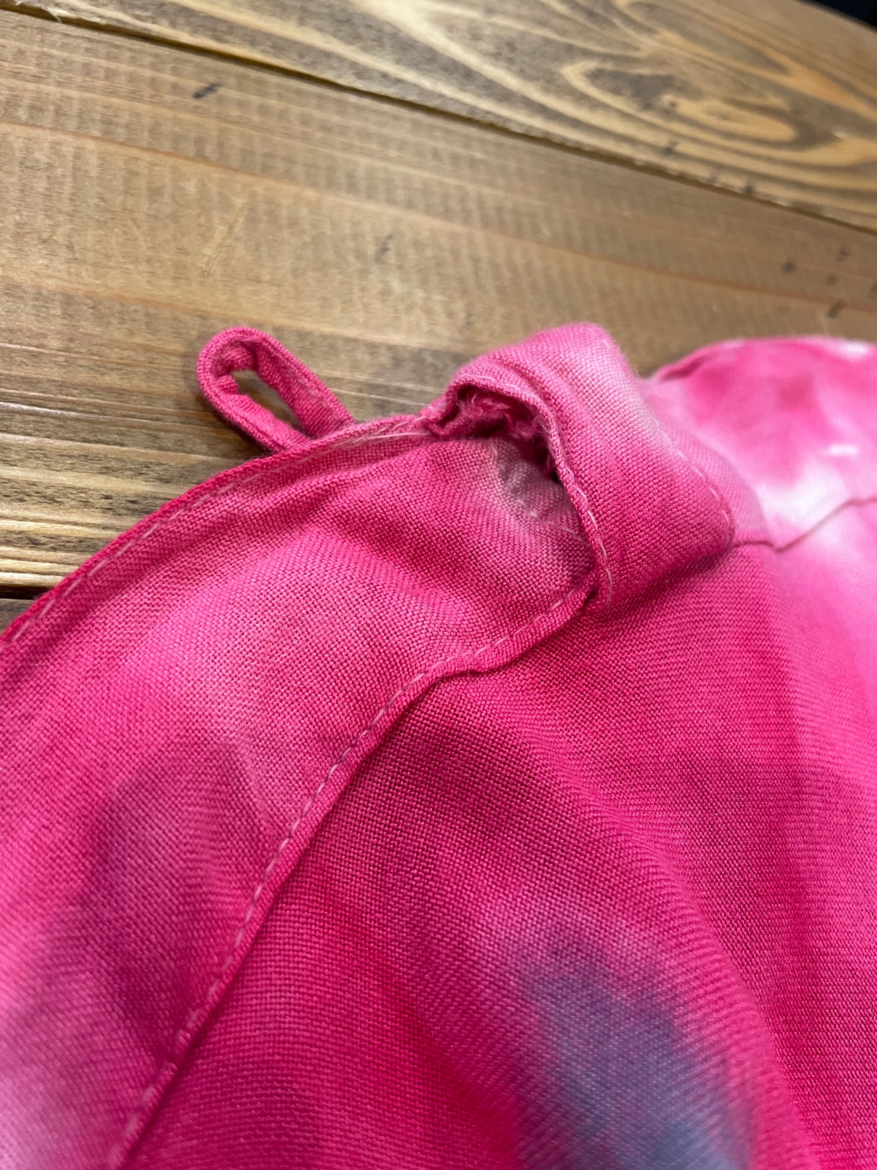 ピンク緑むらさきの色味と太陽のような模様がとてもかわいいタイダイの巻きスカートです。