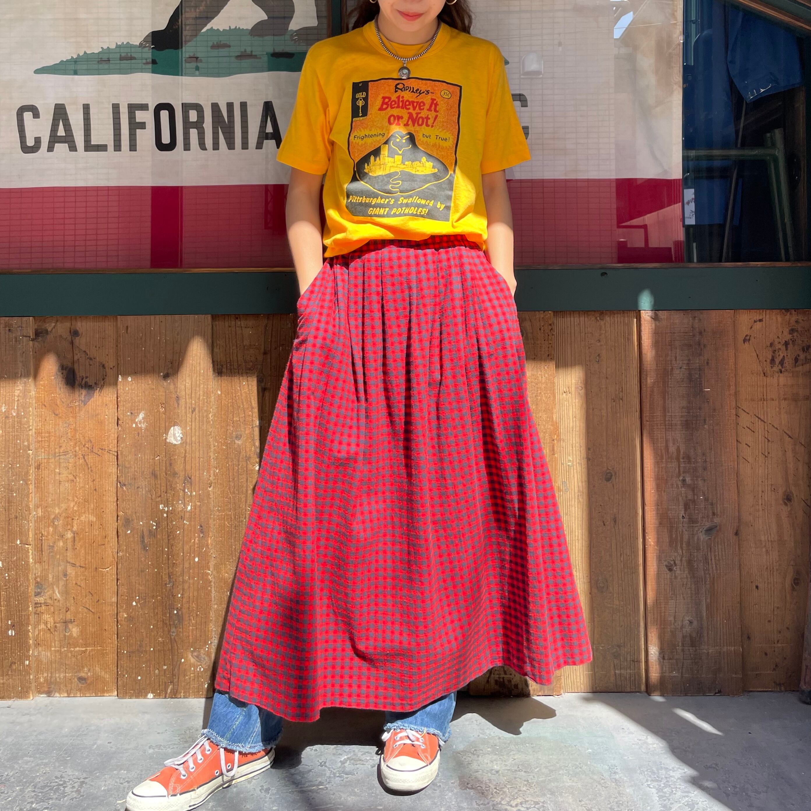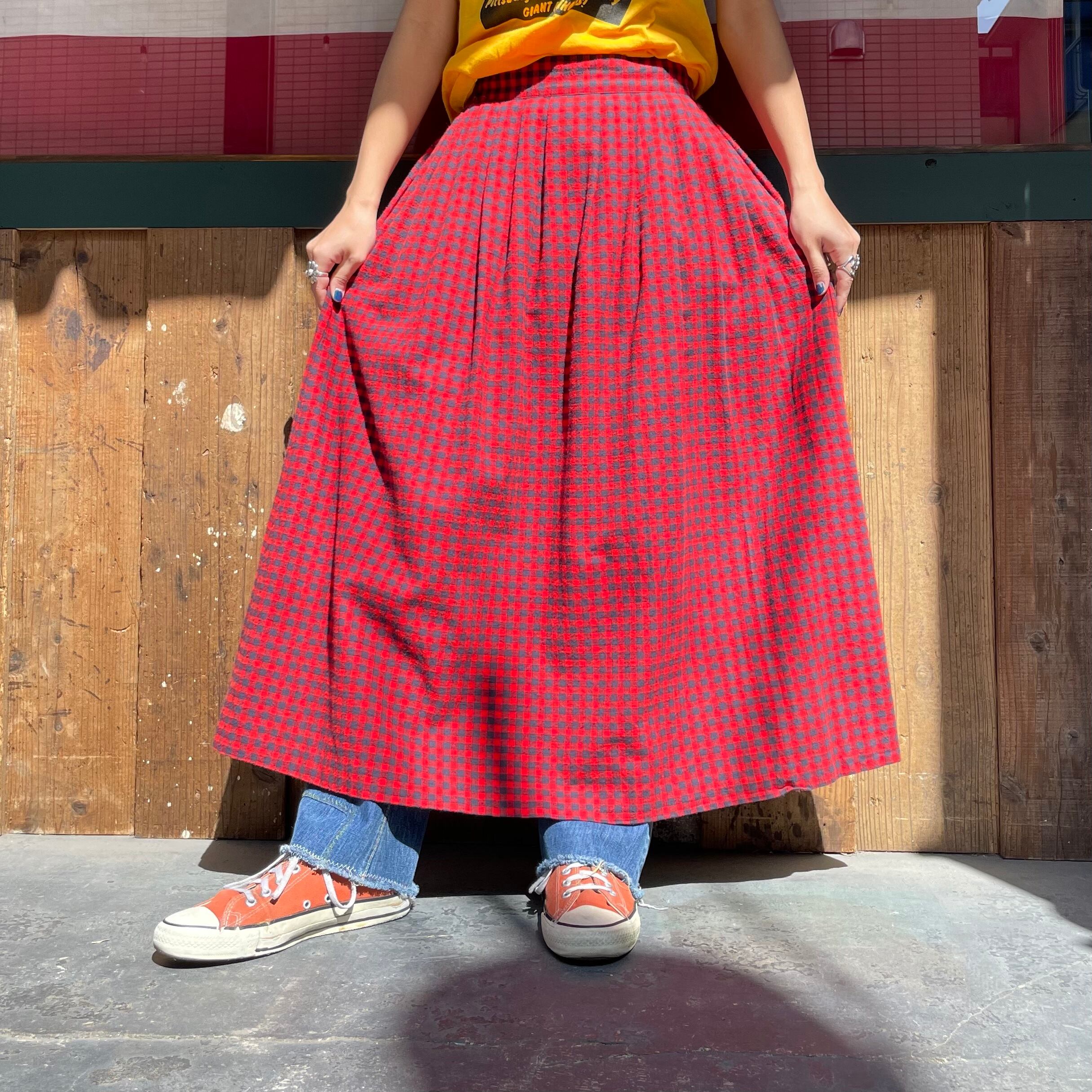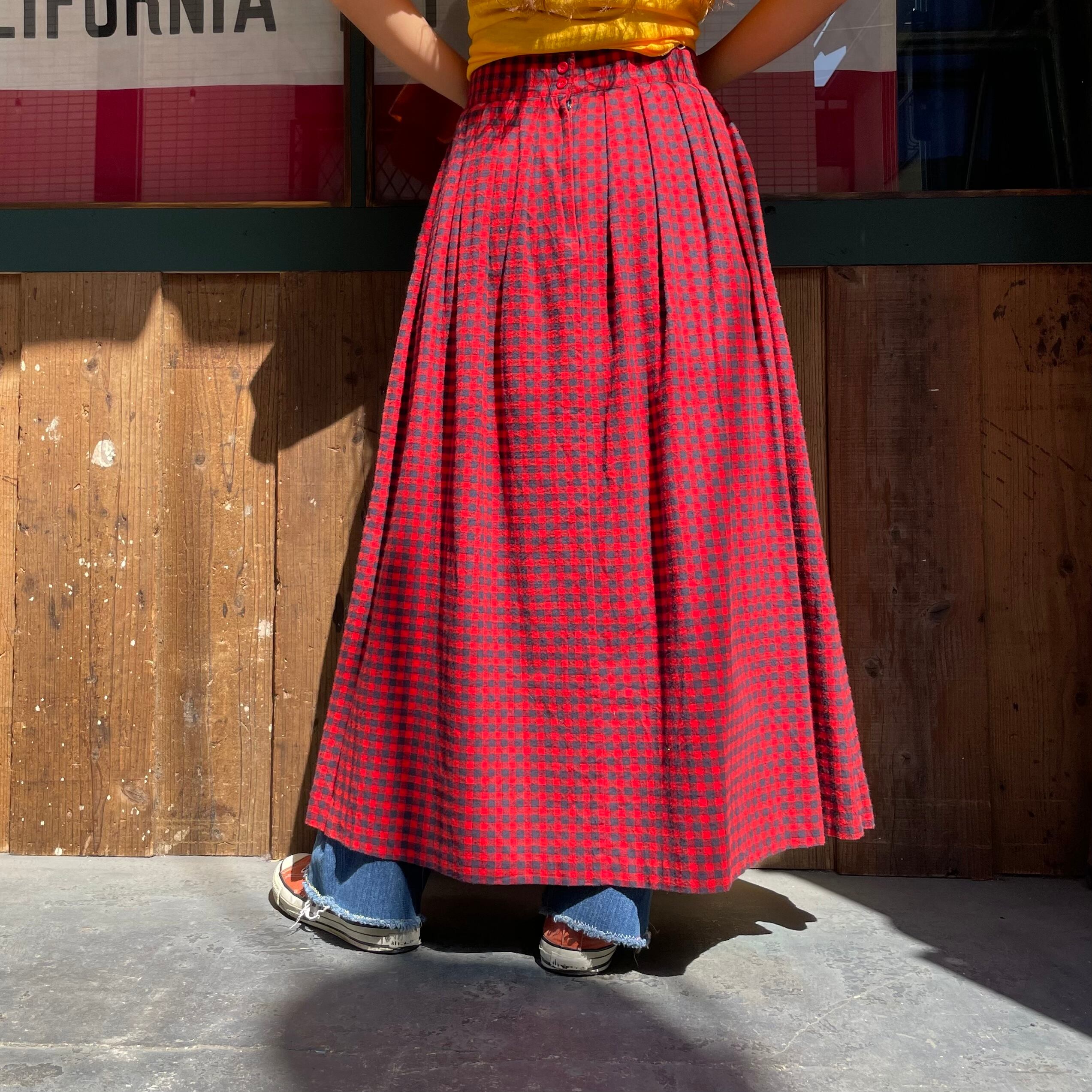 赤×黒のギンガムチェックがかわいいロングスカートです。