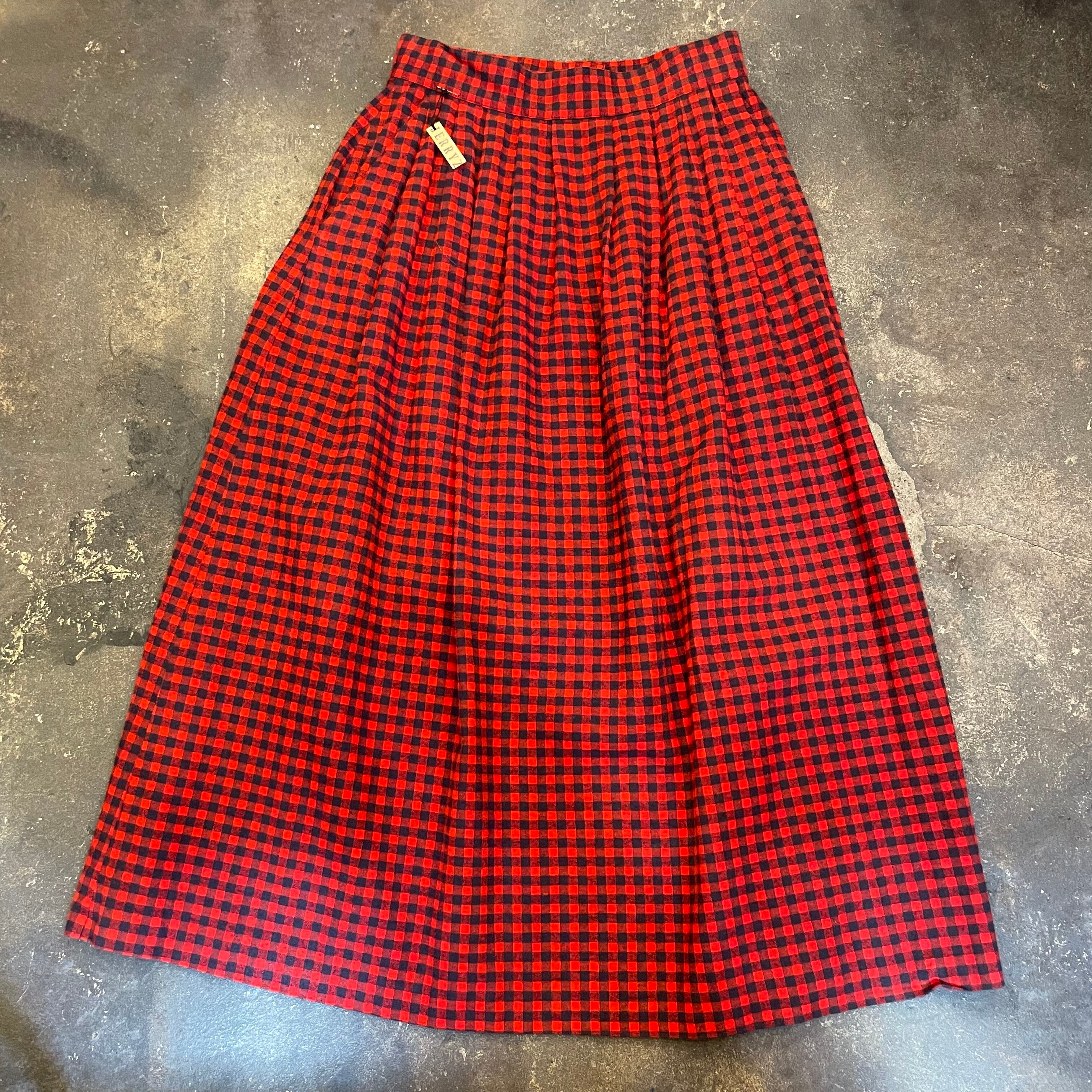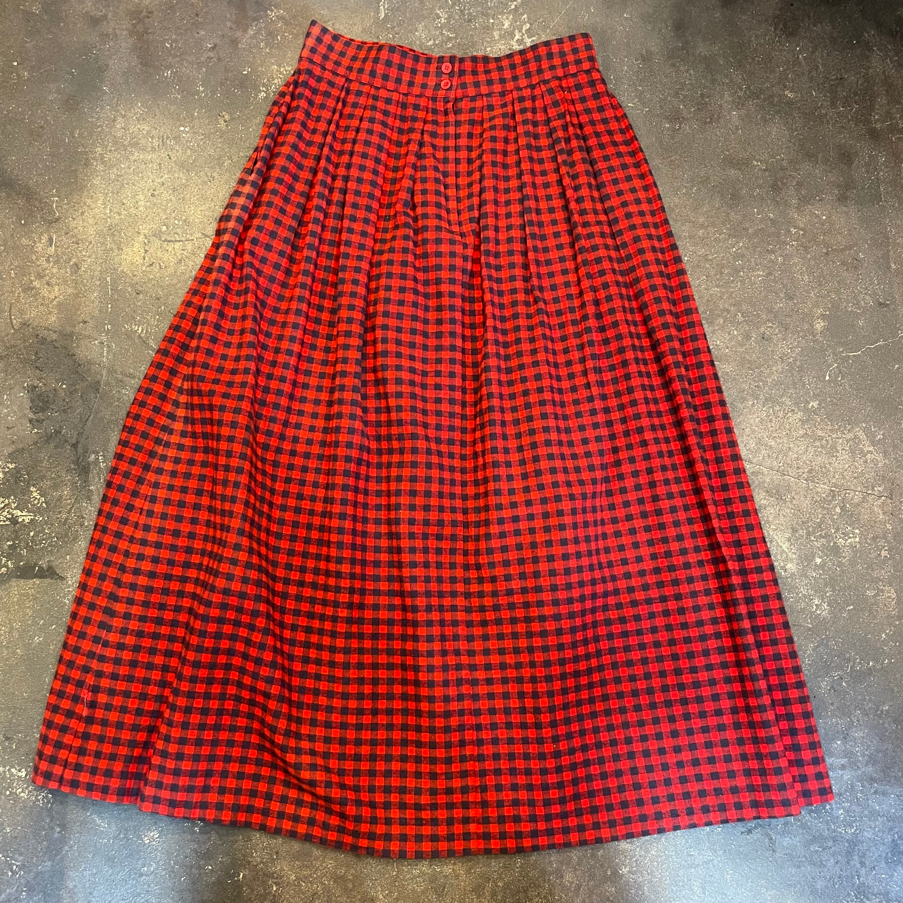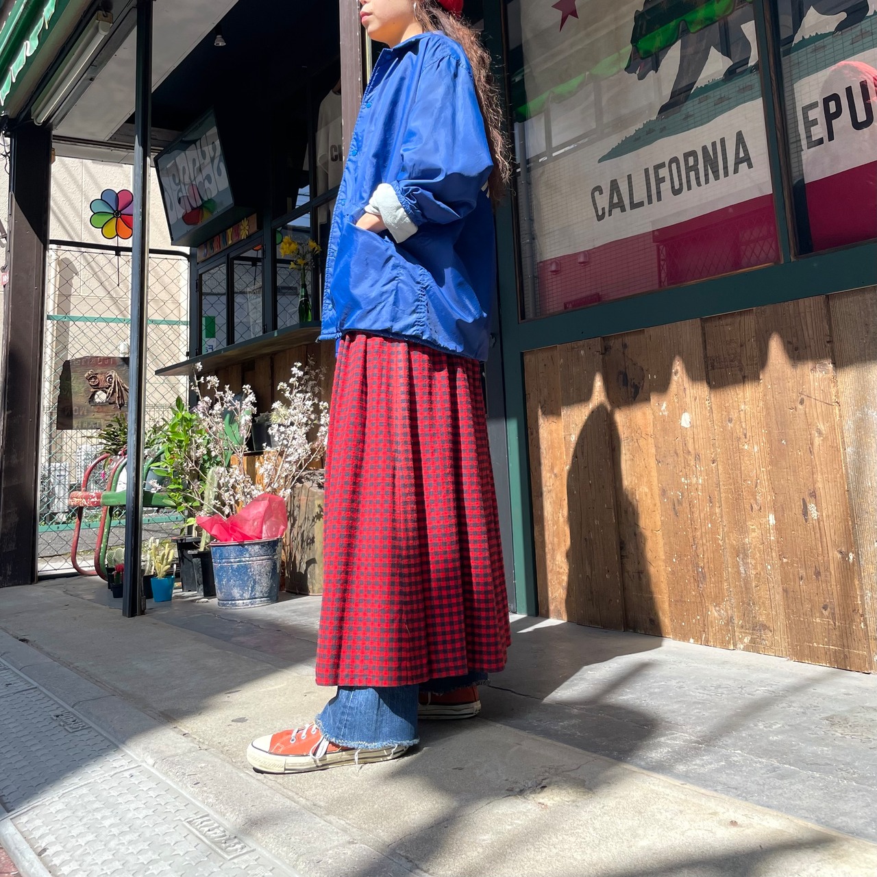 赤×黒のギンガムチェックがかわいいロングスカートです。