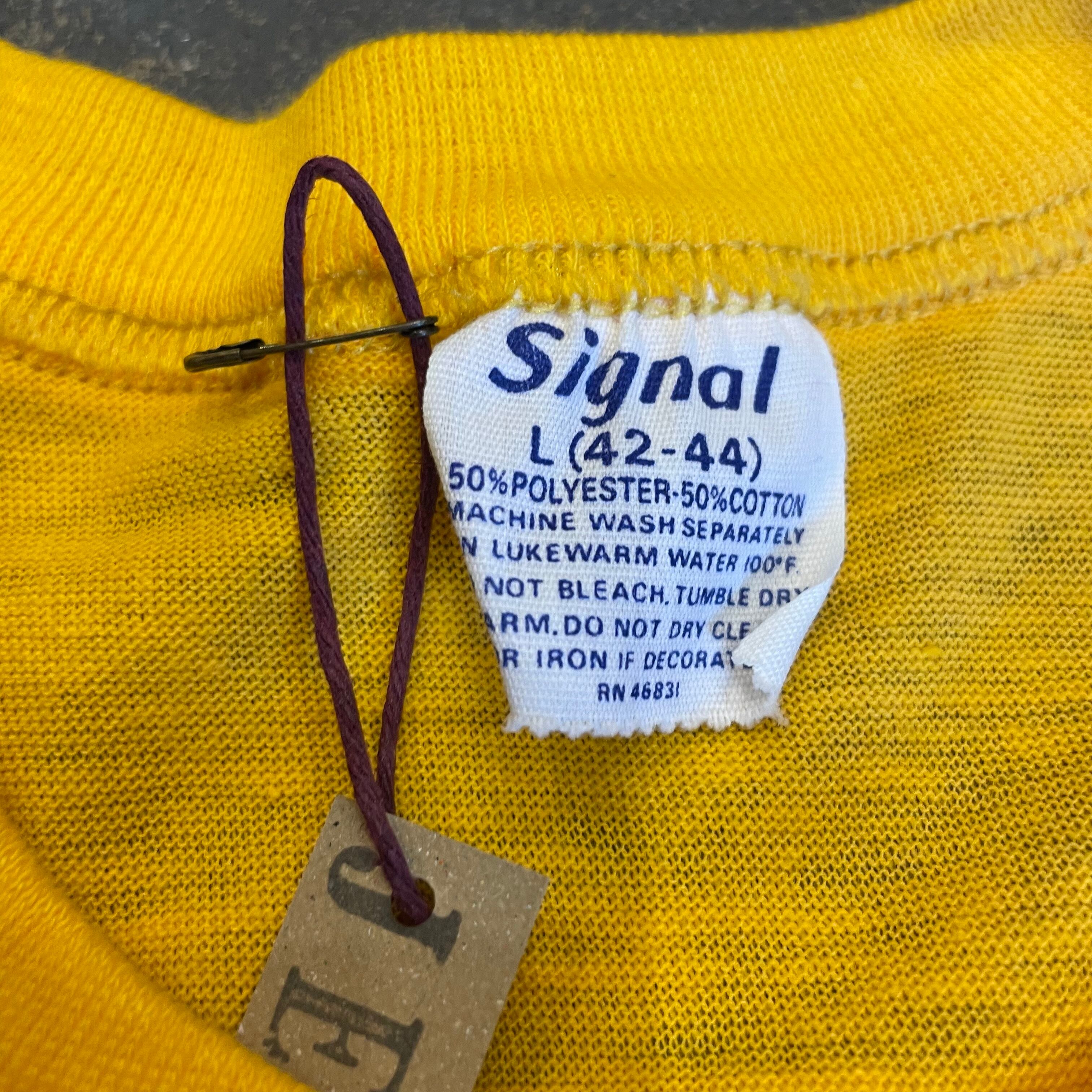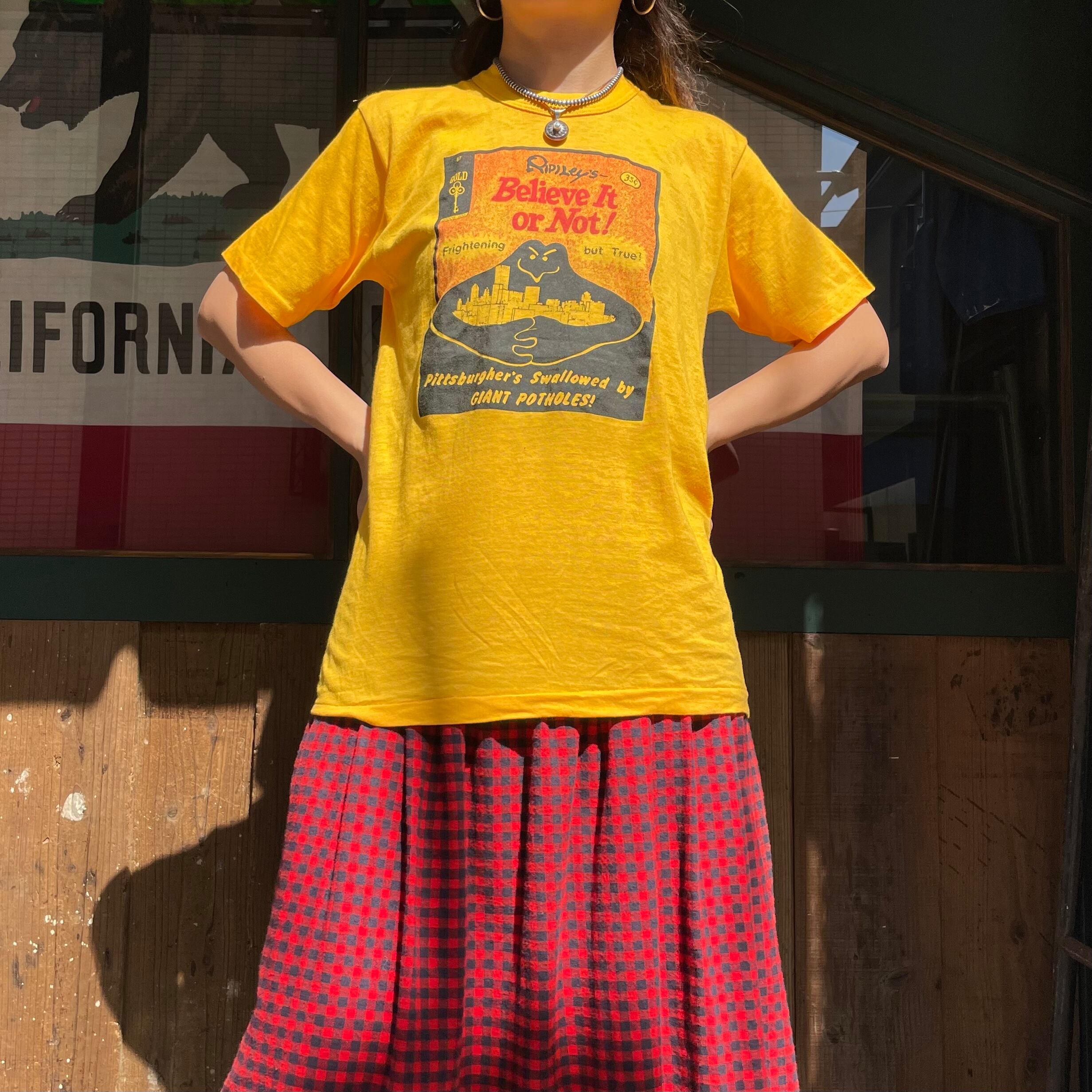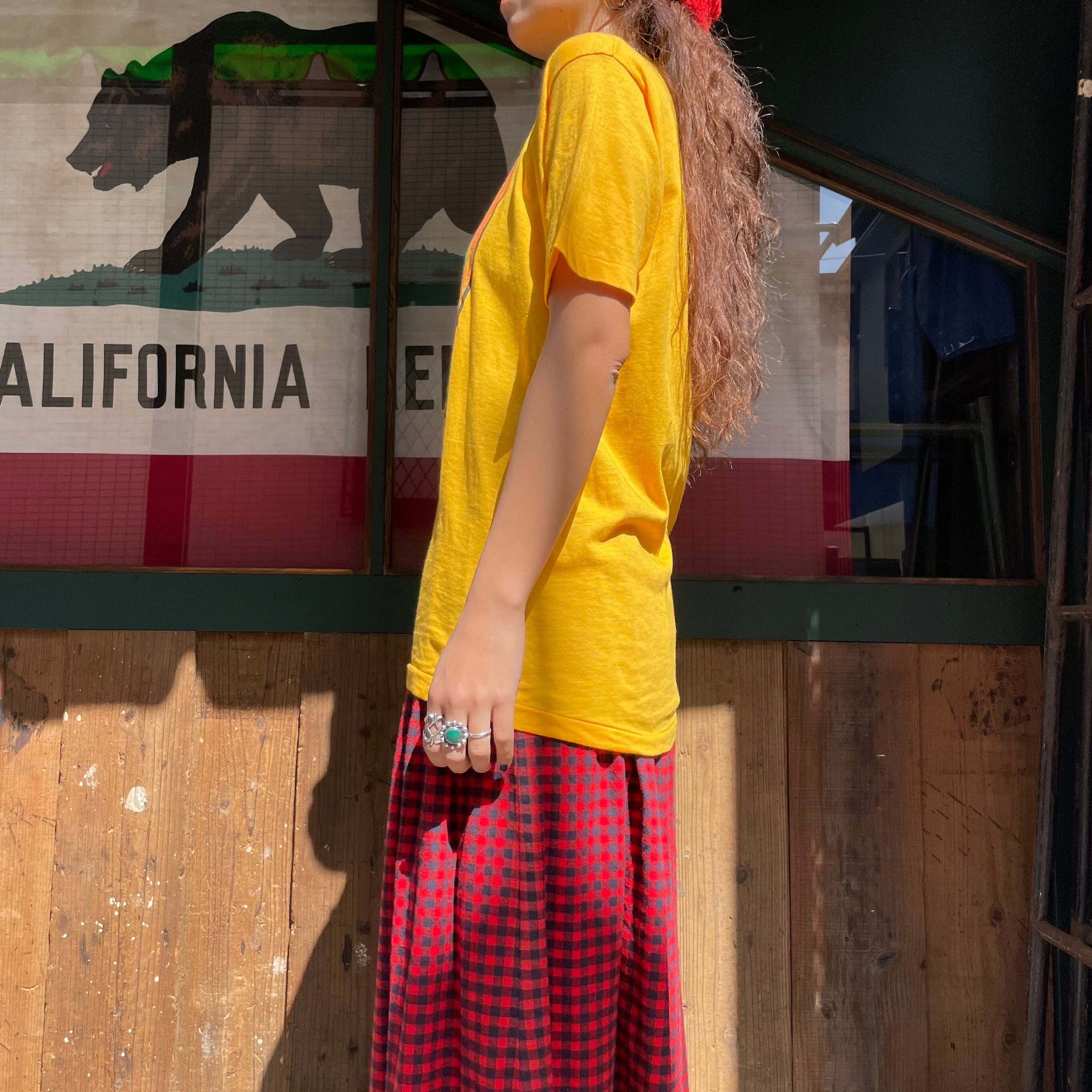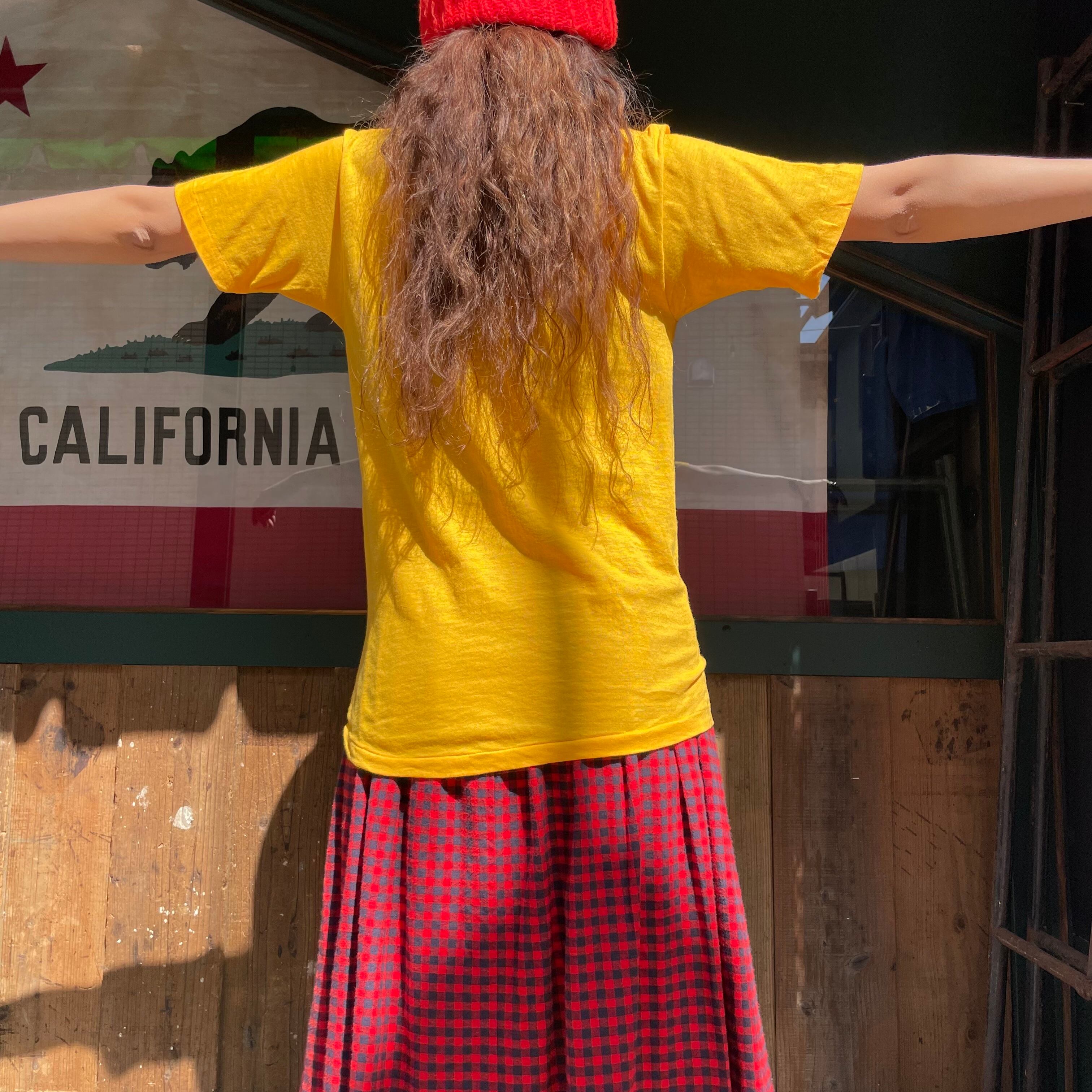 黄色ボディにポップかつ意味深なデザインのプリントがとても雰囲気があってかわいい一枚です。
