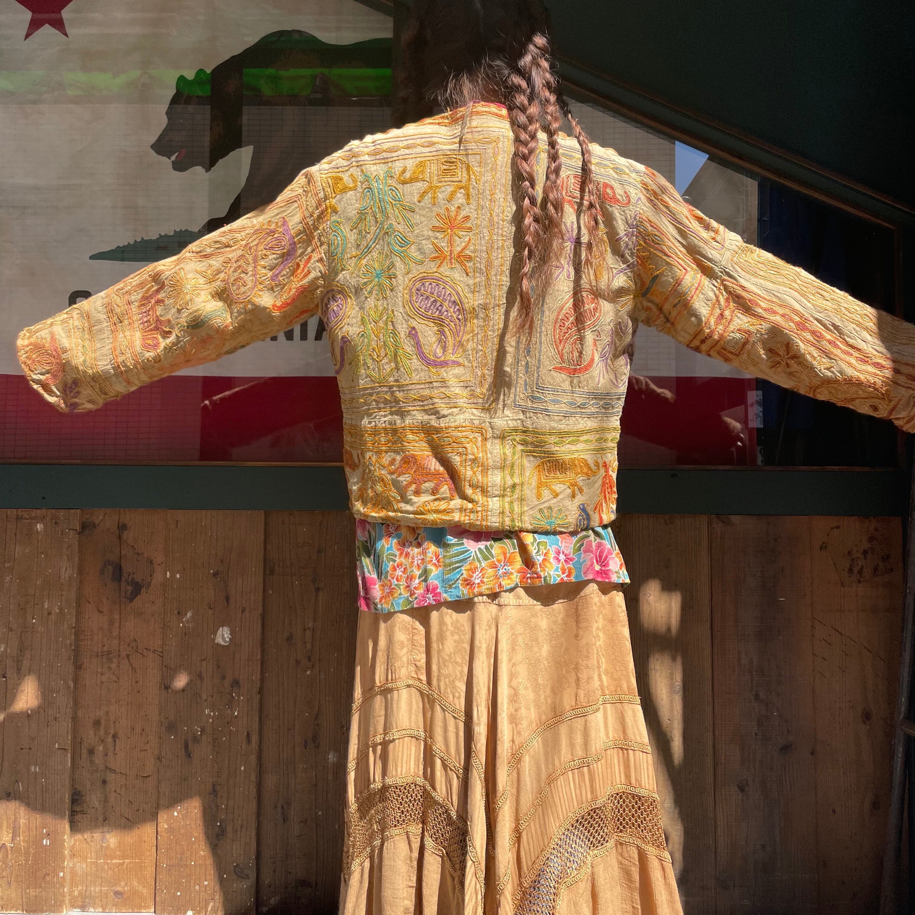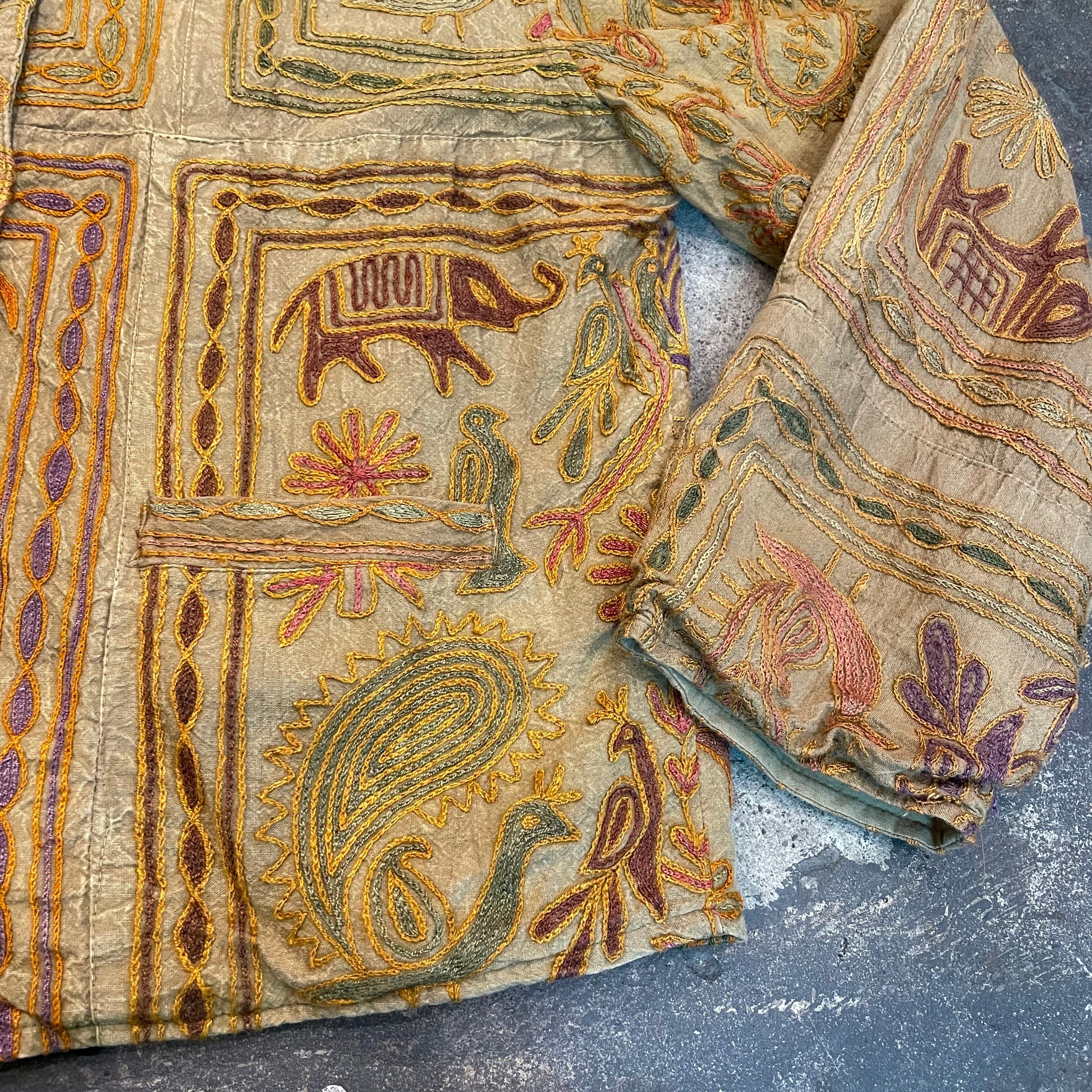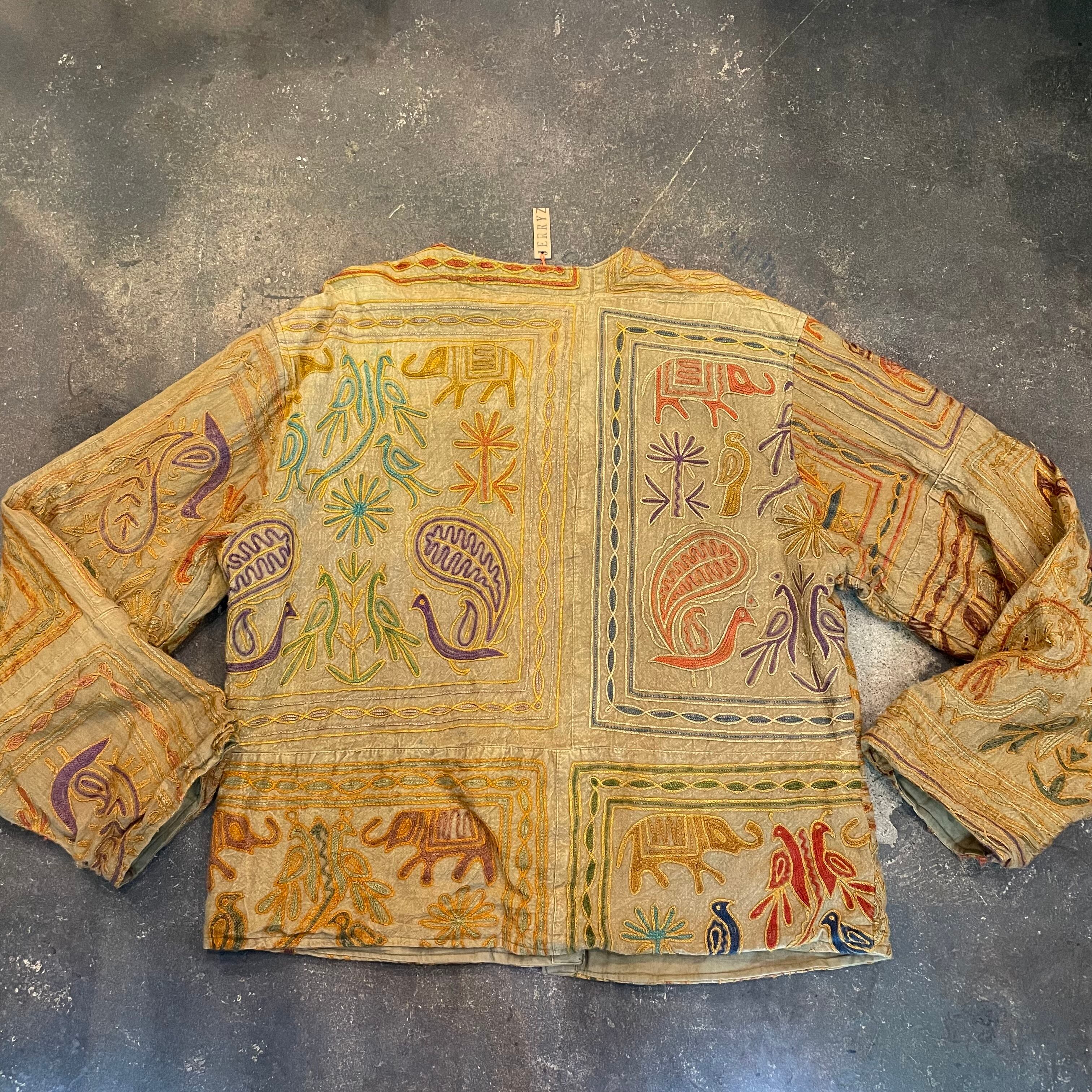 前面にチェーンステッチで機械刺繍が施されておりかわいいジャケットです。