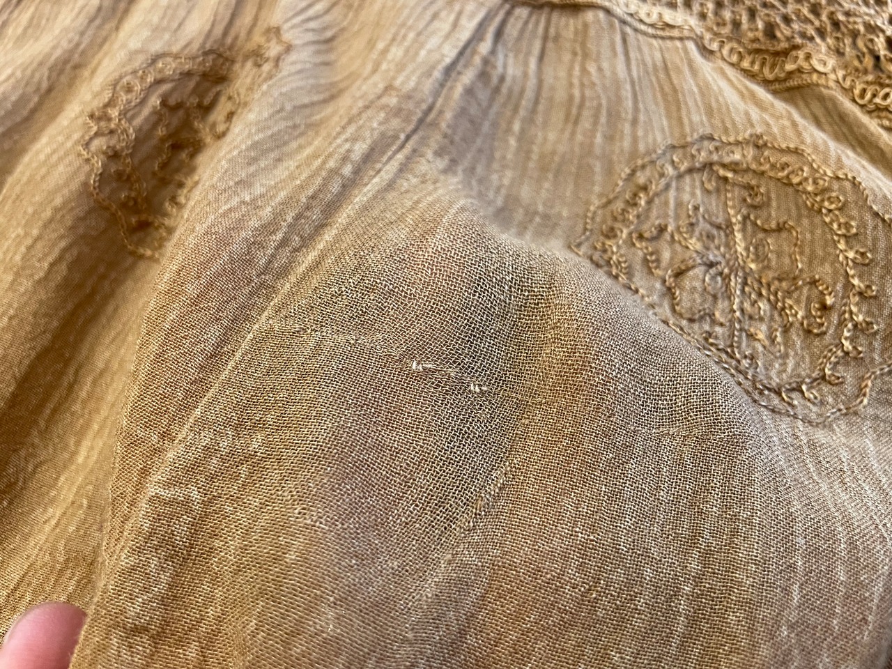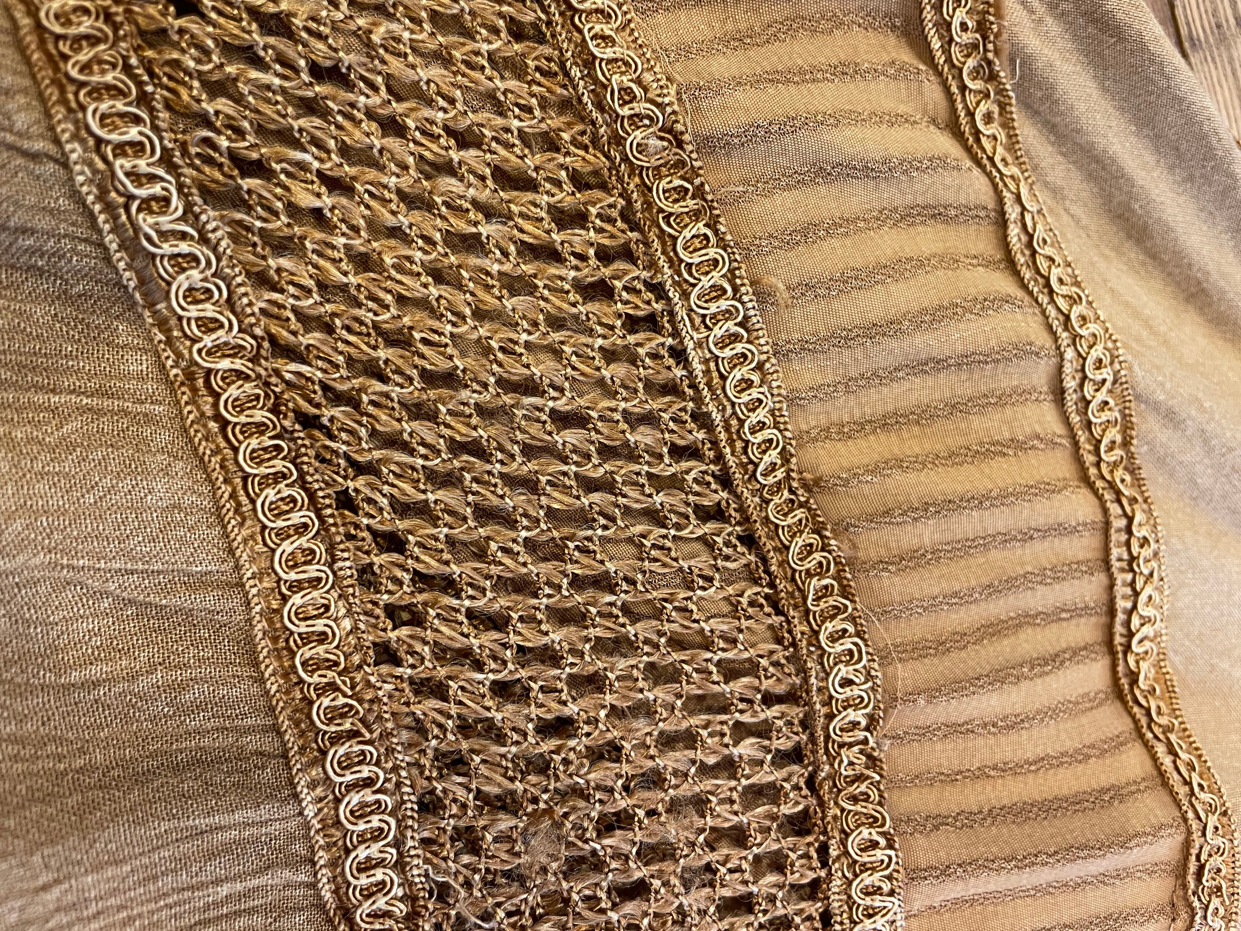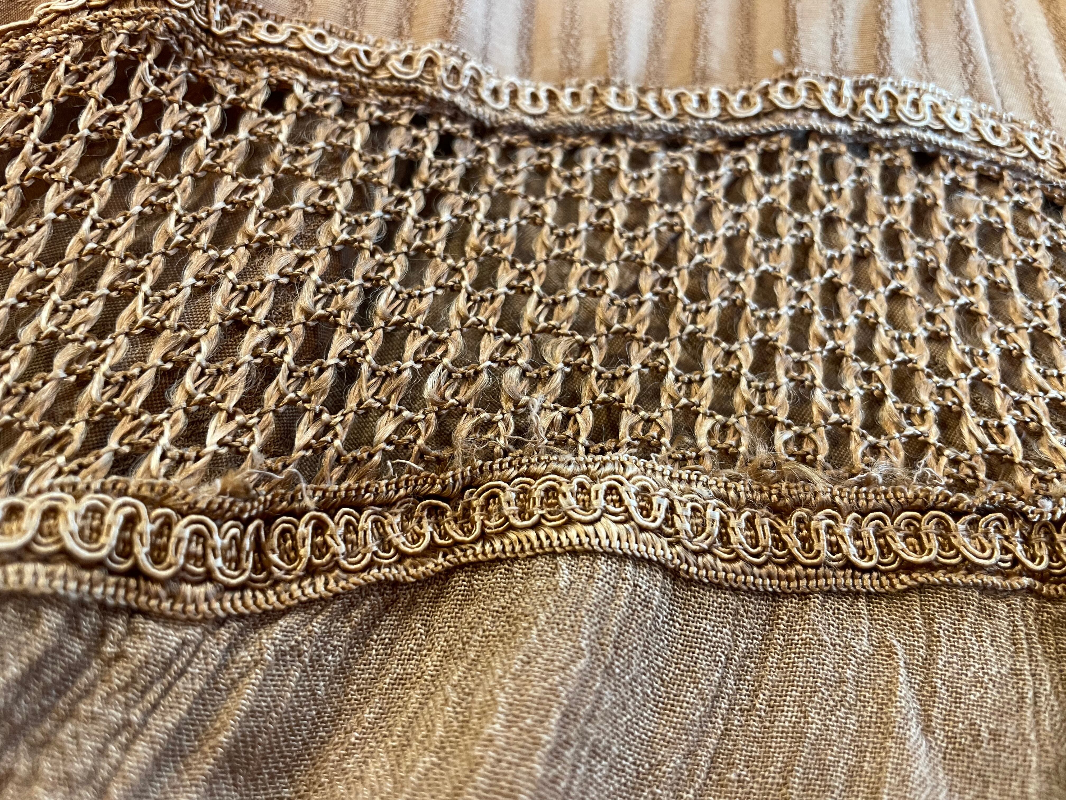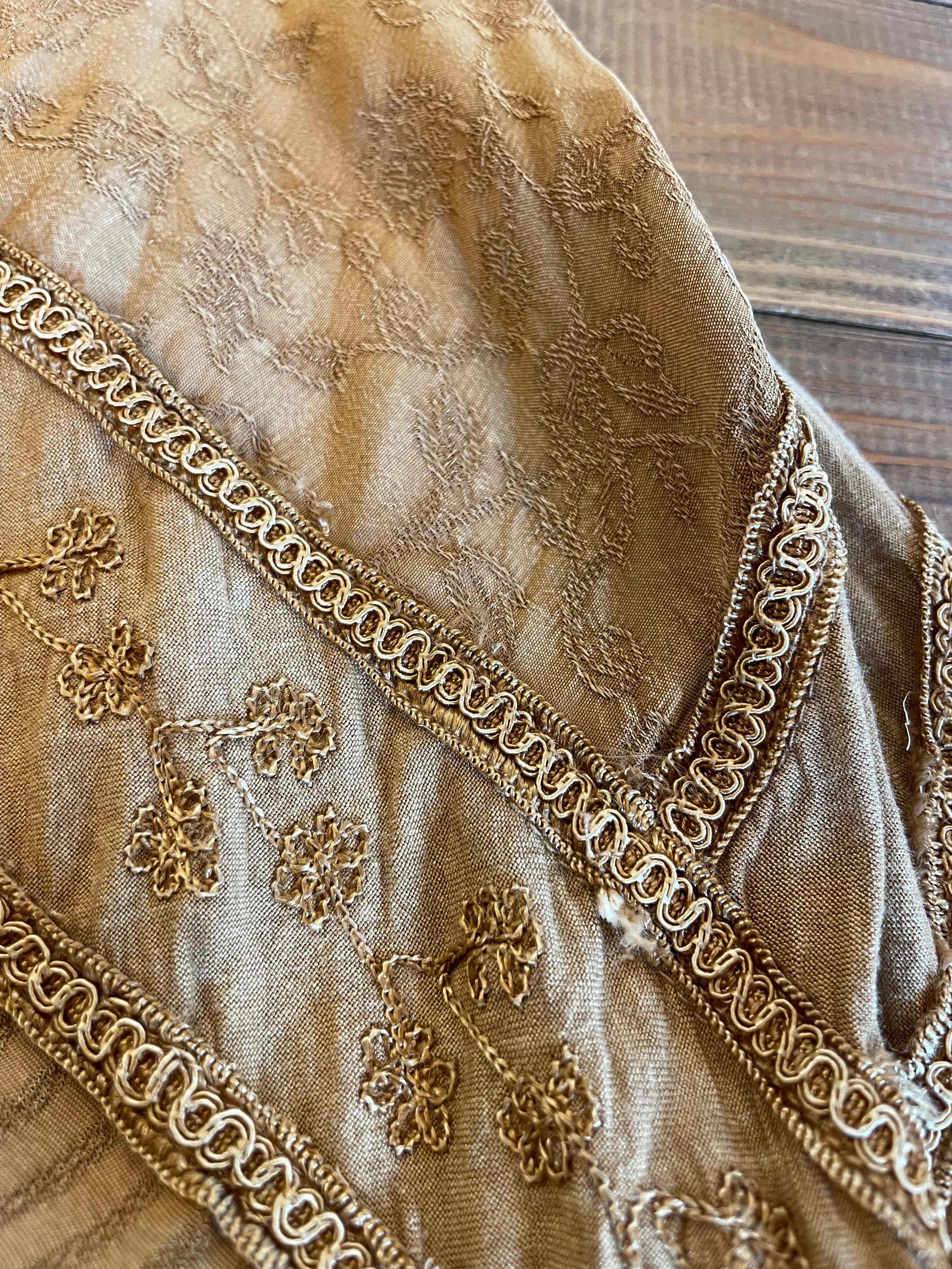 刺繍やメッシュな部分、織りや装飾テープなどいろんなディテールが入っています。