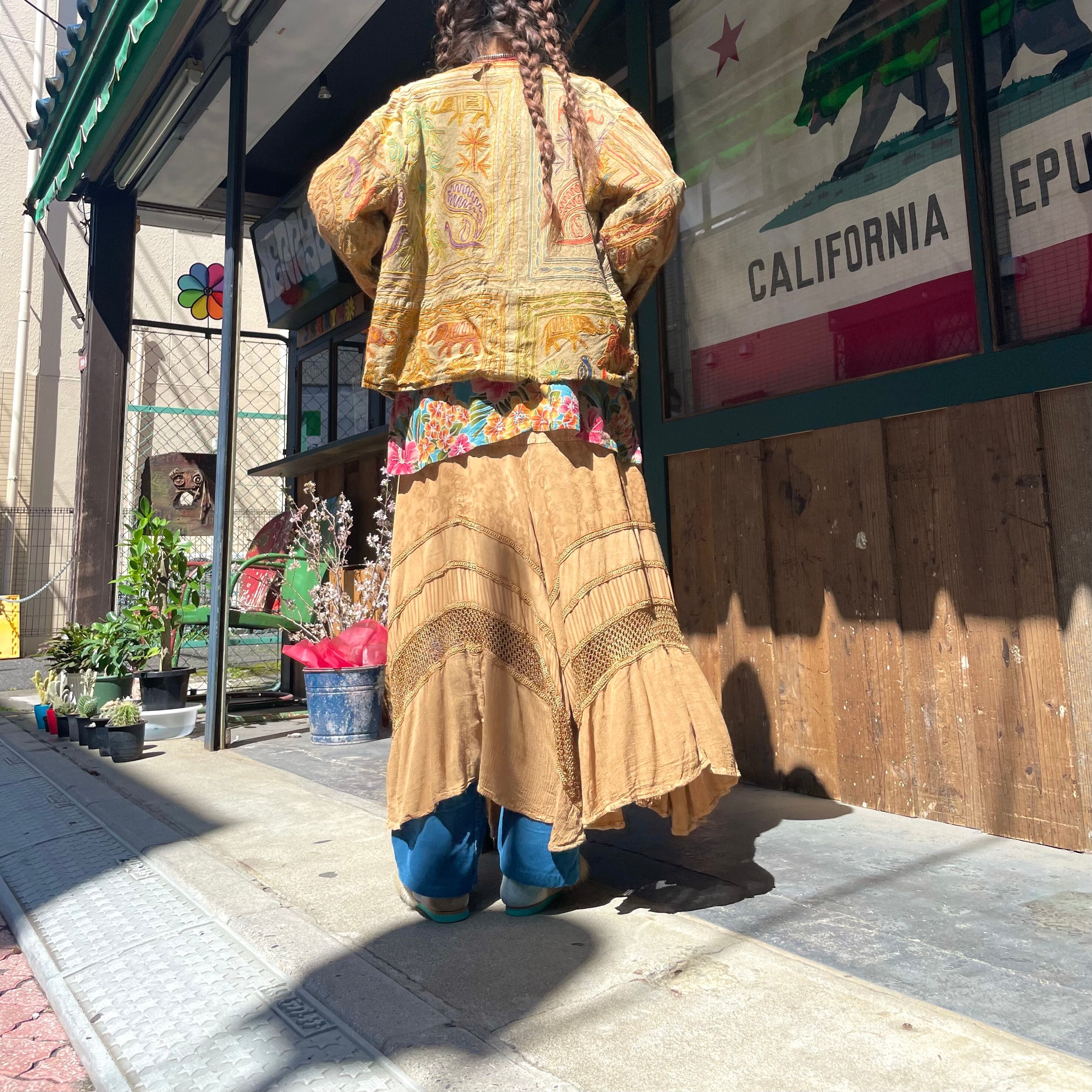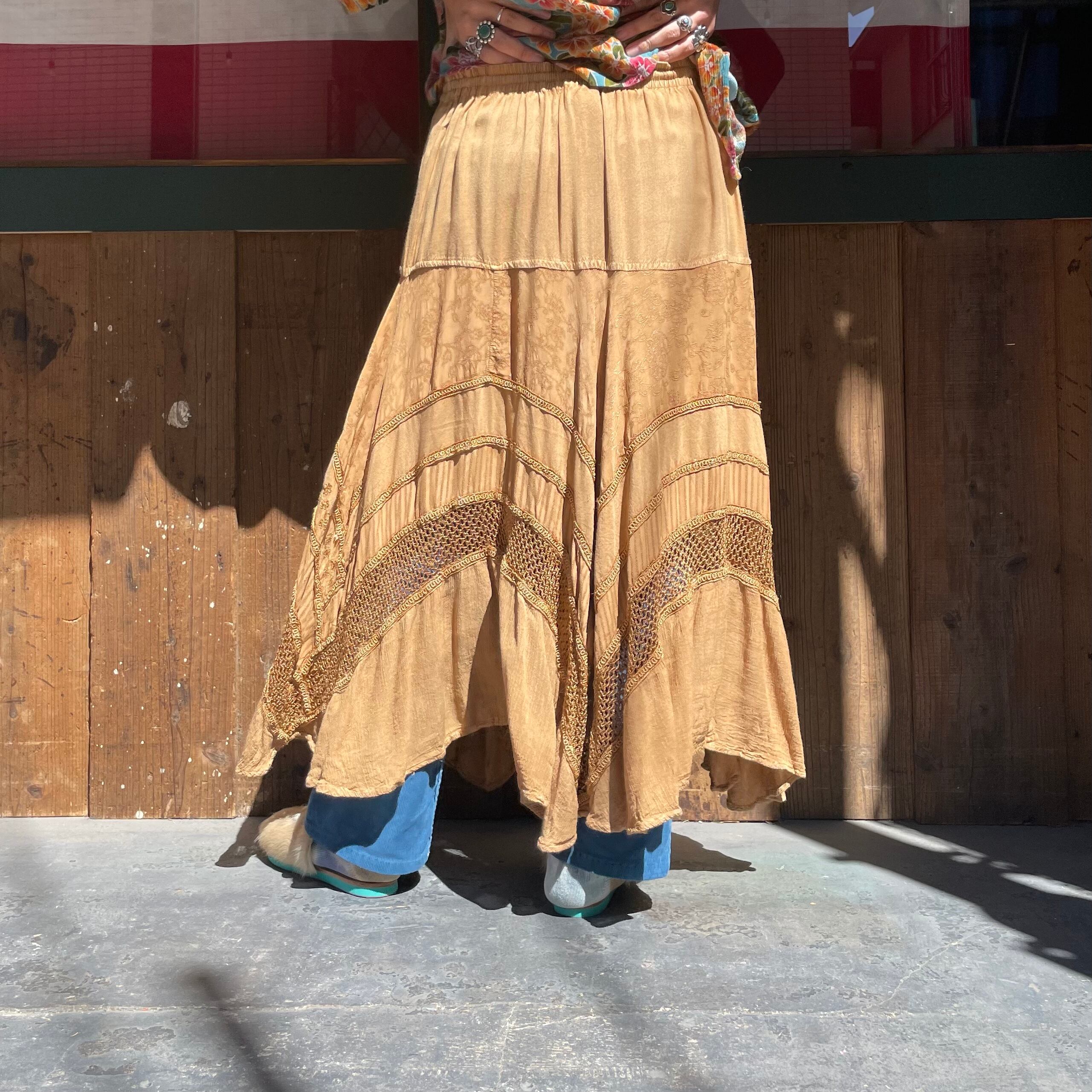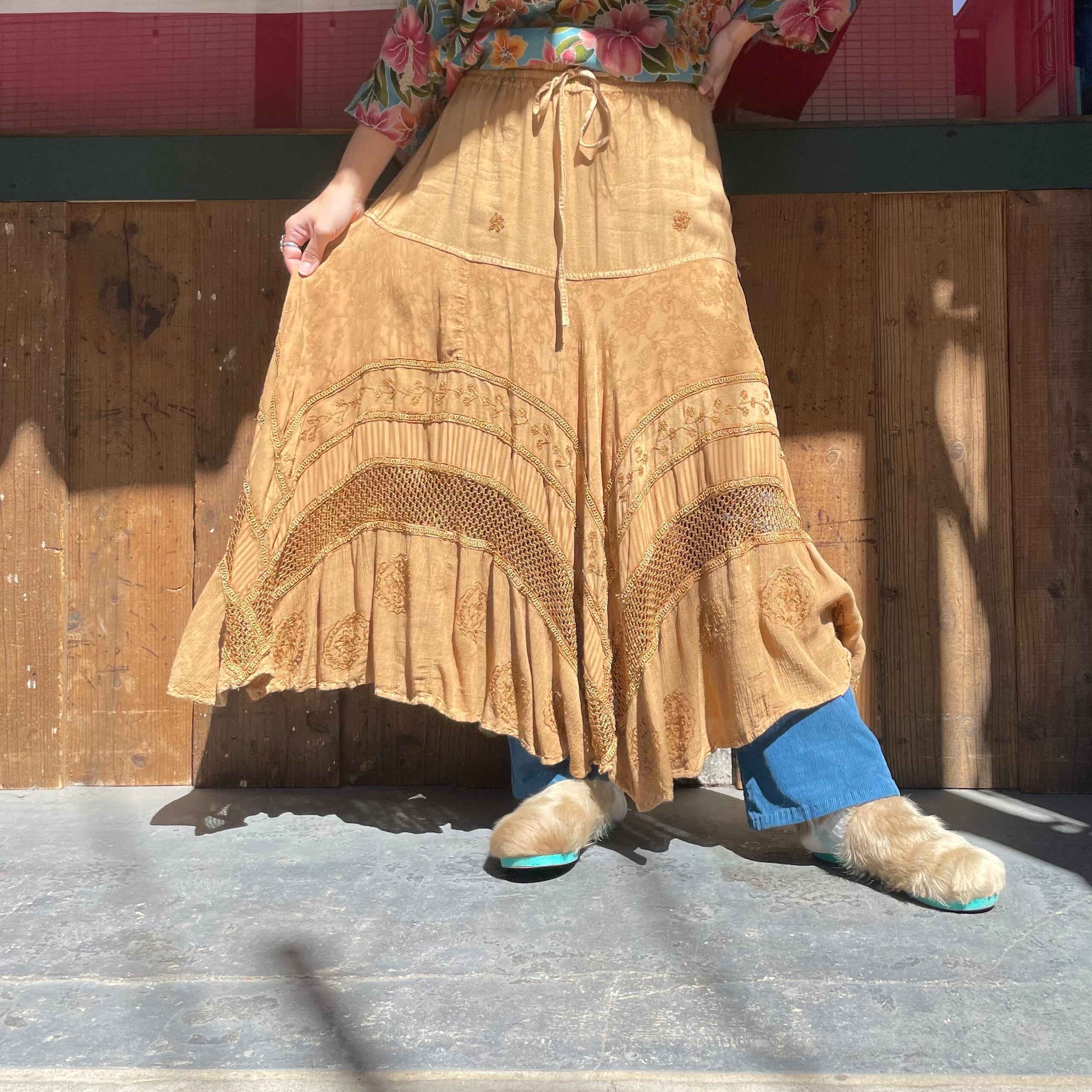 アシンメトリーなデザインがかわいいインド製のレーヨンスカートです。