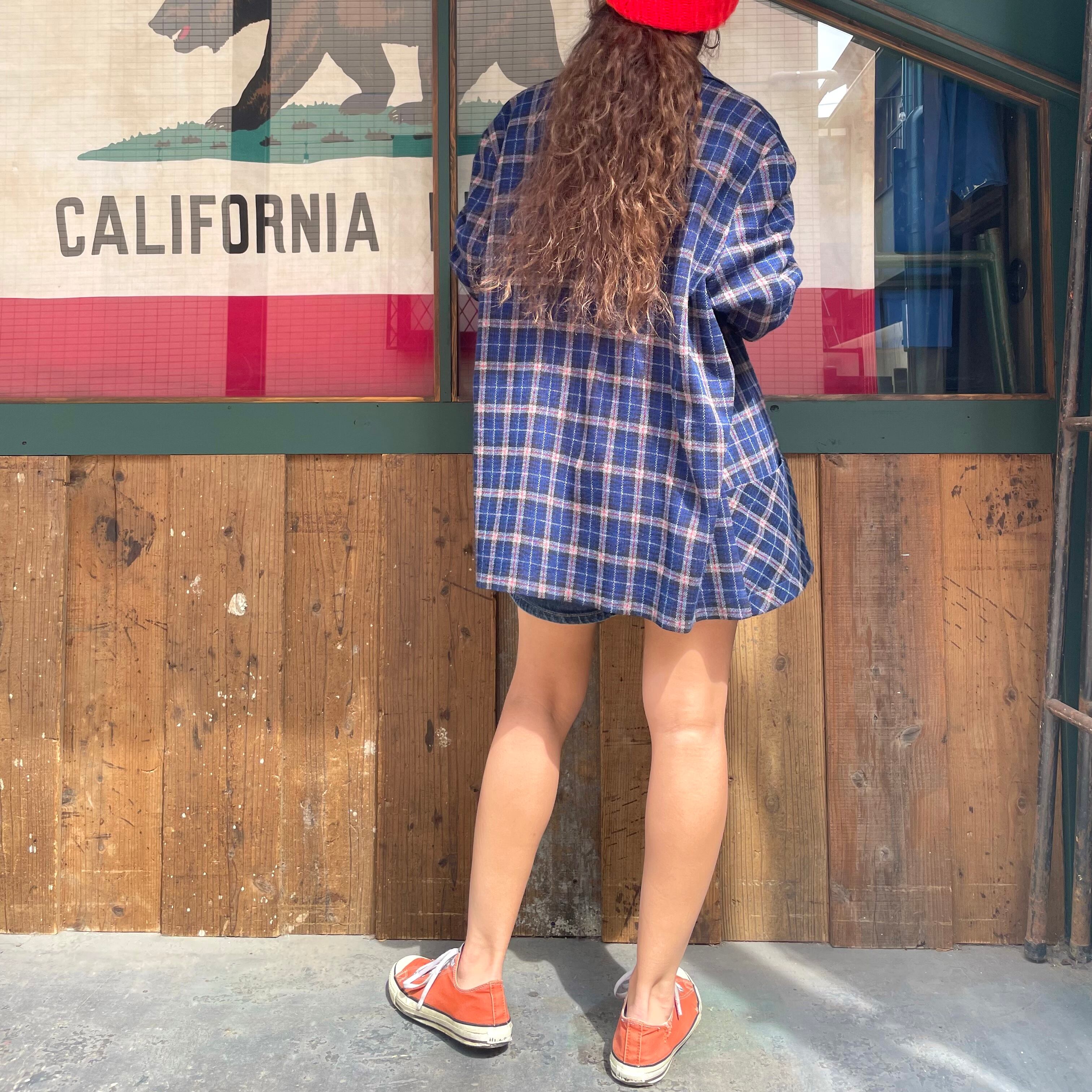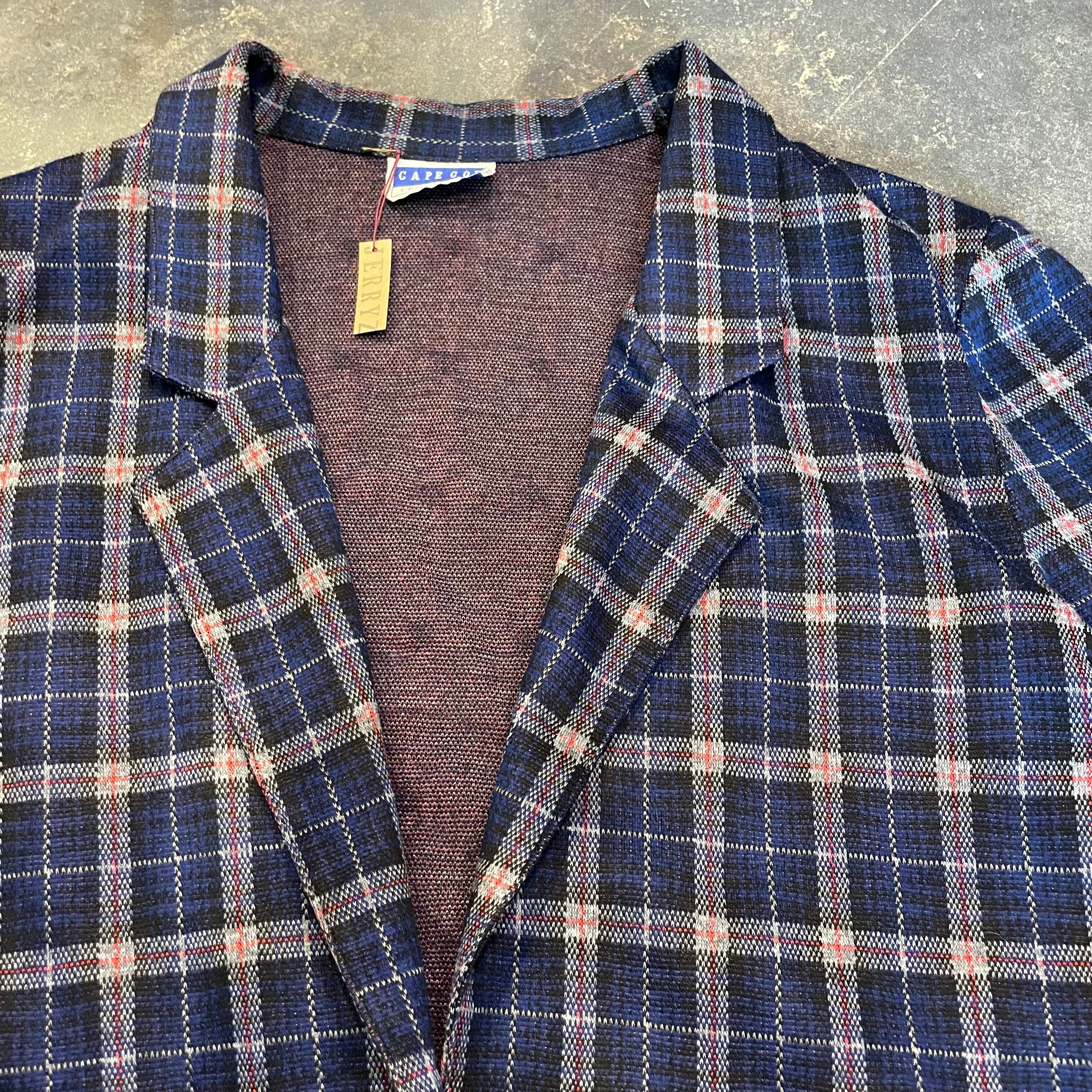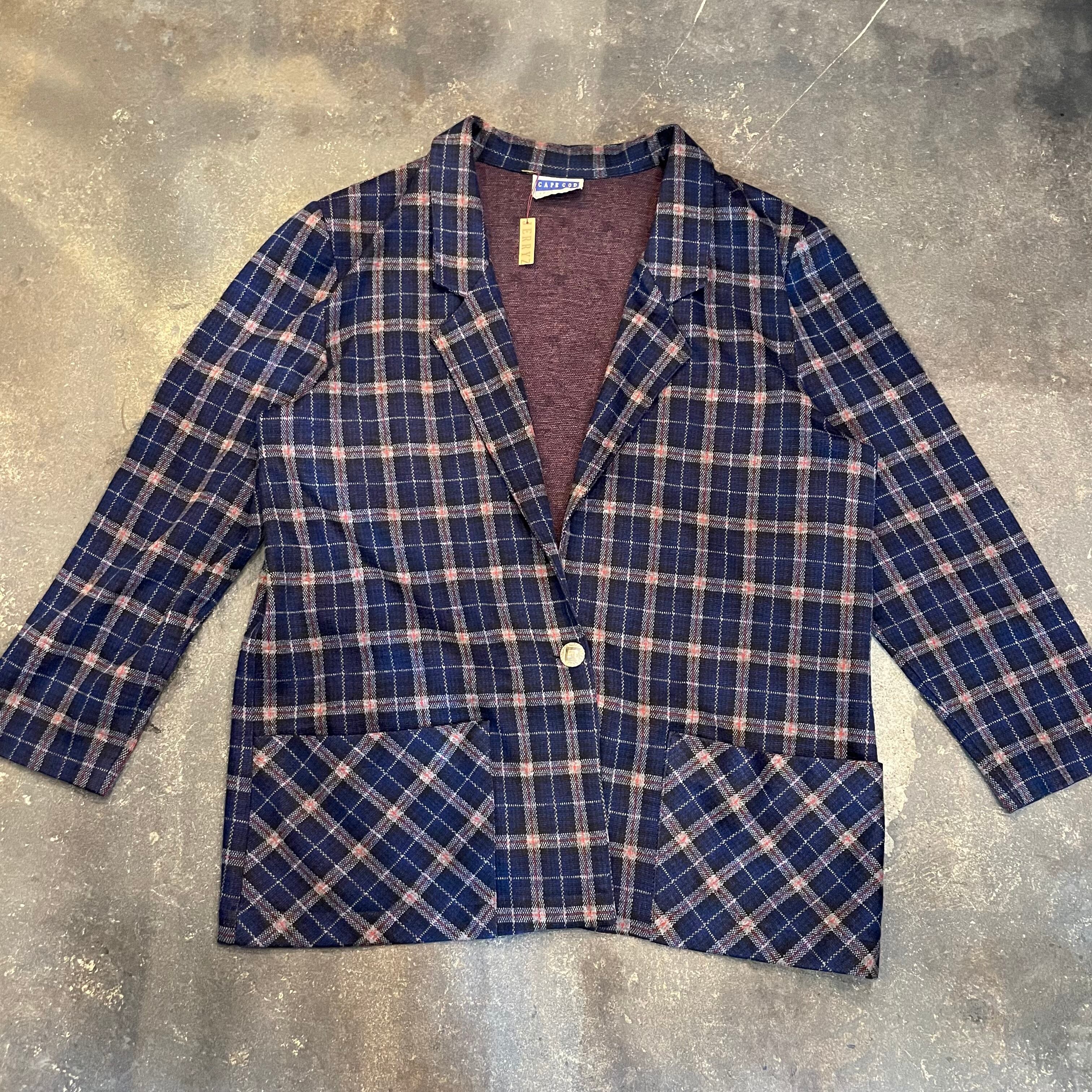 濃いめの青のチェック柄がかわいいテーラードカラーのジャケットです。
