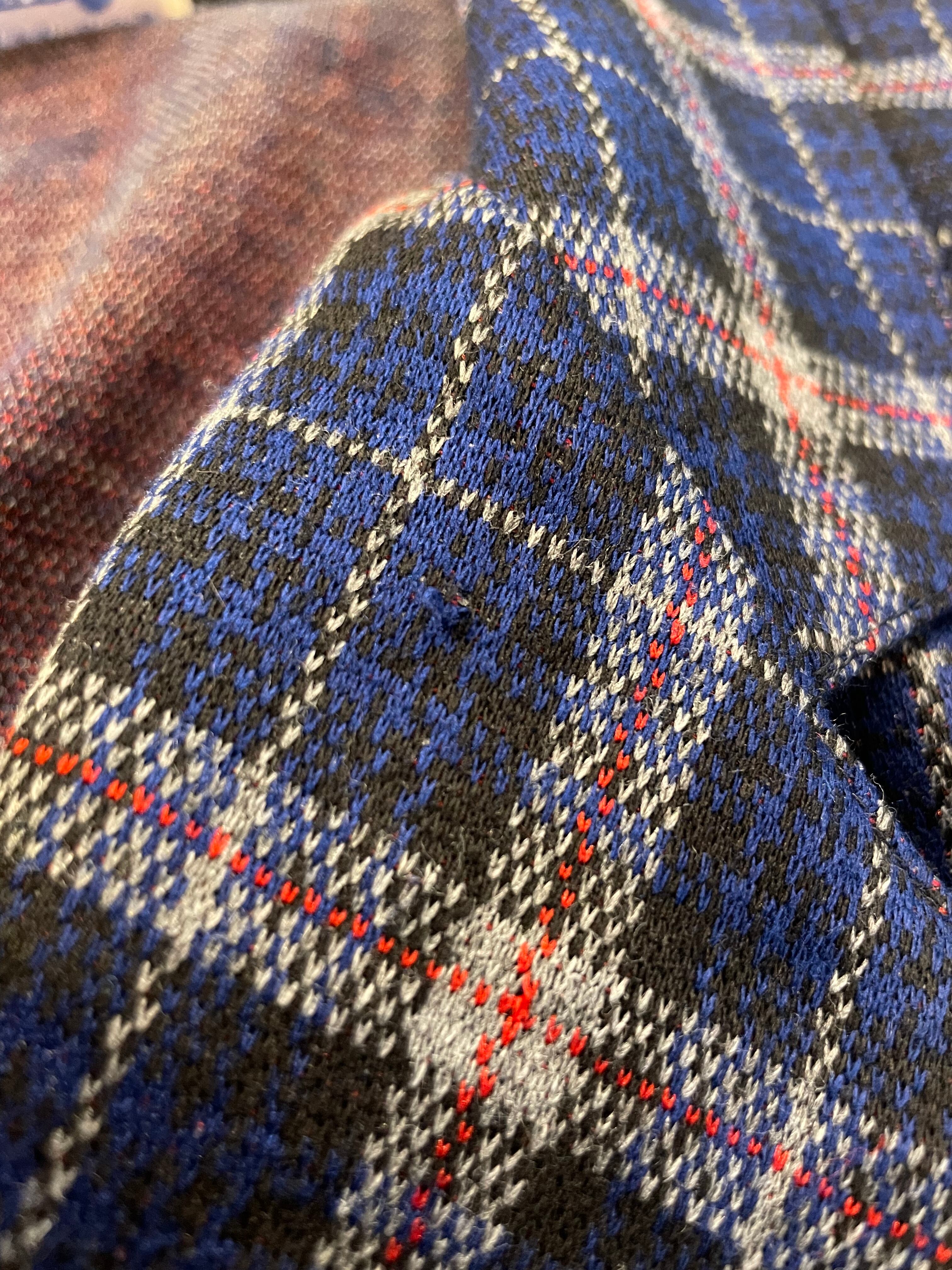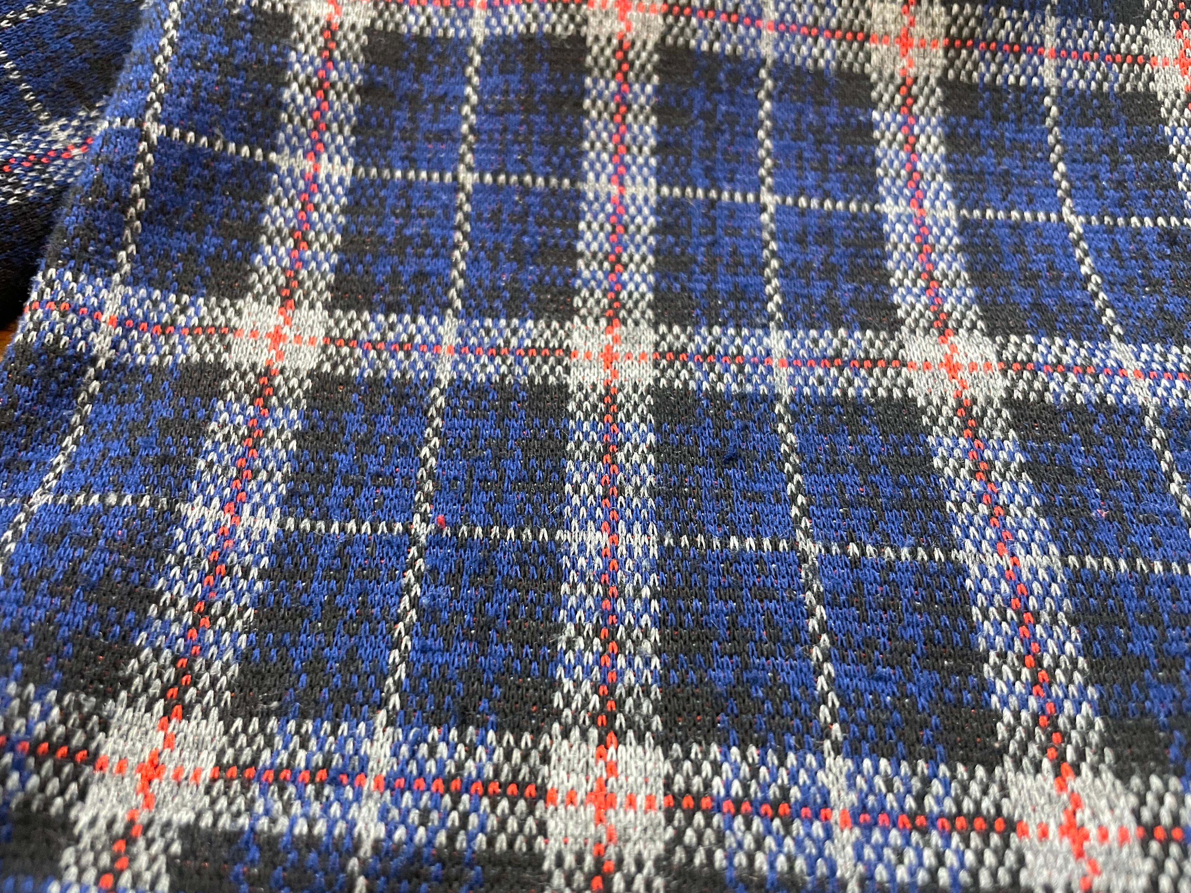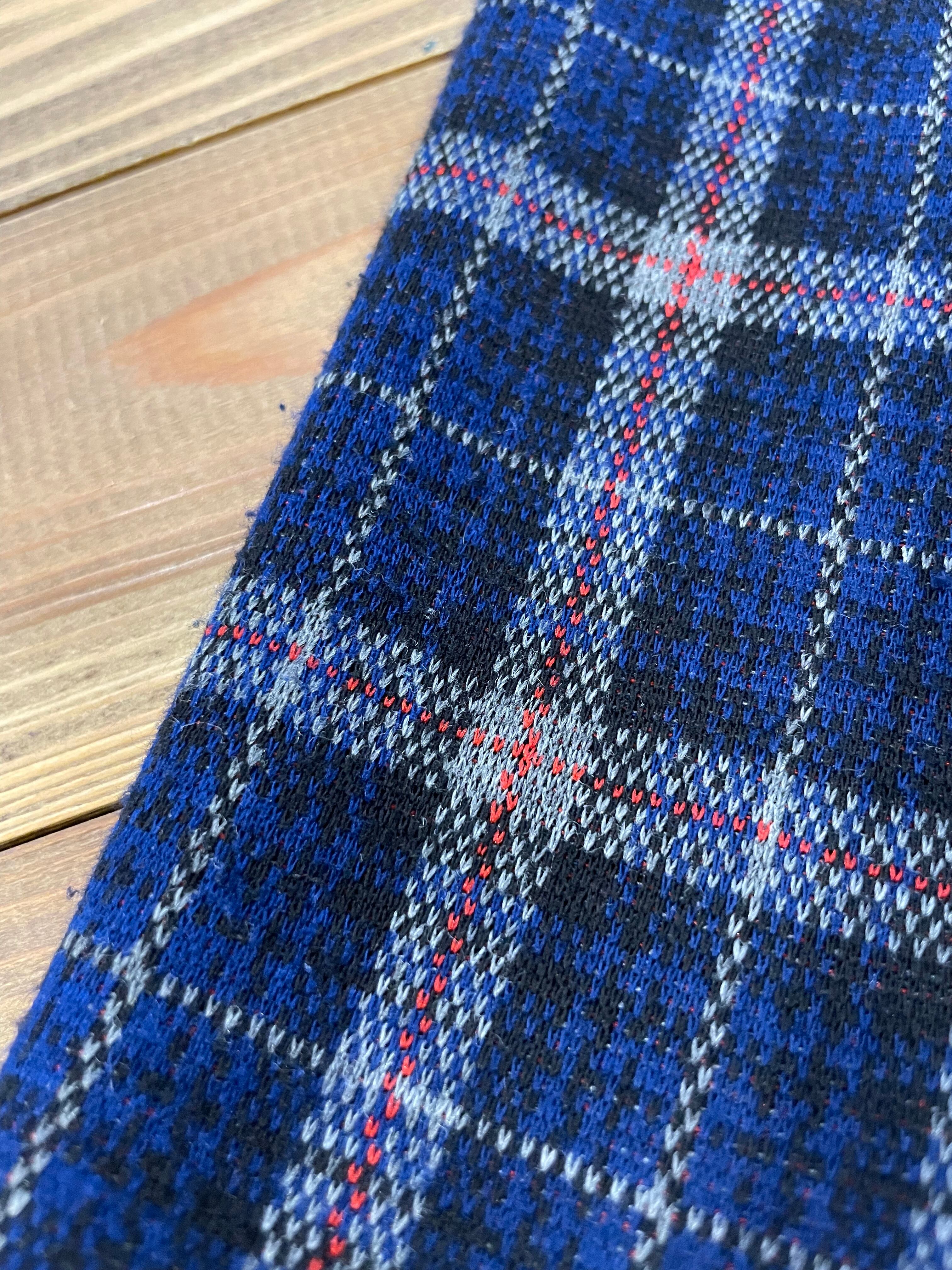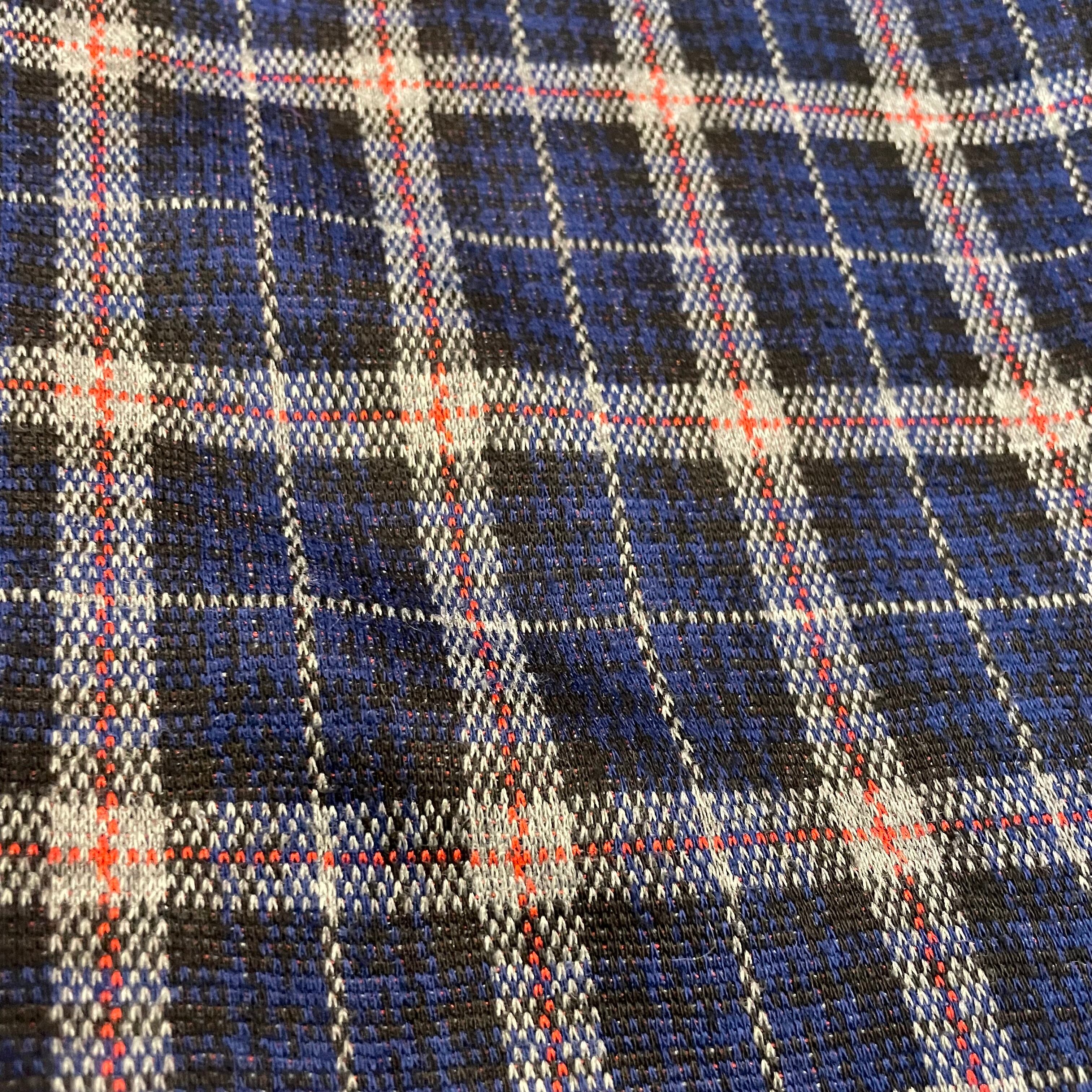 濃いめの青のチェック柄がかわいいテーラードカラーのジャケットです。