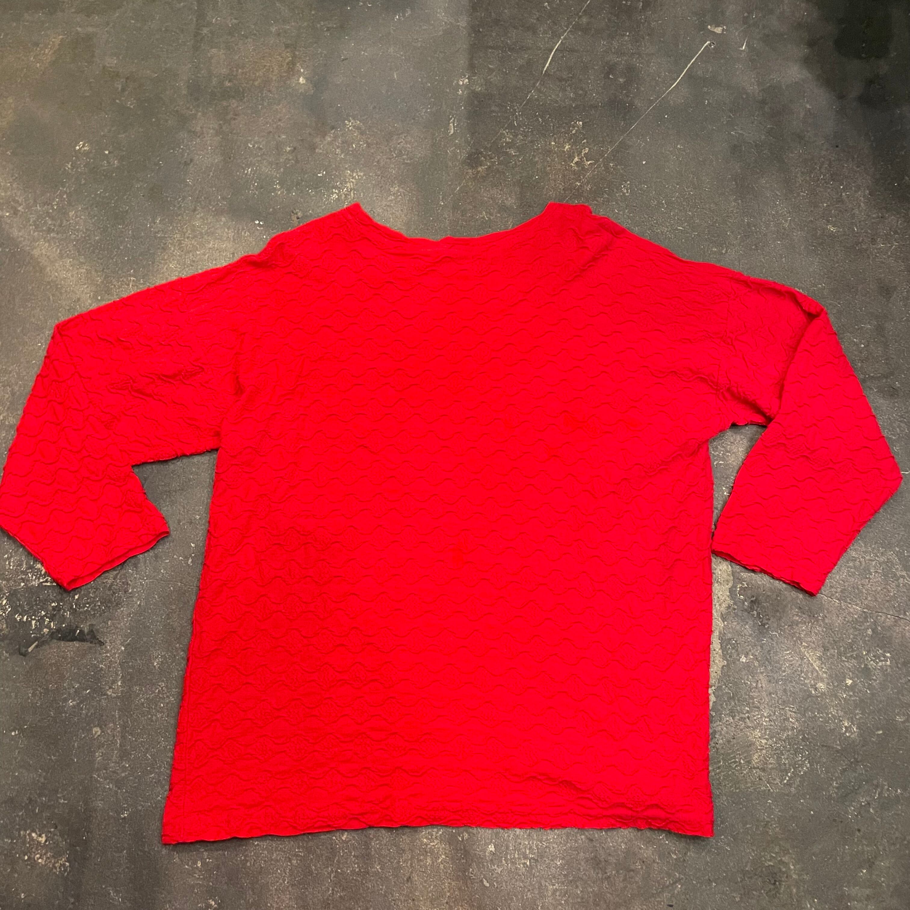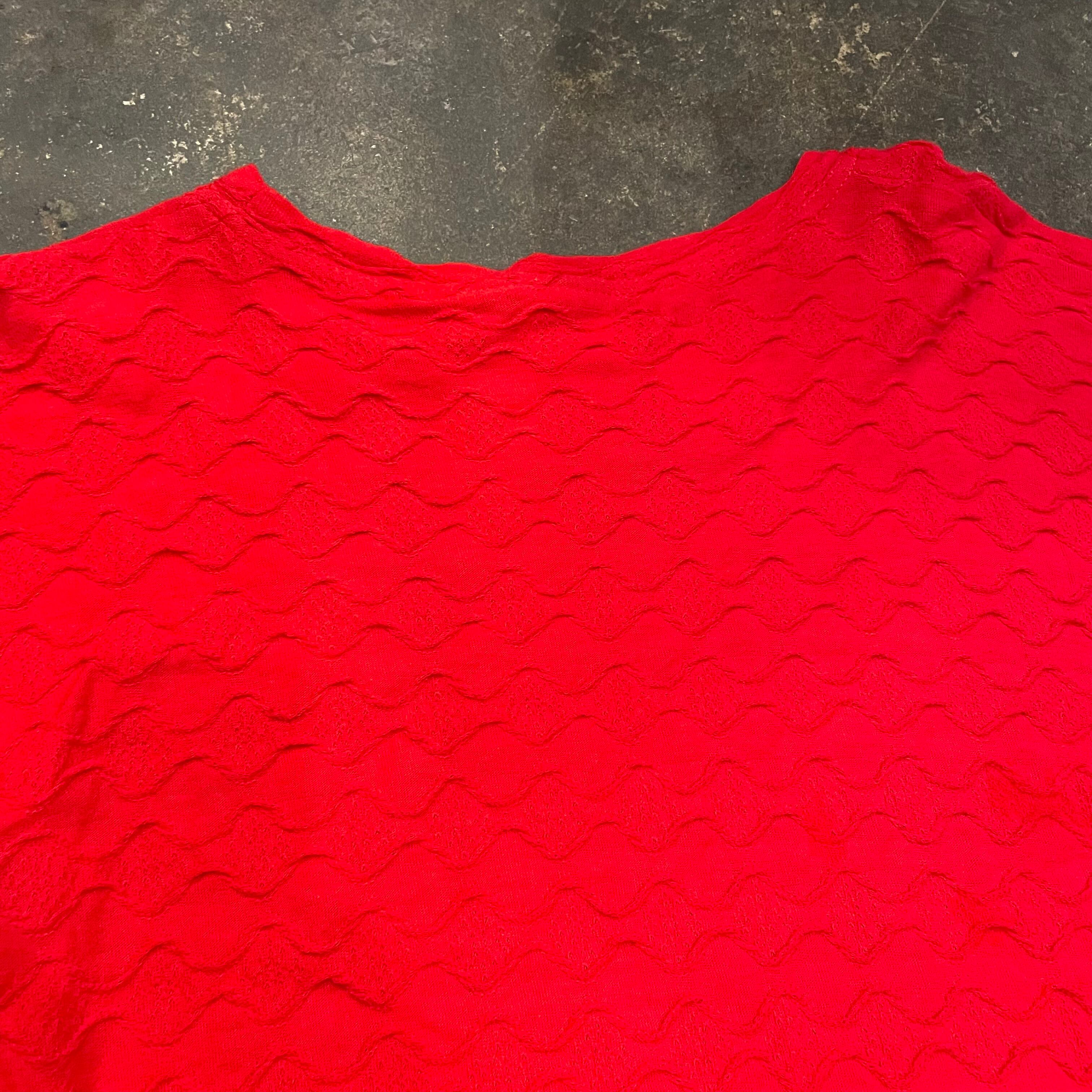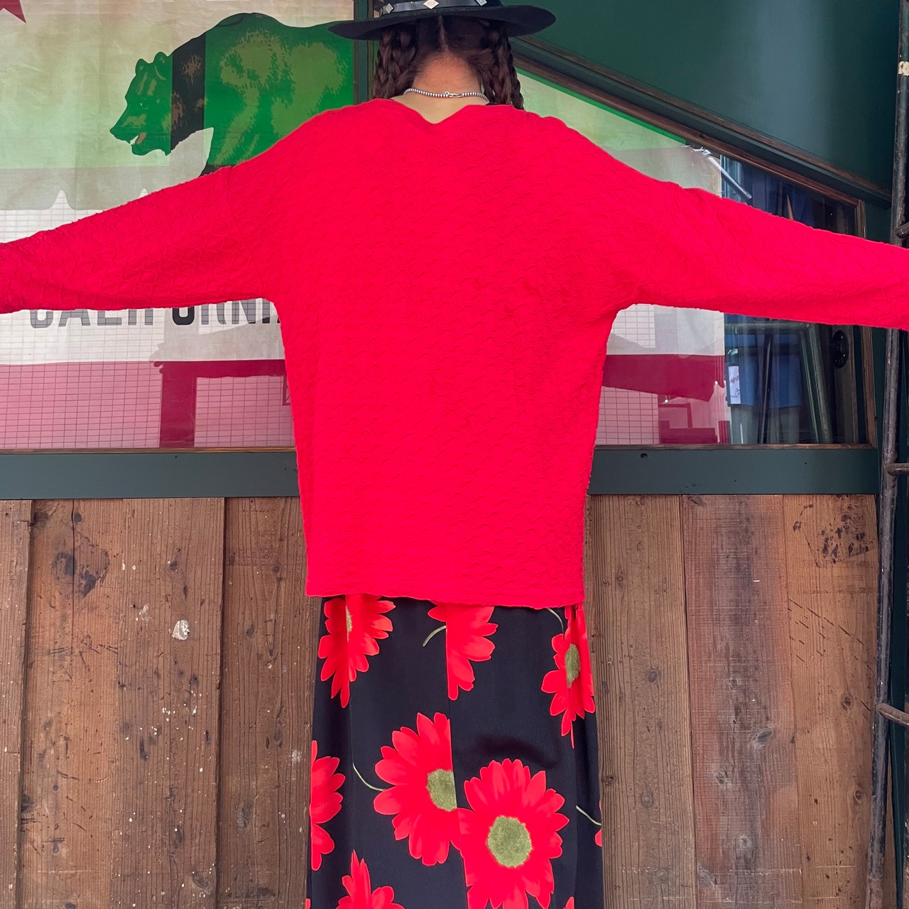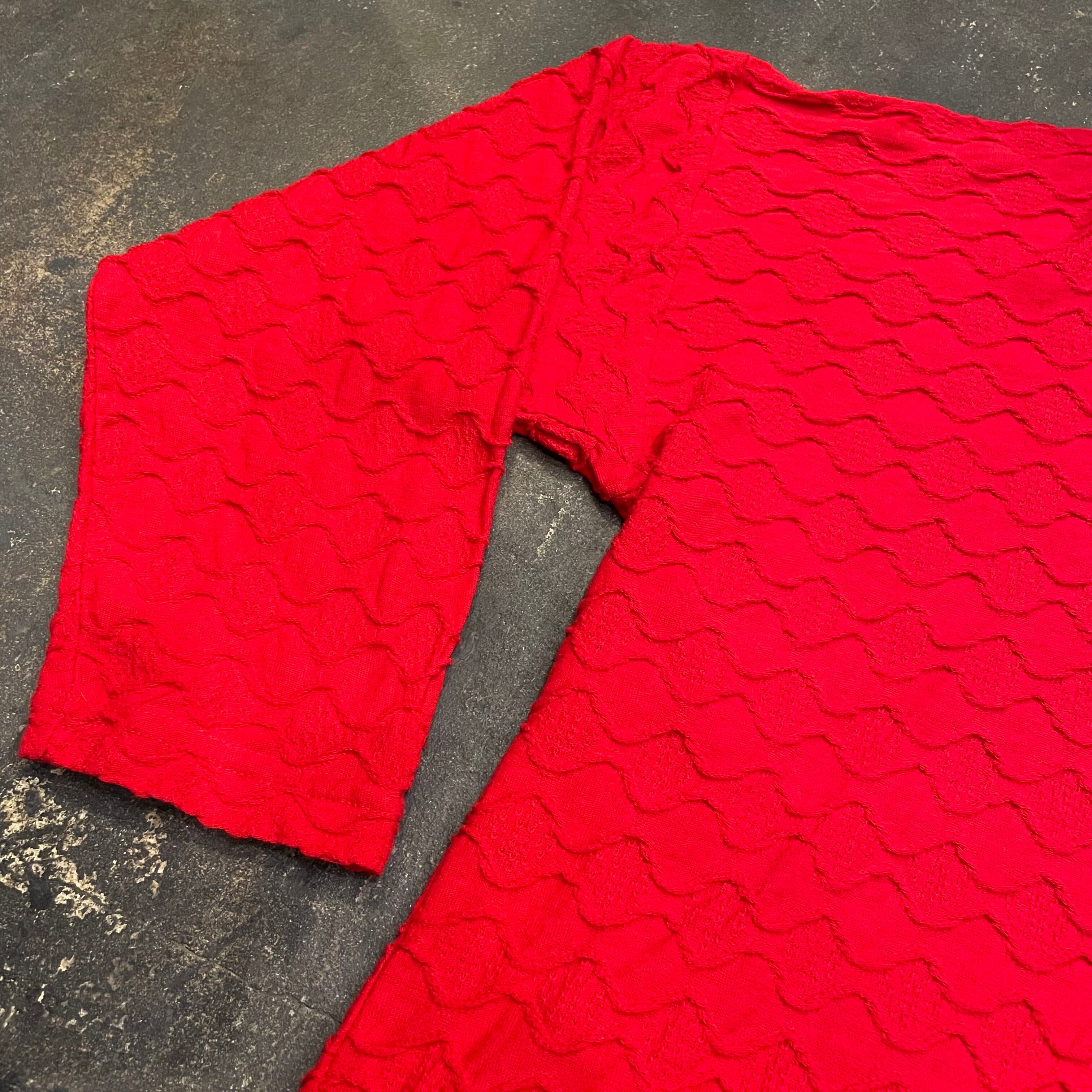 真っ赤になみなみの編み目がかわいいコットン素材のカットソーです。