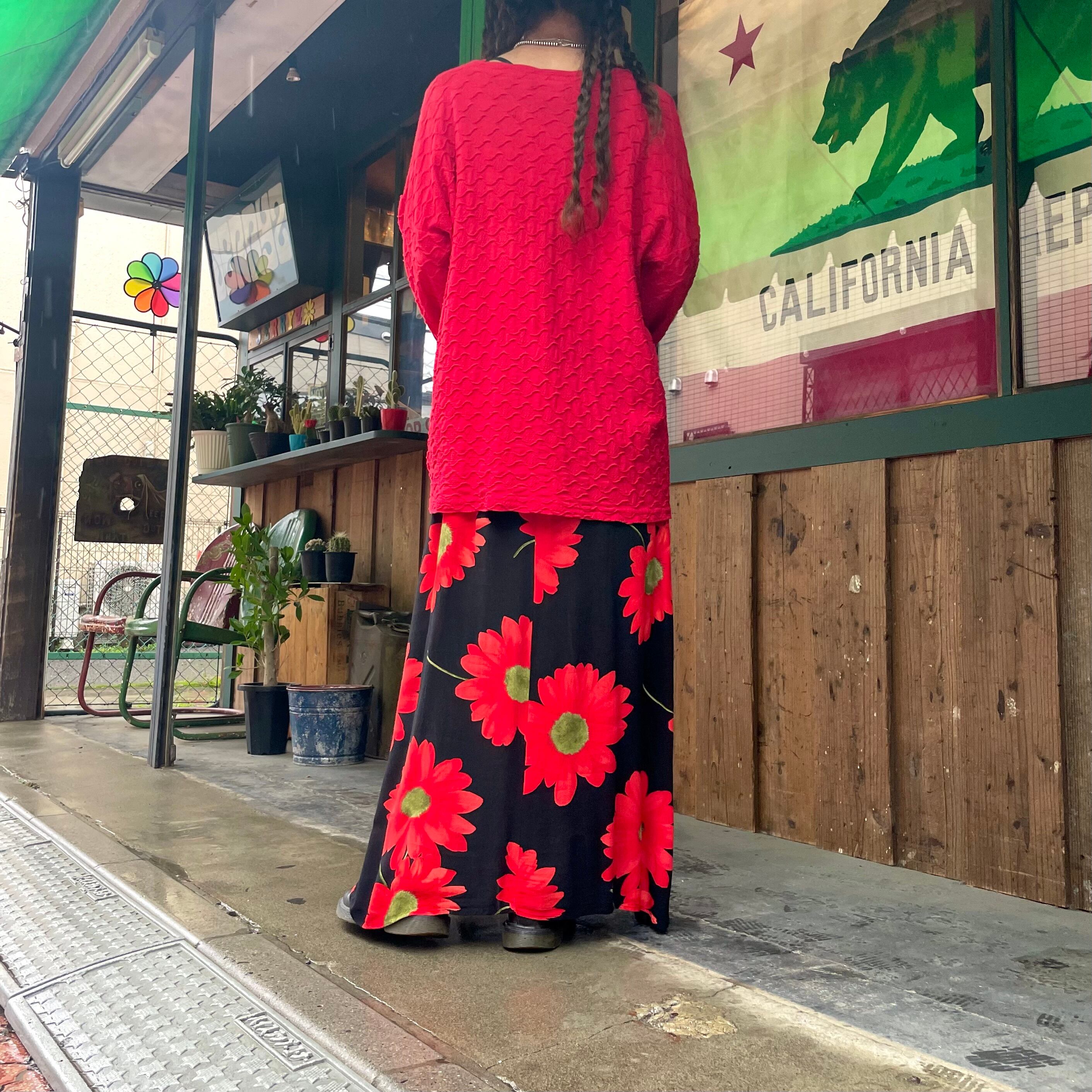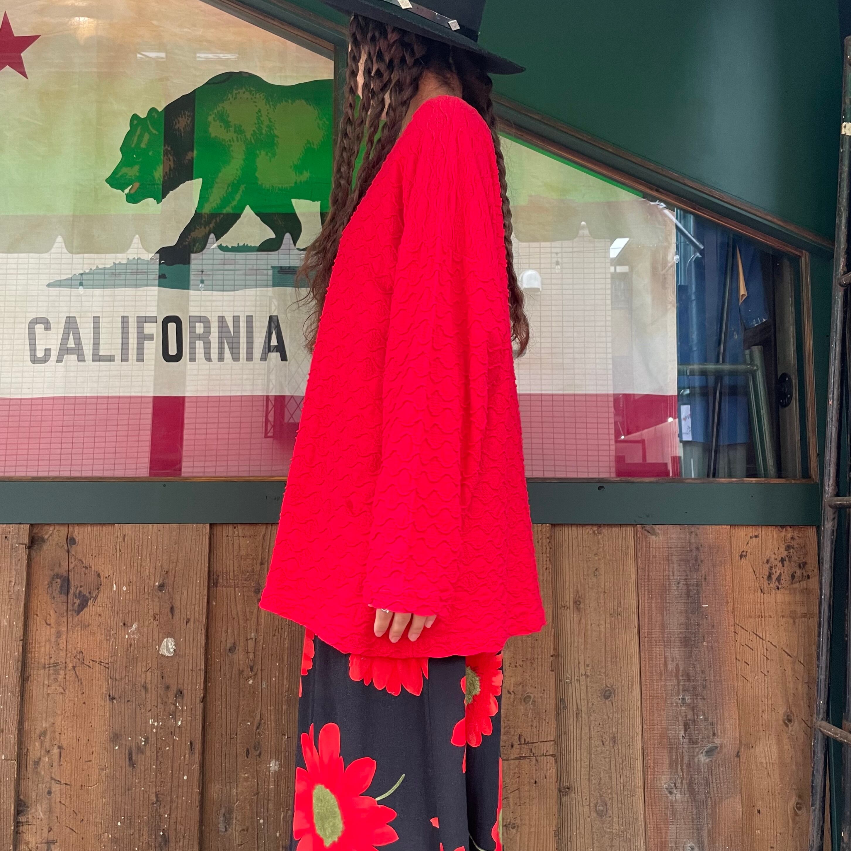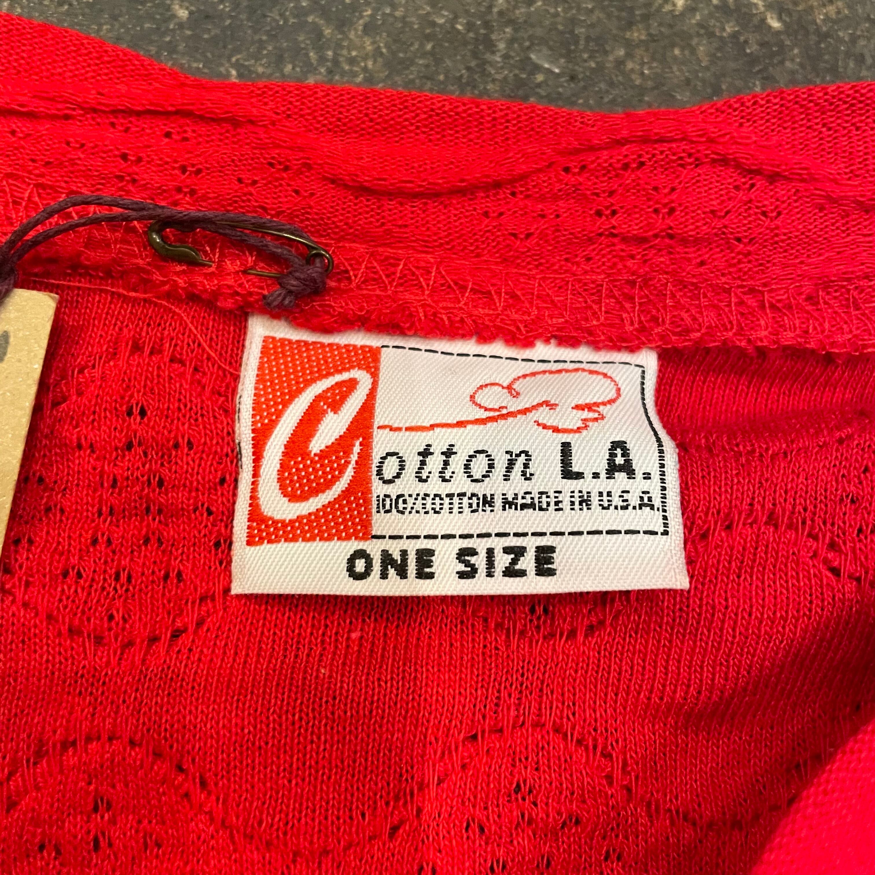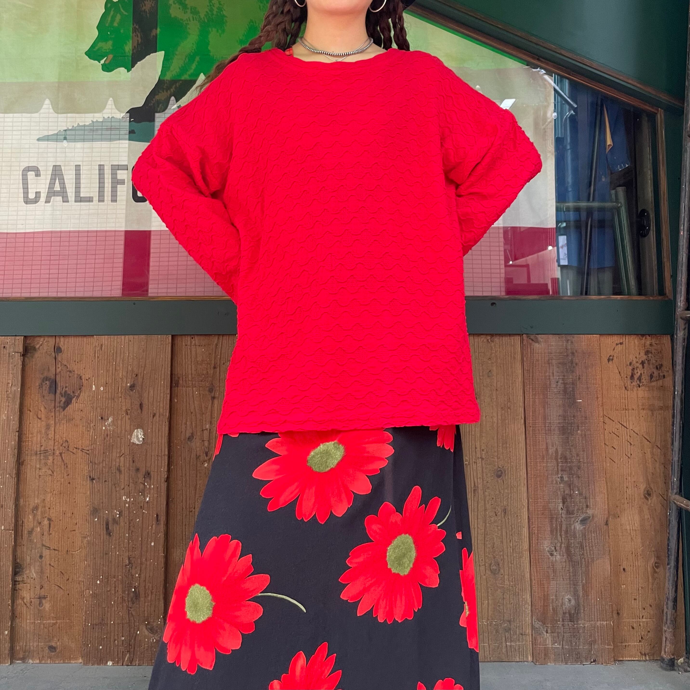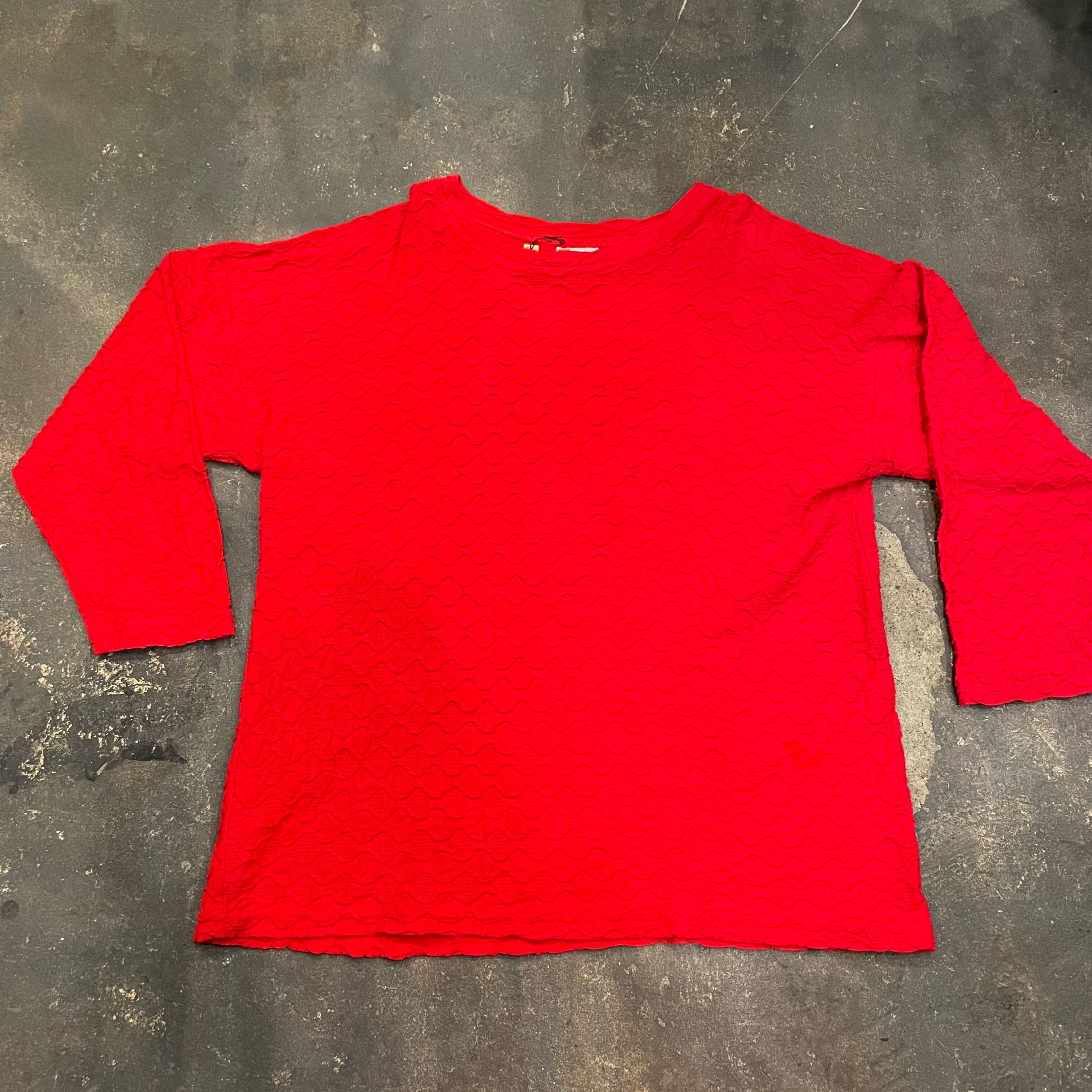 真っ赤になみなみの編み目がかわいいコットン素材のカットソーです。