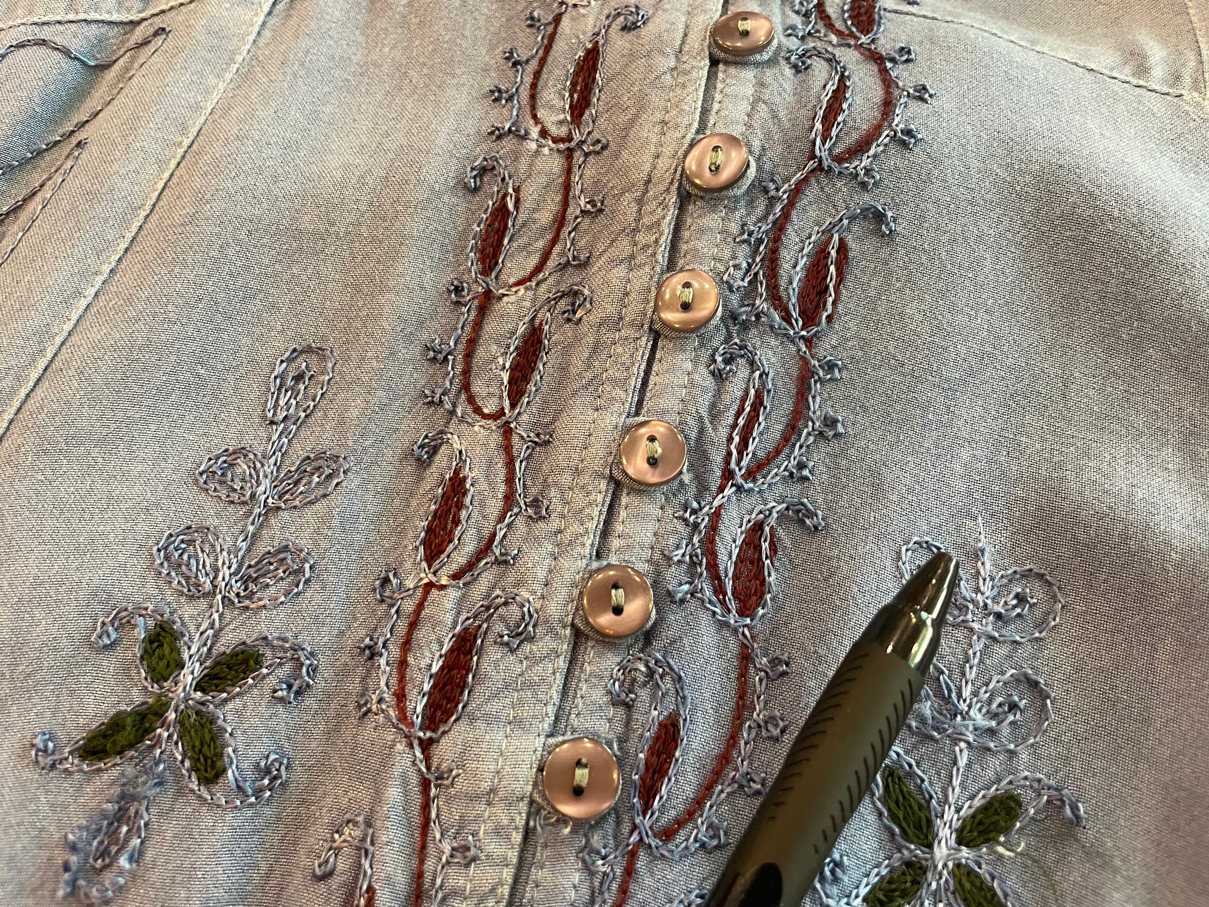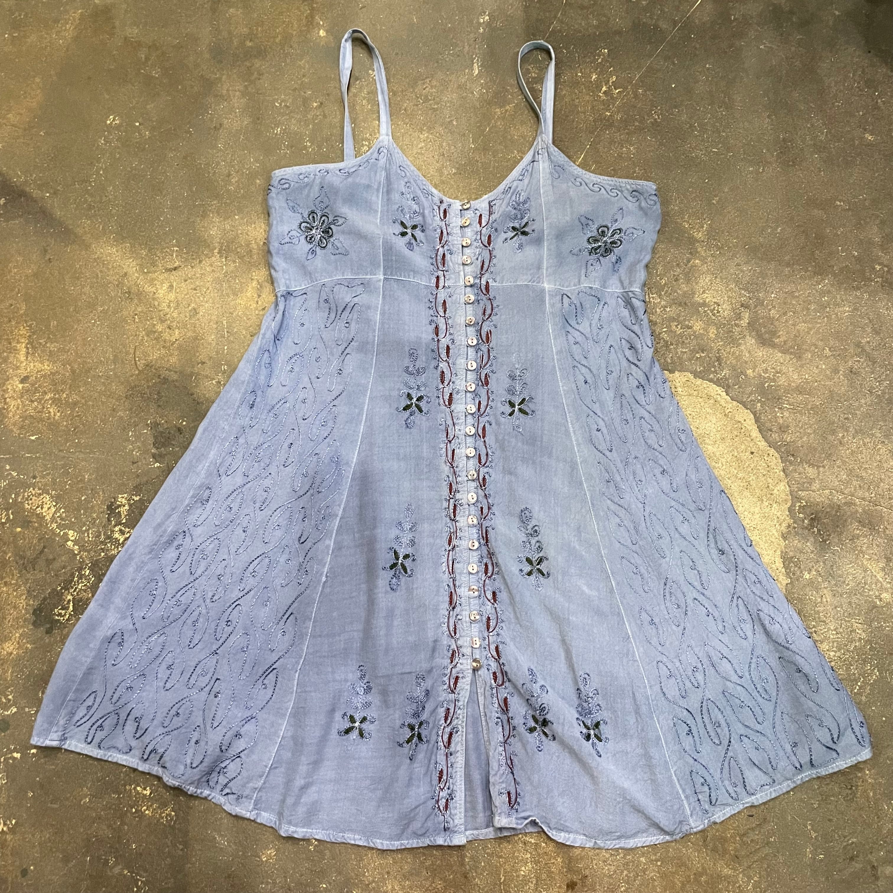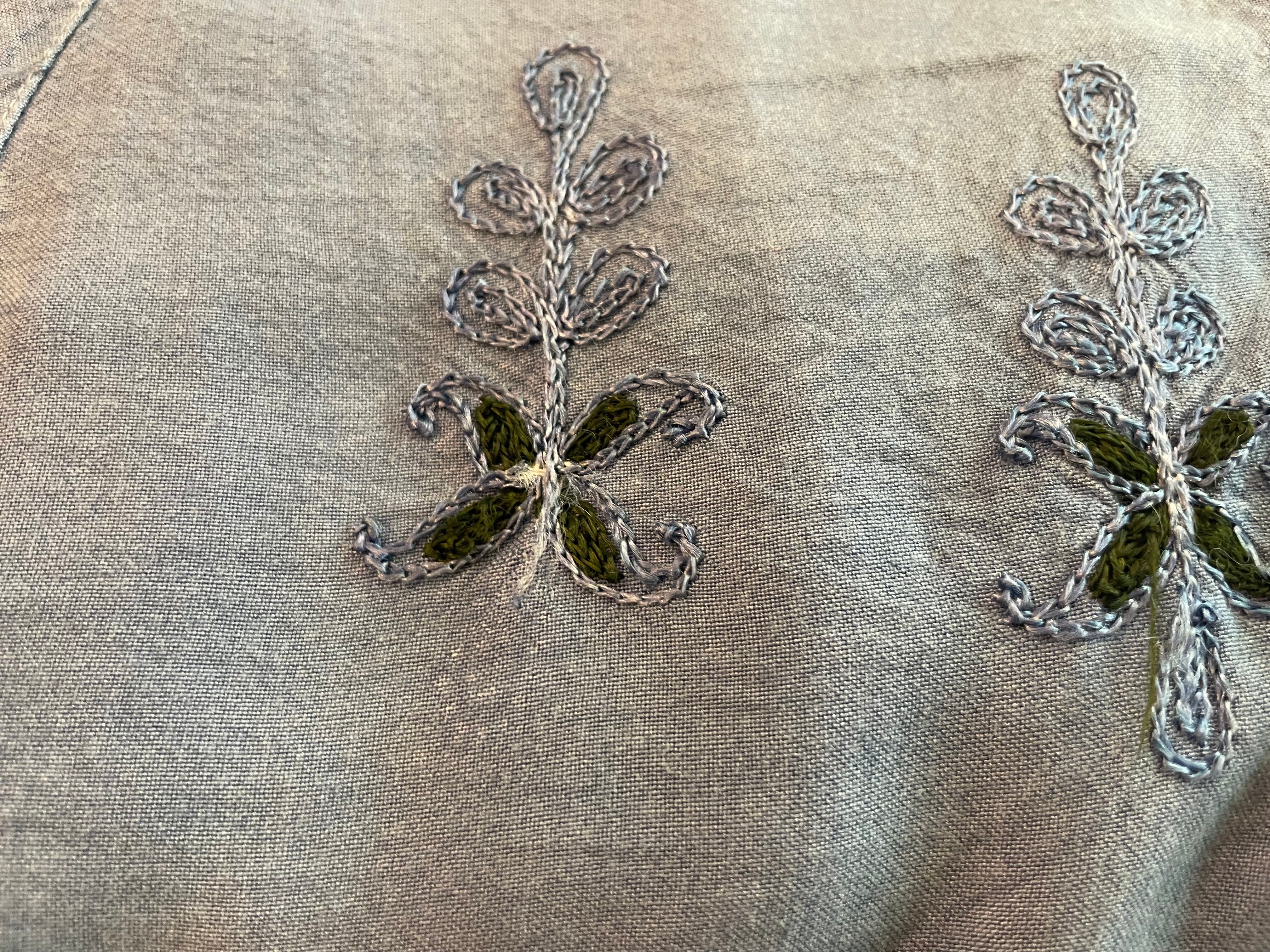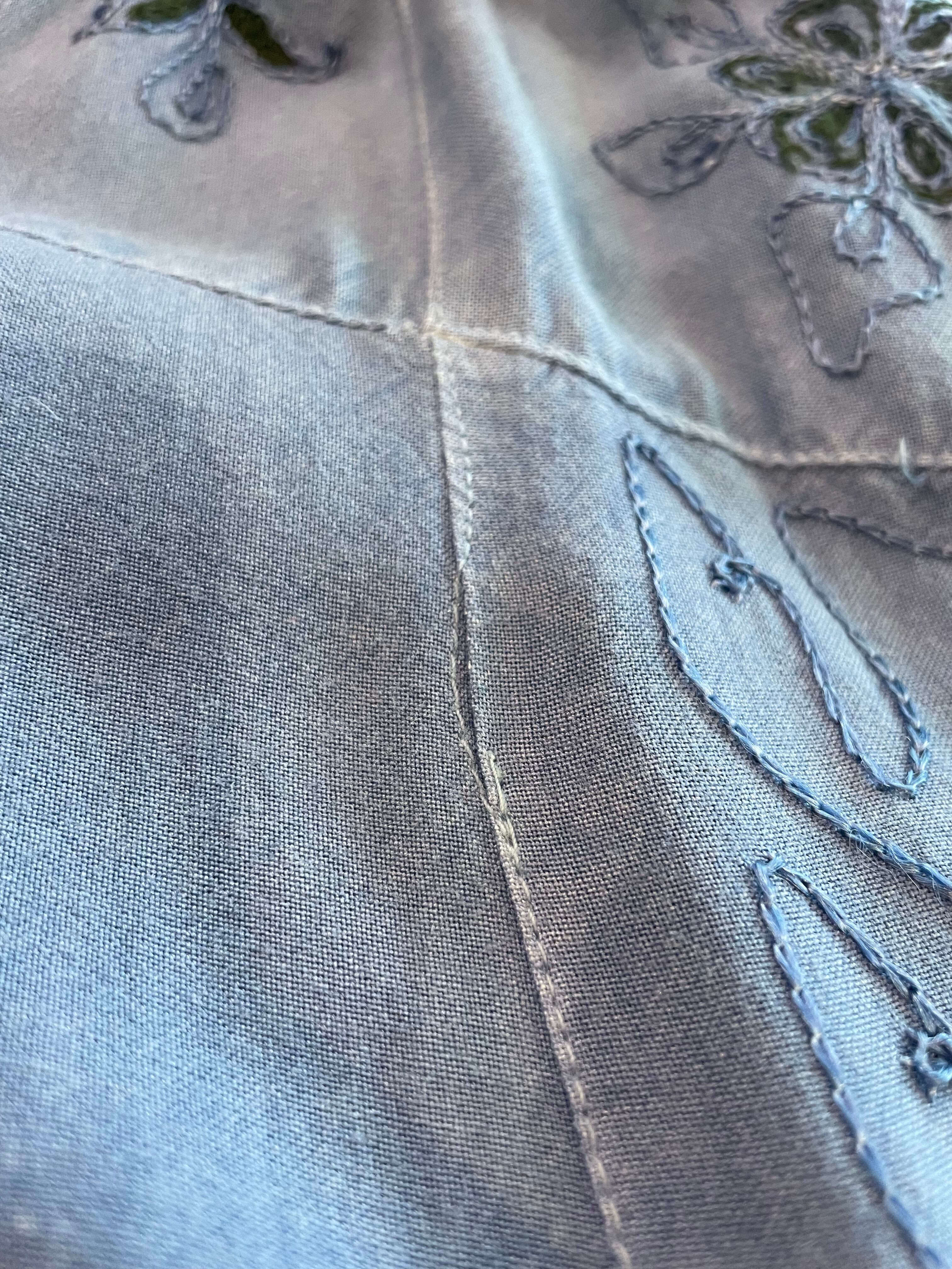 レーヨン素材でとろんと柔らかい肌触りが気持ち良いですし、刺繍がたくさん施してあり雰囲気のある一枚です。