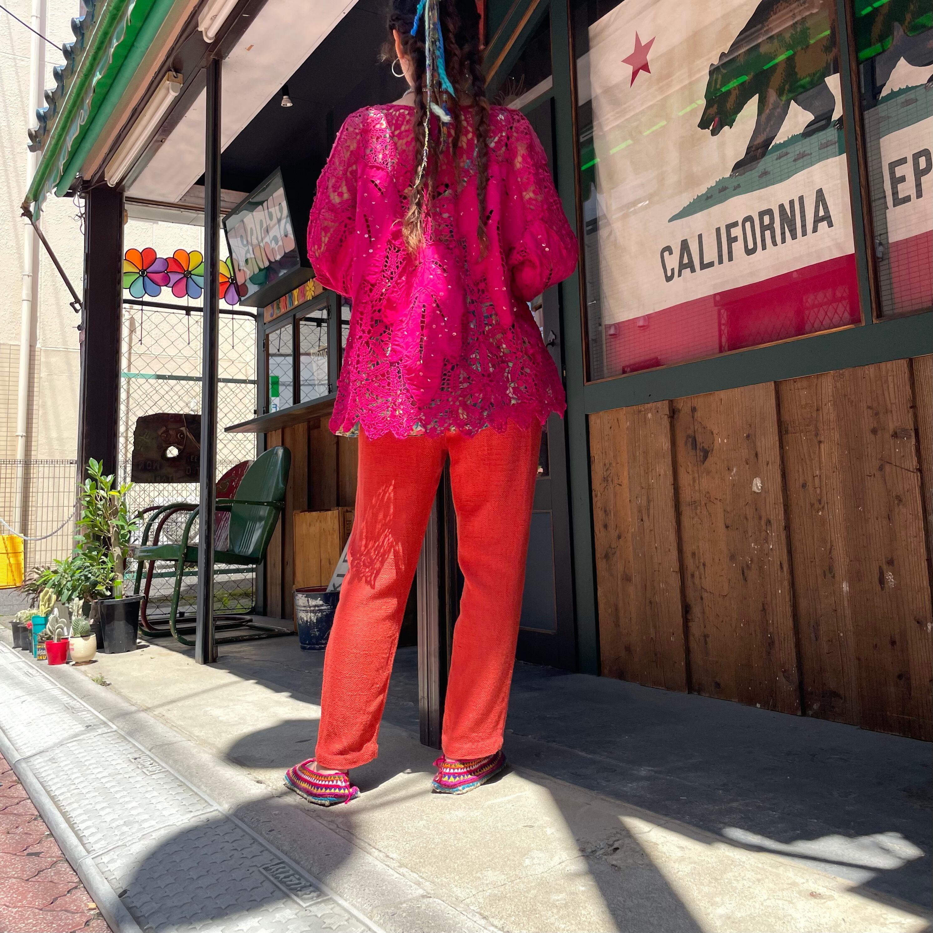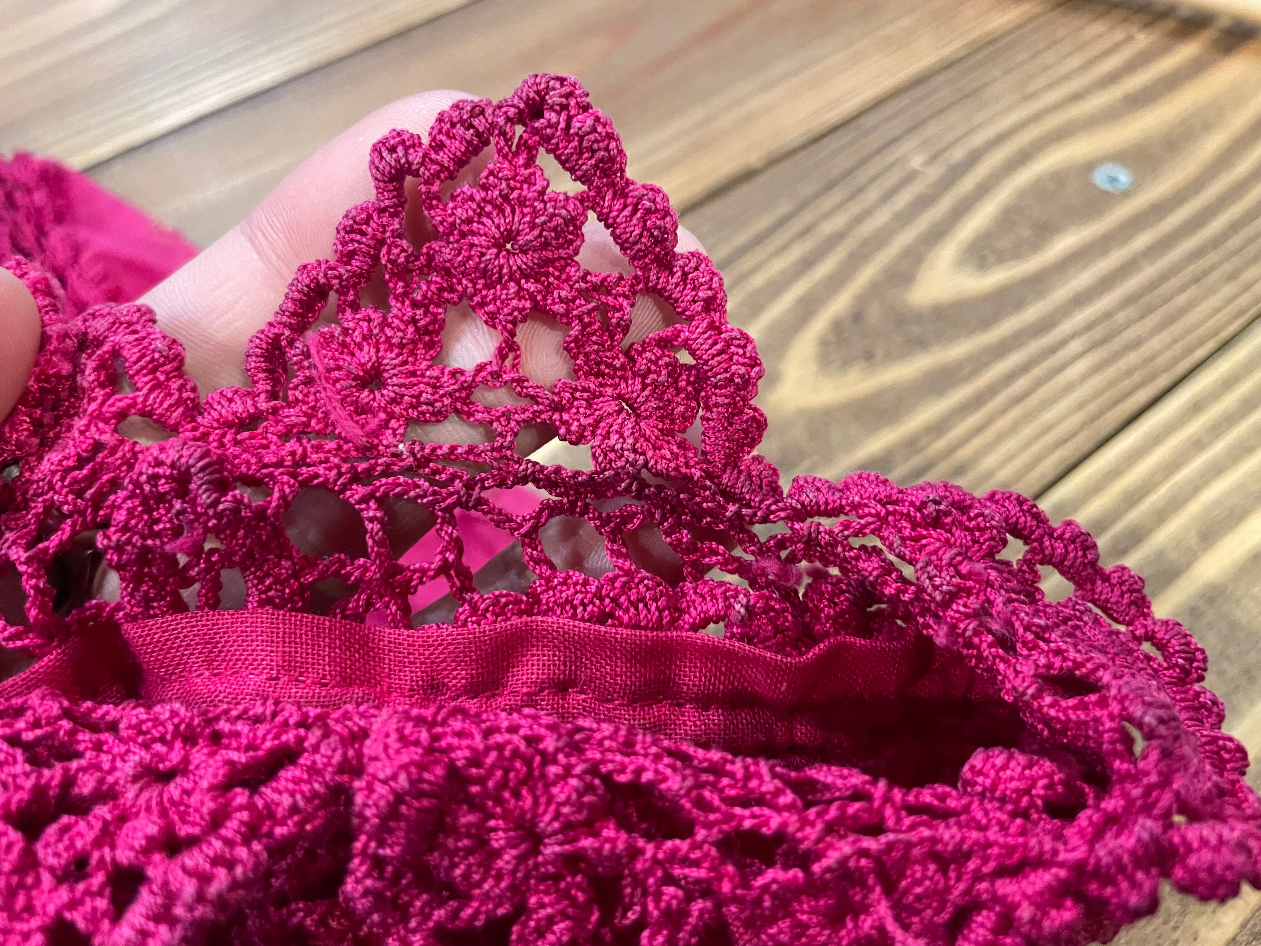 すけすけな編み地ですので中に合わせるアイテムの色を透けさせたり、肌を透けさせてもかわいいですね。