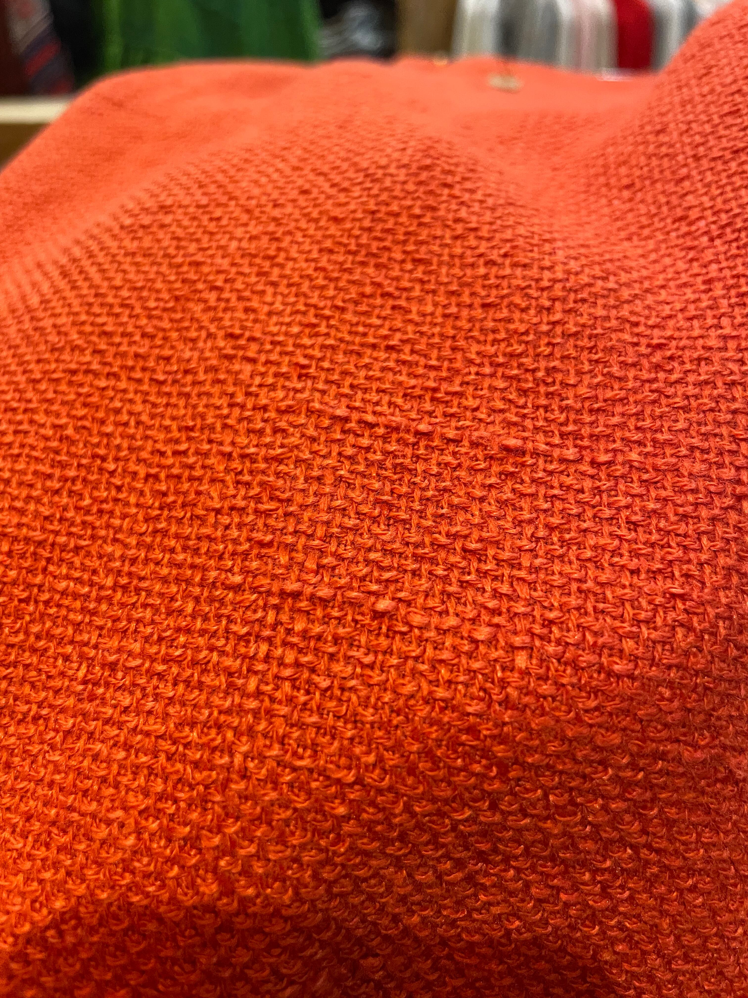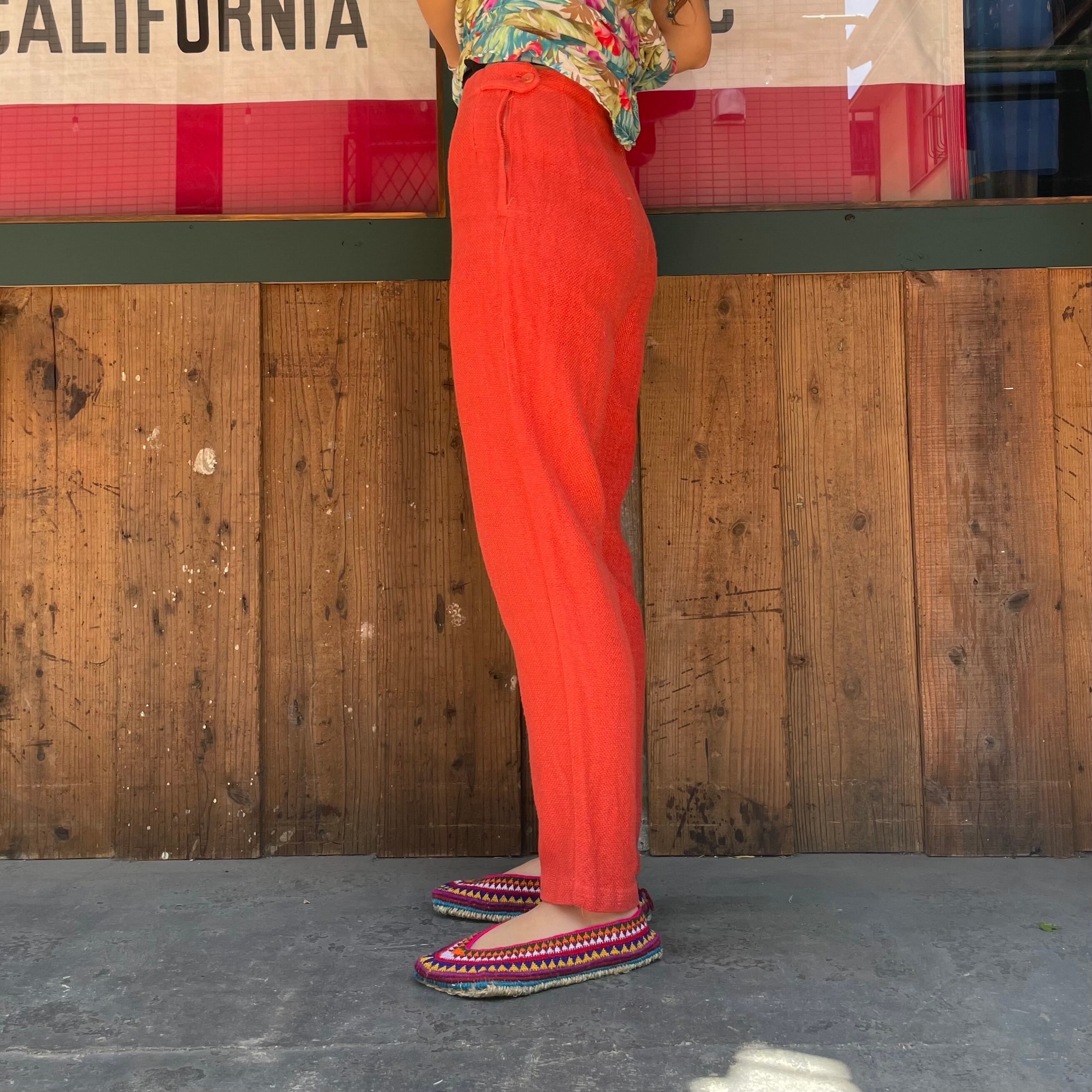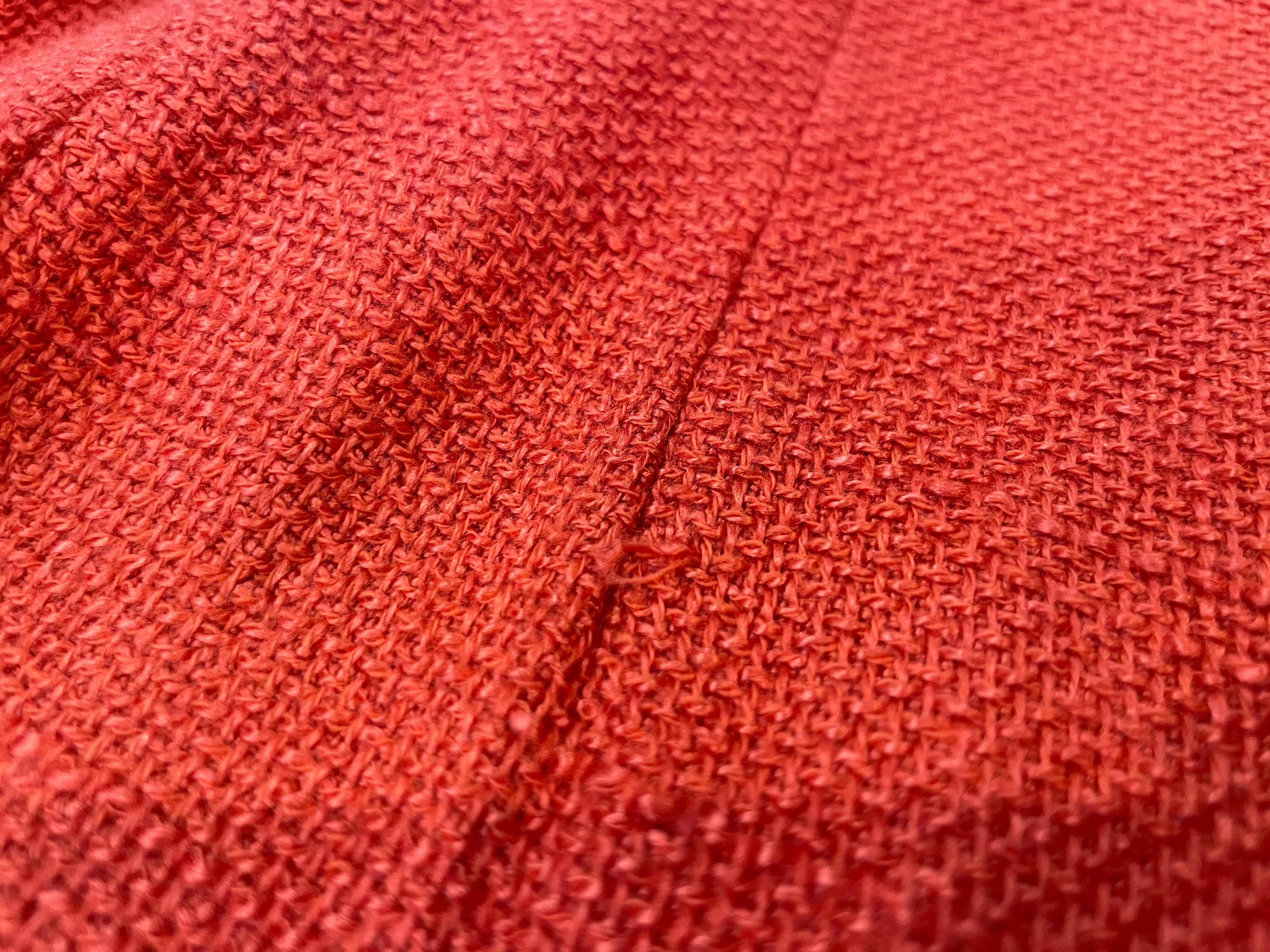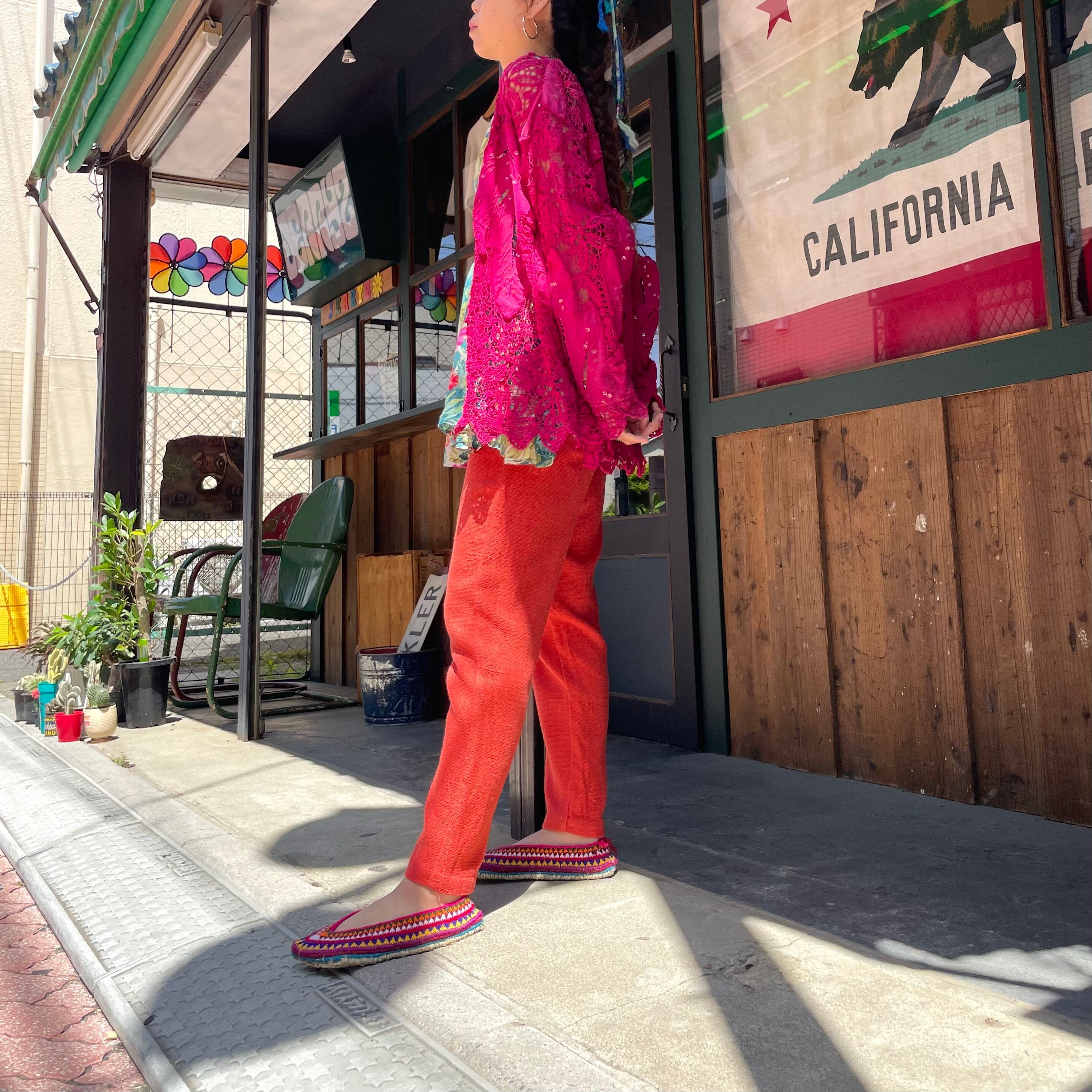 テーパードしてすっきりとしたシルエットが大人っぽく、ツイードのような表情のある織りで、シンプルですがおしゃれな雰囲気のある一枚です。