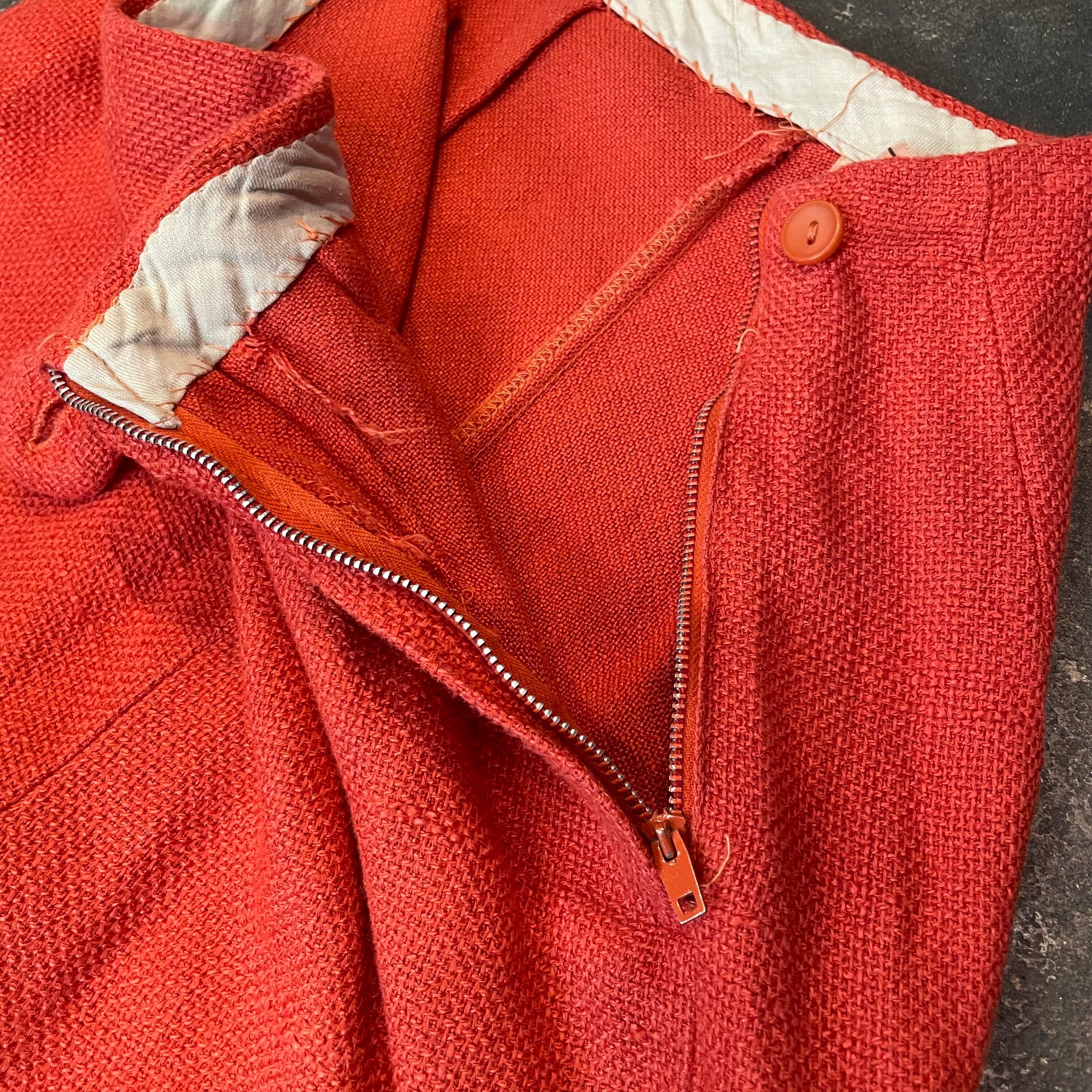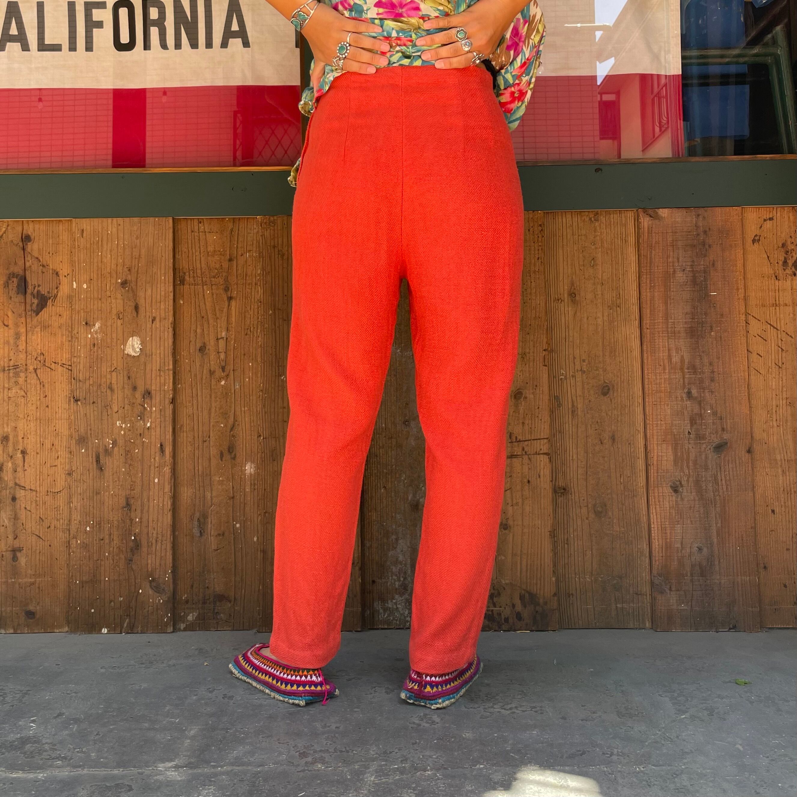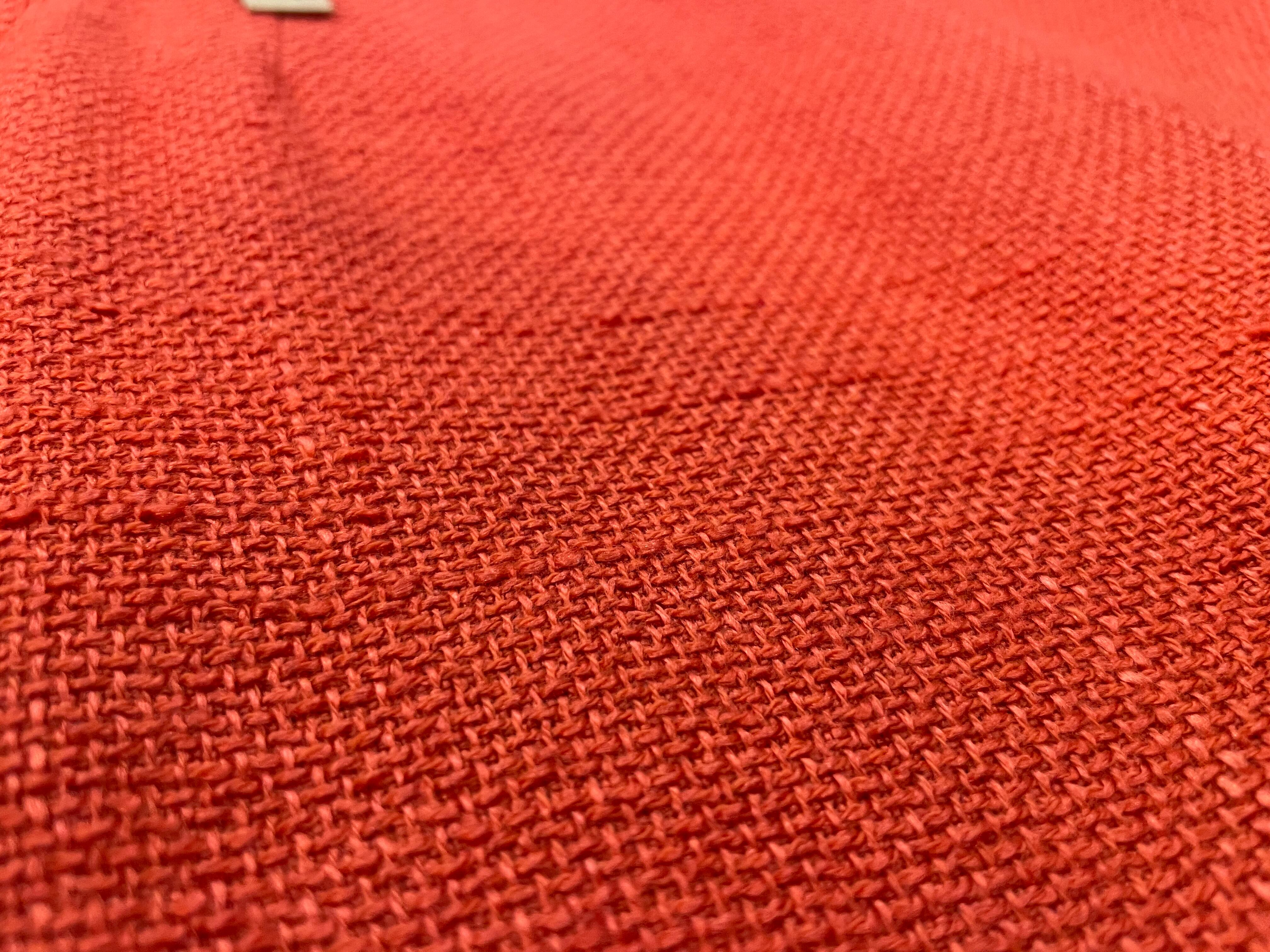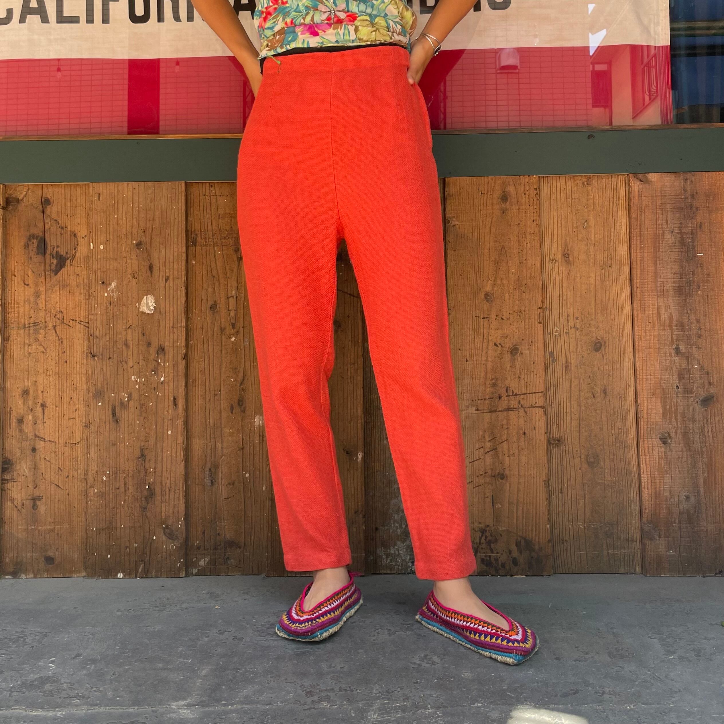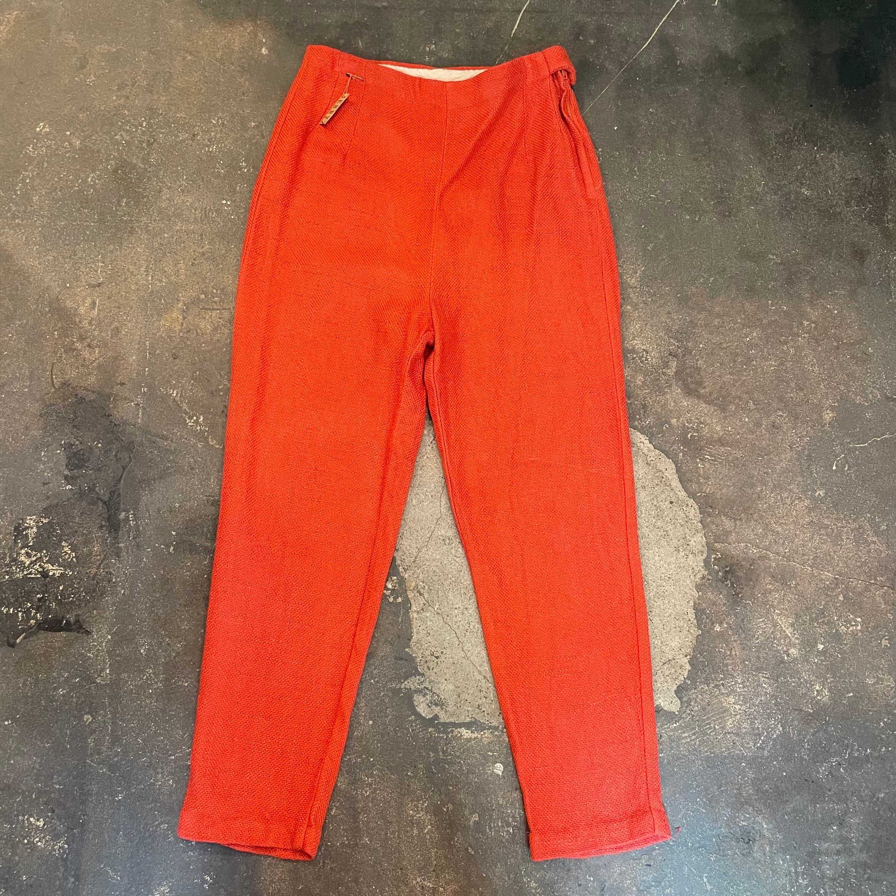 テーパードしてすっきりとしたシルエットが大人っぽく、ツイードのような表情のある織りで、シンプルですがおしゃれな雰囲気のある一枚です。