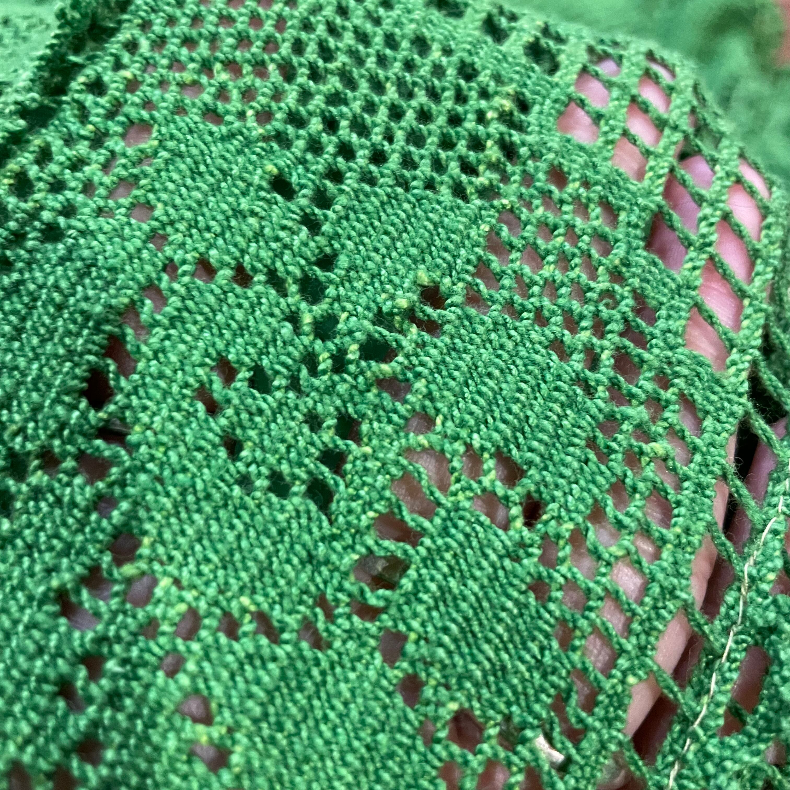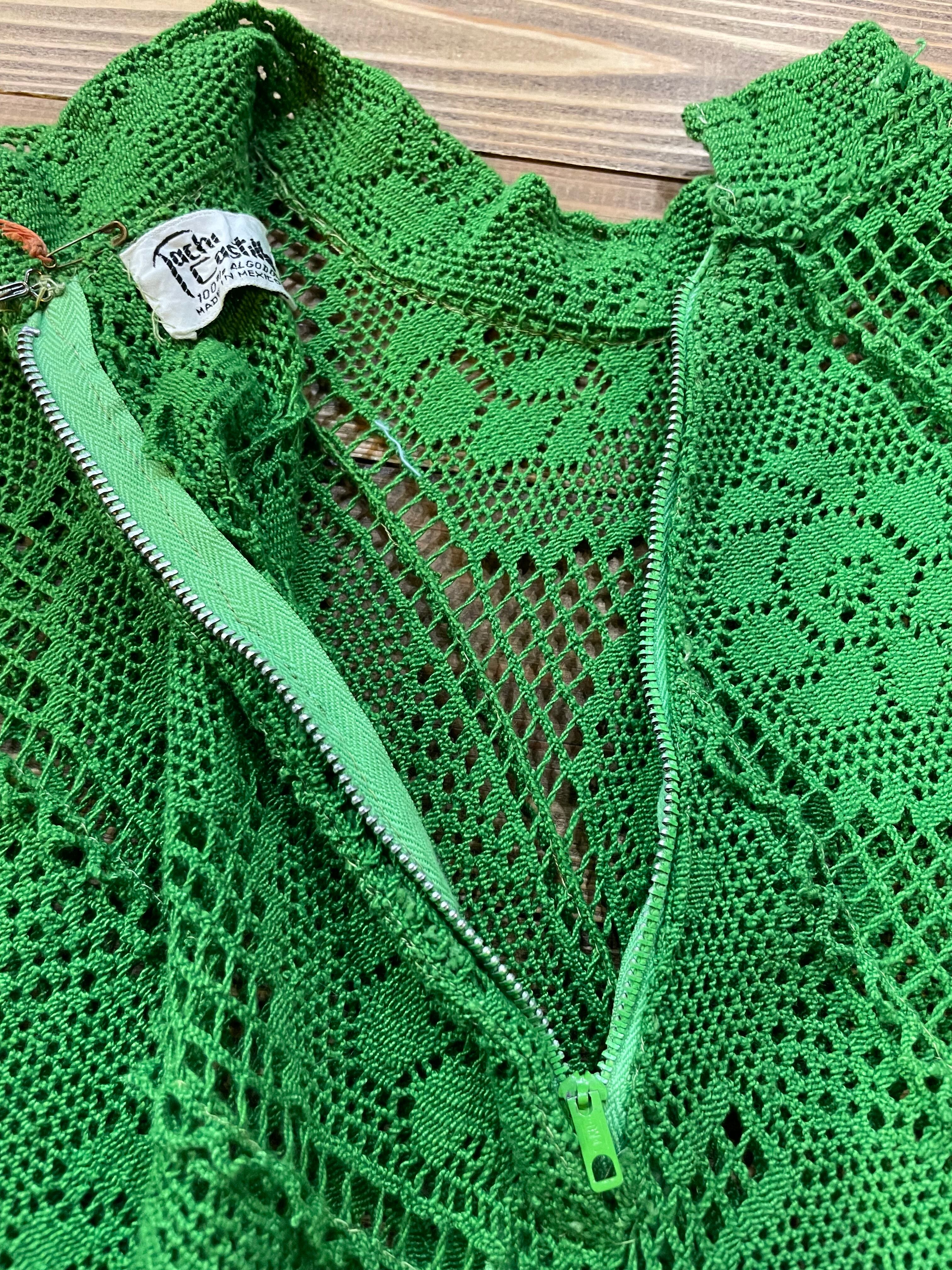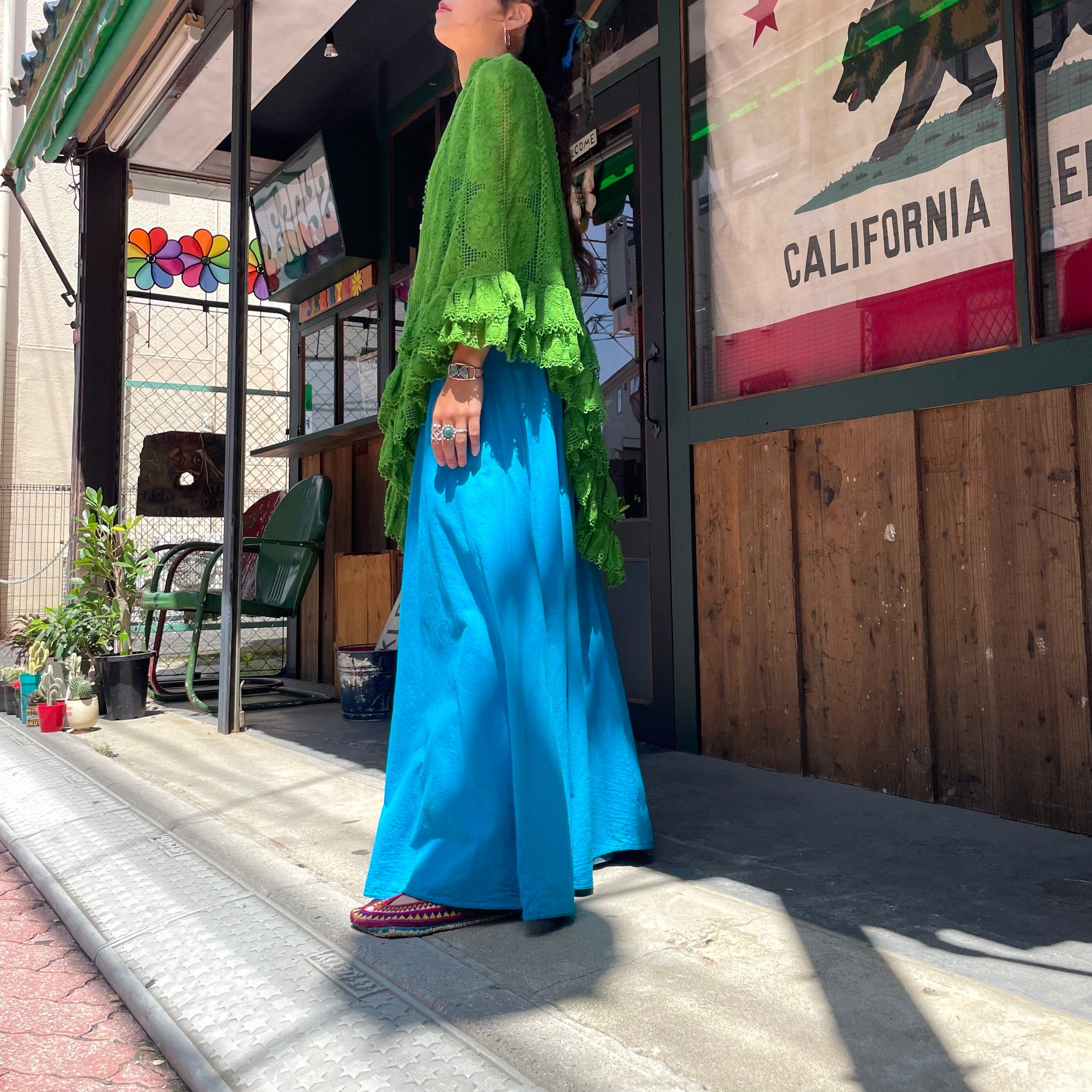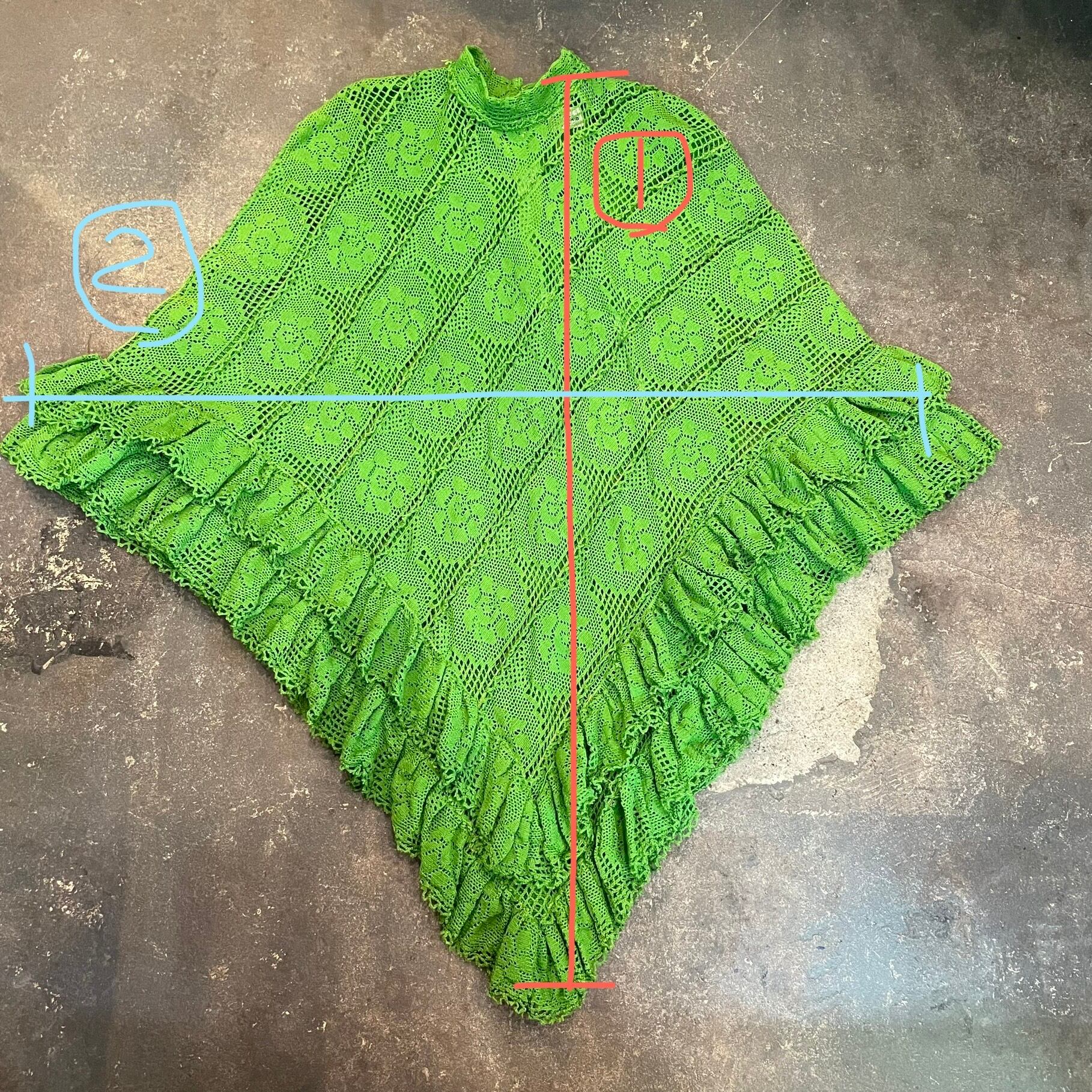 鮮やかなキミドリ色が目を惹くレースのポンチョです。
