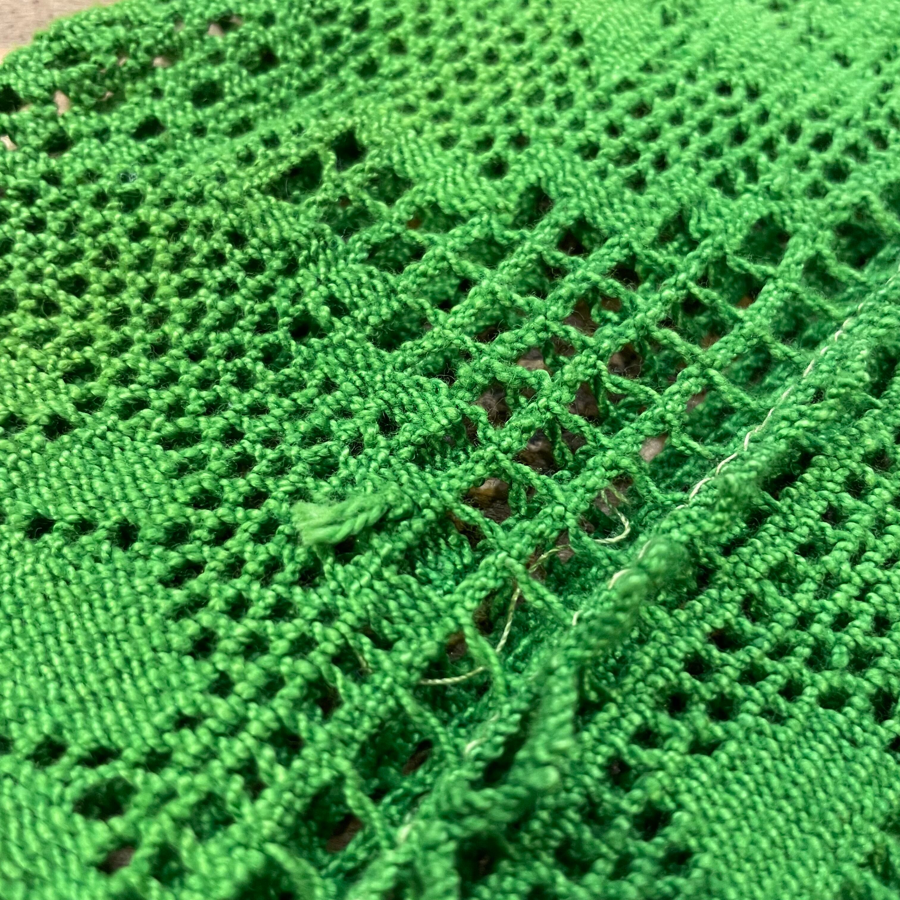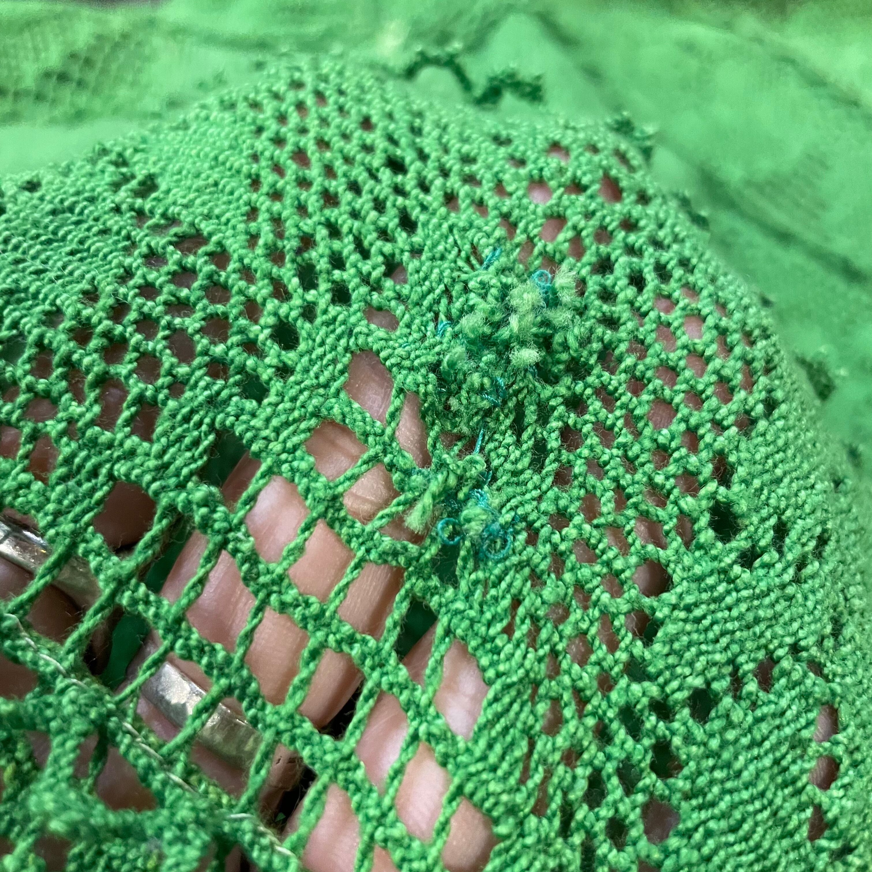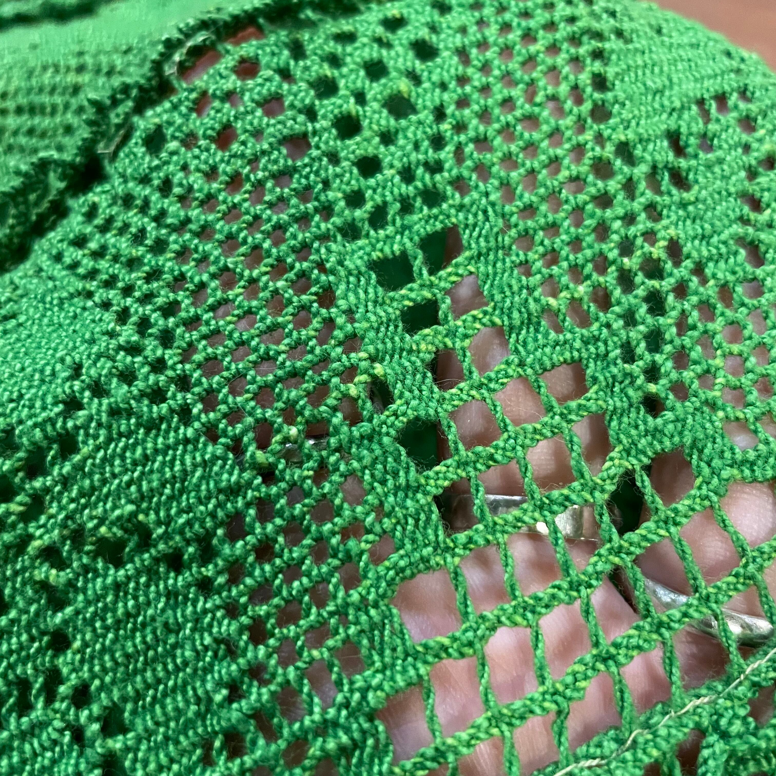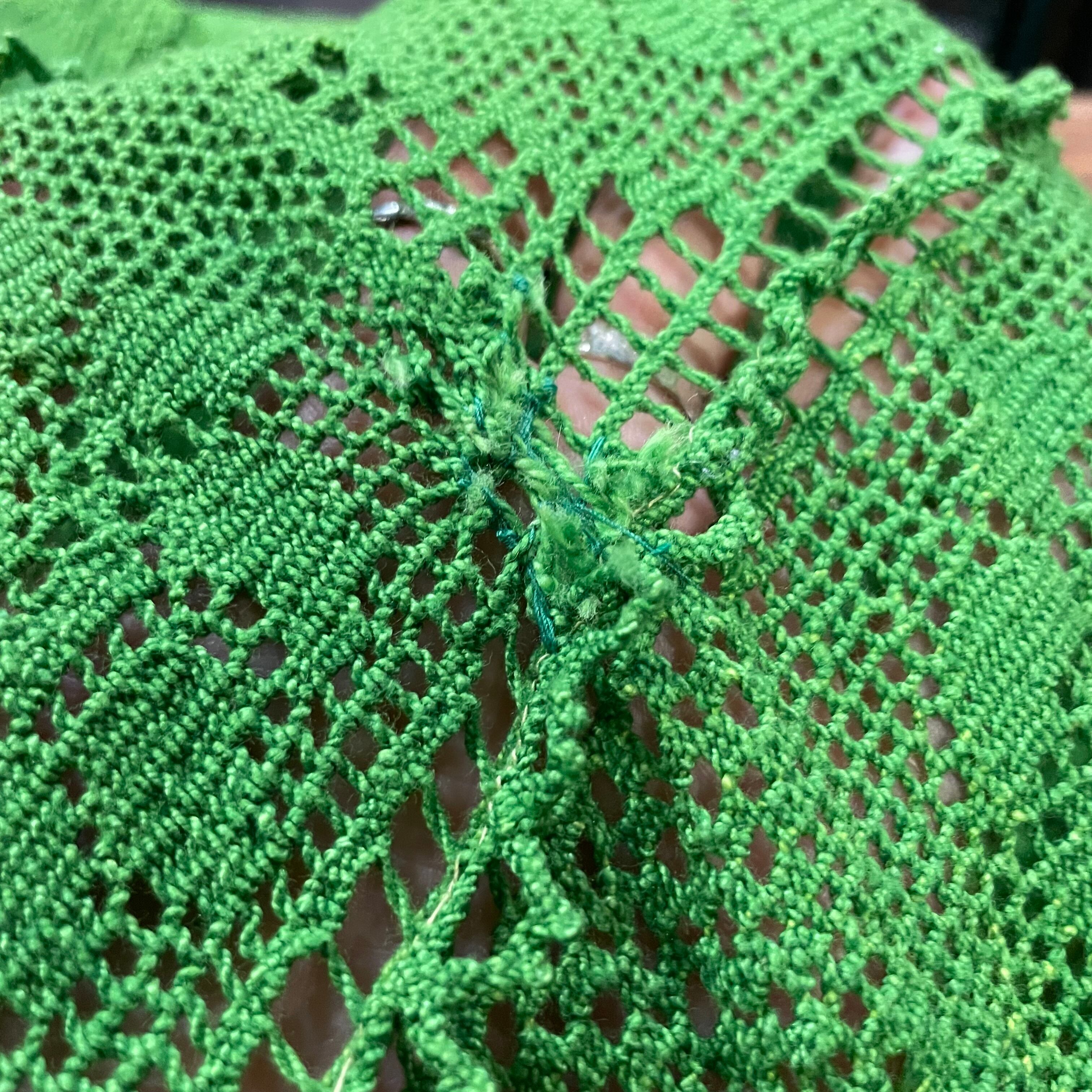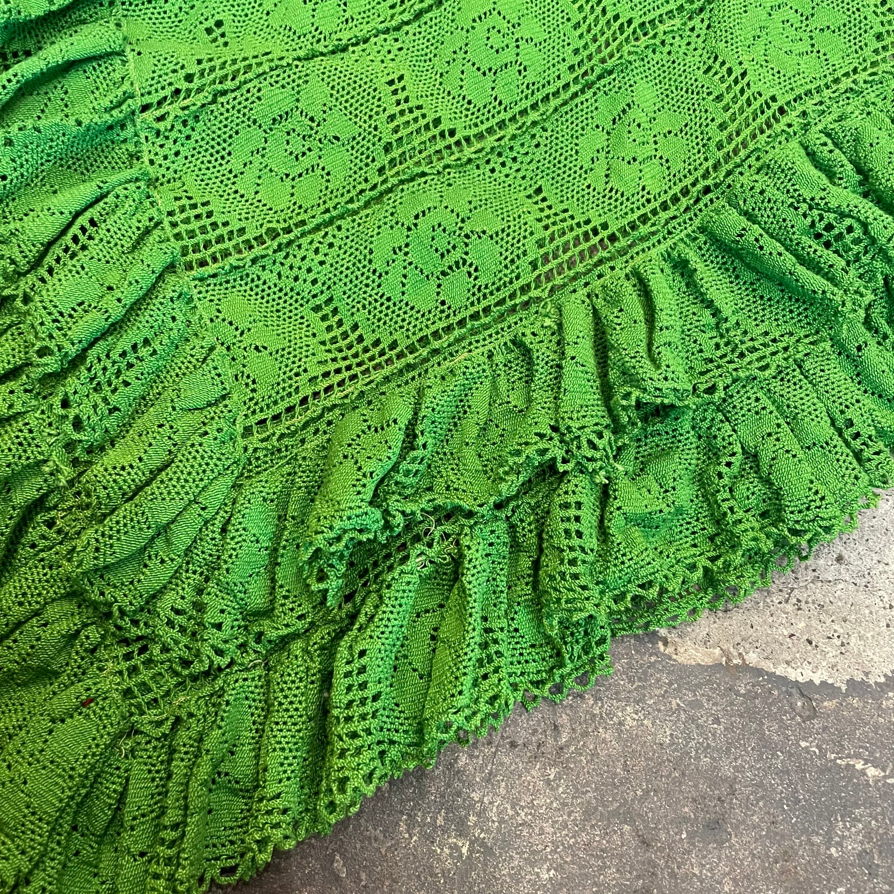 鮮やかなキミドリ色が目を惹くレースのポンチョです。