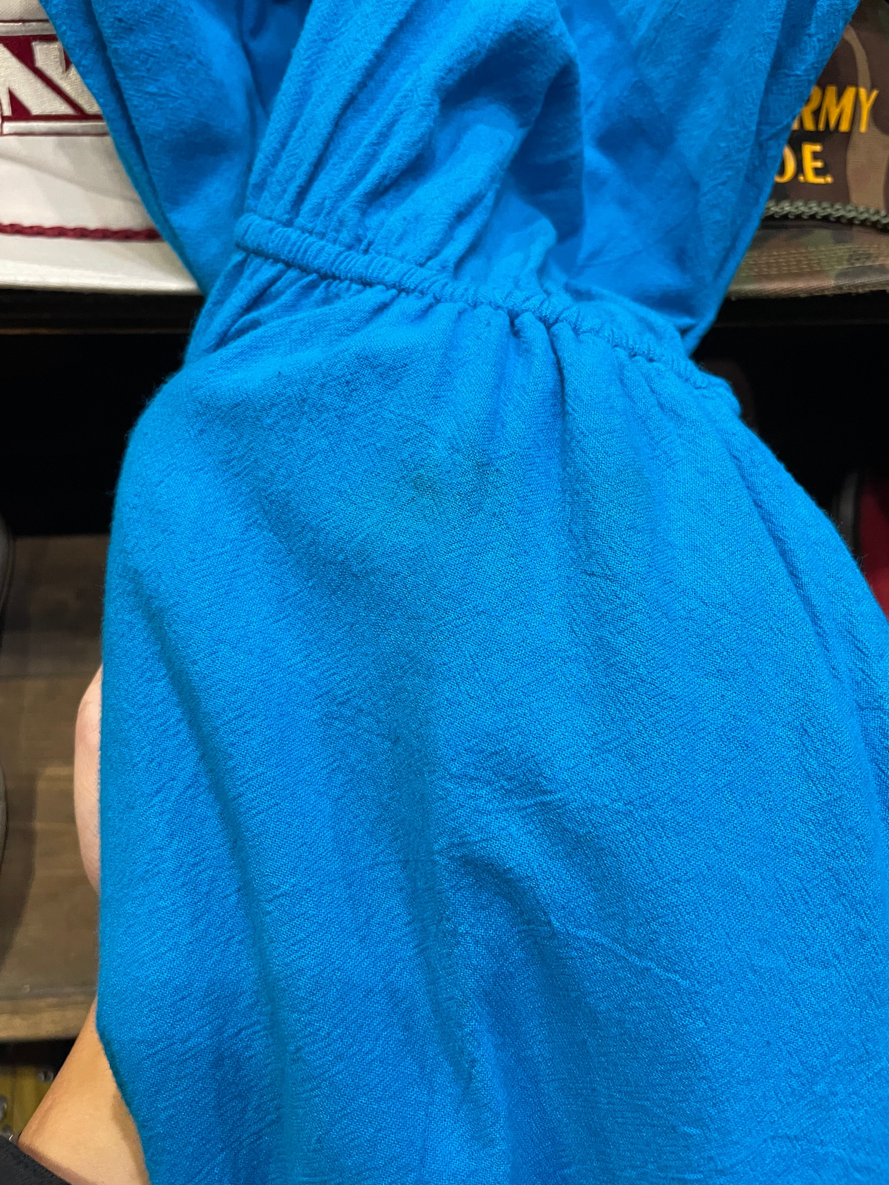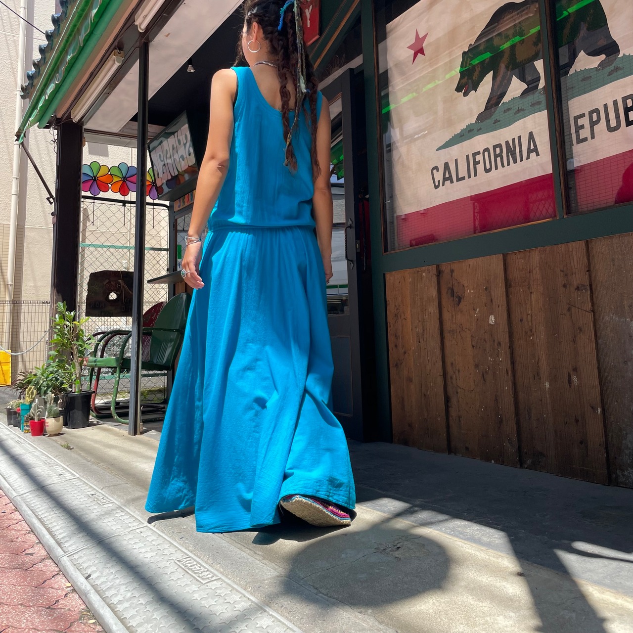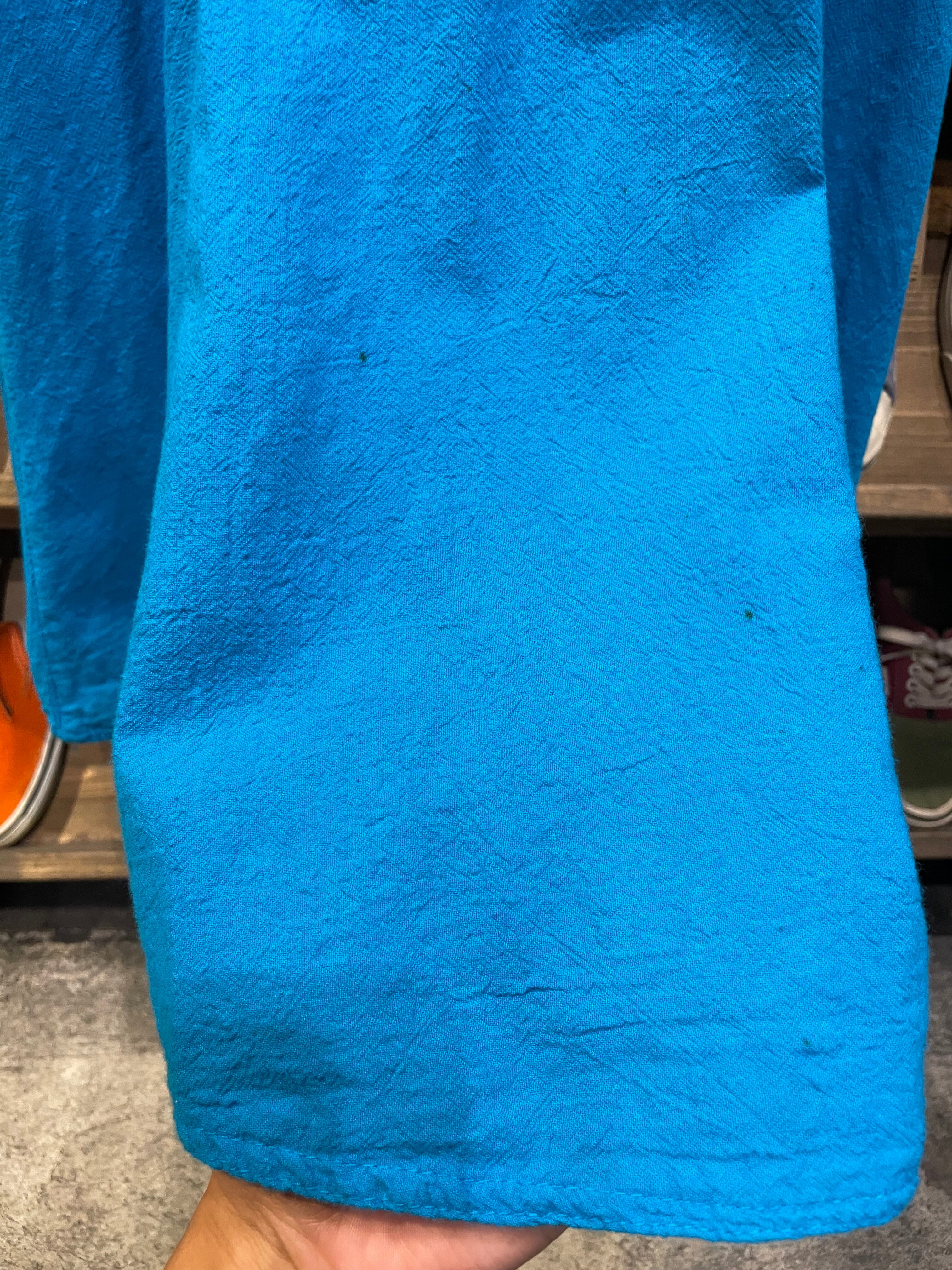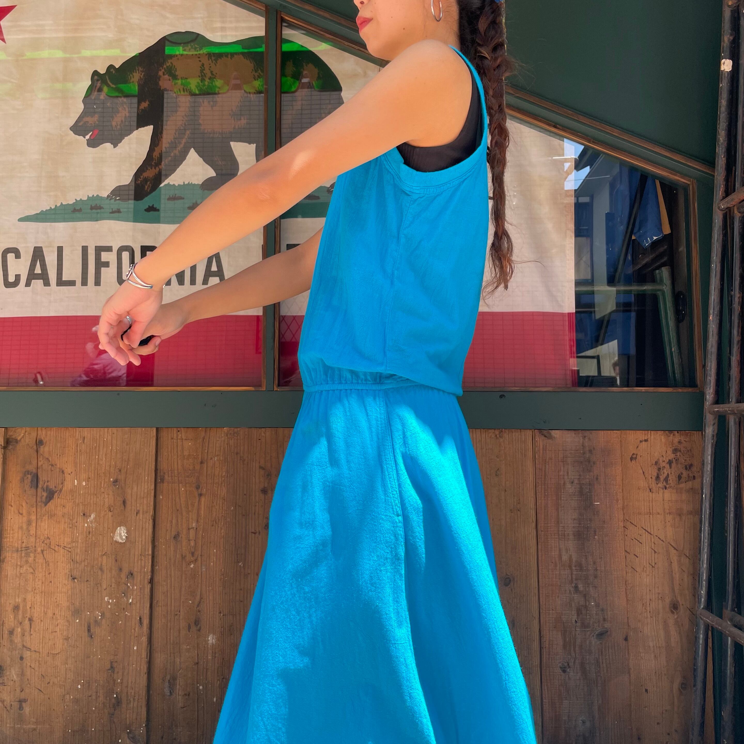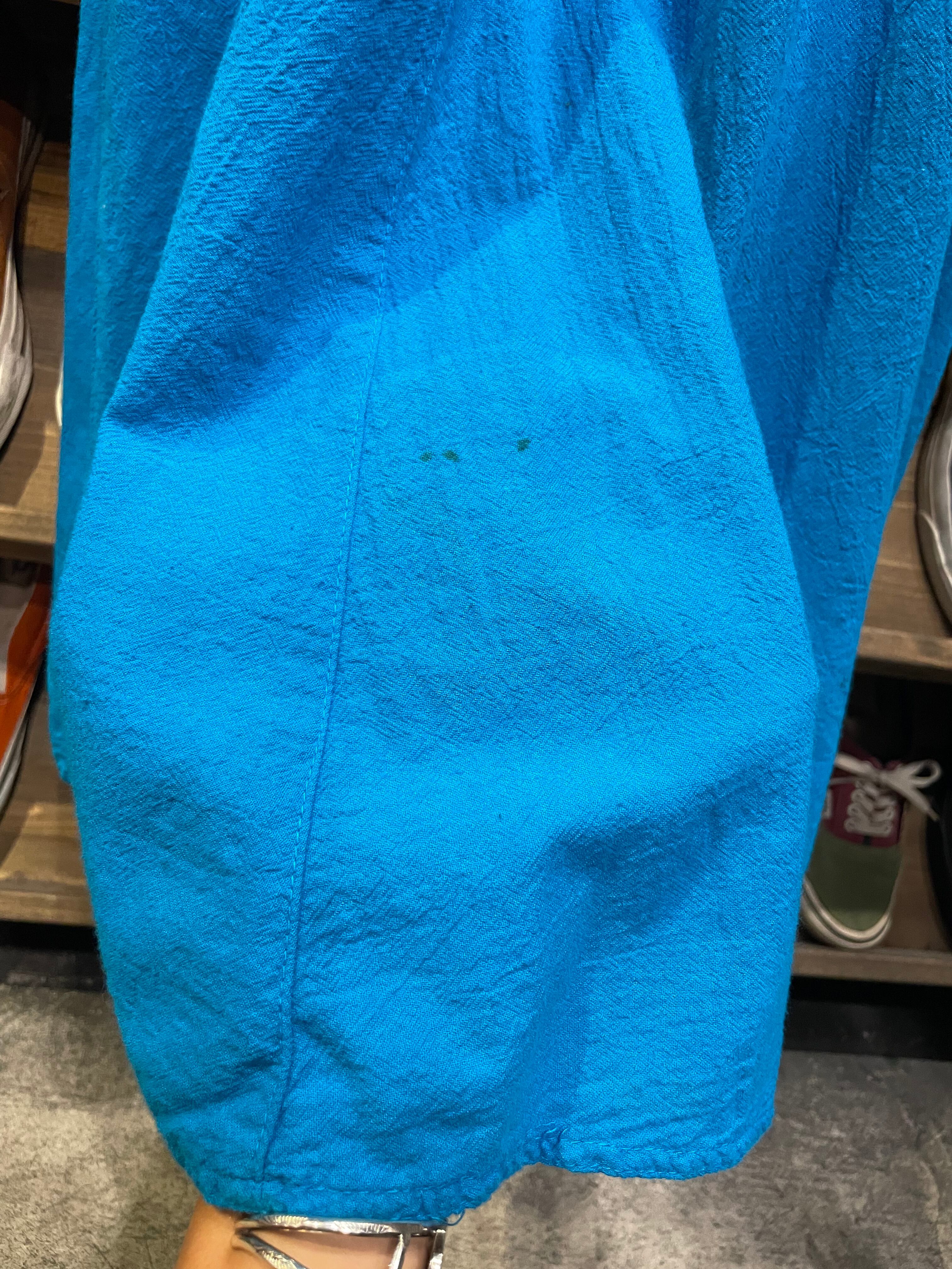 きれいな濃いめの水色がハッピーで夏らしいですし、とても楽ちんでこれからの季節におすすめな一枚です。