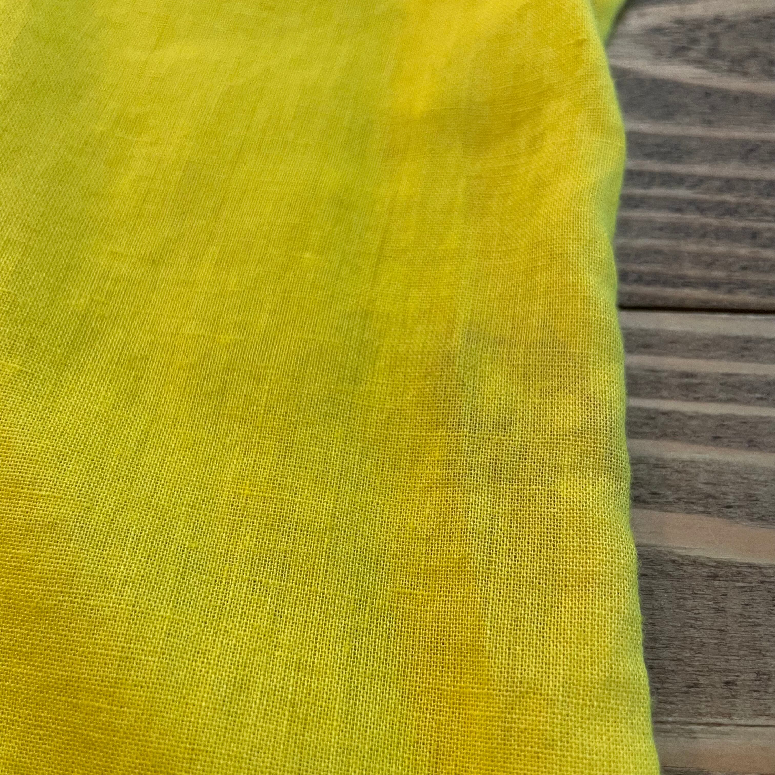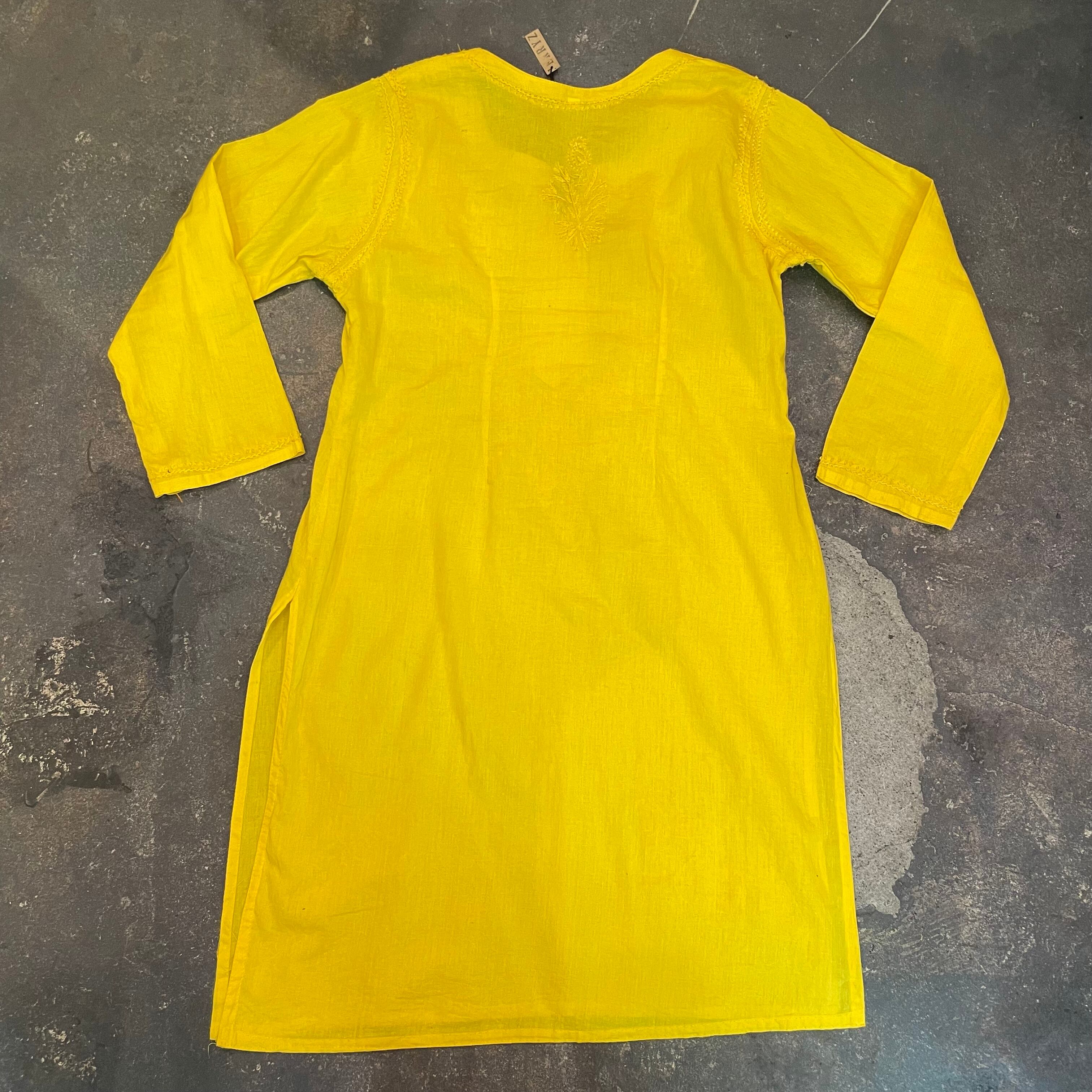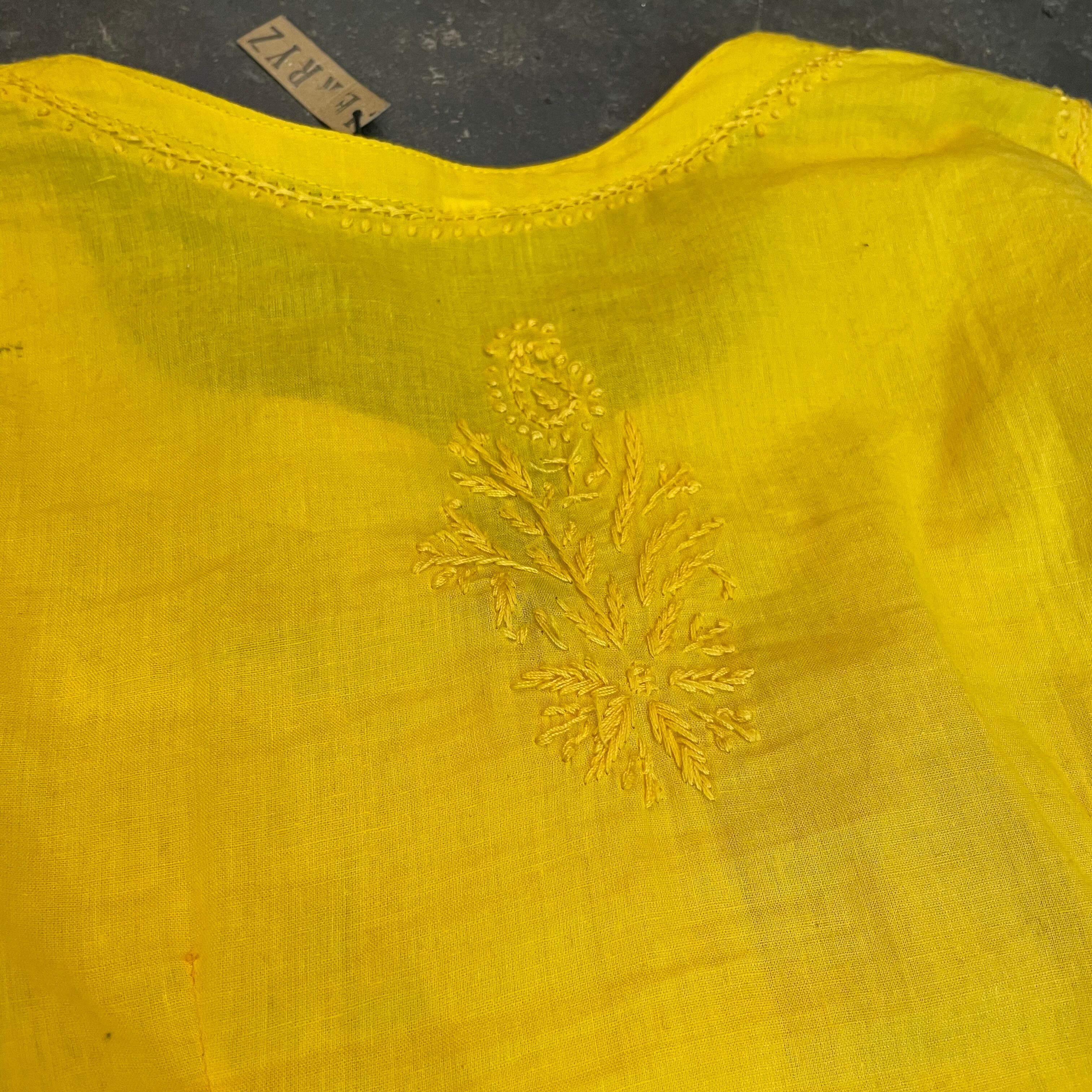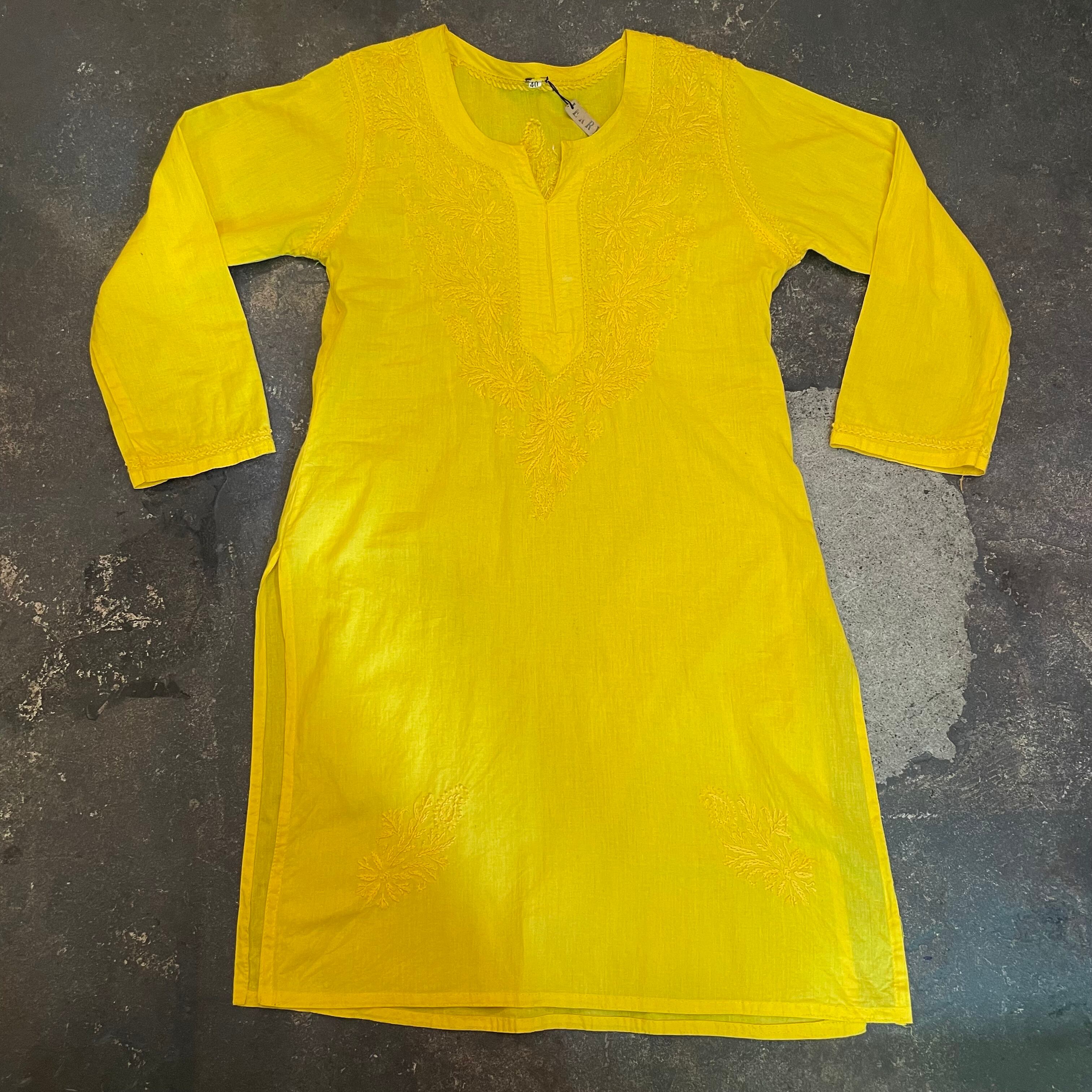 元気の出る鮮やかな黄色がかわいいワンピースです。同じ色で施された手刺繍がさりげなく存在感があってとても素敵です。