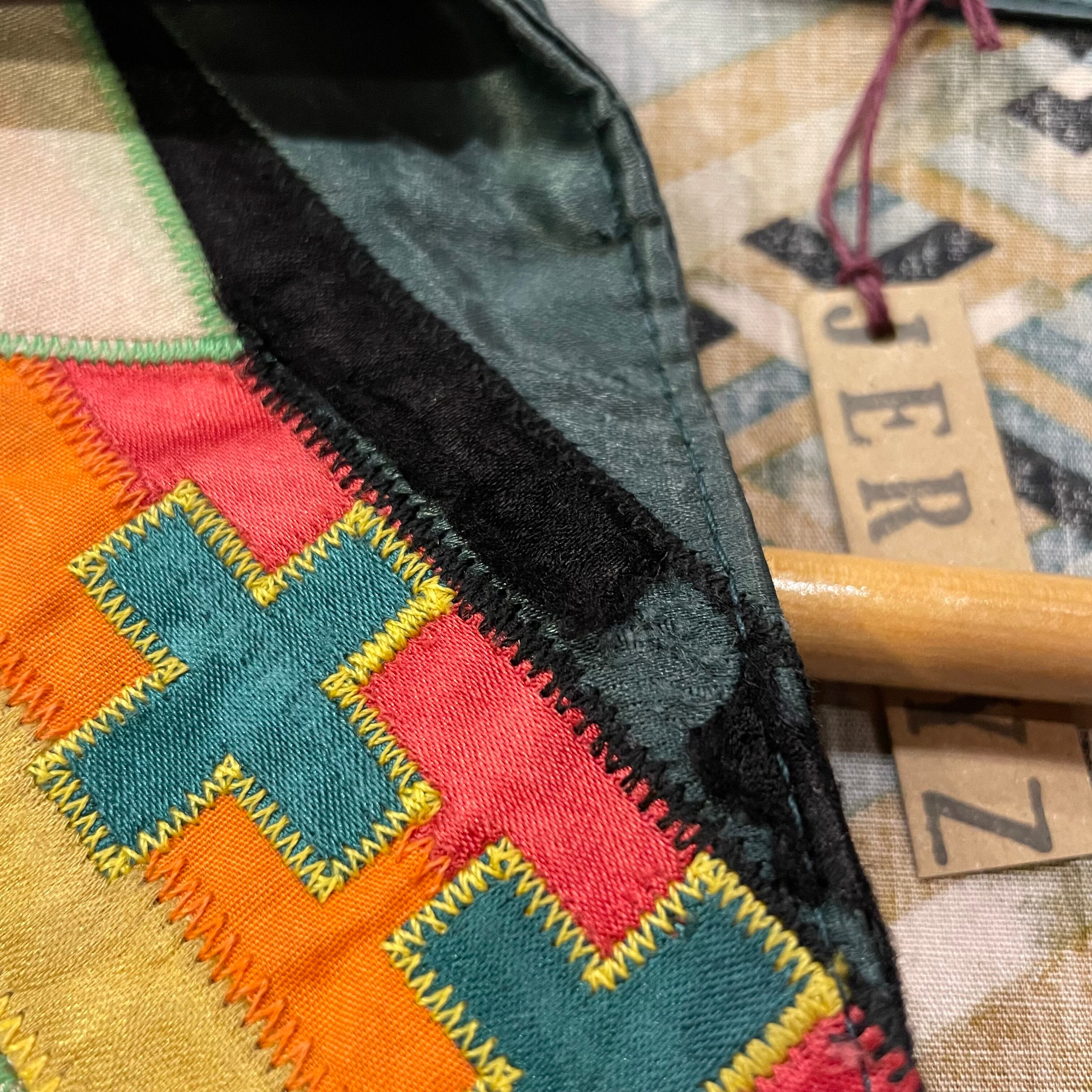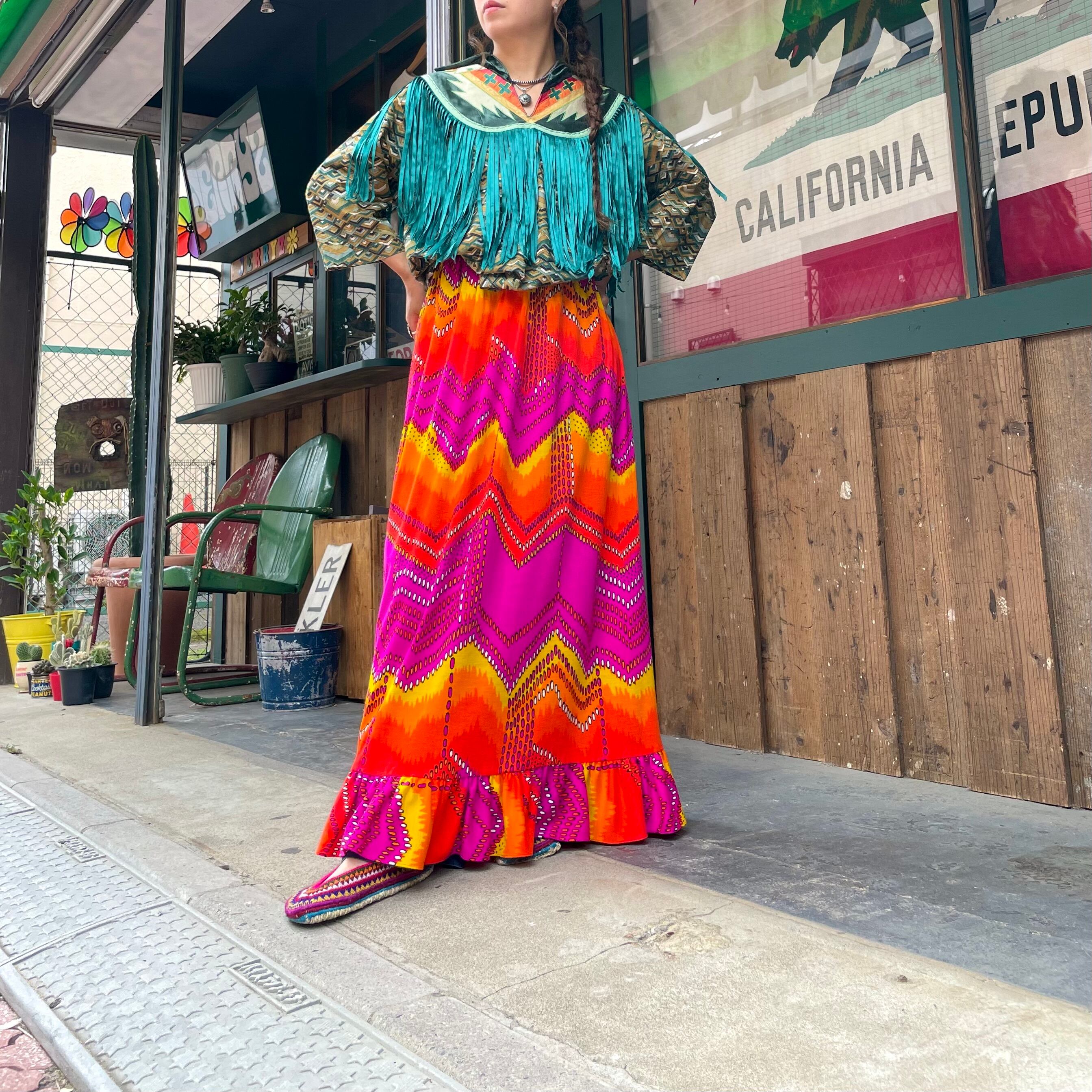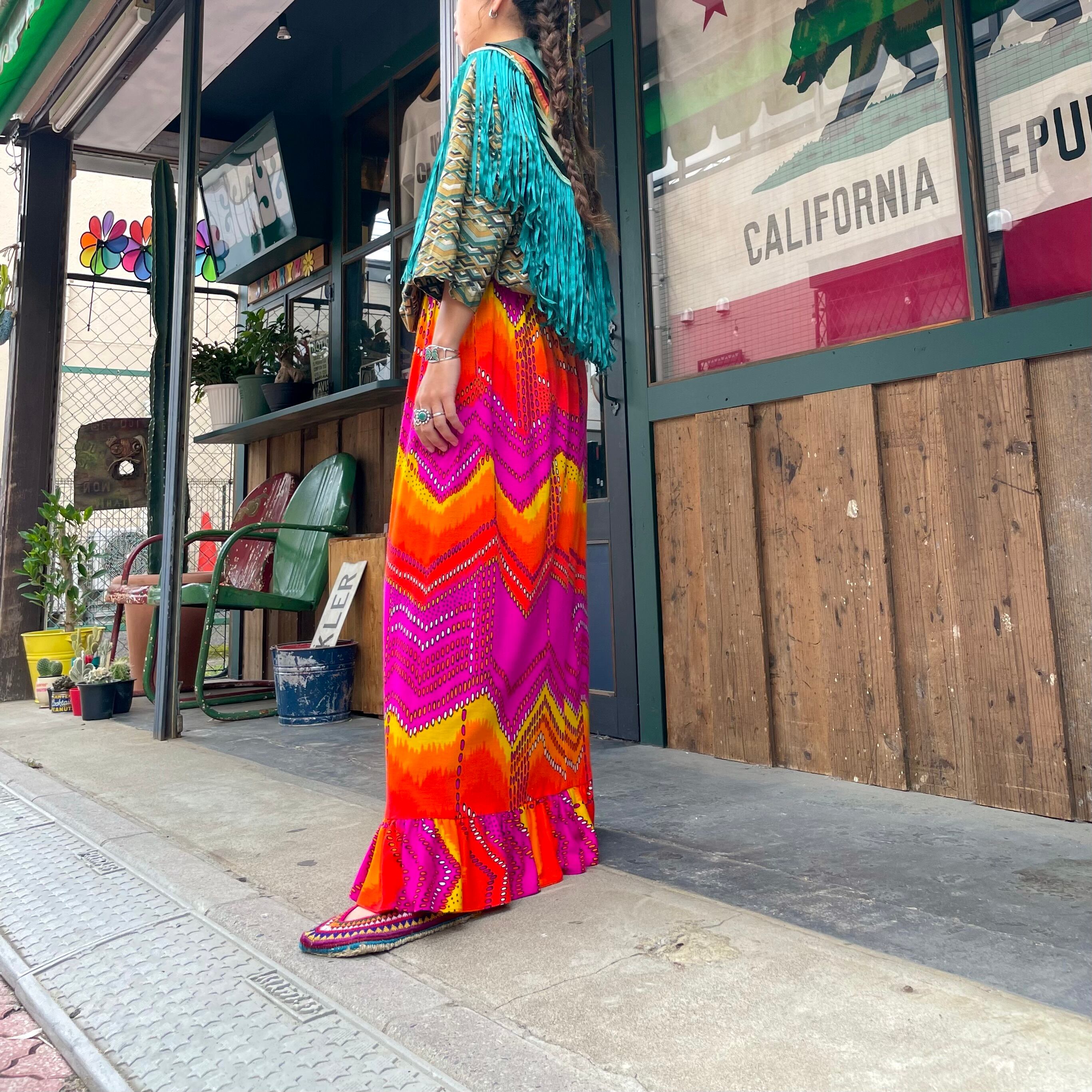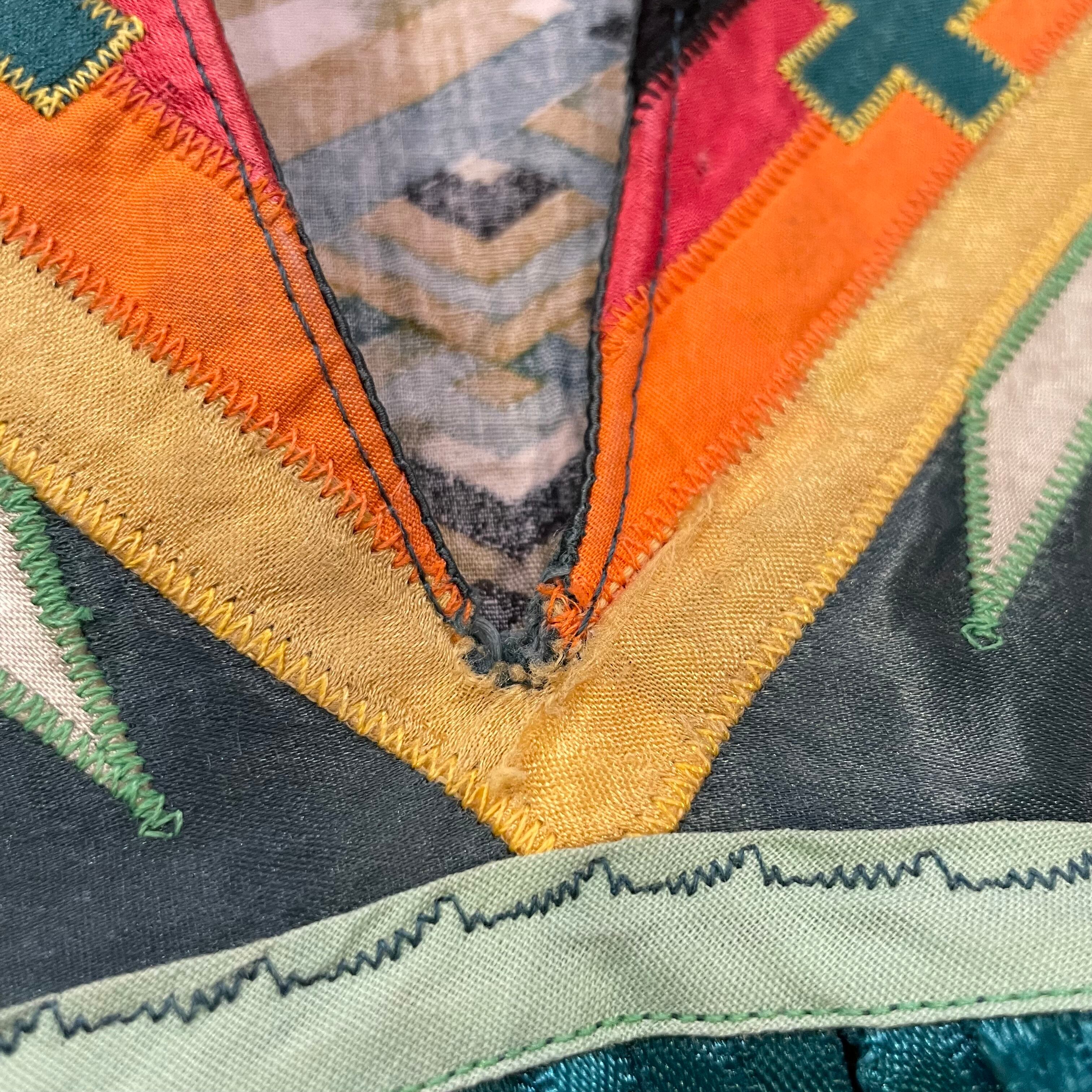 緑のフリンジもヨーク部分のネイティブっぽい雰囲気のパッチワークもかっこいい、オーラのある一枚です。