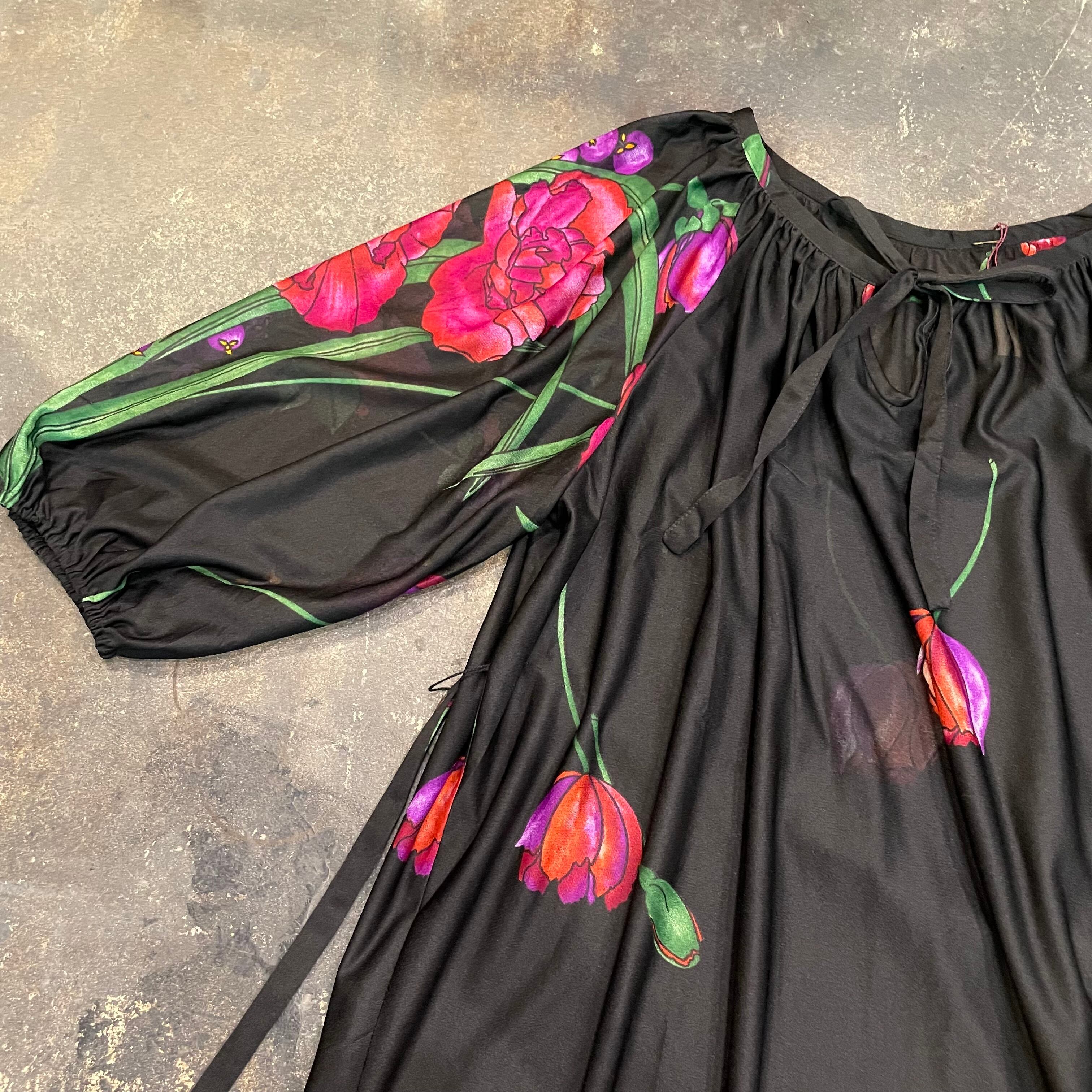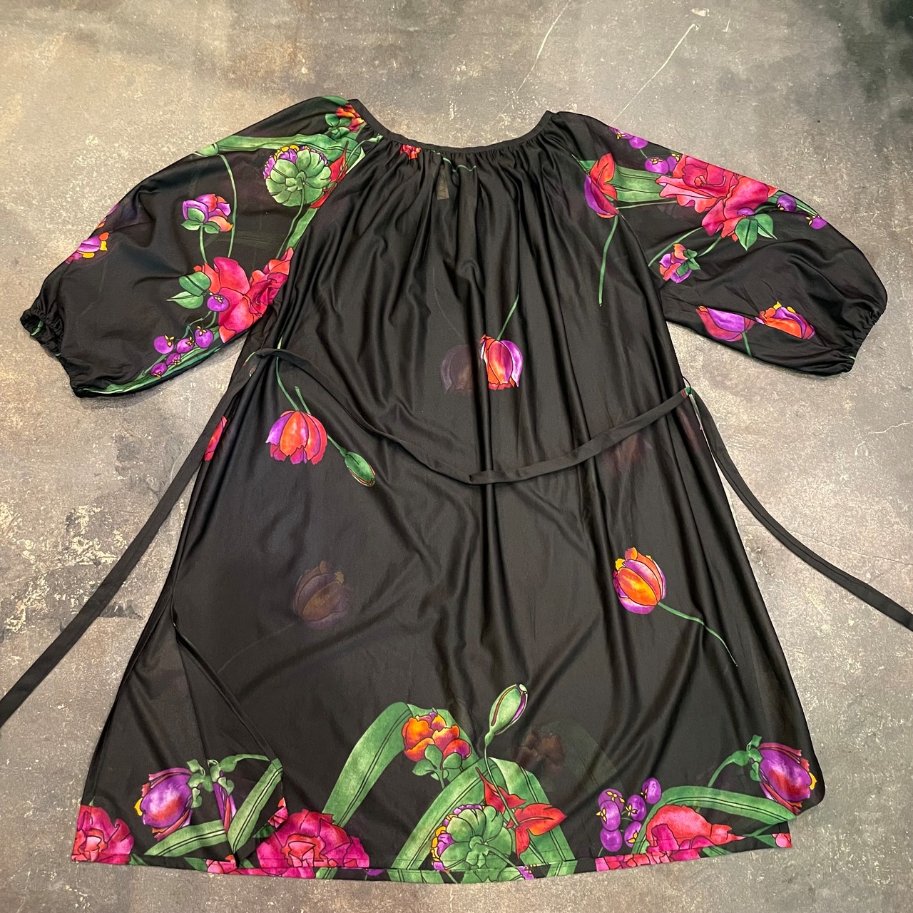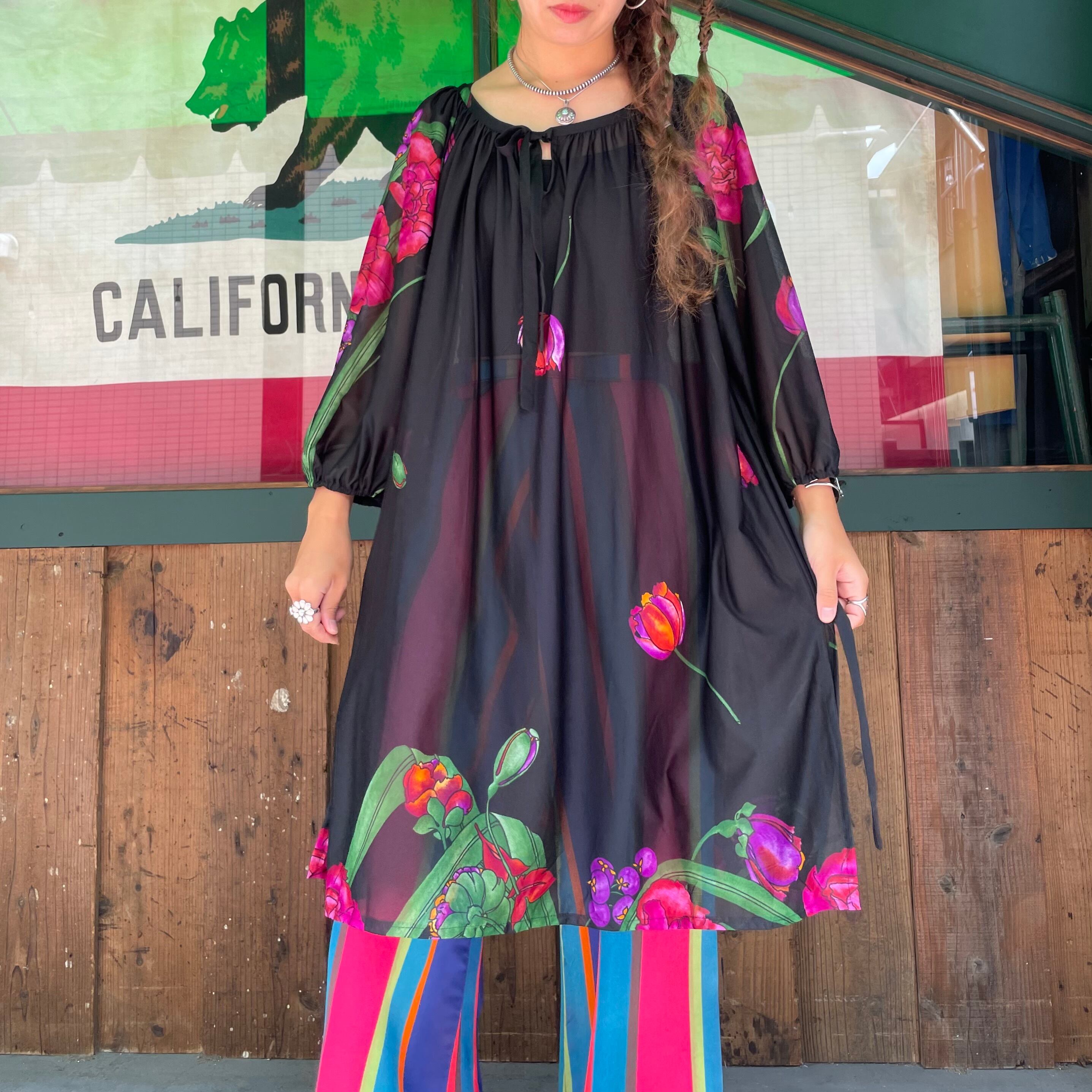 黒のシースルー素材にきれいな色のお花とつぼみがとてもかわいいワンピースです。