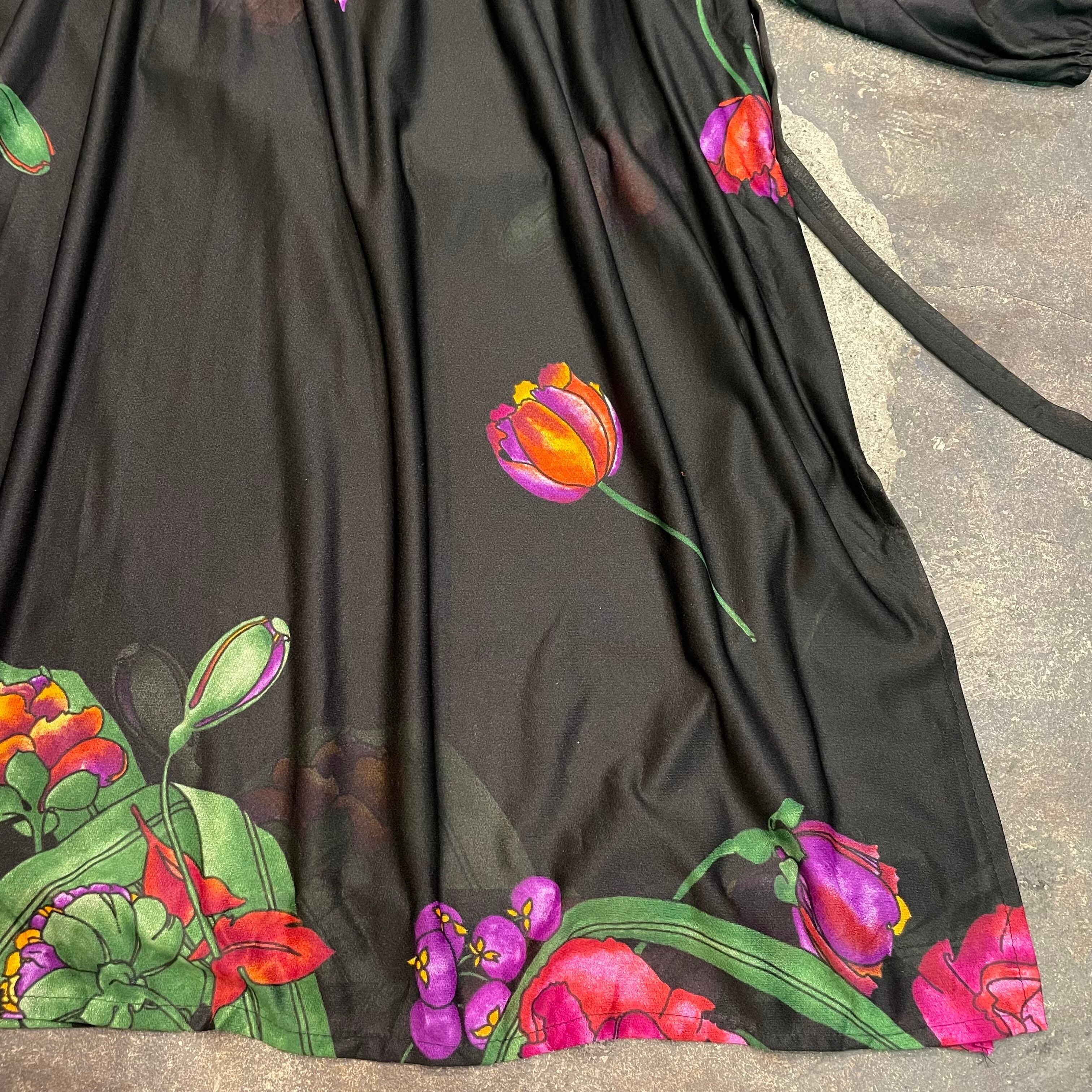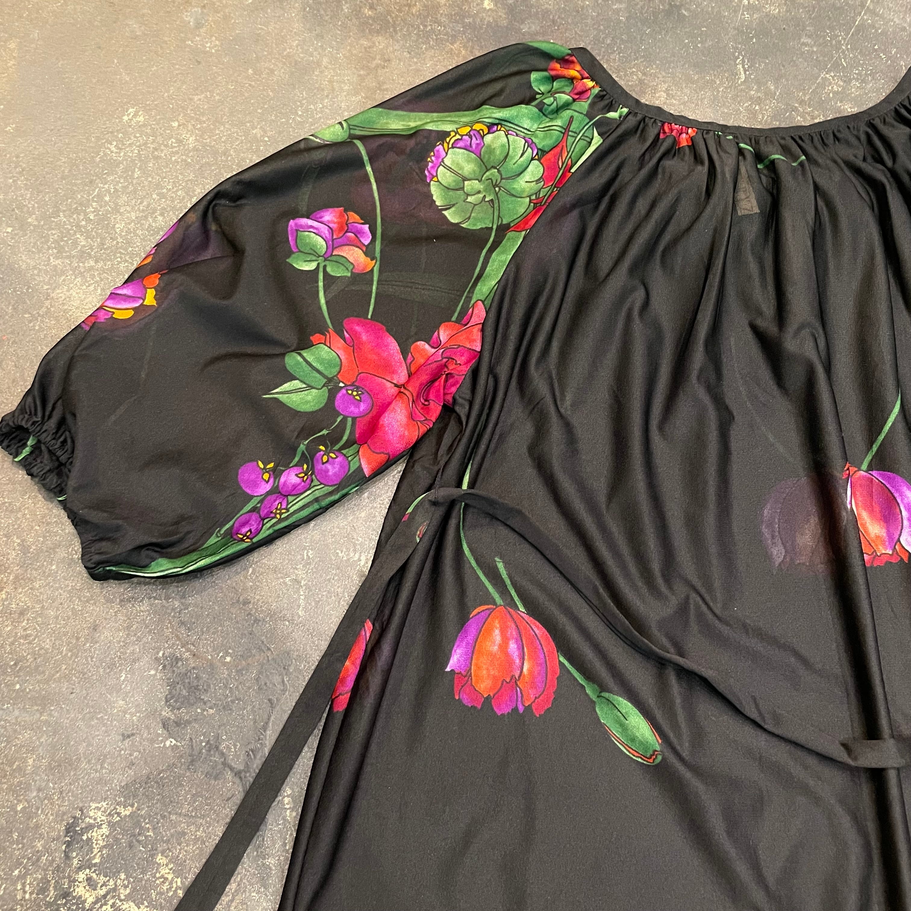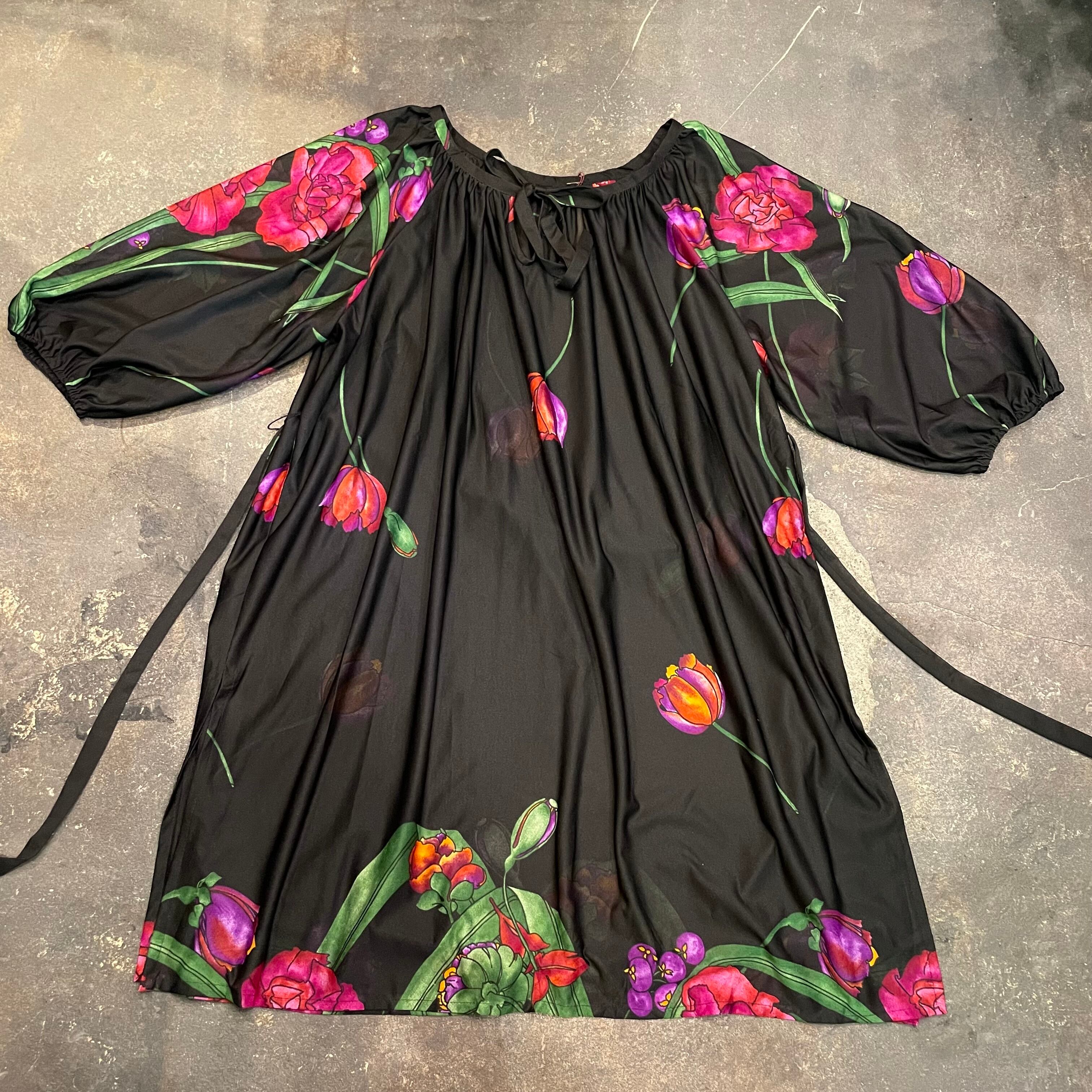 黒のシースルー素材にきれいな色のお花とつぼみがとてもかわいいワンピースです。