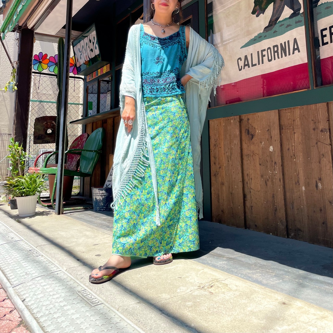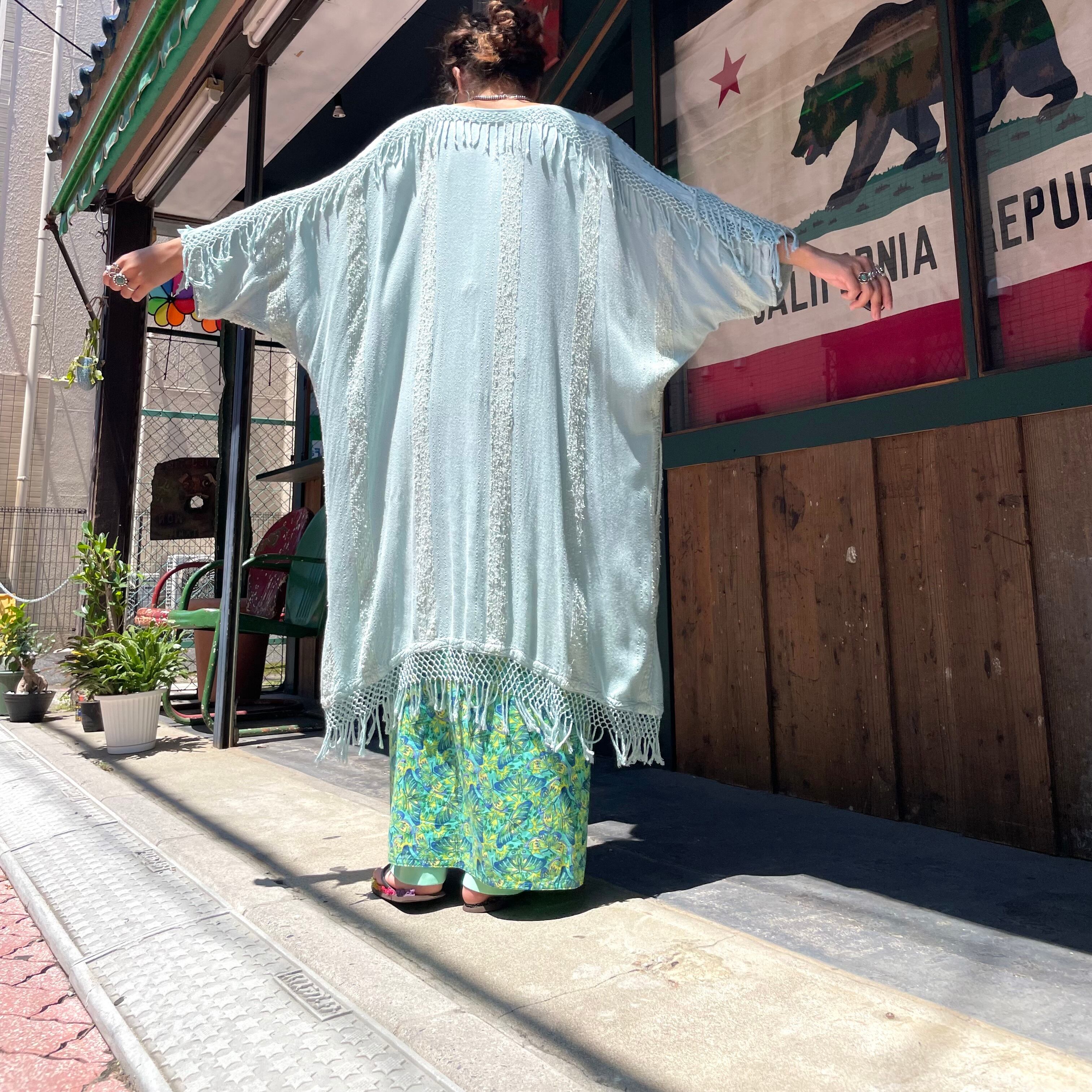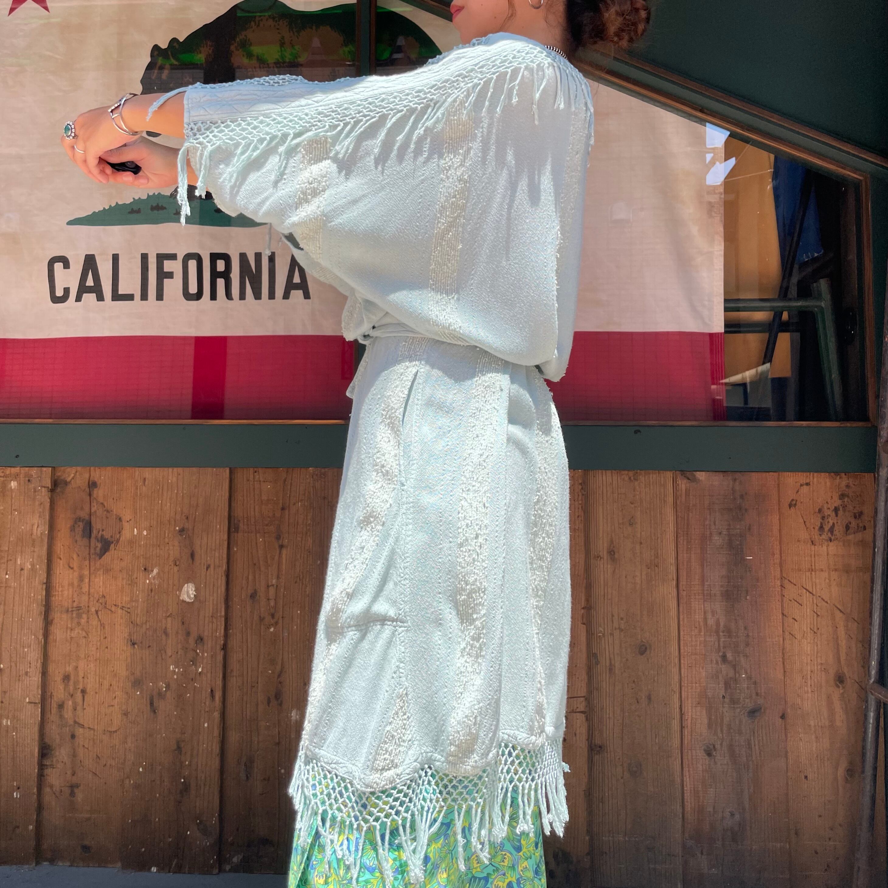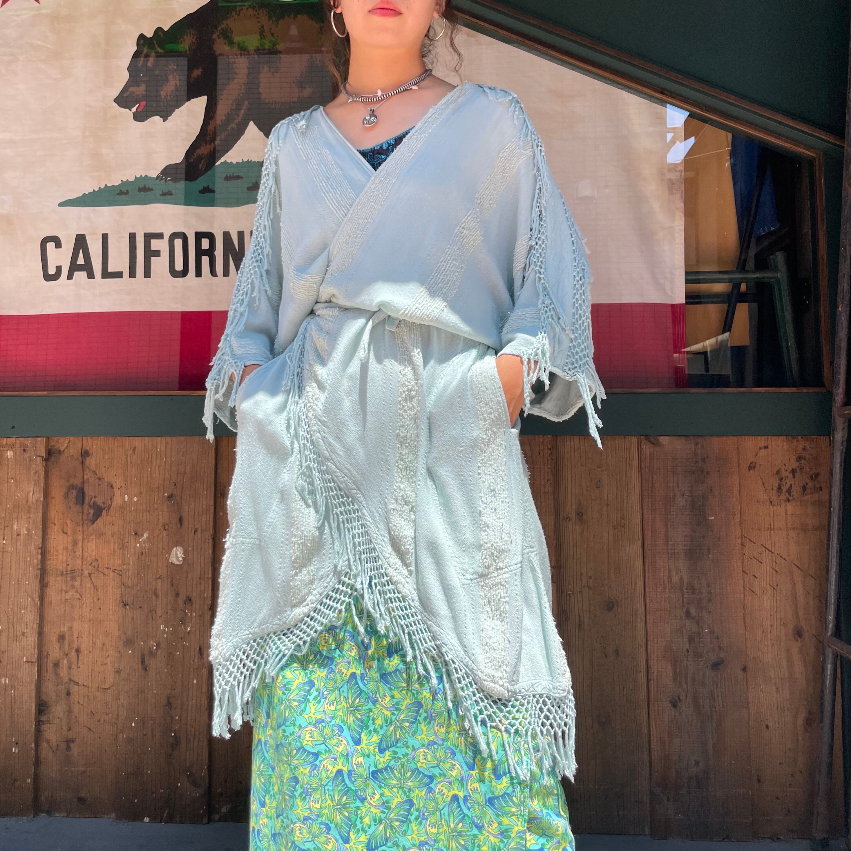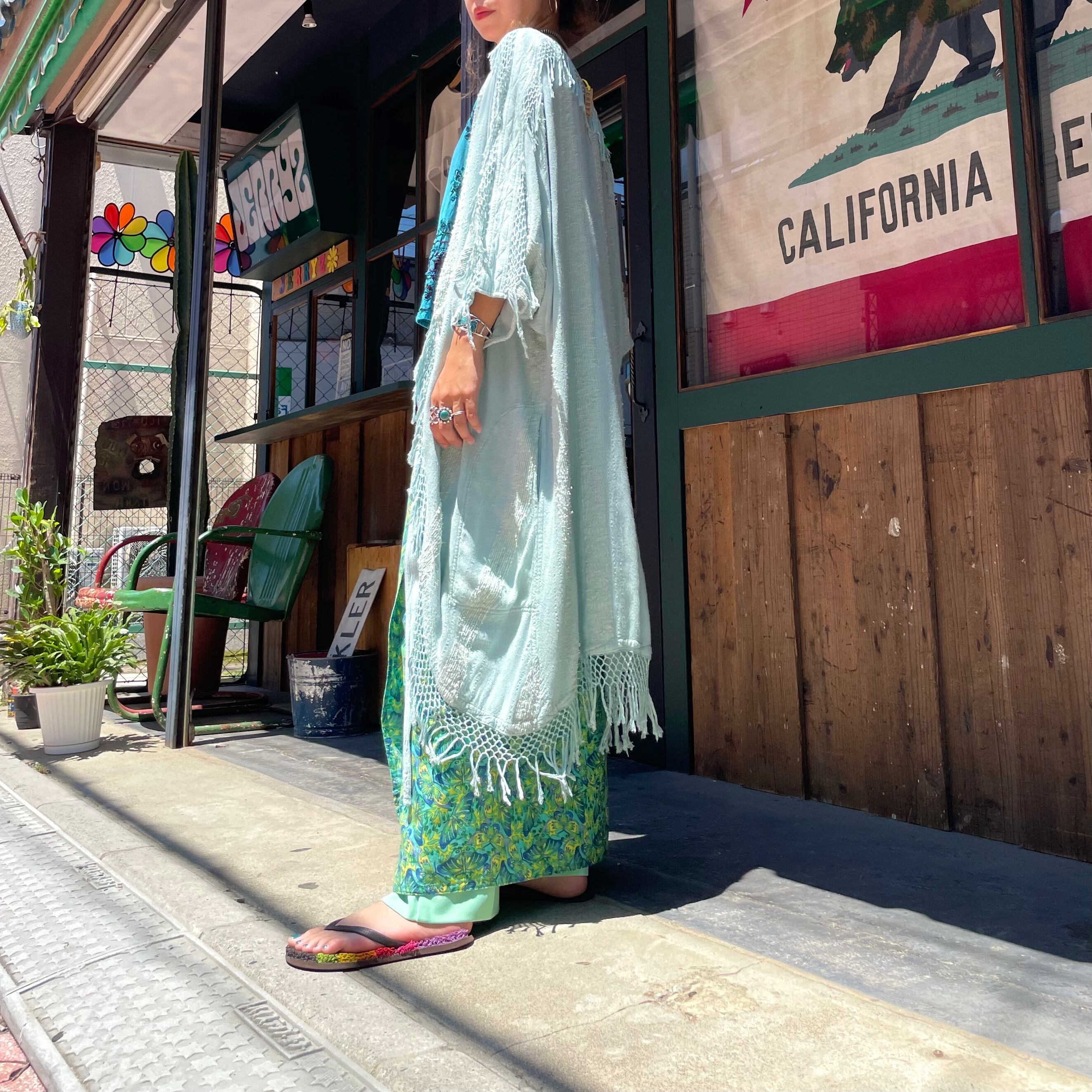 淡いミントグリーンのような優しい色味がかわいいモロッコ製のガウンです。