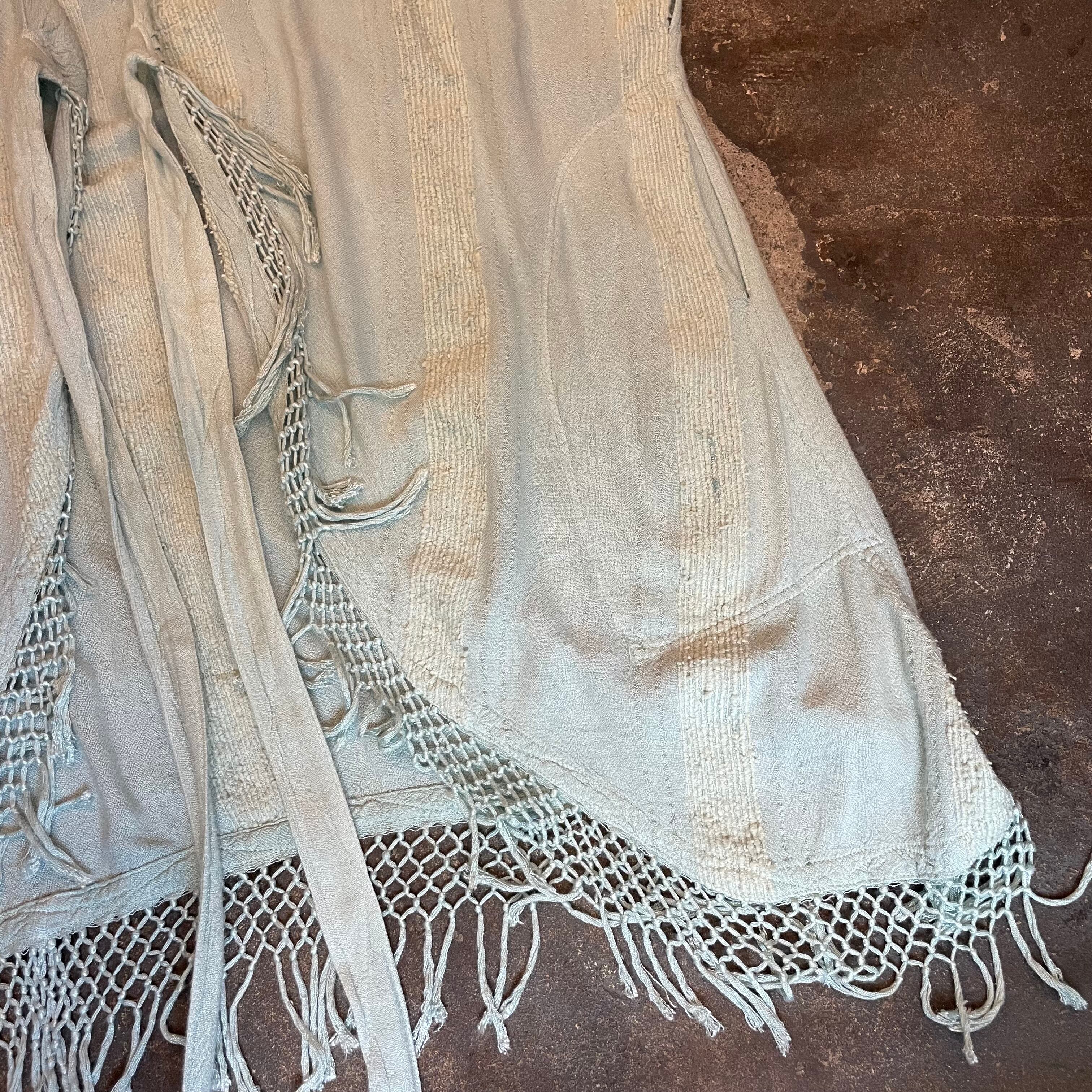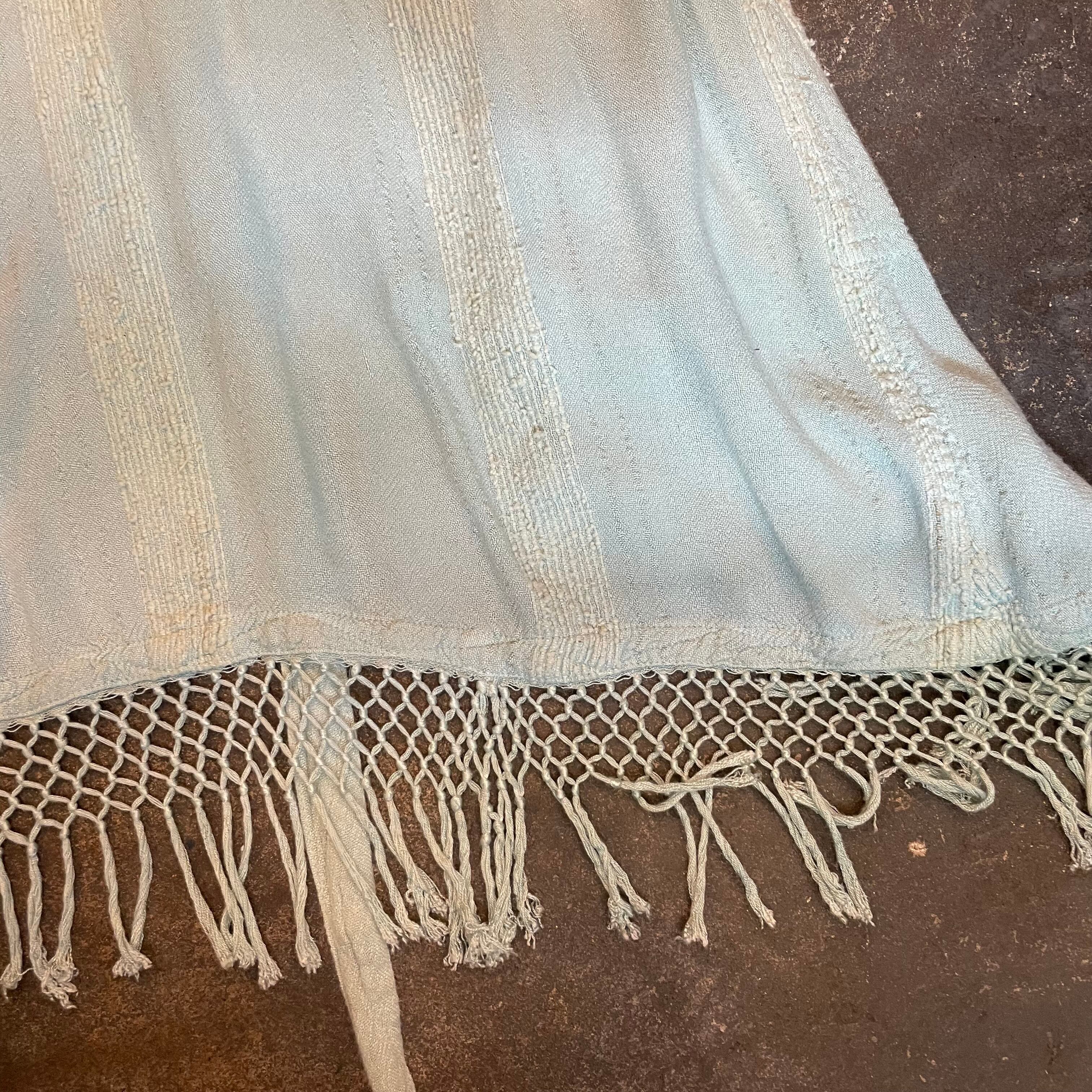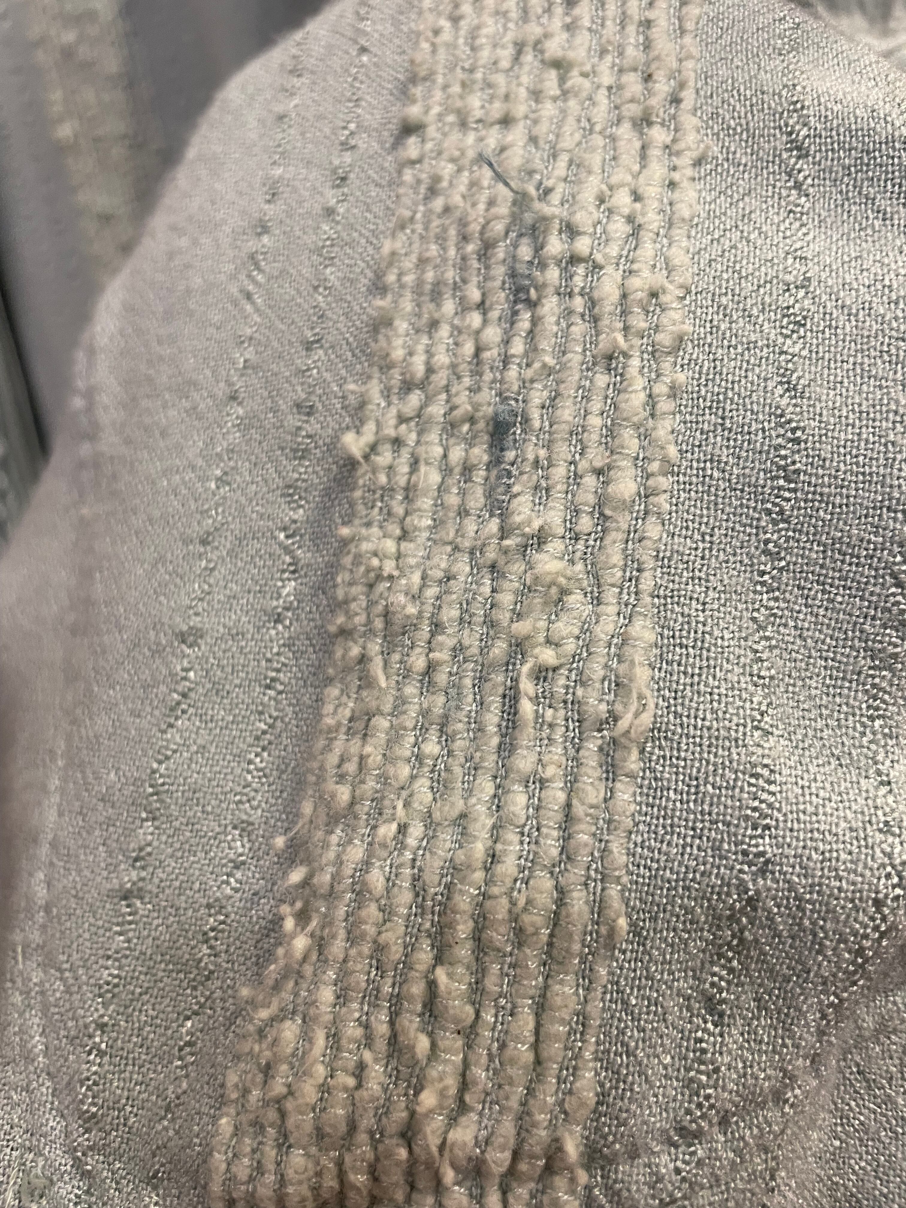 デザインか毛羽立ちかわかりませんが、織りの部分は全体的にもこもこしています。生地のツレやフリンジのダメージ等使用感のある商品ですので古着にご理解のある方のご購入をお願い致します。