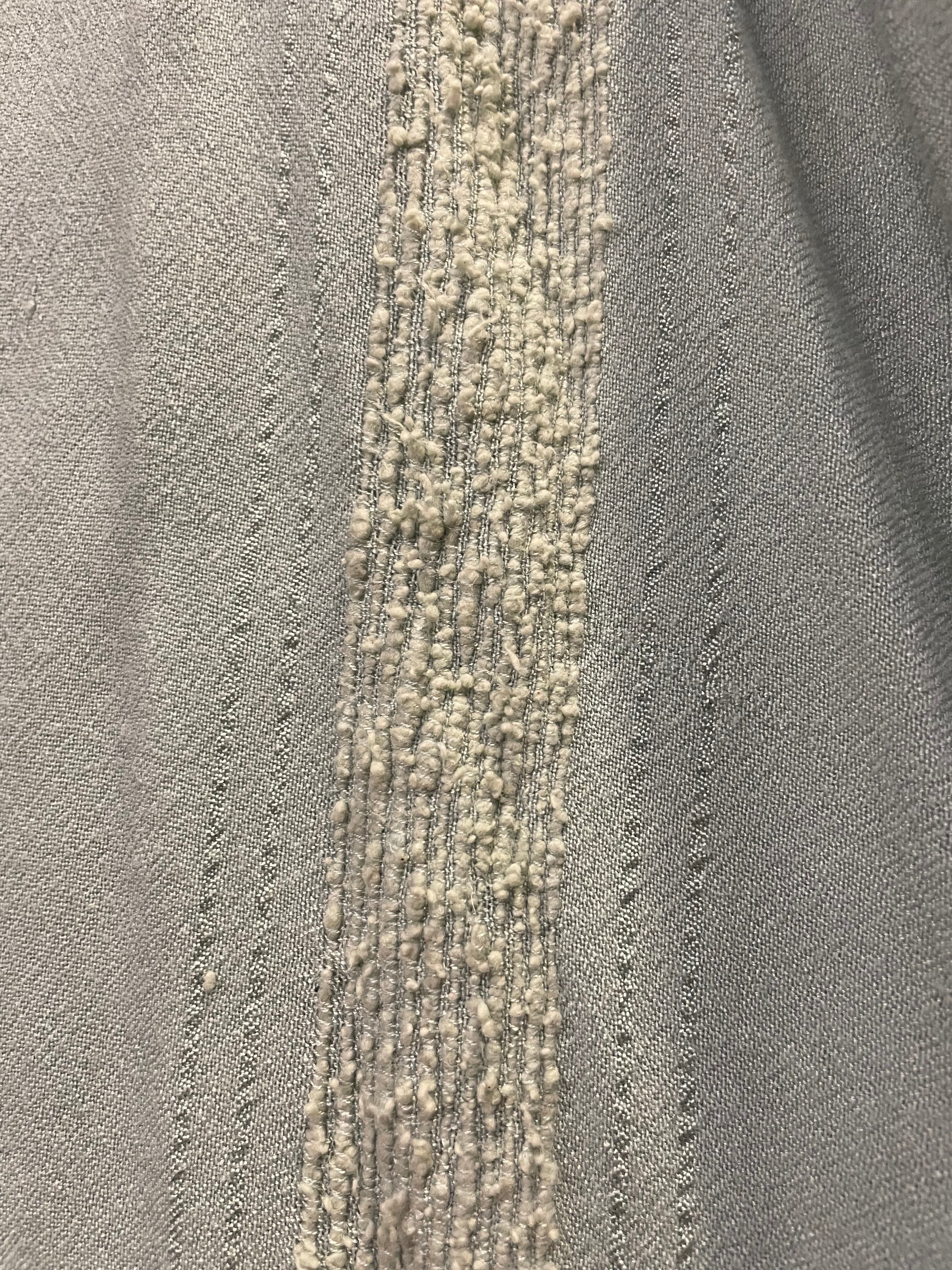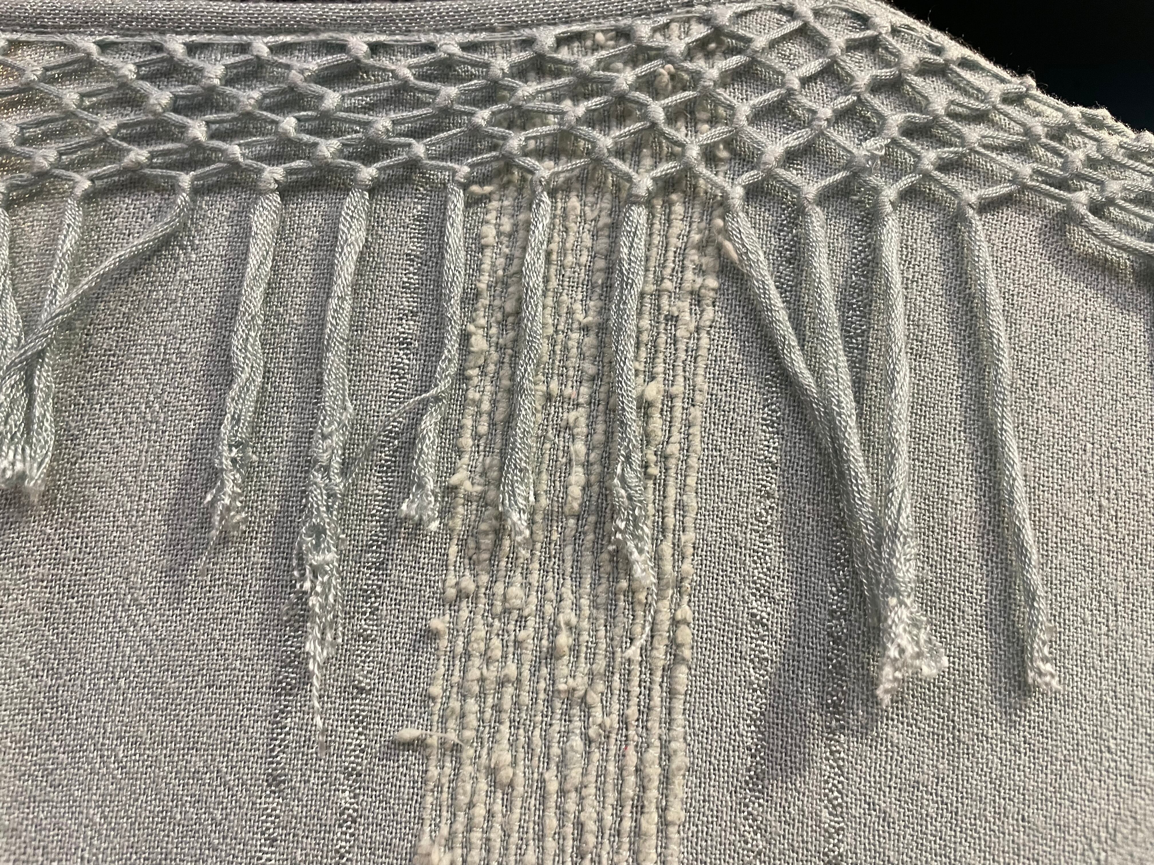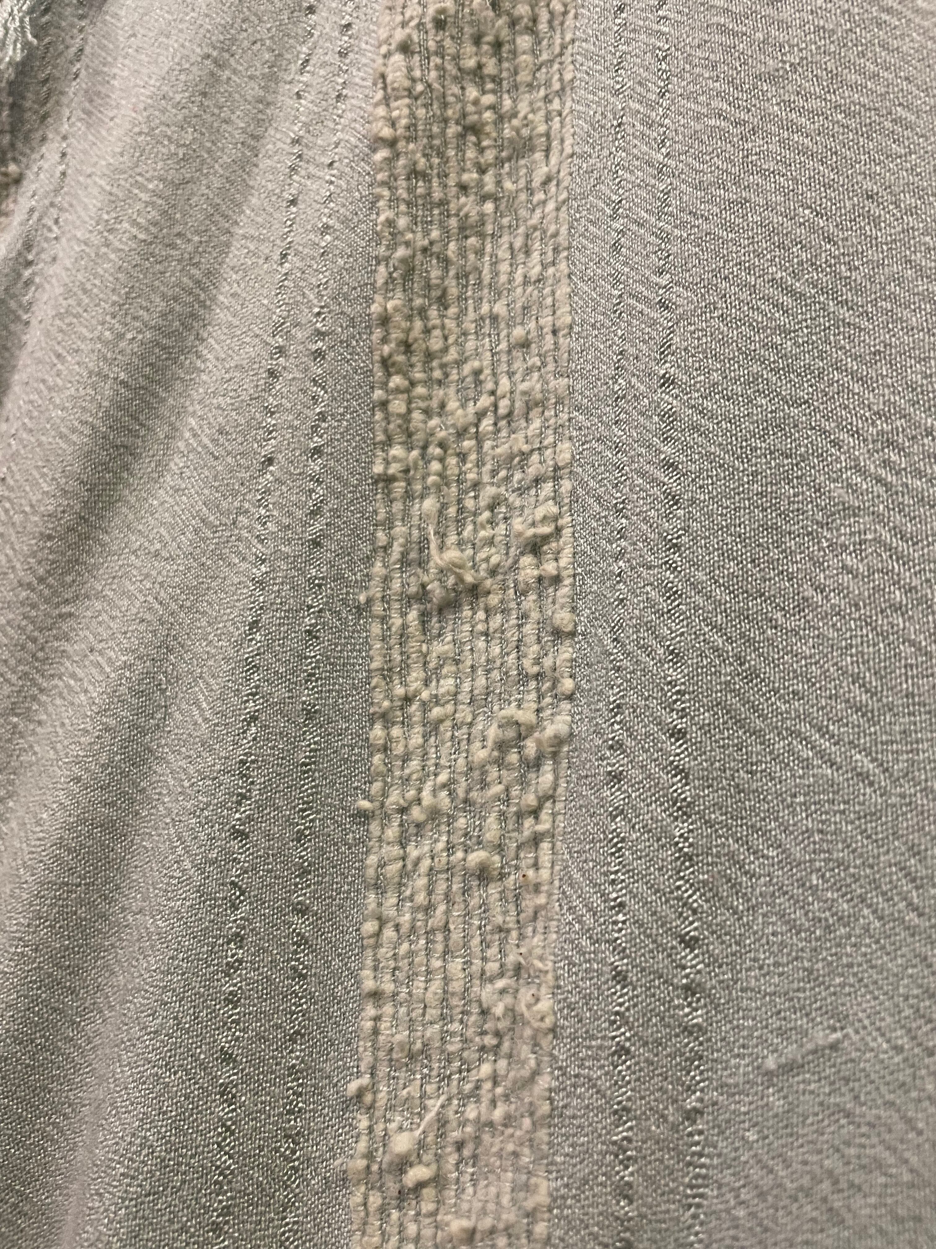 デザインか毛羽立ちかわかりませんが、織りの部分は全体的にもこもこしています。生地のツレやフリンジのダメージ等使用感のある商品ですので古着にご理解のある方のご購入をお願い致します。