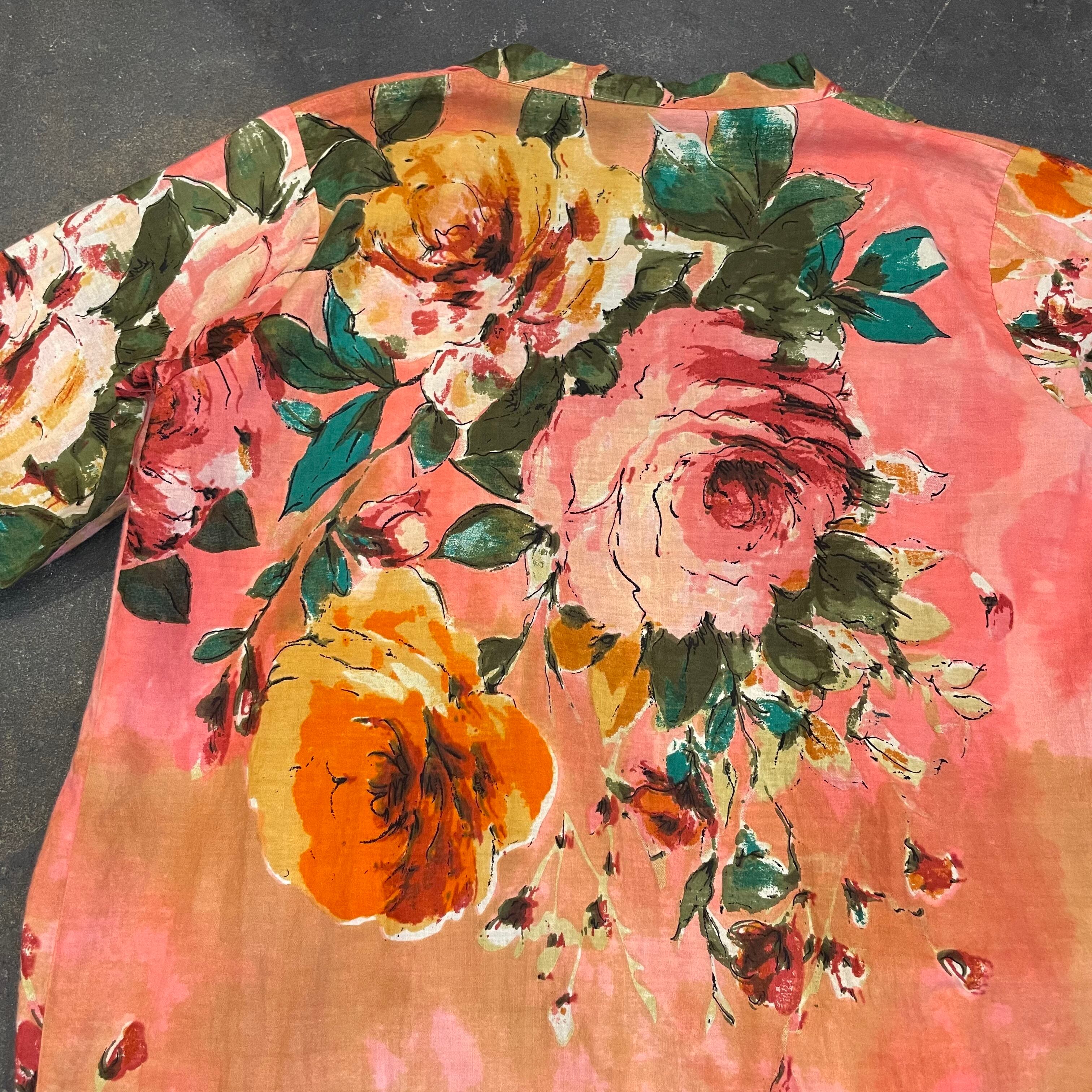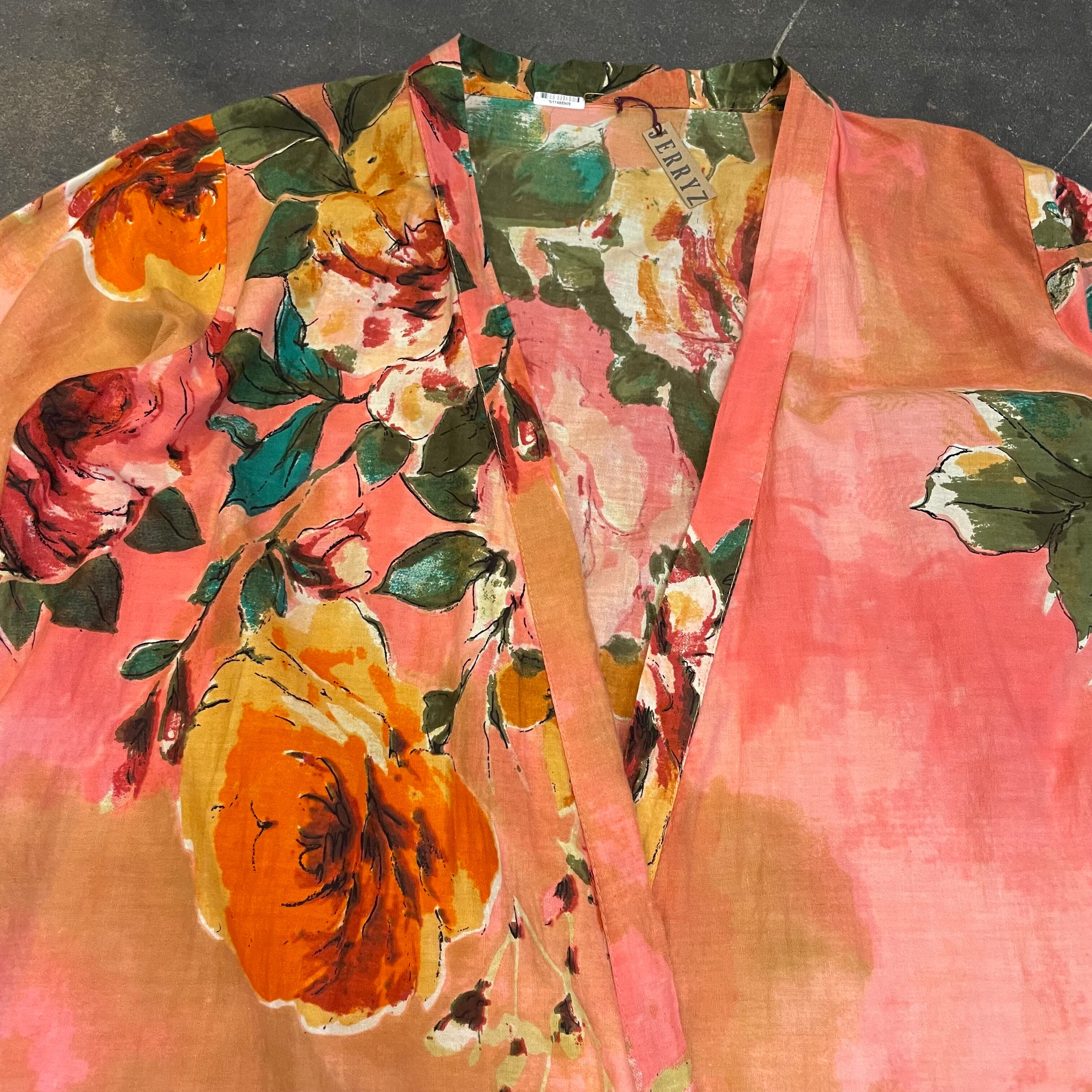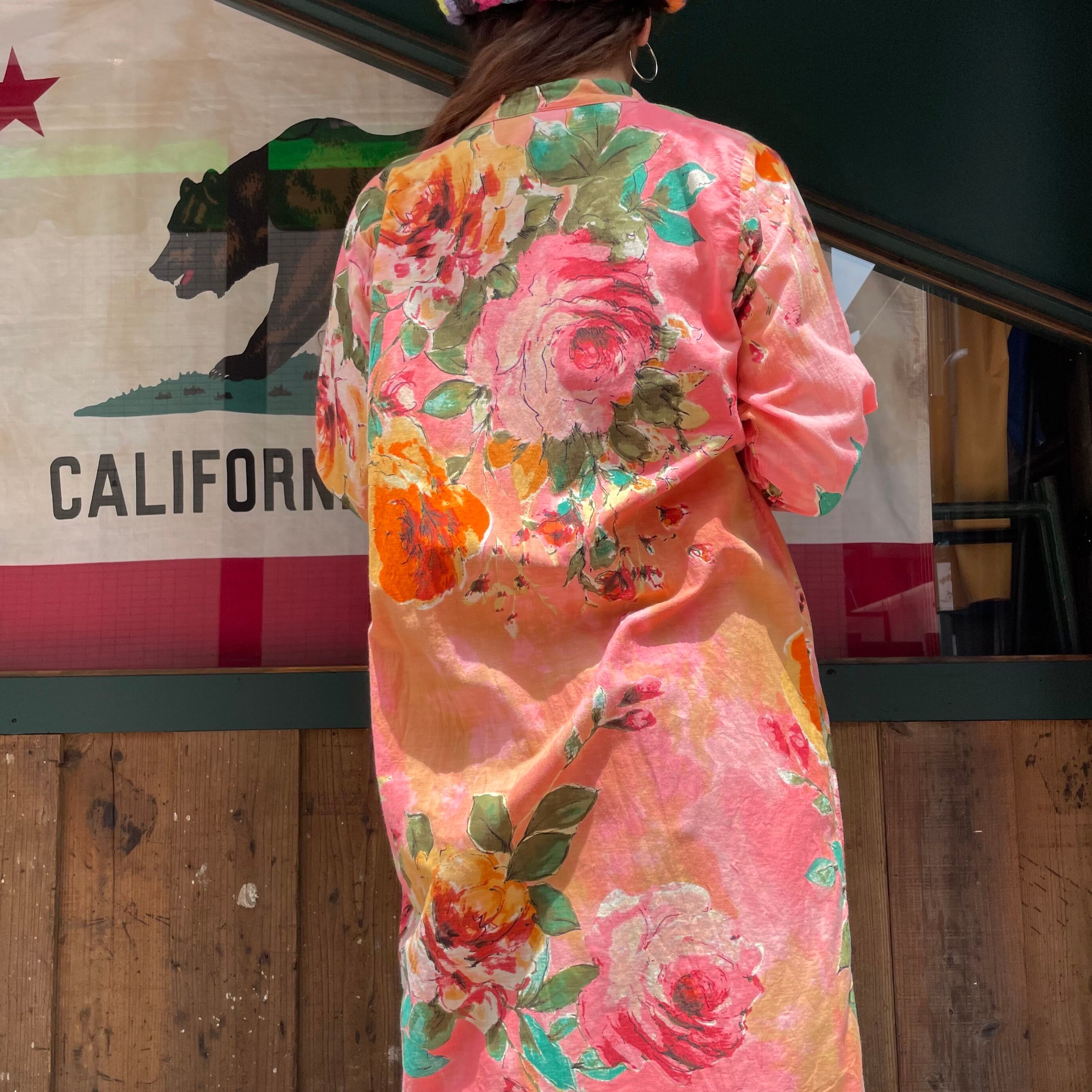 優しい色味の水彩画のようなバラ柄がとても素敵なガウンです。