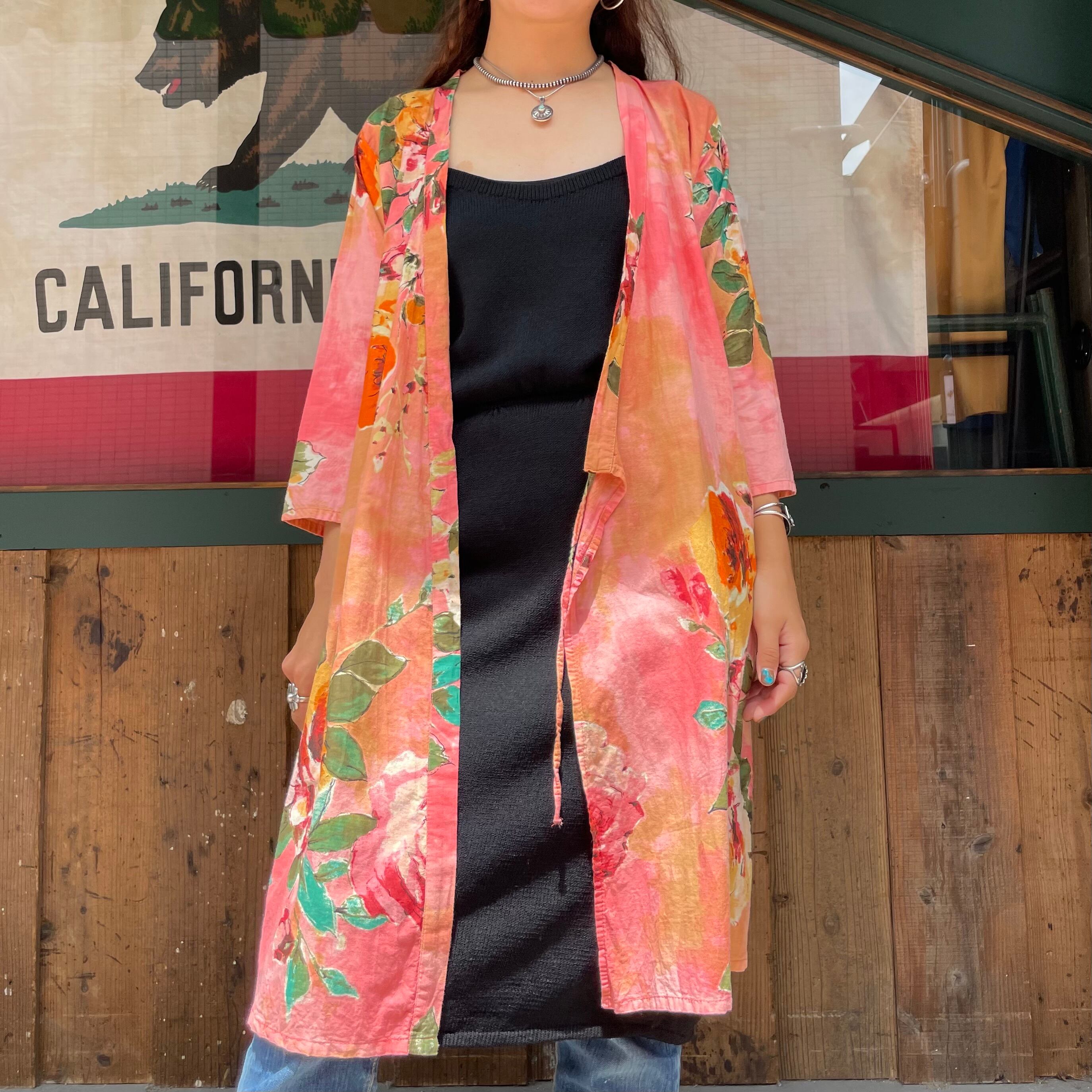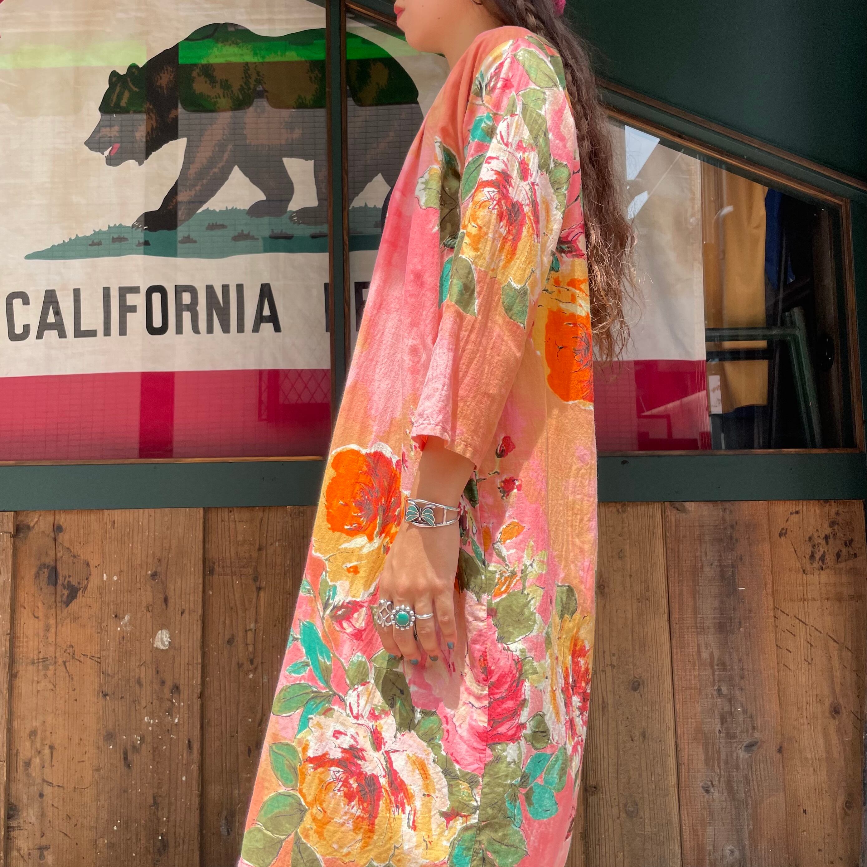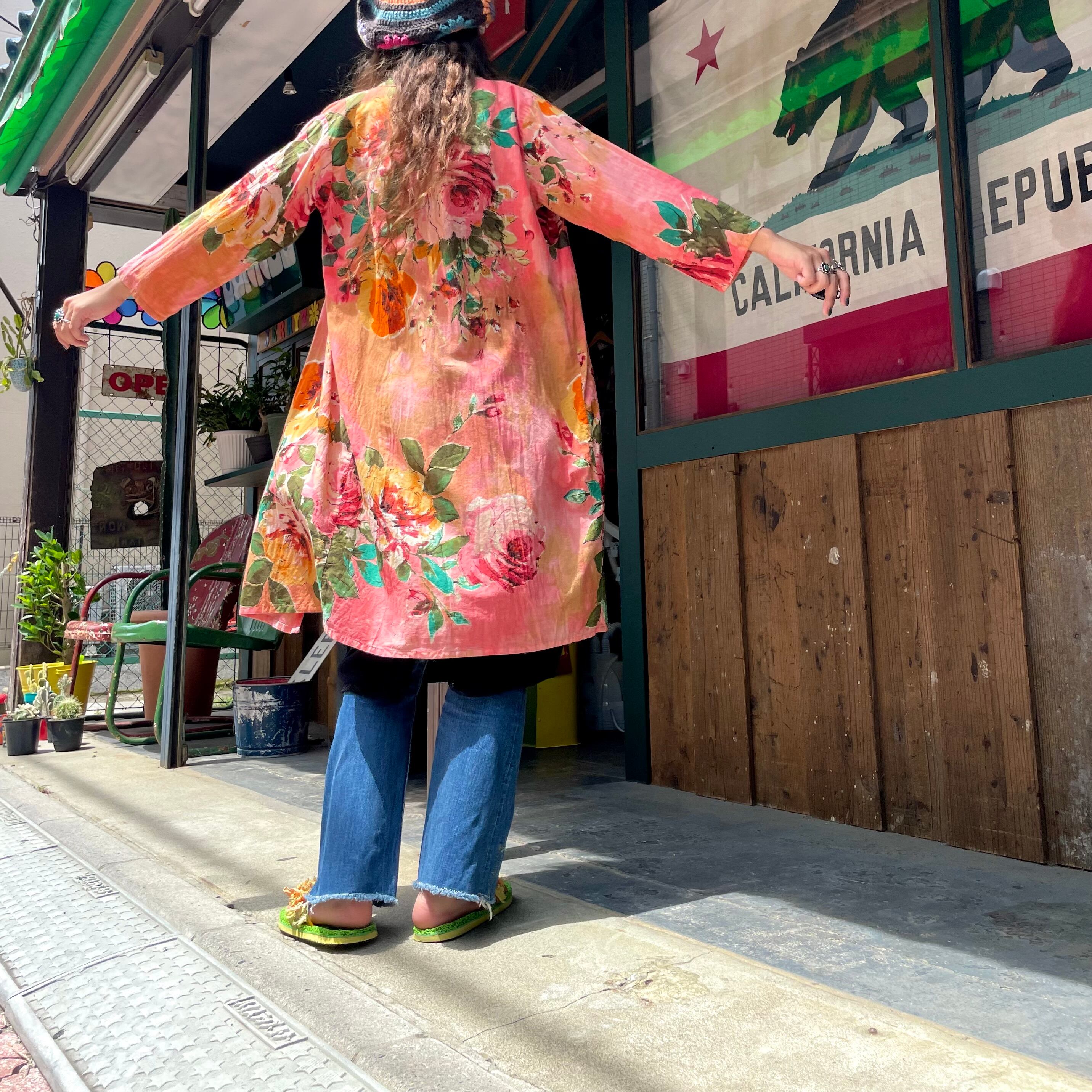 優しい色味の水彩画のようなバラ柄がとても素敵なガウンです。