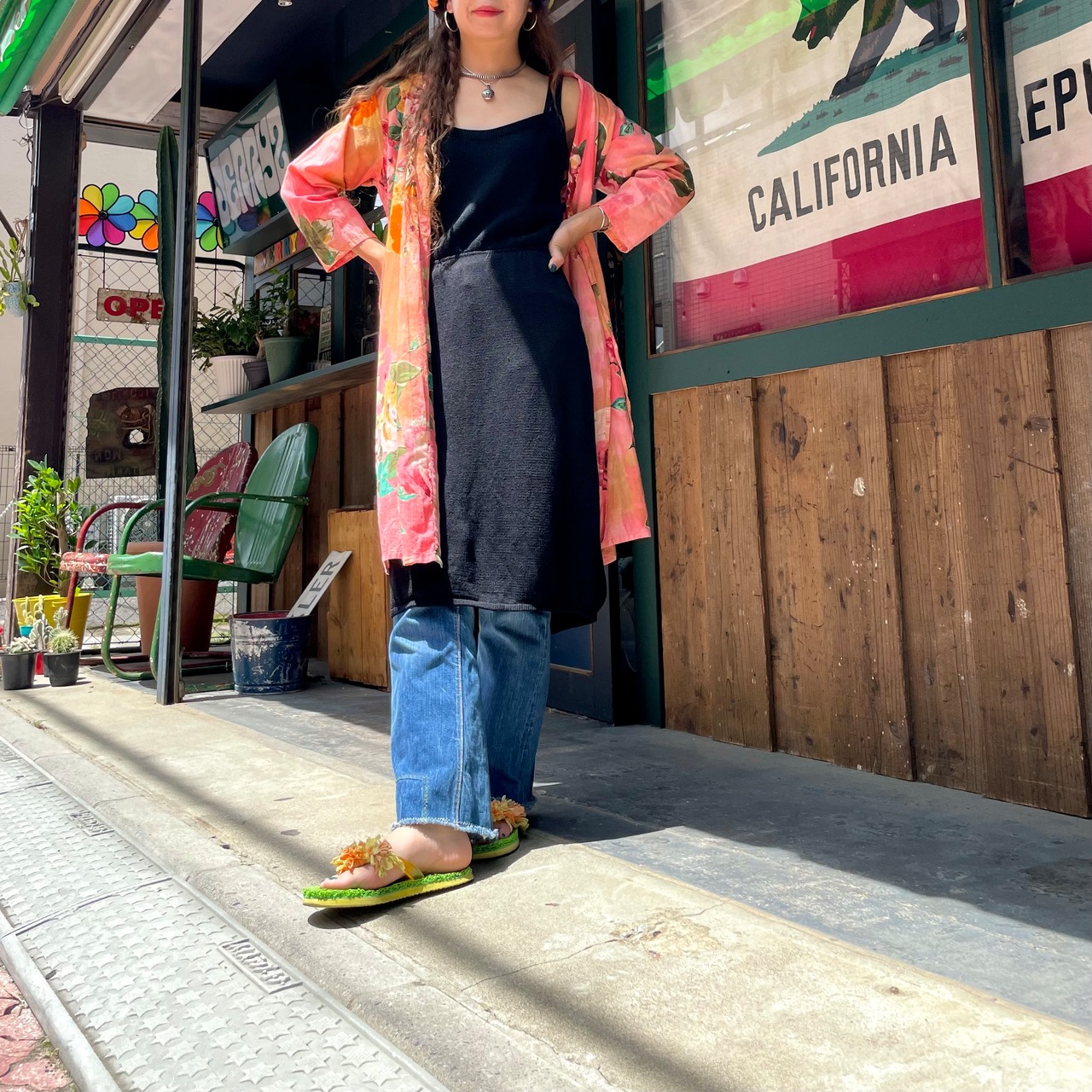 一枚でサンダルを合わせたり、中にTシャツやブラウスを合わせたり、柄シャツや柄パンツを重ねたり、真っ黒でシンプルですので一枚あるとかなり使えるアイテムかと思います!