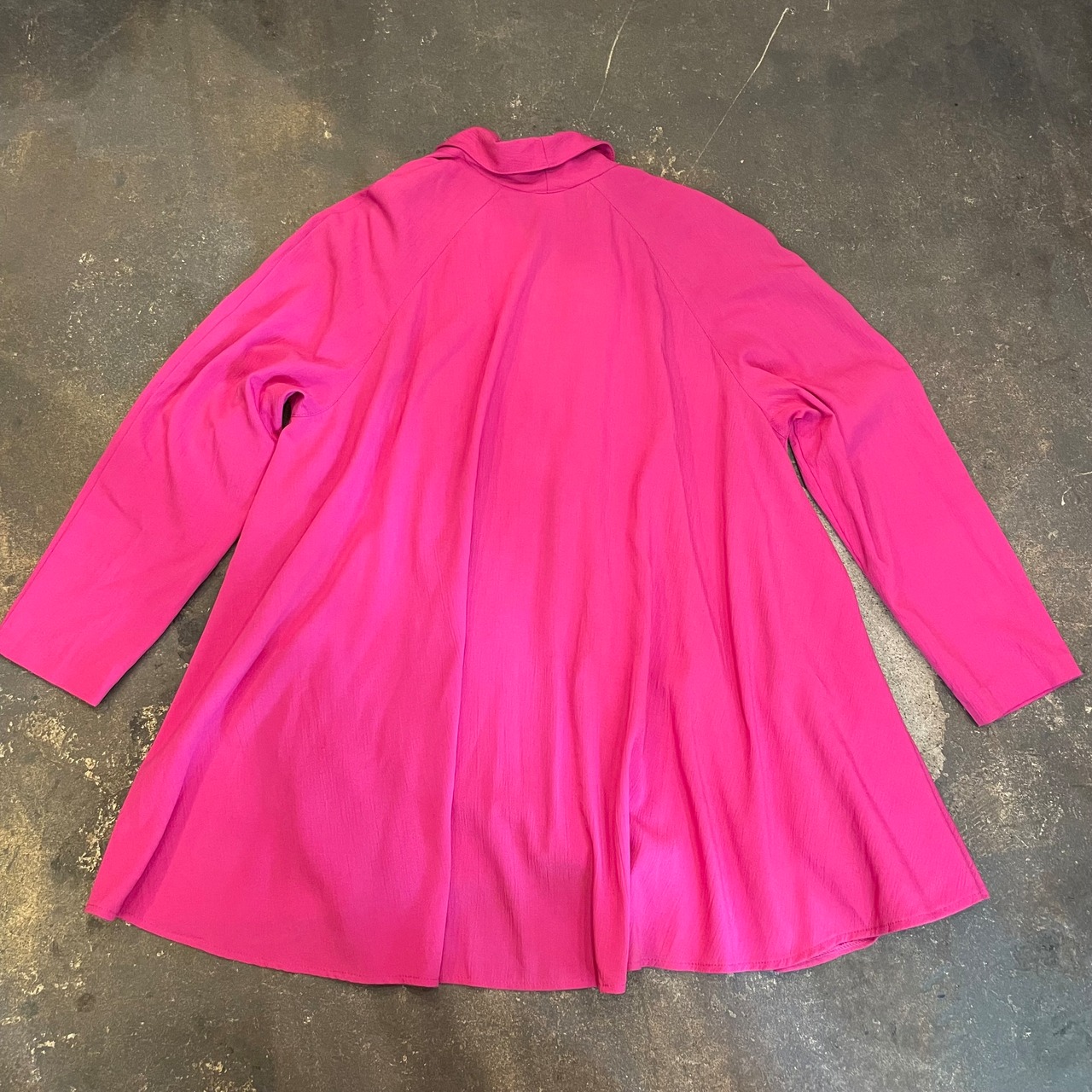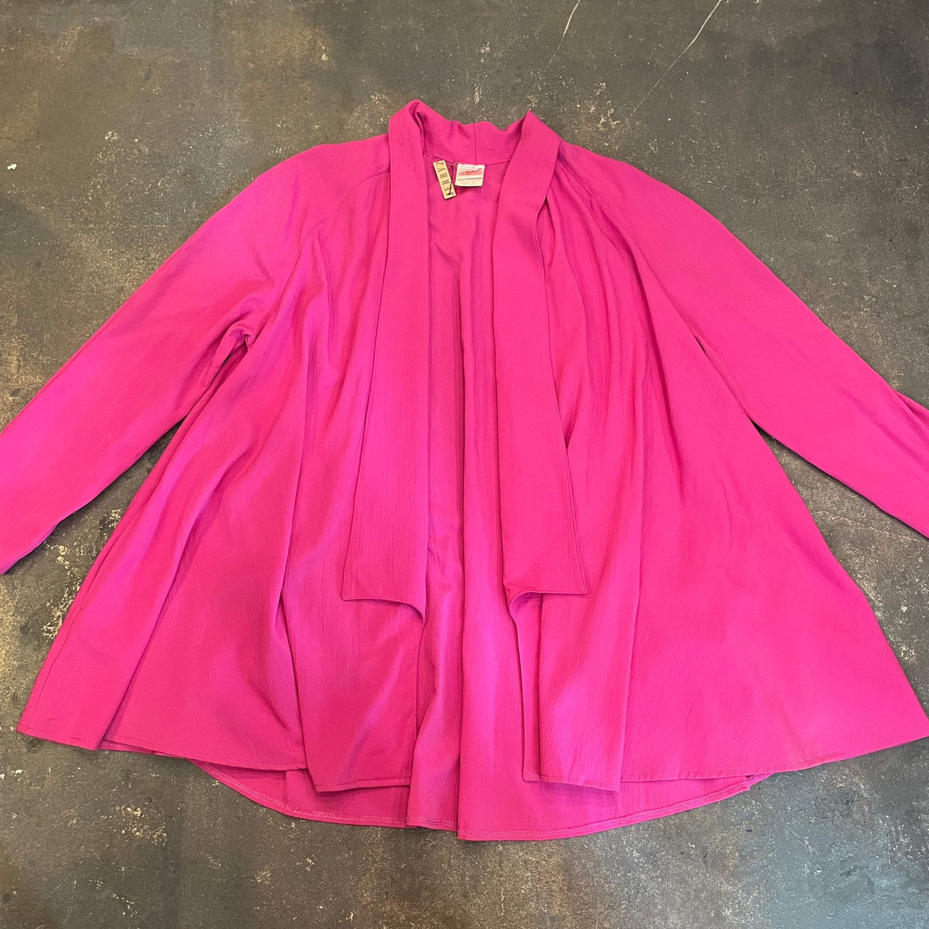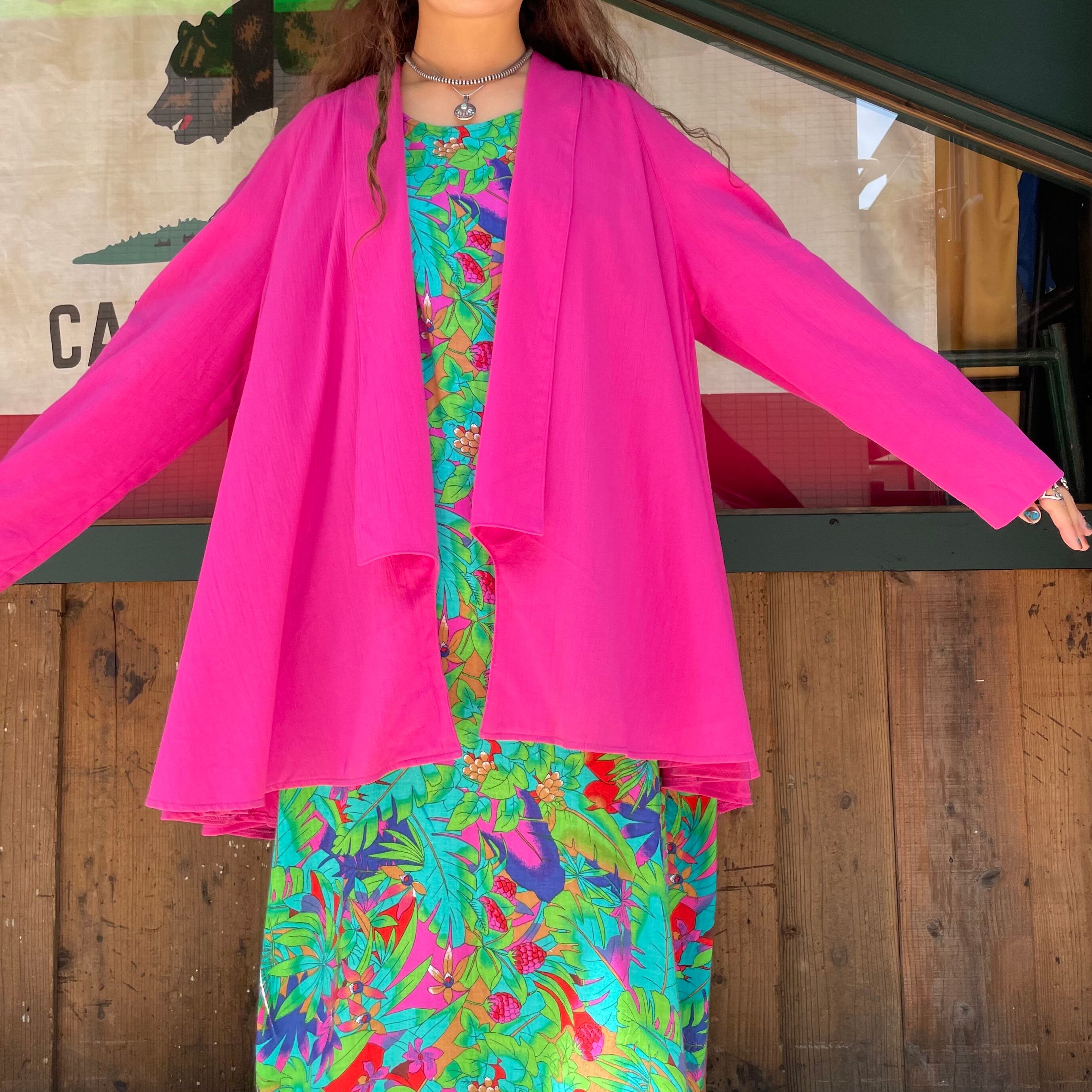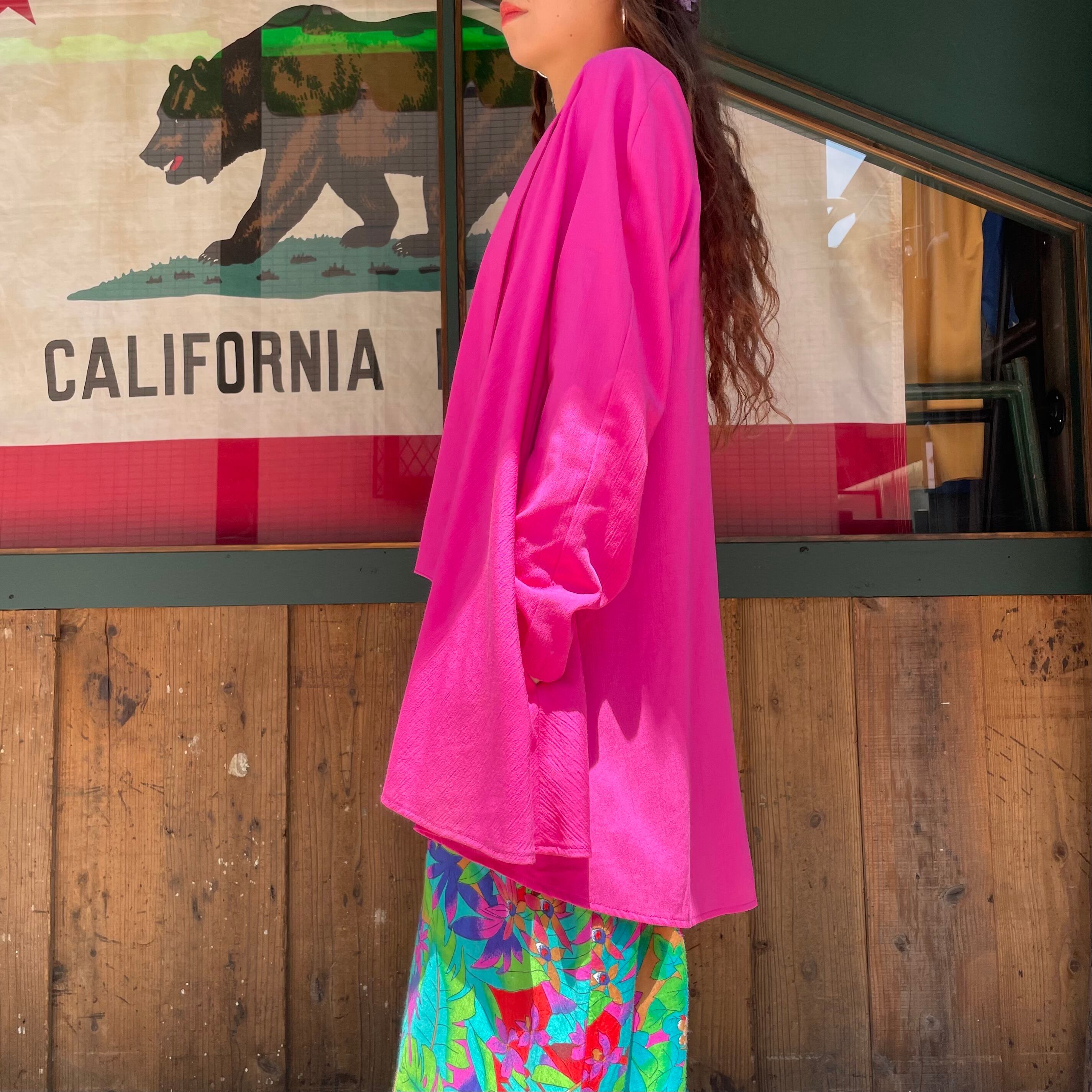 身頃のフレアなシルエットがとてもかわいいジャケットです。眩しいピンクも目を惹きますね!