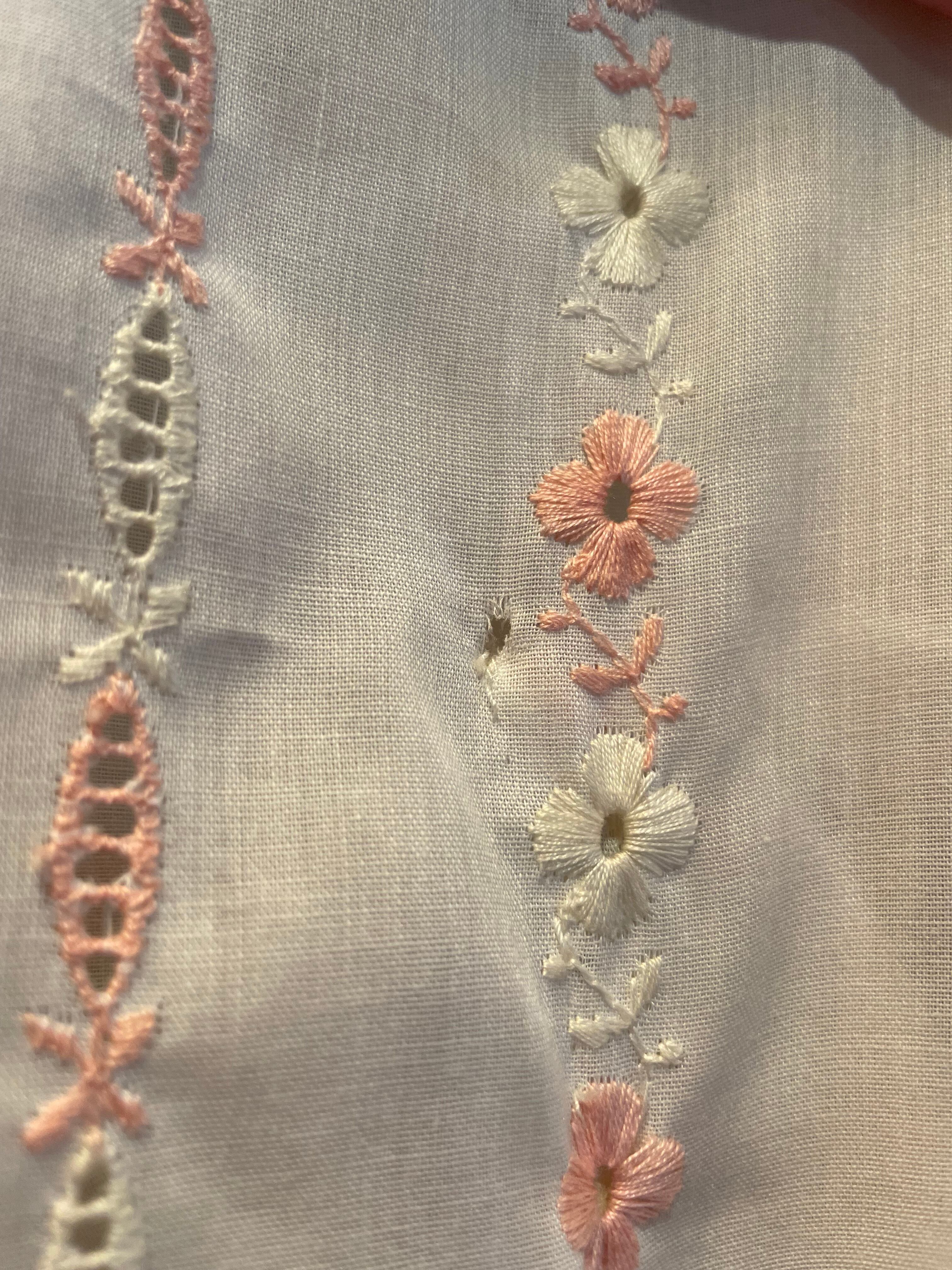 透かし編みのレースのようになっている刺繍の生地自体がとてもかわいいワンピースです。