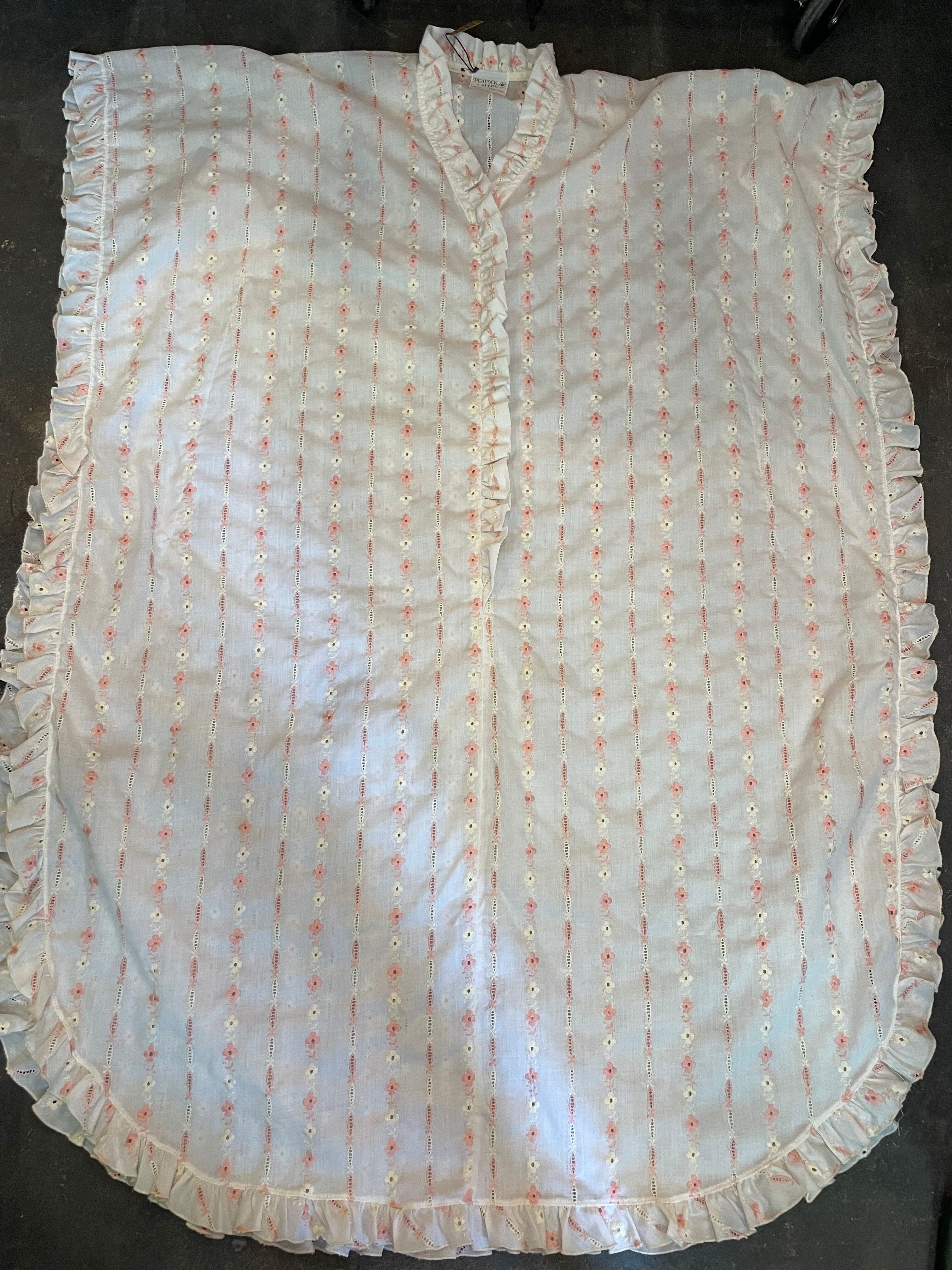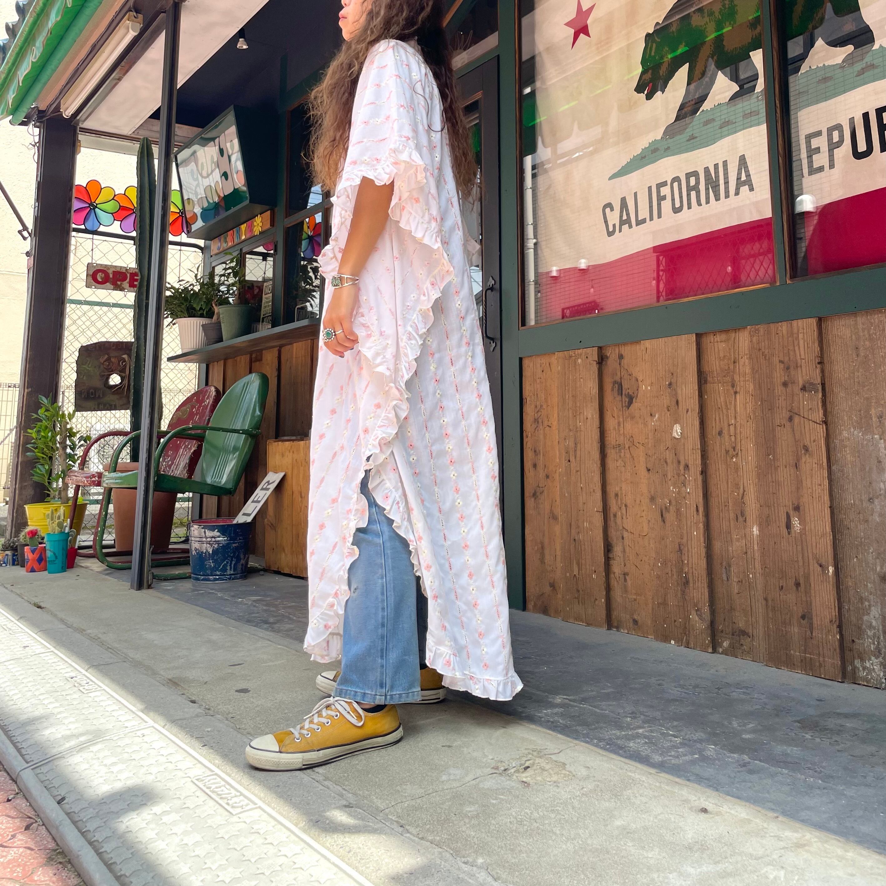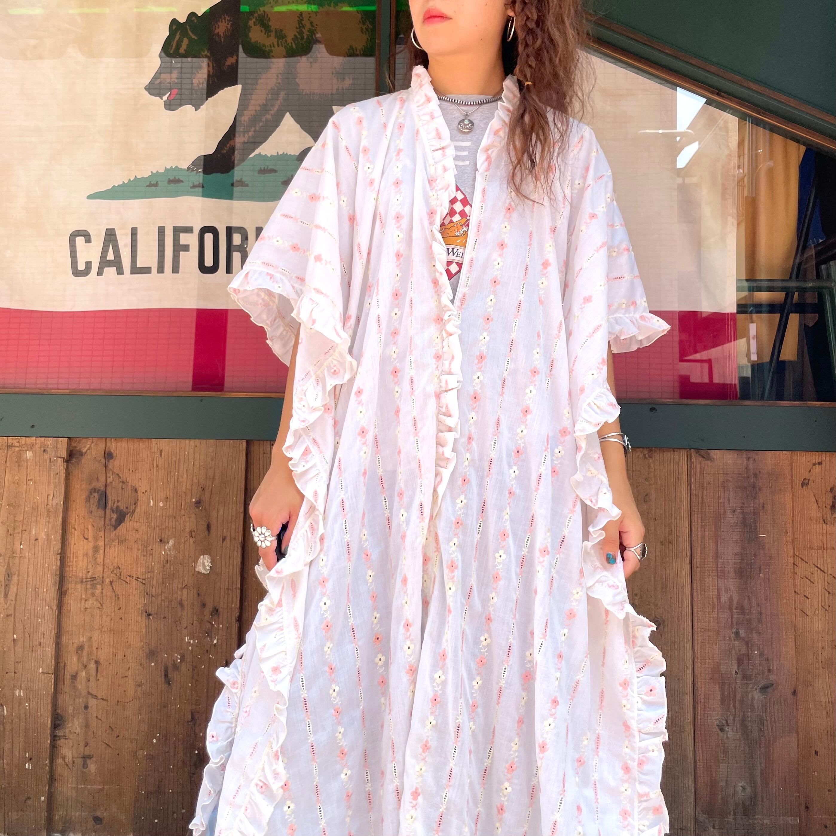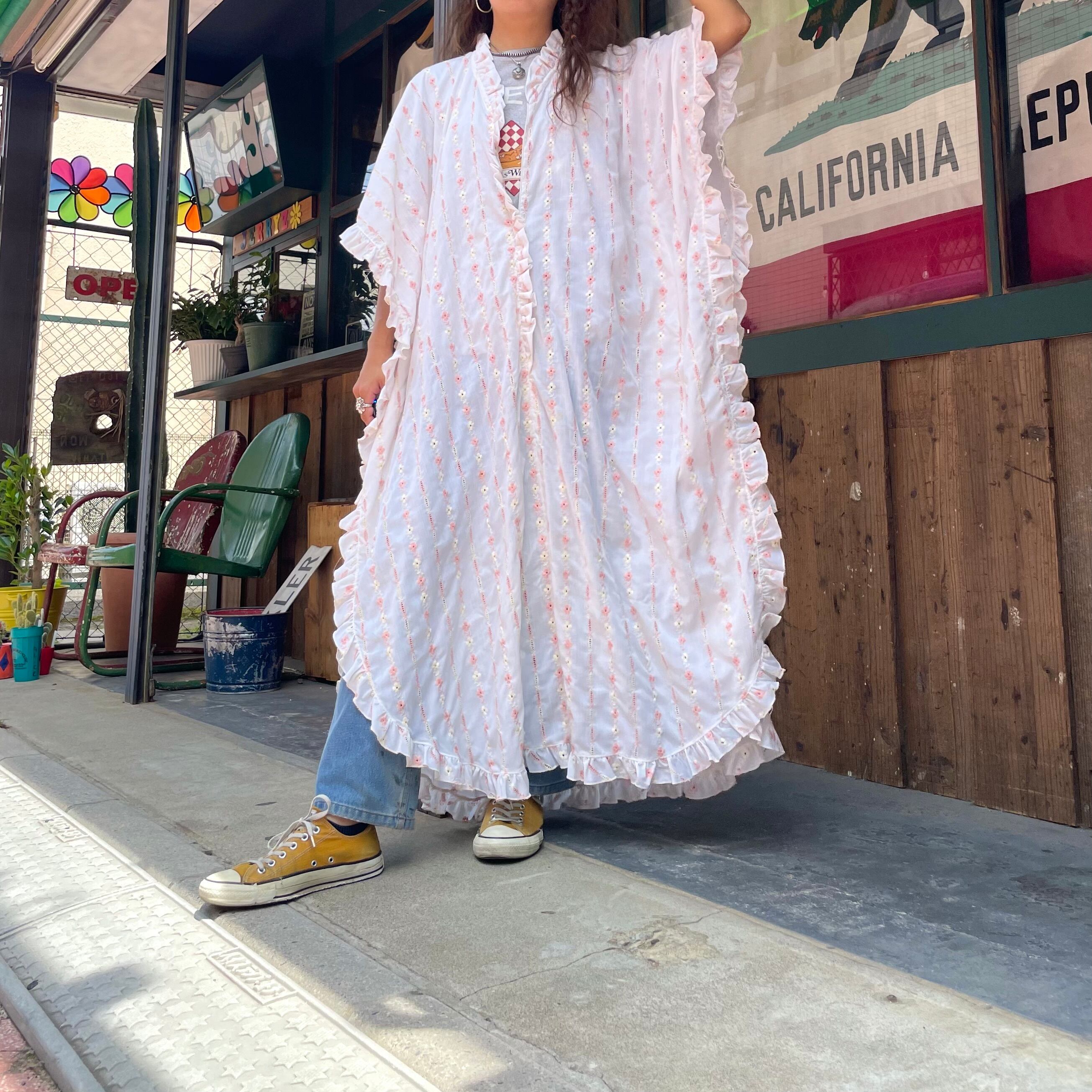 色味も淡いピンクや白っぽい雰囲気で全体的にラブリーですが、とても軽やかでポンチョのようなゆるいシルエットですので中にTシャツやパーカーを重ねてバランスを楽しんだり、ロングスカートを重ねたり、色々お楽しみいただけそうです。