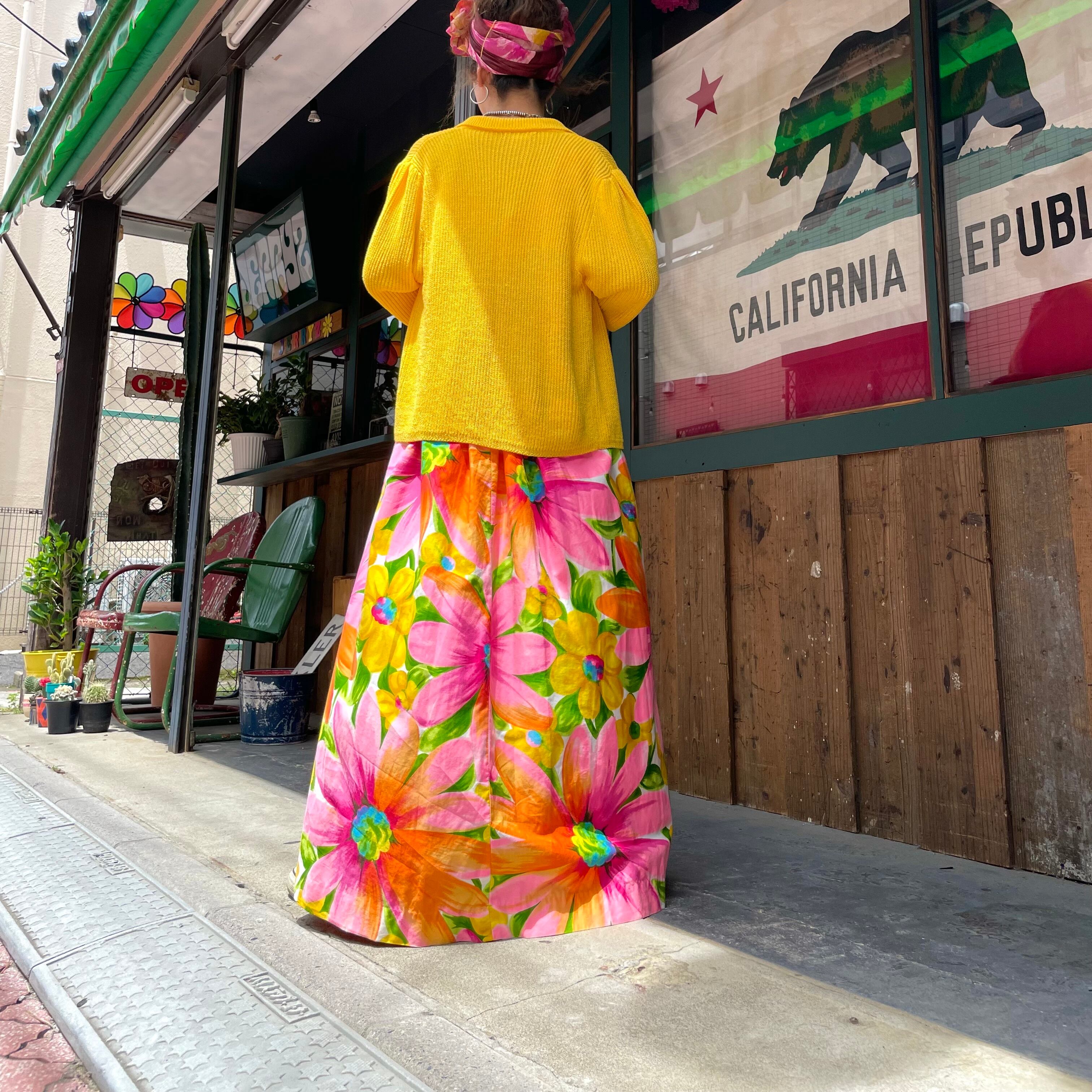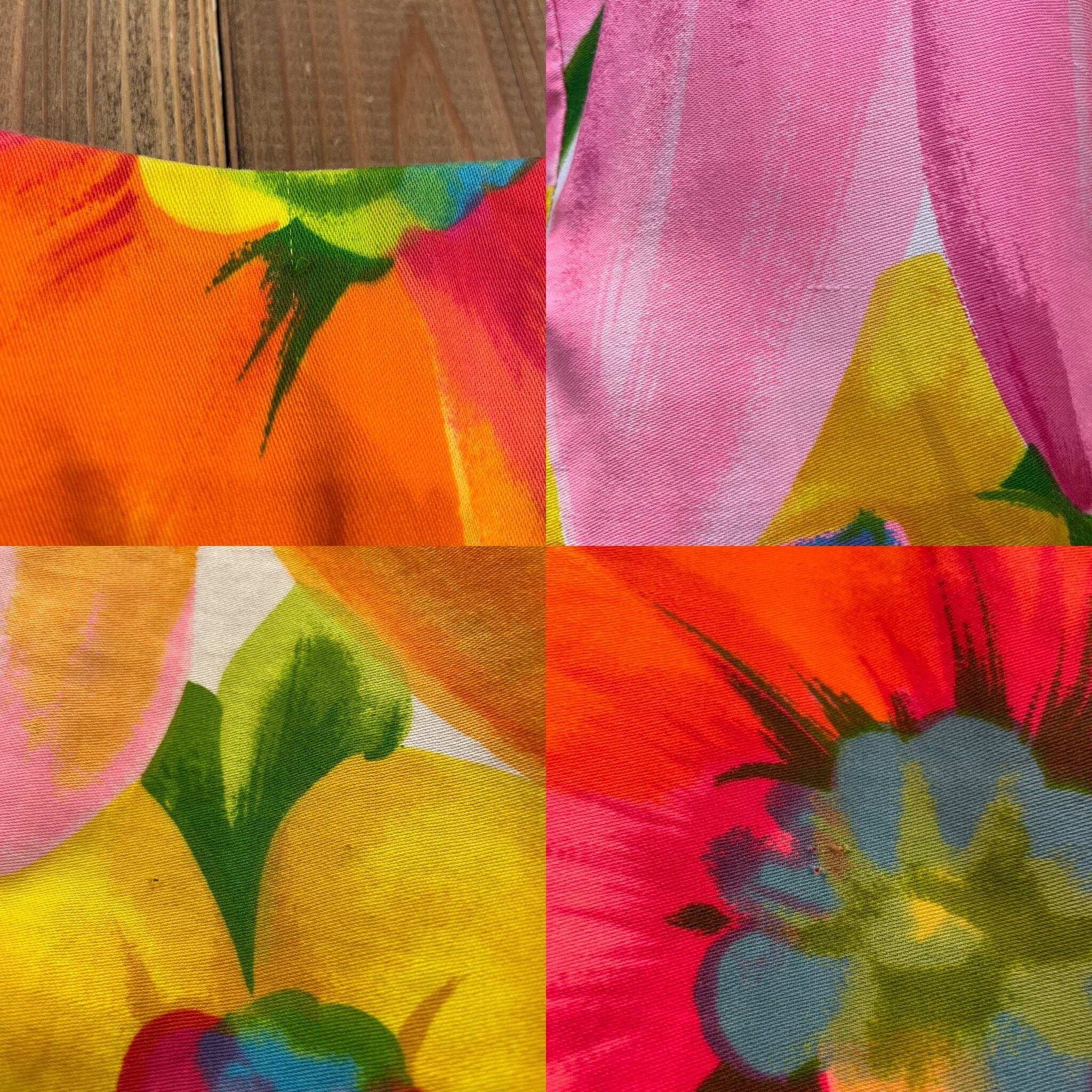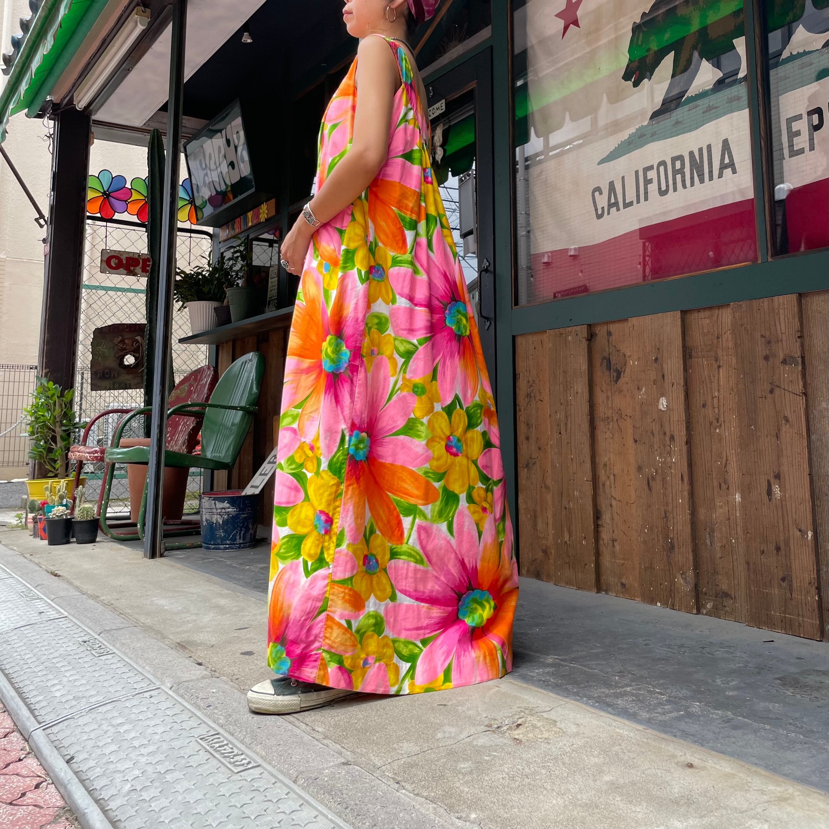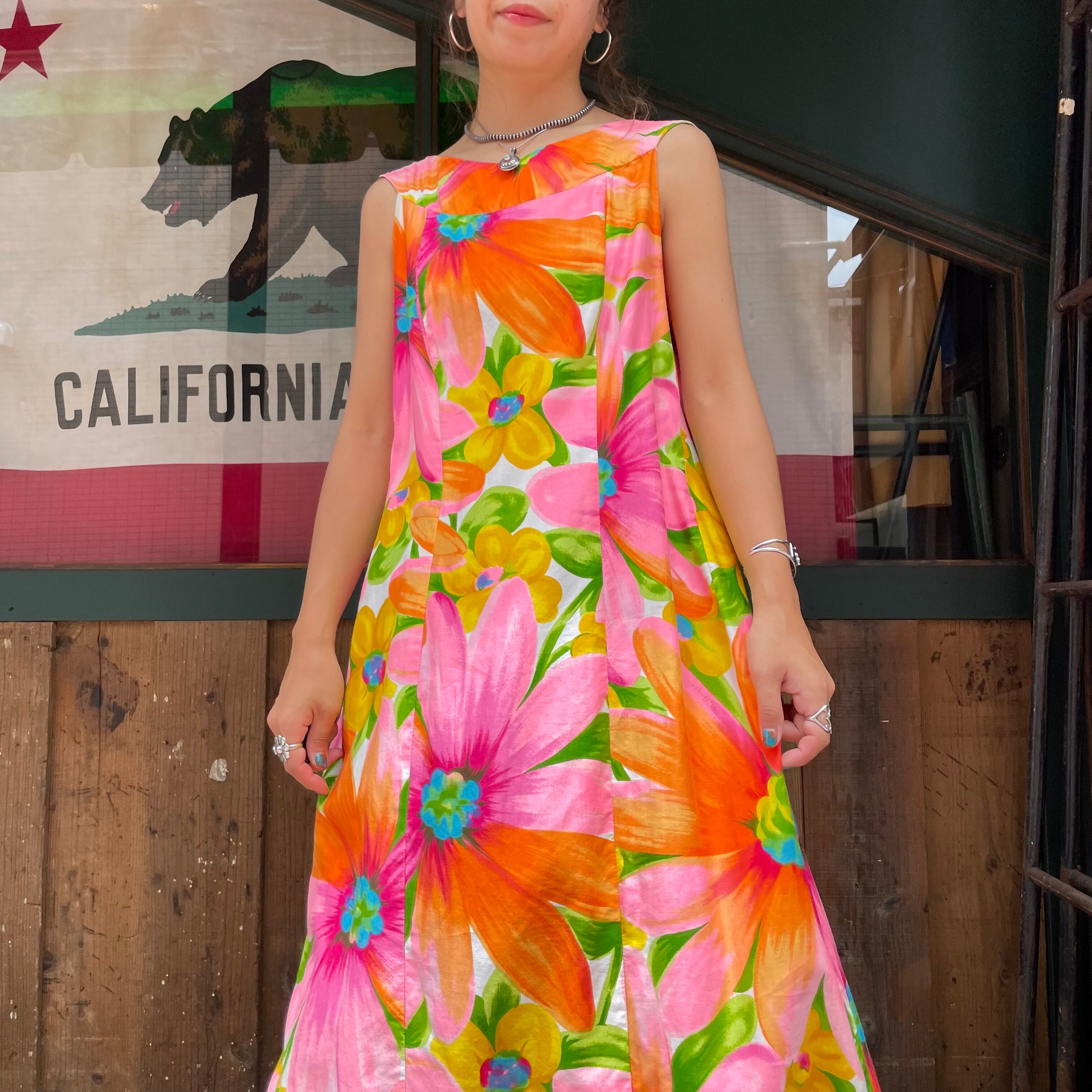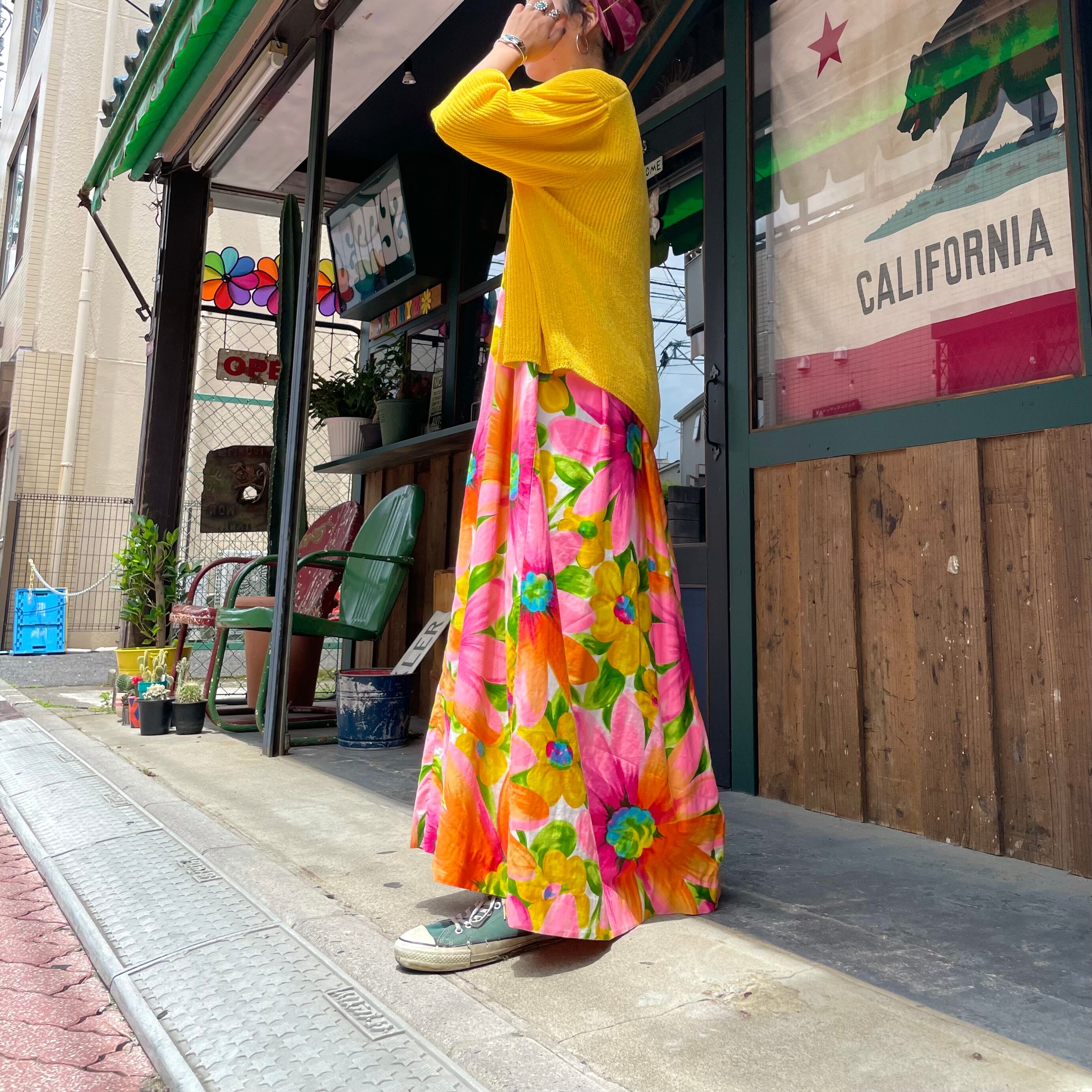 とても大きな花柄がインパクト抜群なワンピースです。背中がきれいに開いて、そこからのボリュームのあるシルエットがかわいいですね。