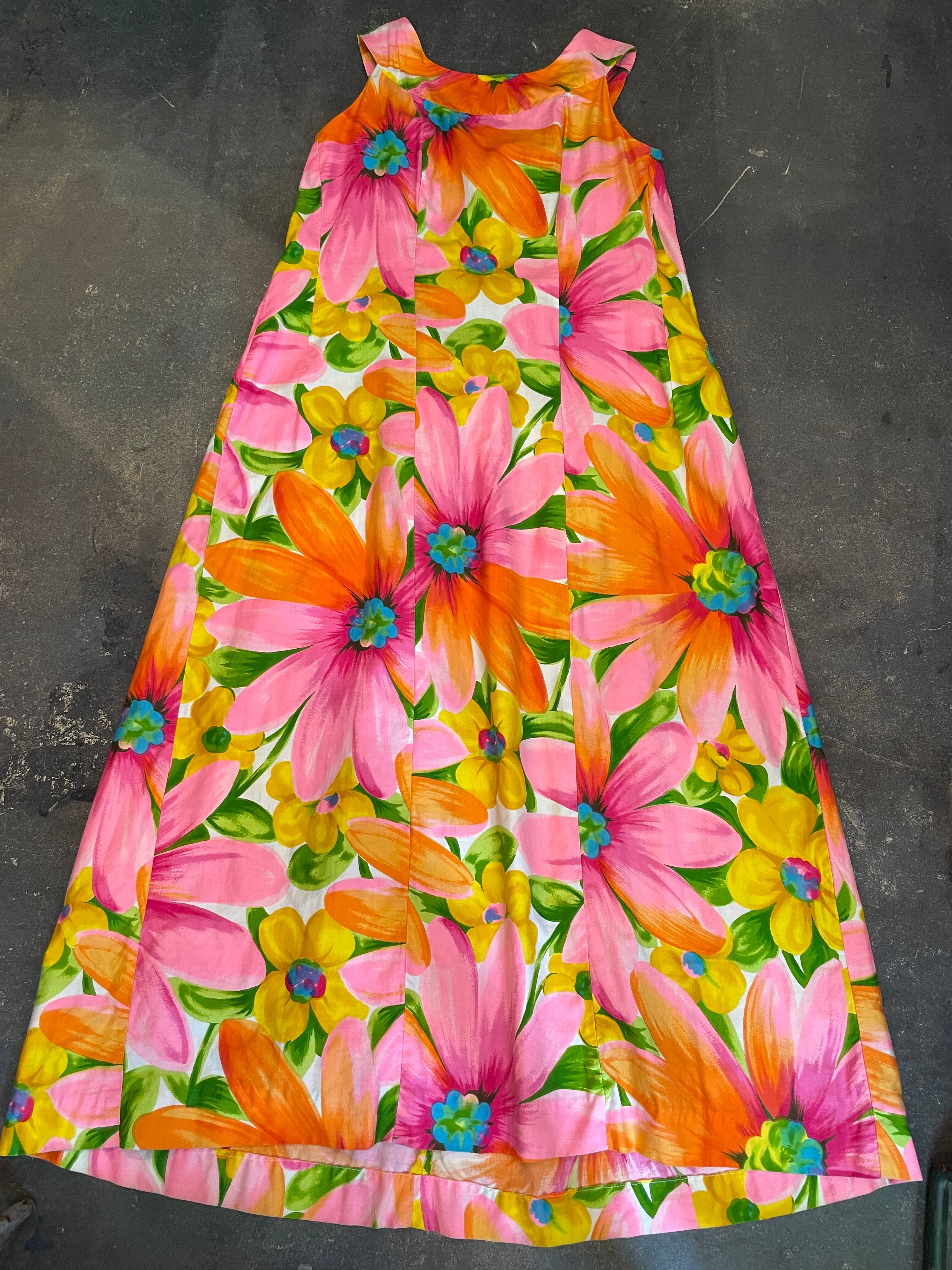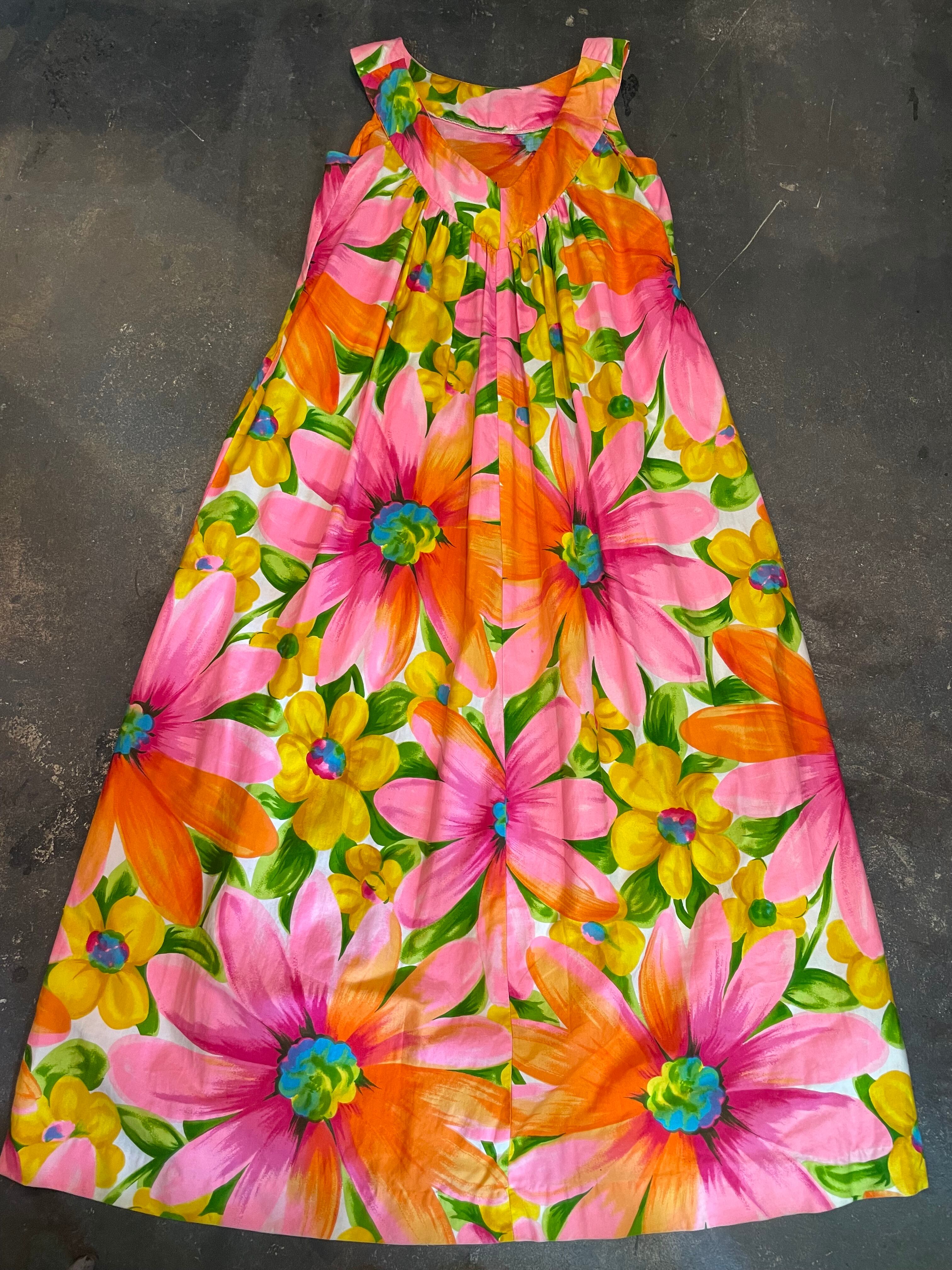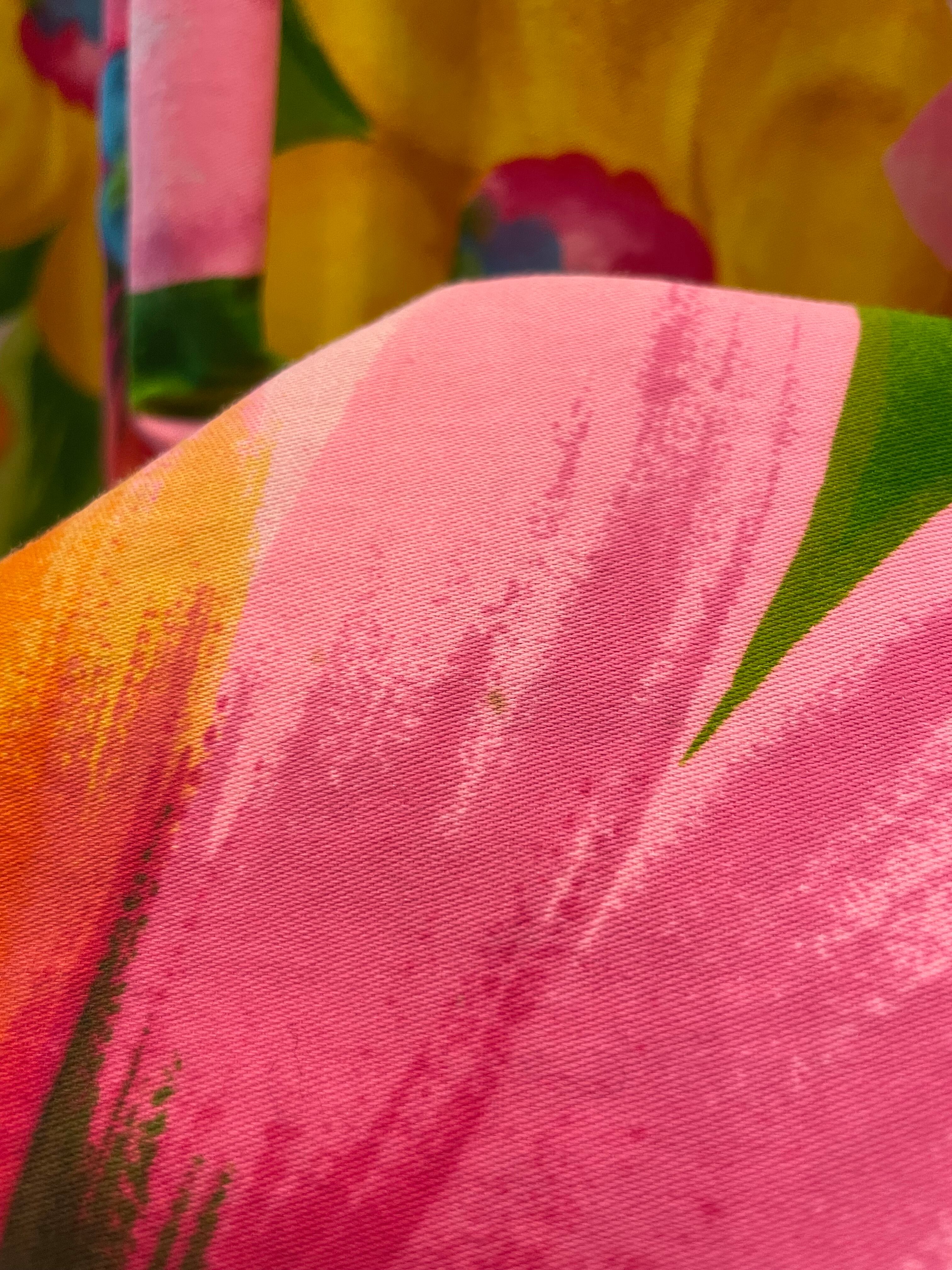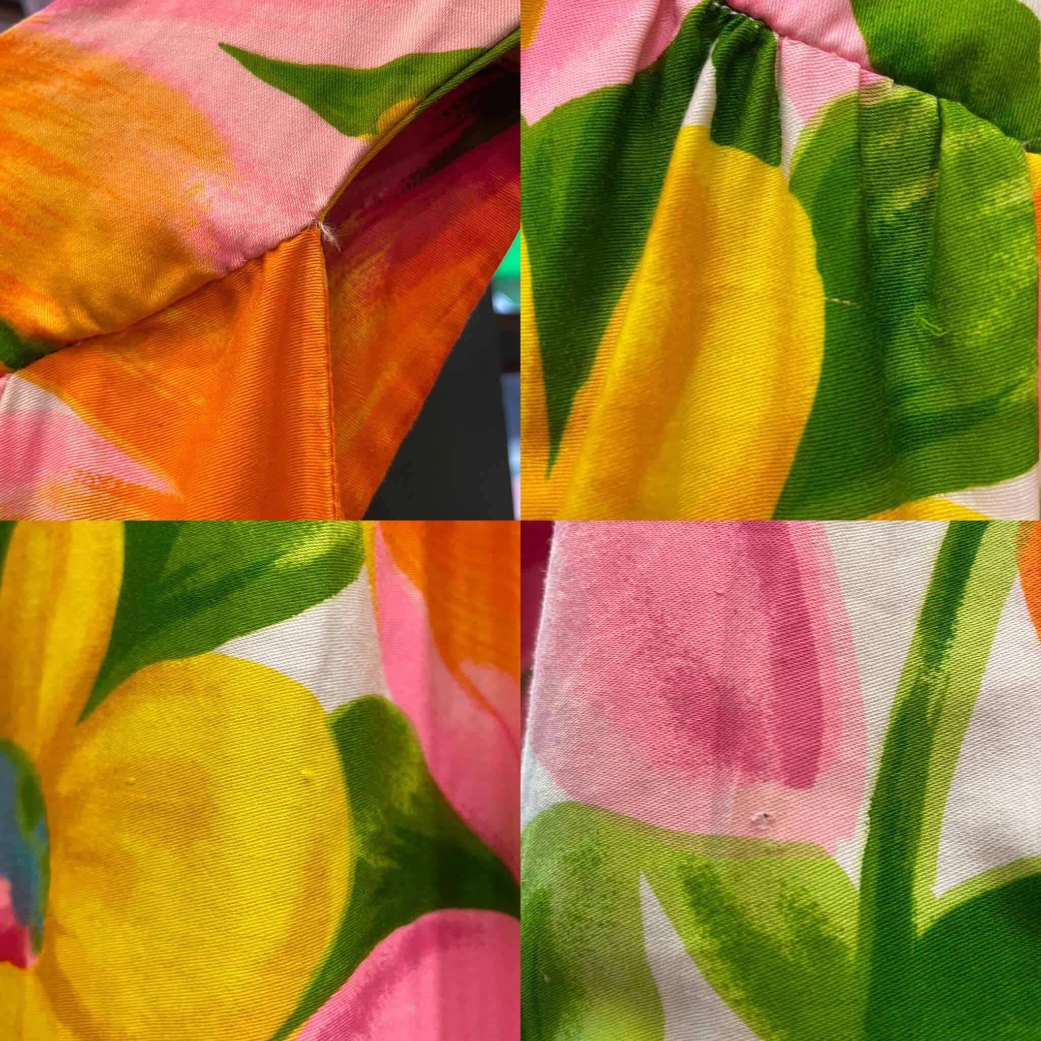 とても大きな花柄がインパクト抜群なワンピースです。背中がきれいに開いて、そこからのボリュームのあるシルエットがかわいいですね。