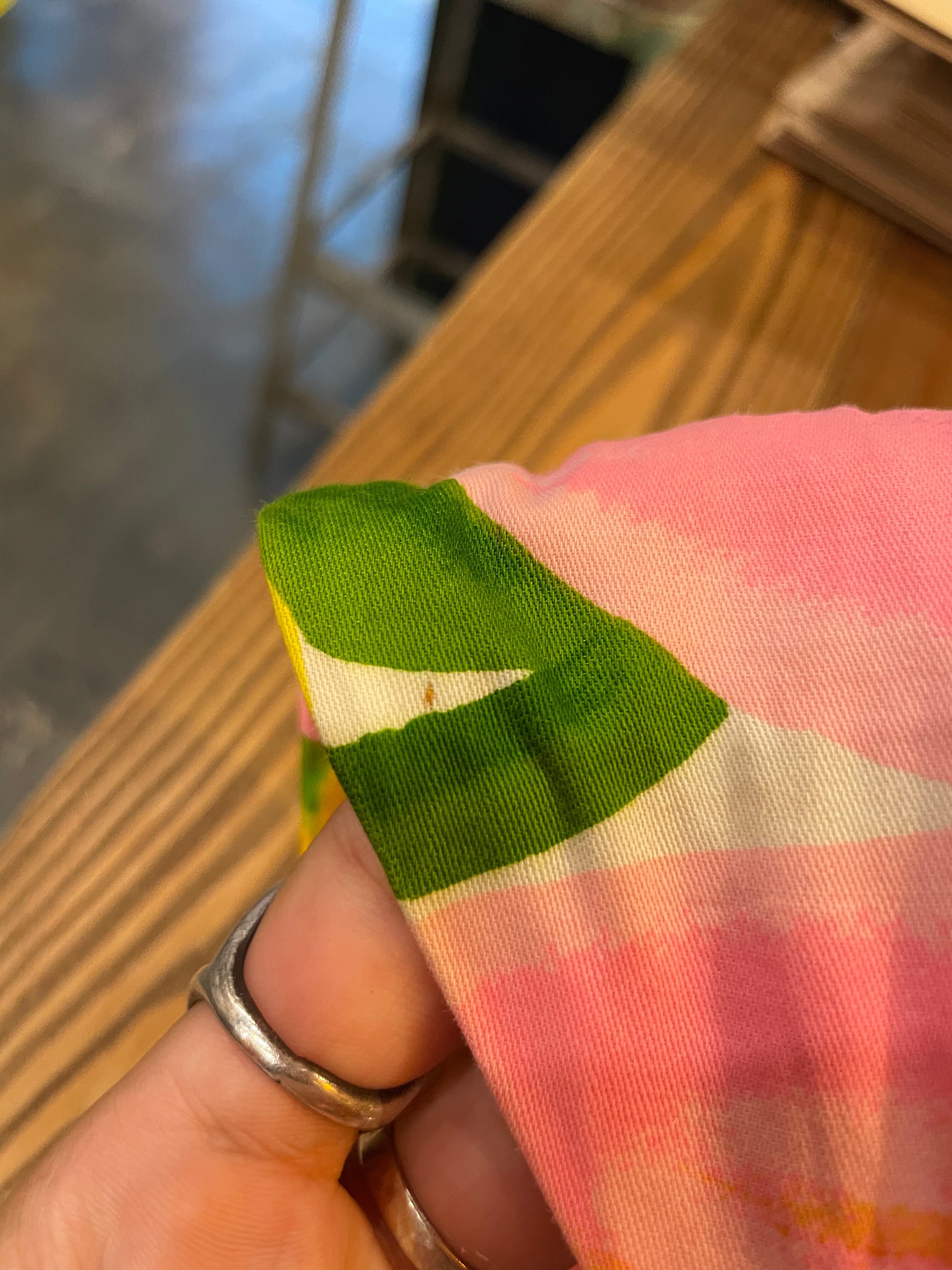 小さいシミやキズ多数、生地のツレ等全体的な使用感のある商品です。