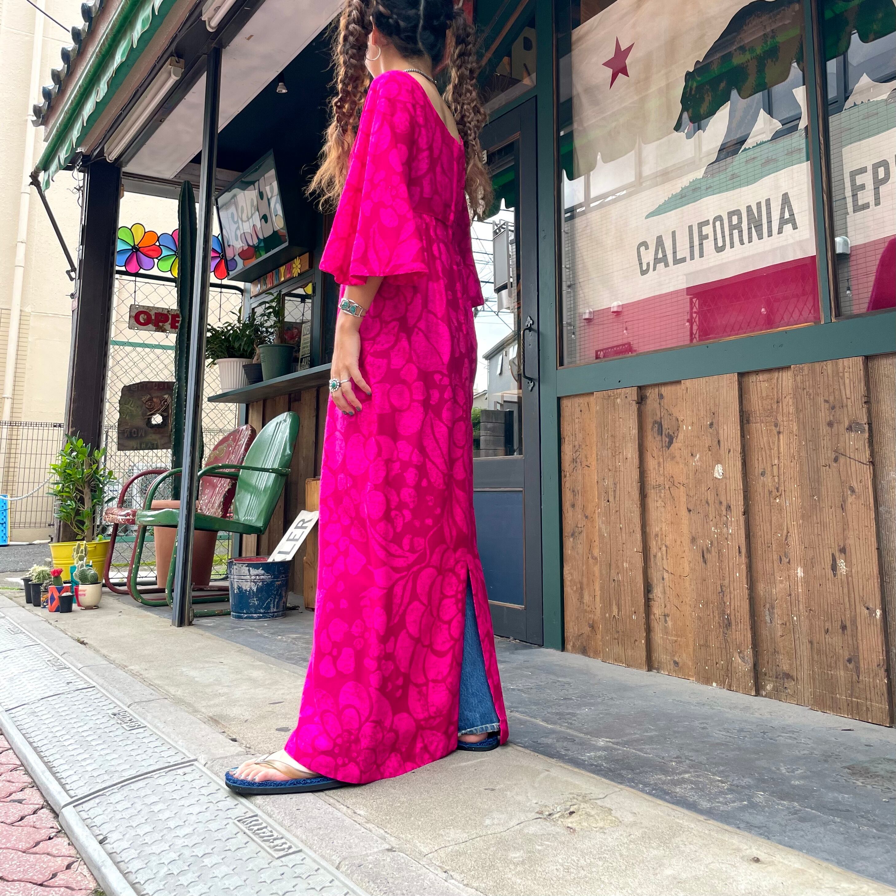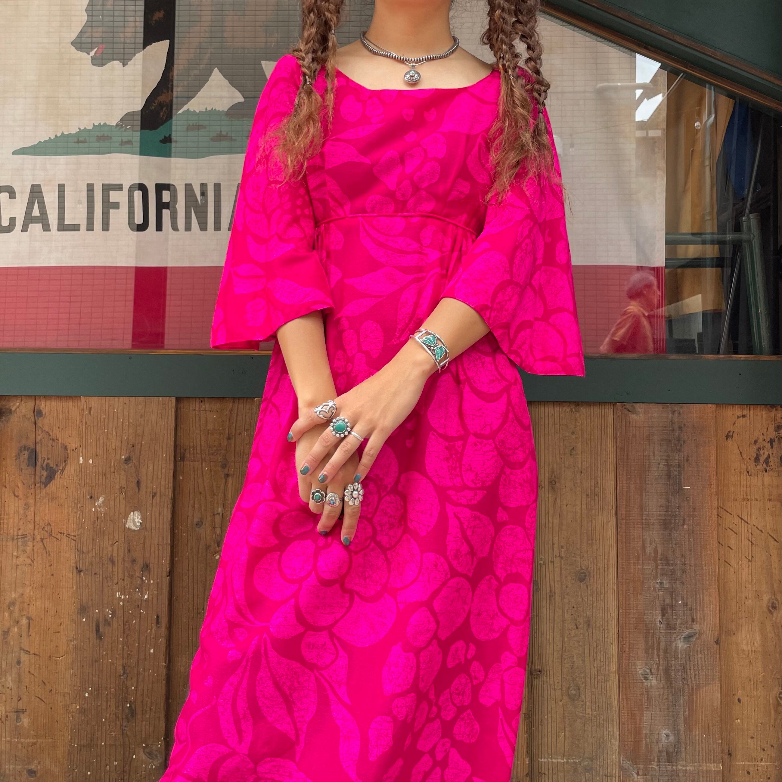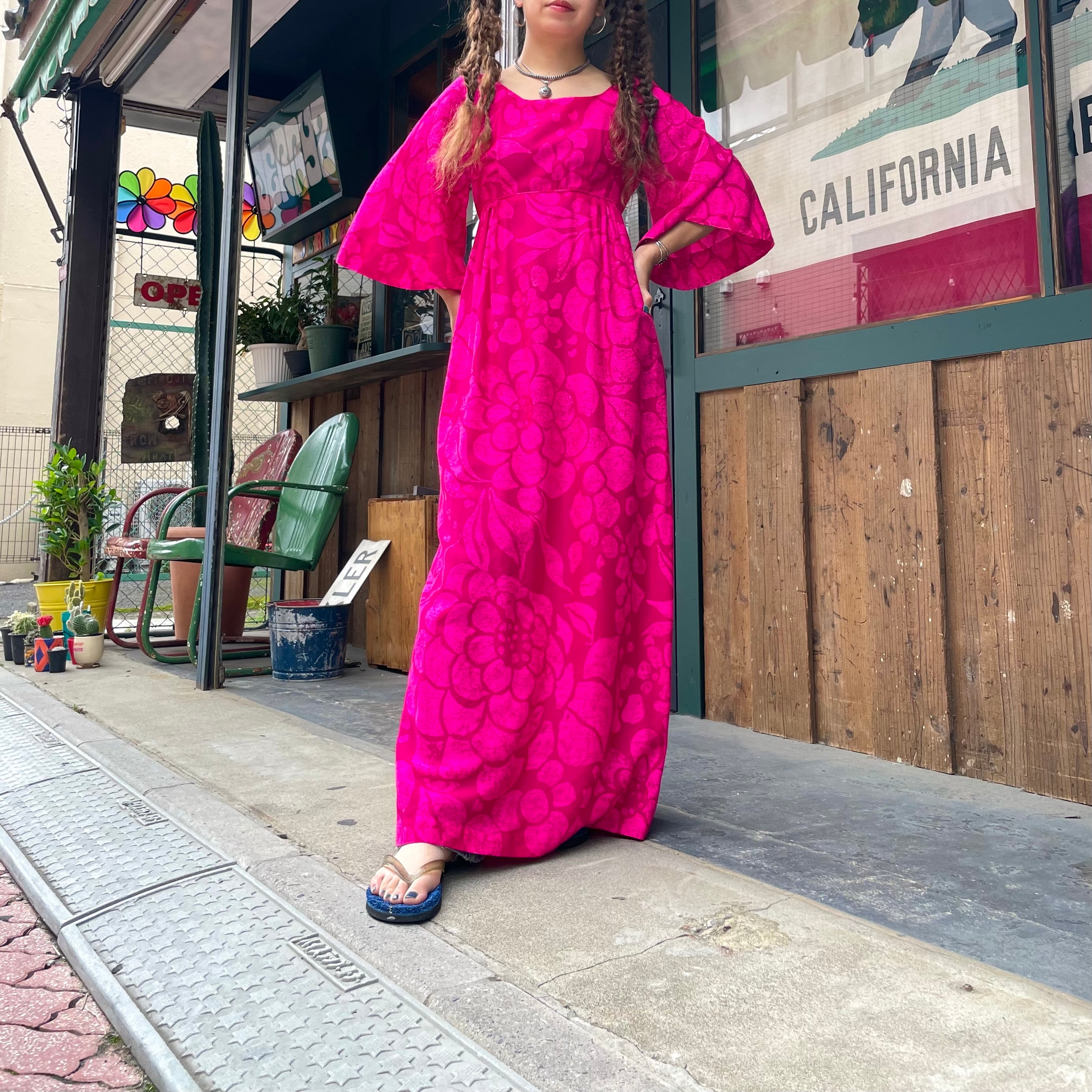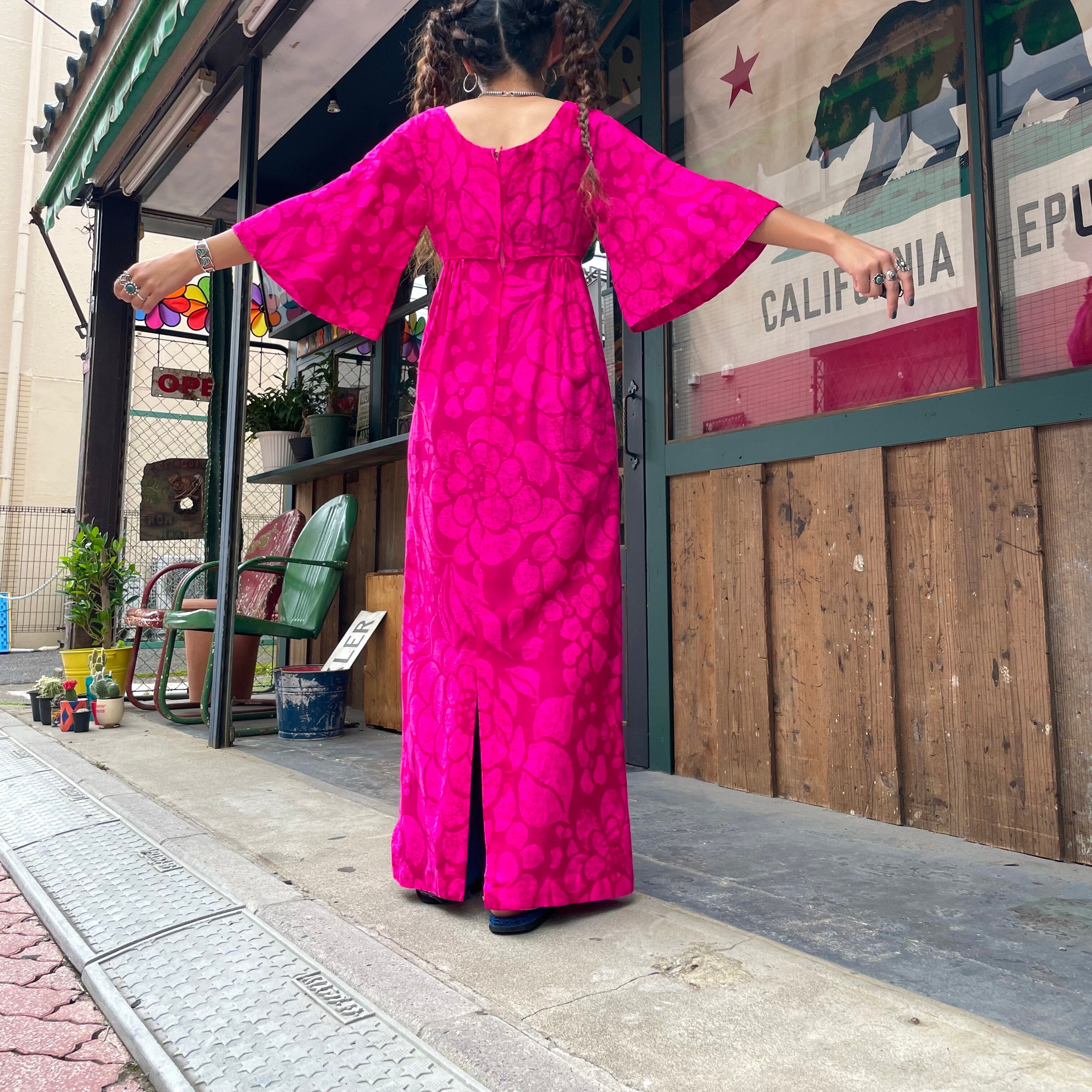 濃いピンクに大きな花柄がとてもかわいいワンピースです。