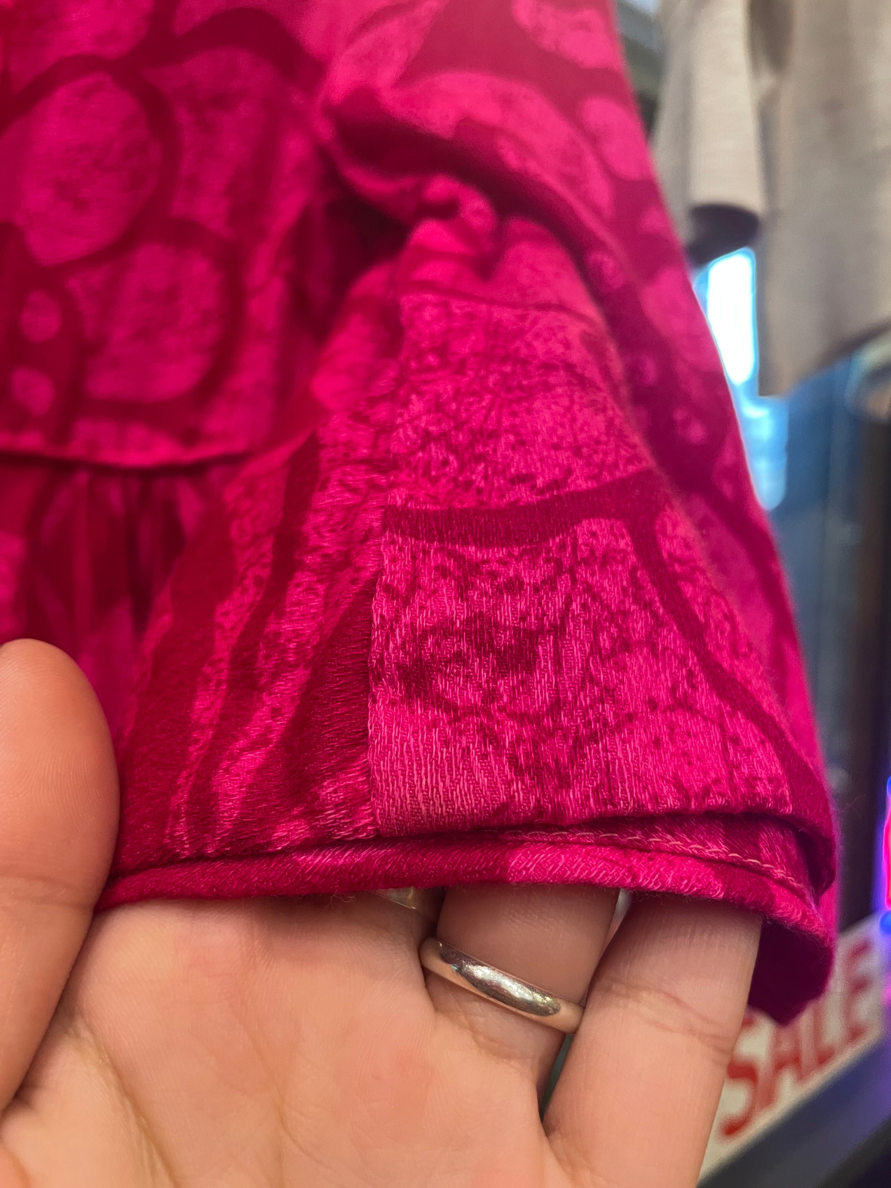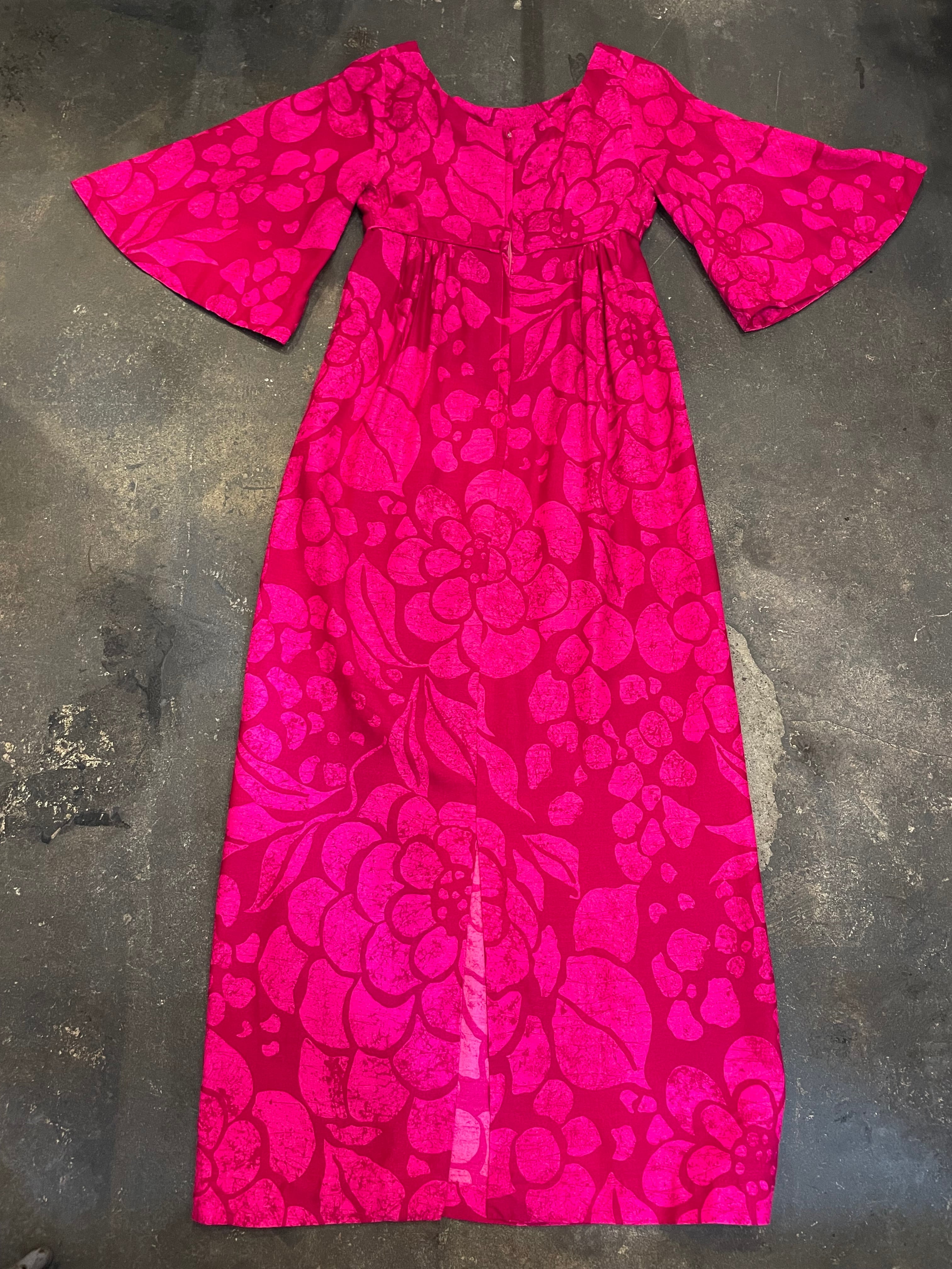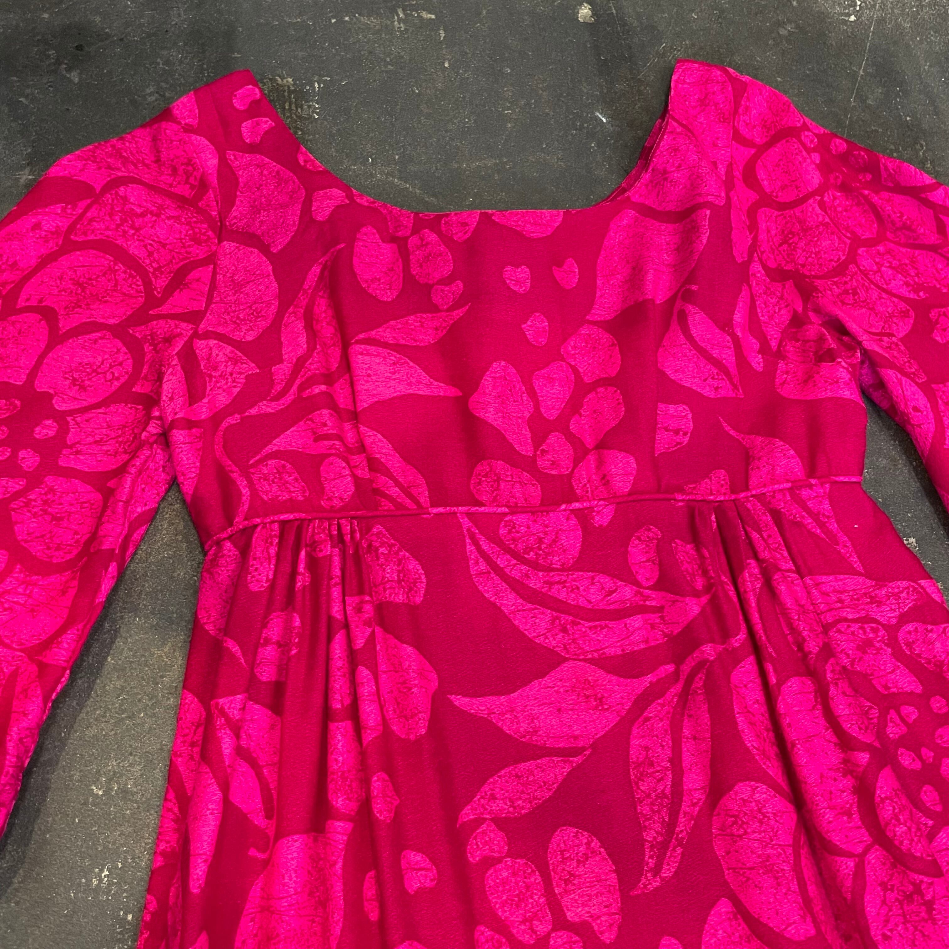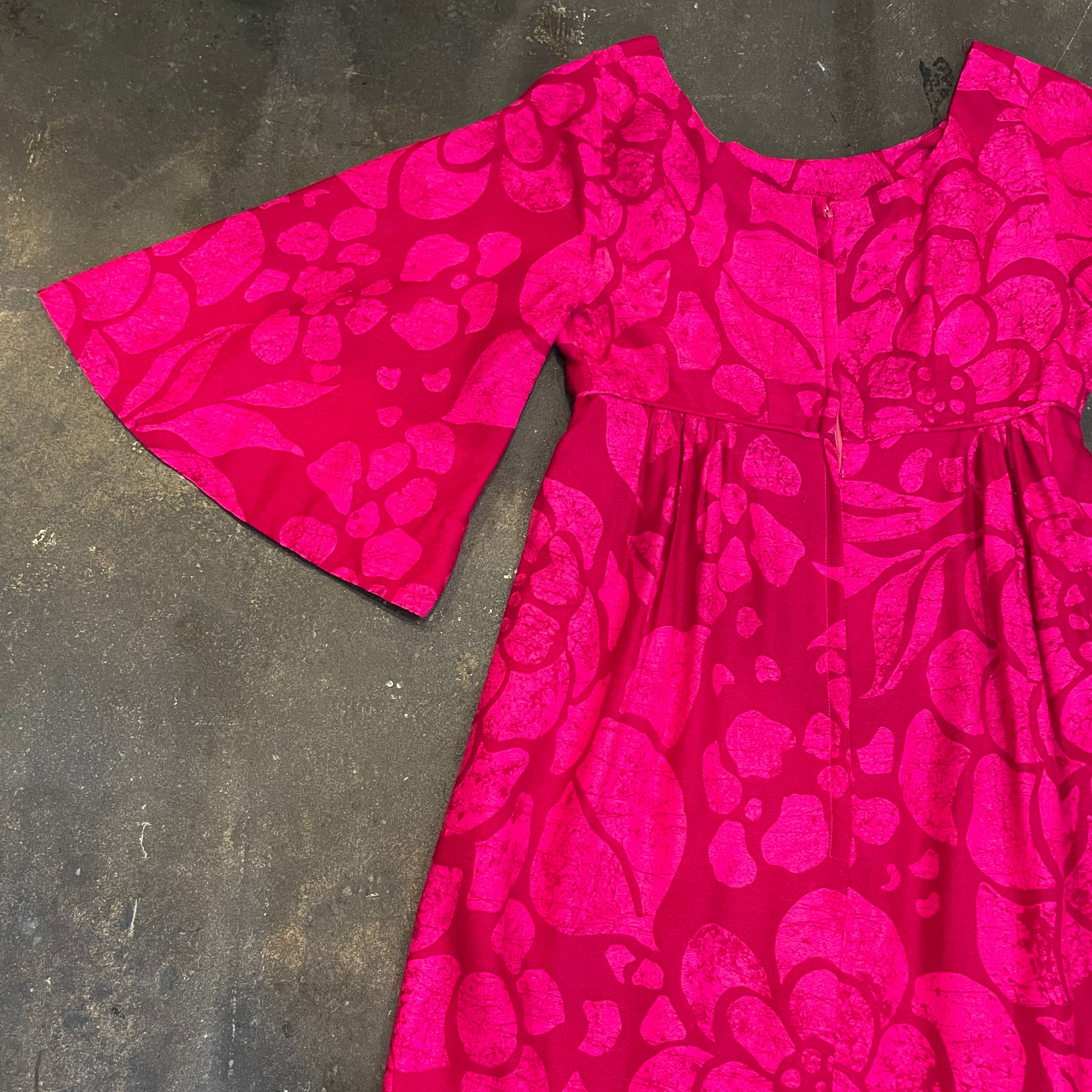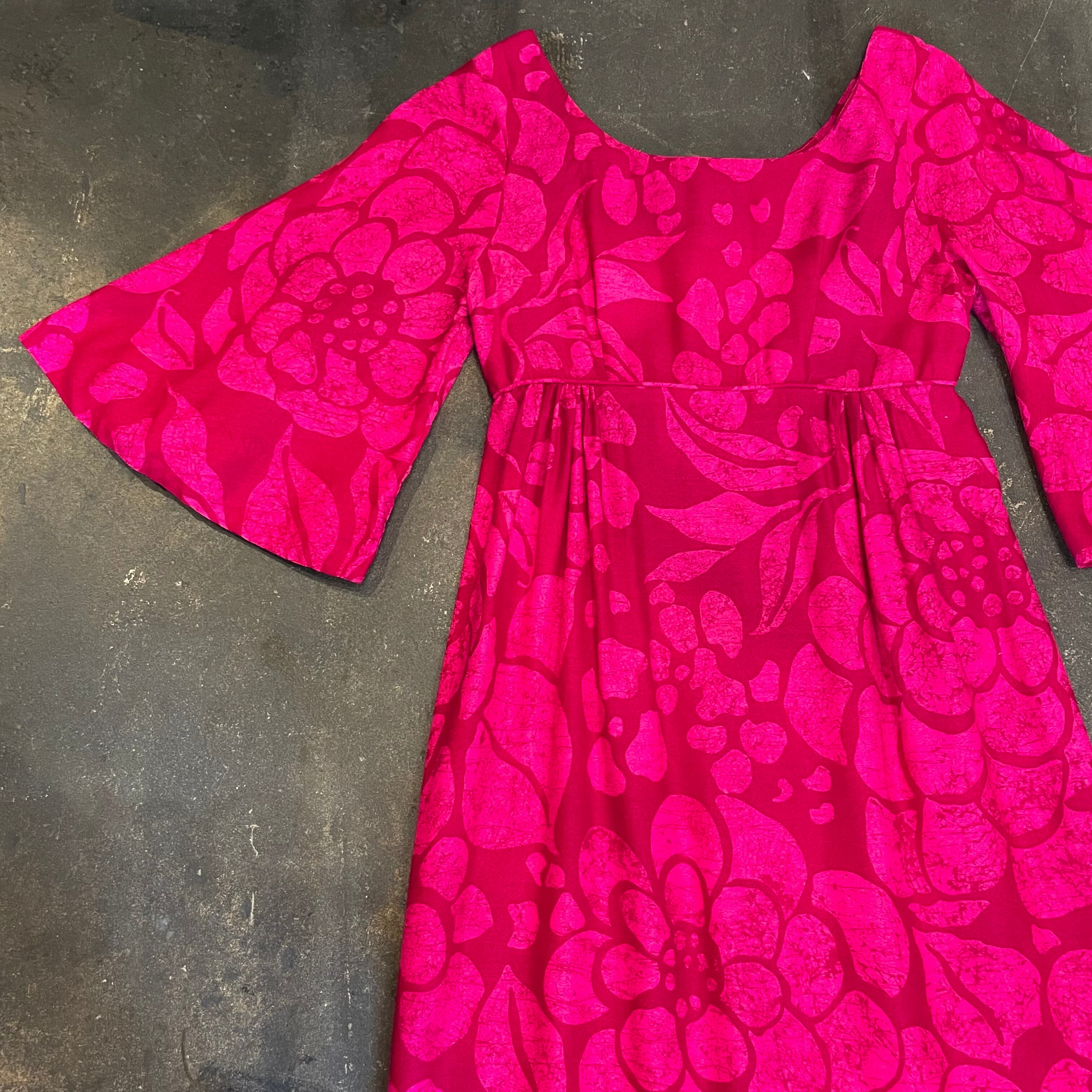 濃いピンクに大きな花柄がとてもかわいいワンピースです。