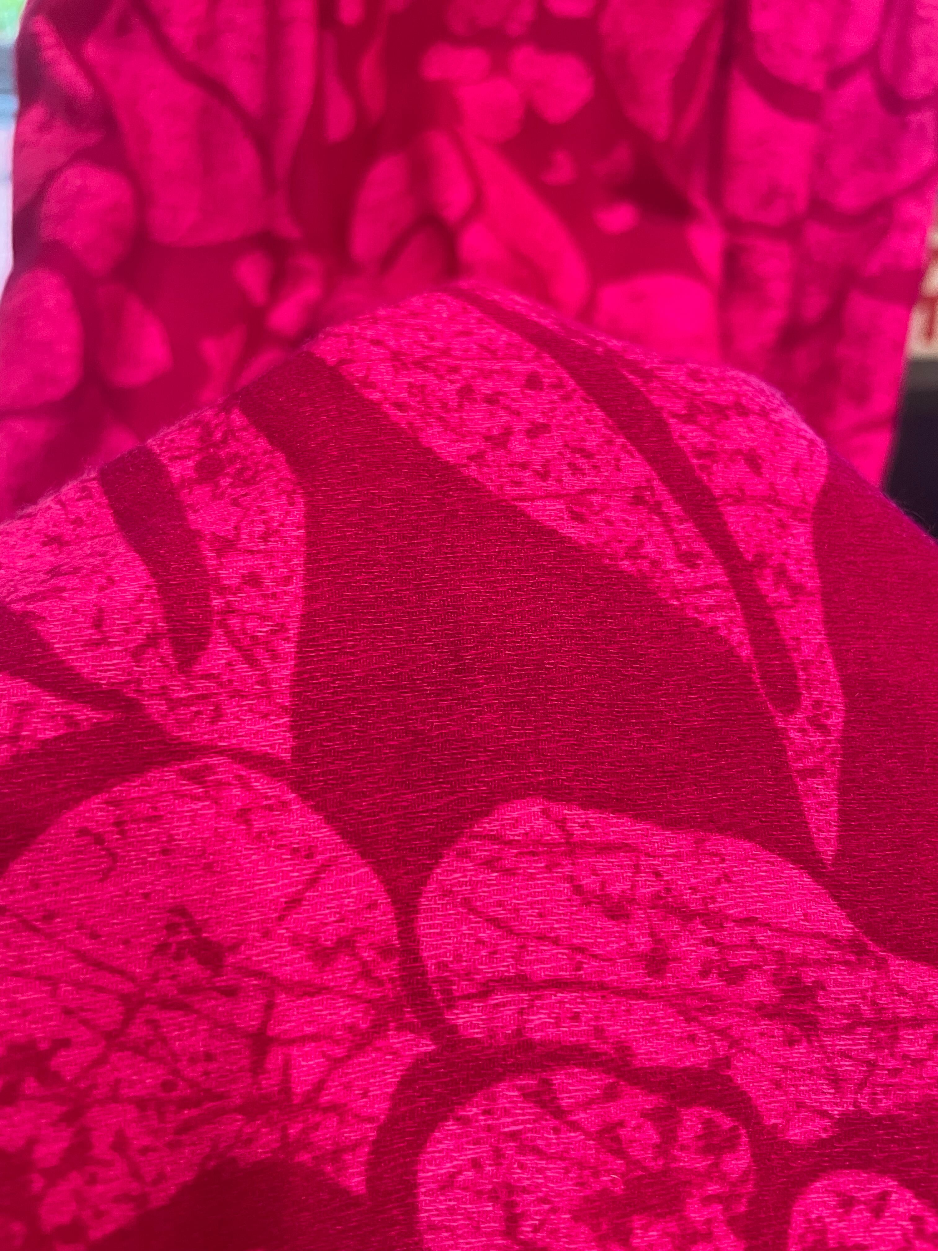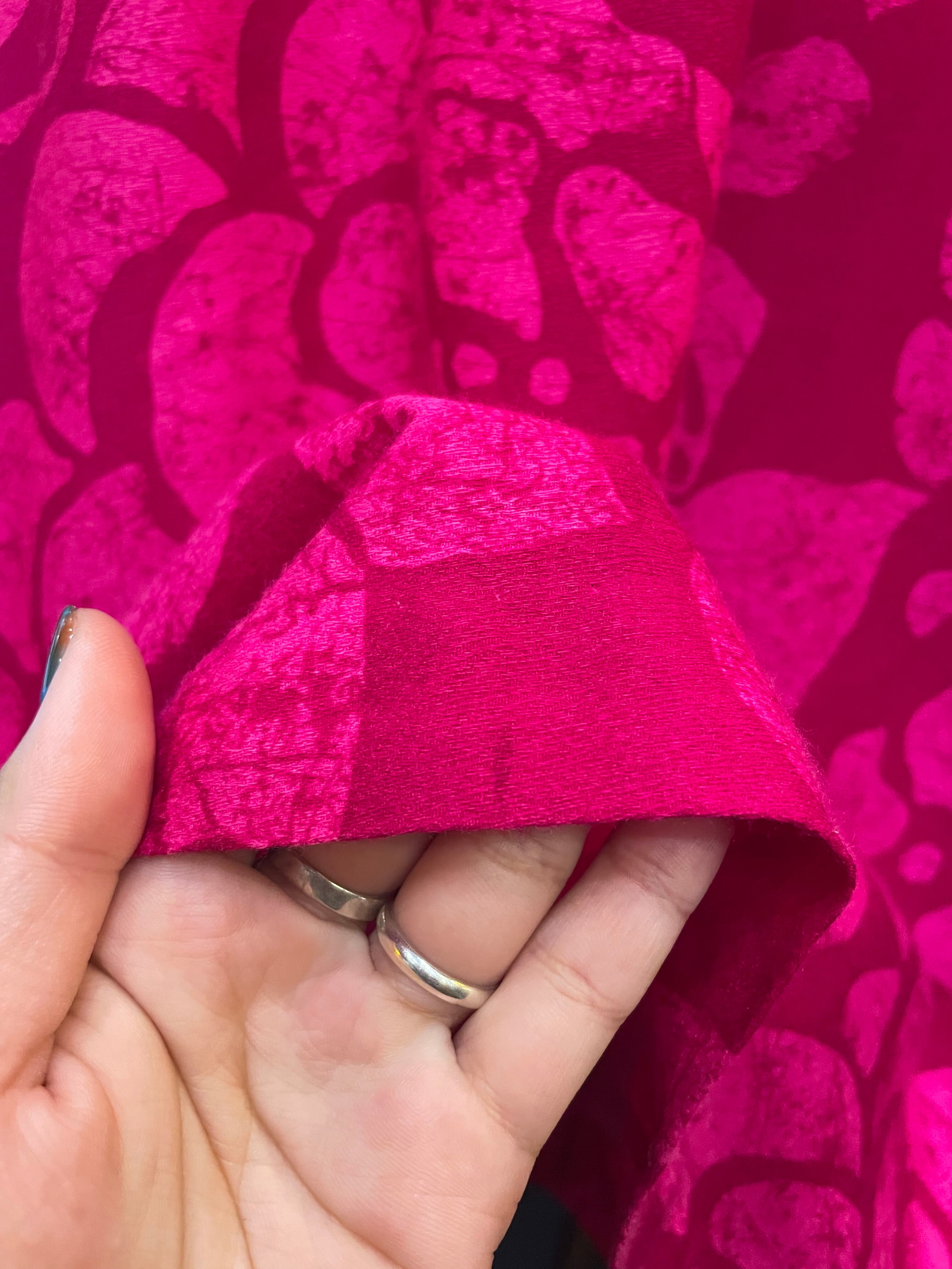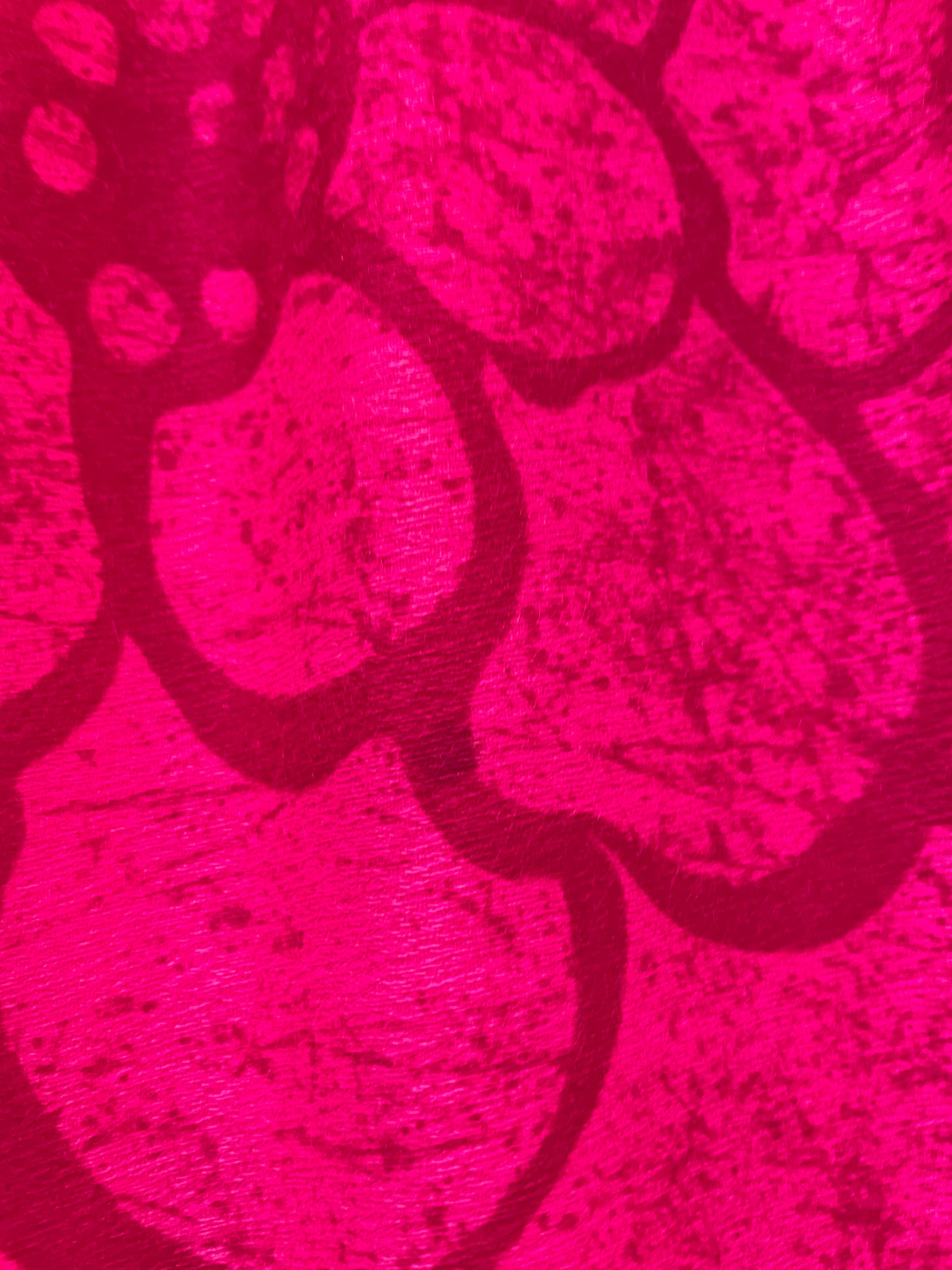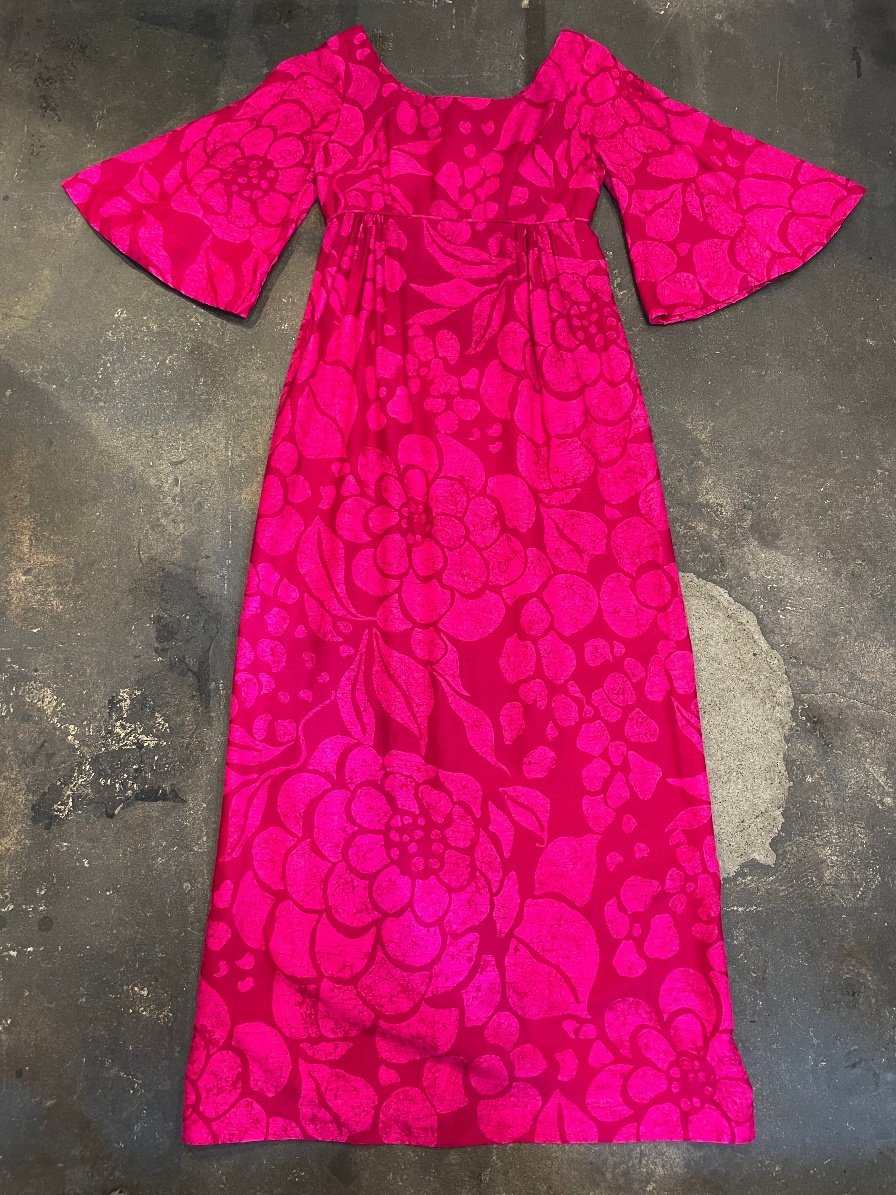 濃いピンクに大きな花柄がとてもかわいいワンピースです。